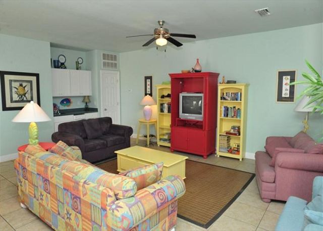 "We are a large family and we have a brother who also has a large family. We wanted a family get-away experience at the beach where we could be together yet spread out and feel safe. We have been getting togehter on Labor Day Weekend in this neighborhood for eight years. While the house is not directly on the water, the beach is an easy two block walk, plus we had use of the community pool & hot tub which were clean & well maintained. The houses are located in a small neighborhood which helped our sense of security. The kitchen has two refrigerators and an ice maker. The living room furnishings and kitchen supplies (pots/pans/dishes/small appliances & cooking utensils)in this house are all old and need to be replaced. But we made do with what was there plus brought some of our own kitchen things. There is a small outdoor grill but it needs major cleaning every time we go. The location is perfect for families who want to get away from the crowded beaches, restaurants and attractions. The staff at Sunset Properties, including the office personnel and the maintenance people were wonderful and responded promptly to our calls. All in all, we had a wonderful time and have already booked for next year. "