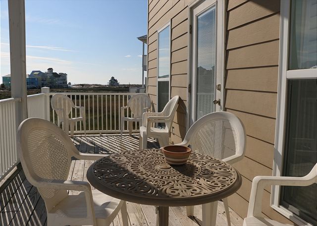 "lots of room for our extended family vacation, spectacular views from the upper deck, short walk to the beach. very comfortable...."