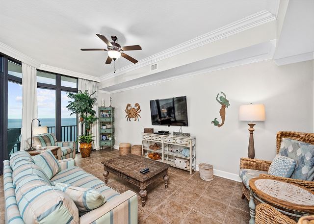 "What a lovely place to vacation at Orange Beach! The condo is beautifully furnished, spacious and bright with gorgeous views. So nice to have each bedroom with its own full bath and TV. Each bathroom stocked with plenty of towels, and appreciated having washer/dryer! Enjoyed using the keurig each morning, and very impressed with the wine refrigerator and the "Margaritaville" blender! Favorite spot was sitting at the high top on the balcony with spectacular views any time, day or night. The entire complex is lovely, with easy access to lazy river pool, lounge chairs and of course the beautiful beach and ocean. Hope this will be the first of many visits to Orange Beach and 2606!!"