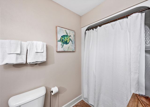 PRIMARY BEDROOM: King bed with private bath (tub & standup shower)