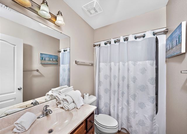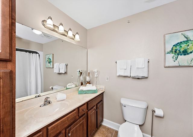 SECOND BEDROOM: Two queen beds with private bath (tub/shower combo)