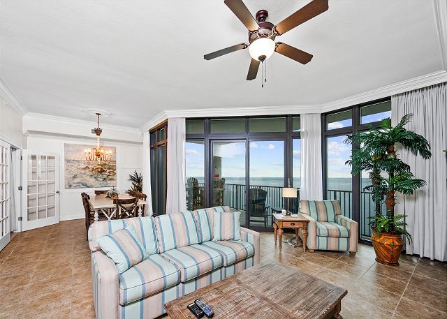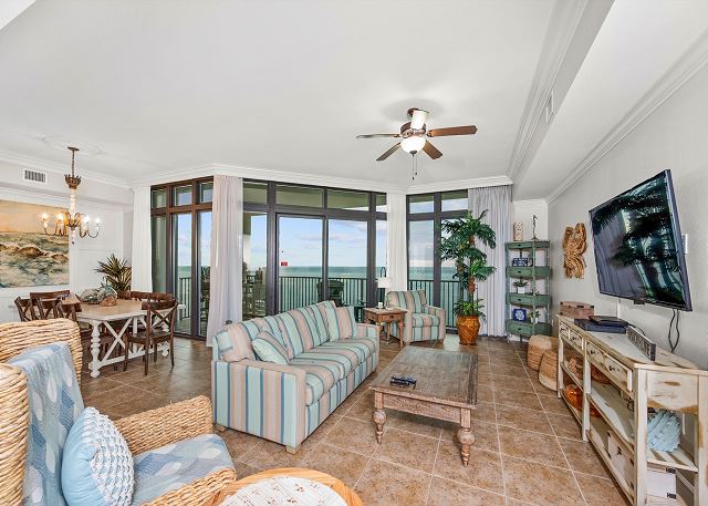ADDITIONAL FEATURES: Washer and dryer in 4th bathroom, Gulf-view balcony, high-speed internet, access to community amenities including pools, lazy river, fitness room, sauna, tennis courts, BBQ area, and game room