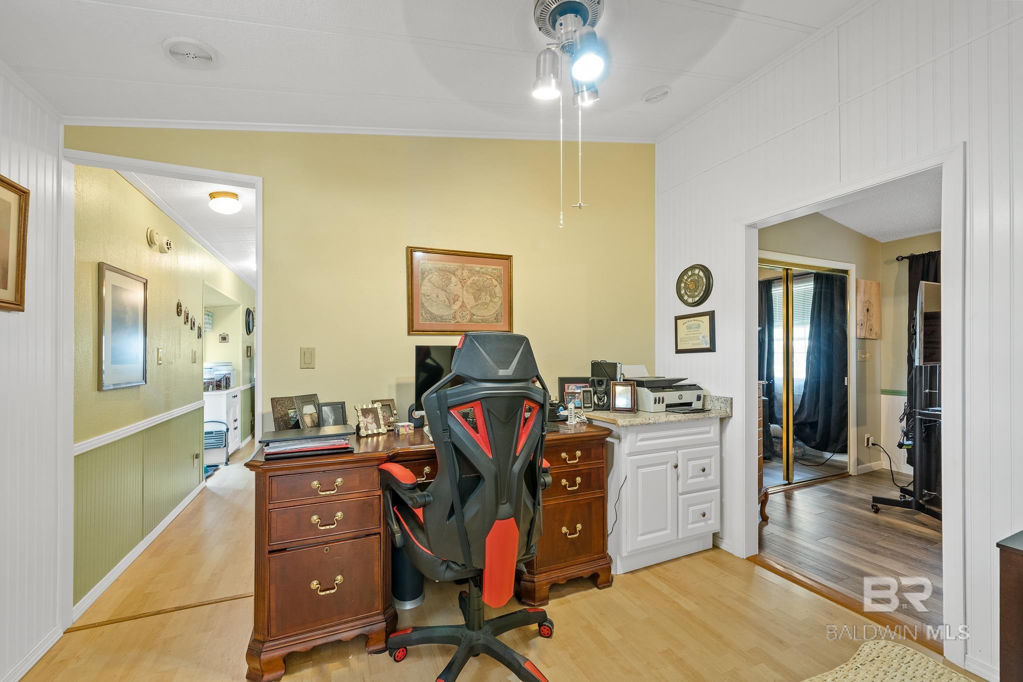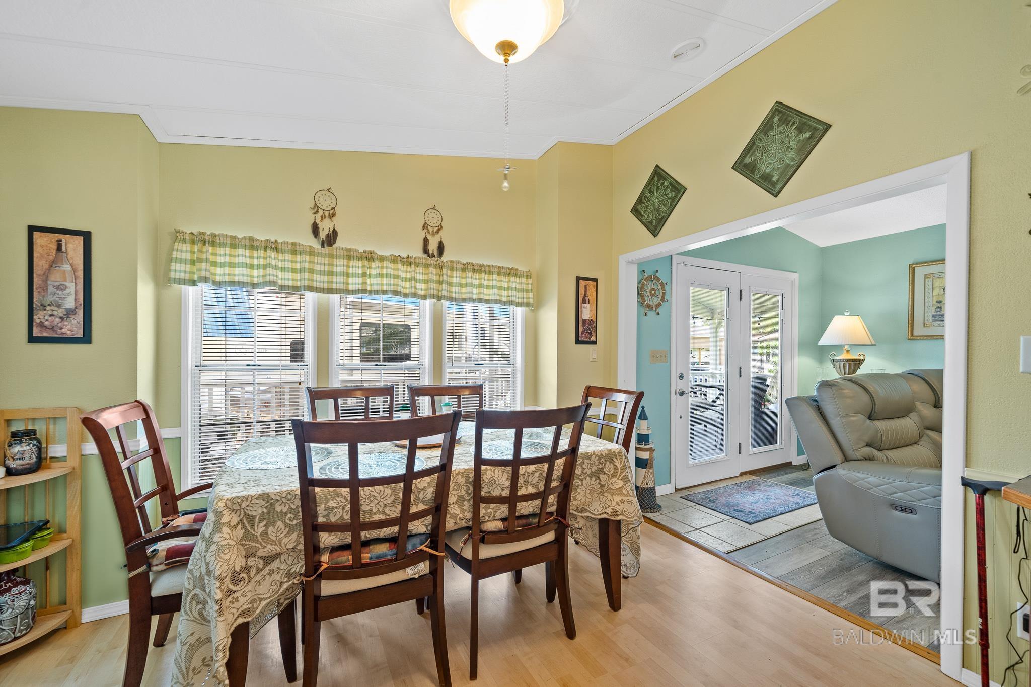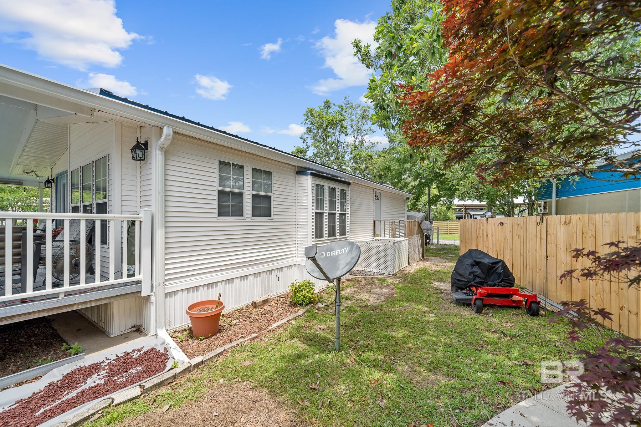 Check out this beautifully updated home located in the Land Harbor area of Spanish Cove! Situated on a corner DOUBLE lot, this 1 bedroom, 1 bathroom mobile home features stainless steel appliances, luxury vinyl plank flooring in the living room, bedroom and kitchen. There is NO carpet in this home at all! The seller has recently spared no expense in upgrading the range, built-in microwave and dishwasher to a high-end Kitchen Aid suite. Enjoy any time of day on the beautiful wrap around porch. Have company coming' No worries! The HEATED and COOLED cottage has a ¾ bathroom, plenty of space for a sleeper sofa, murphy bed, or anything your heart desires, as well as attic storage!. At one time, it was complete with a bed, small dining table and couch. The driveway is oversized and the canopy is approximately 22x29x13--large enough for a 5th Wheel (with the slides out), golf cart and vehicle to be parked under comfortably and remain sheltered. There are also additional hookups present. Buyer to verify all information during due diligence.