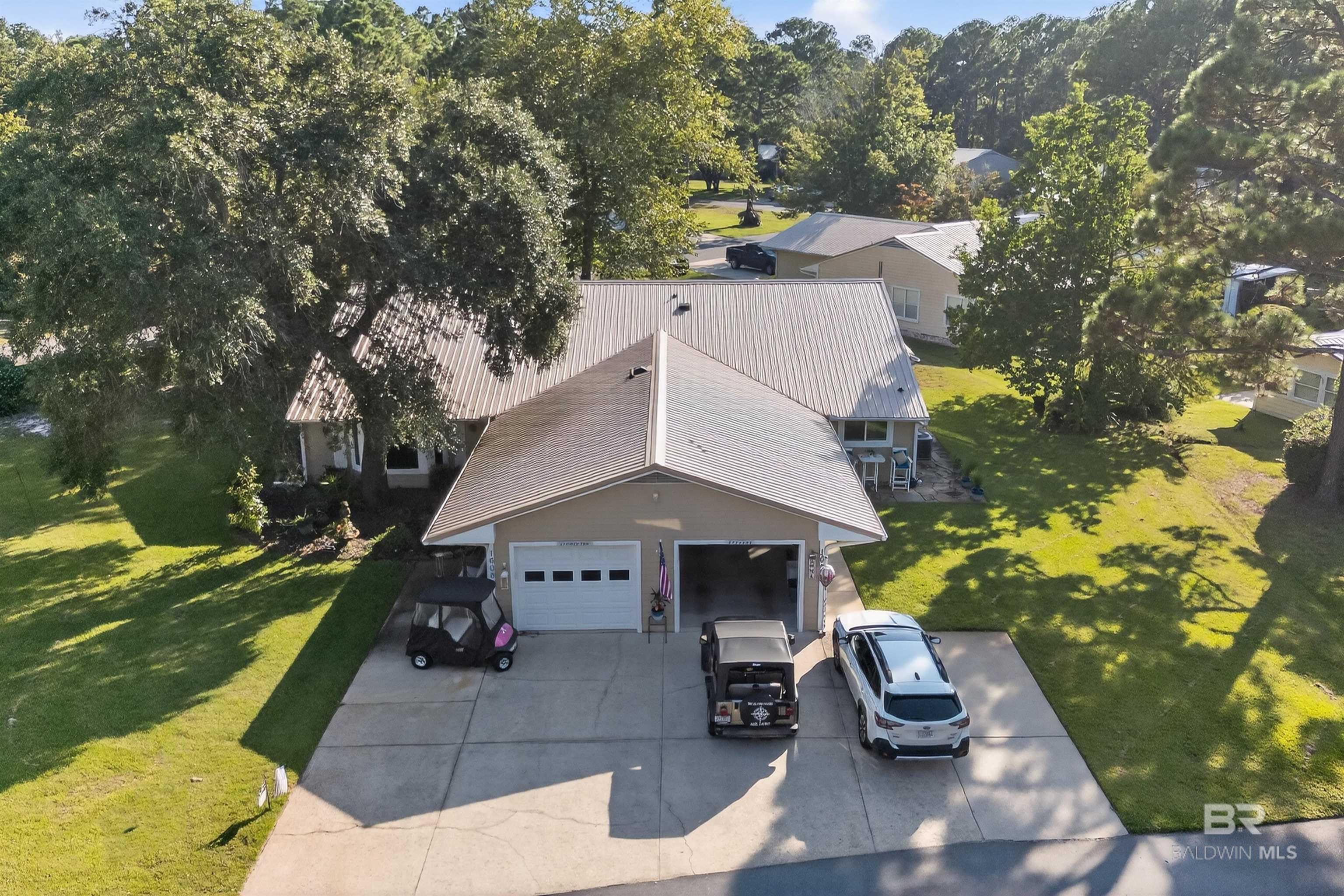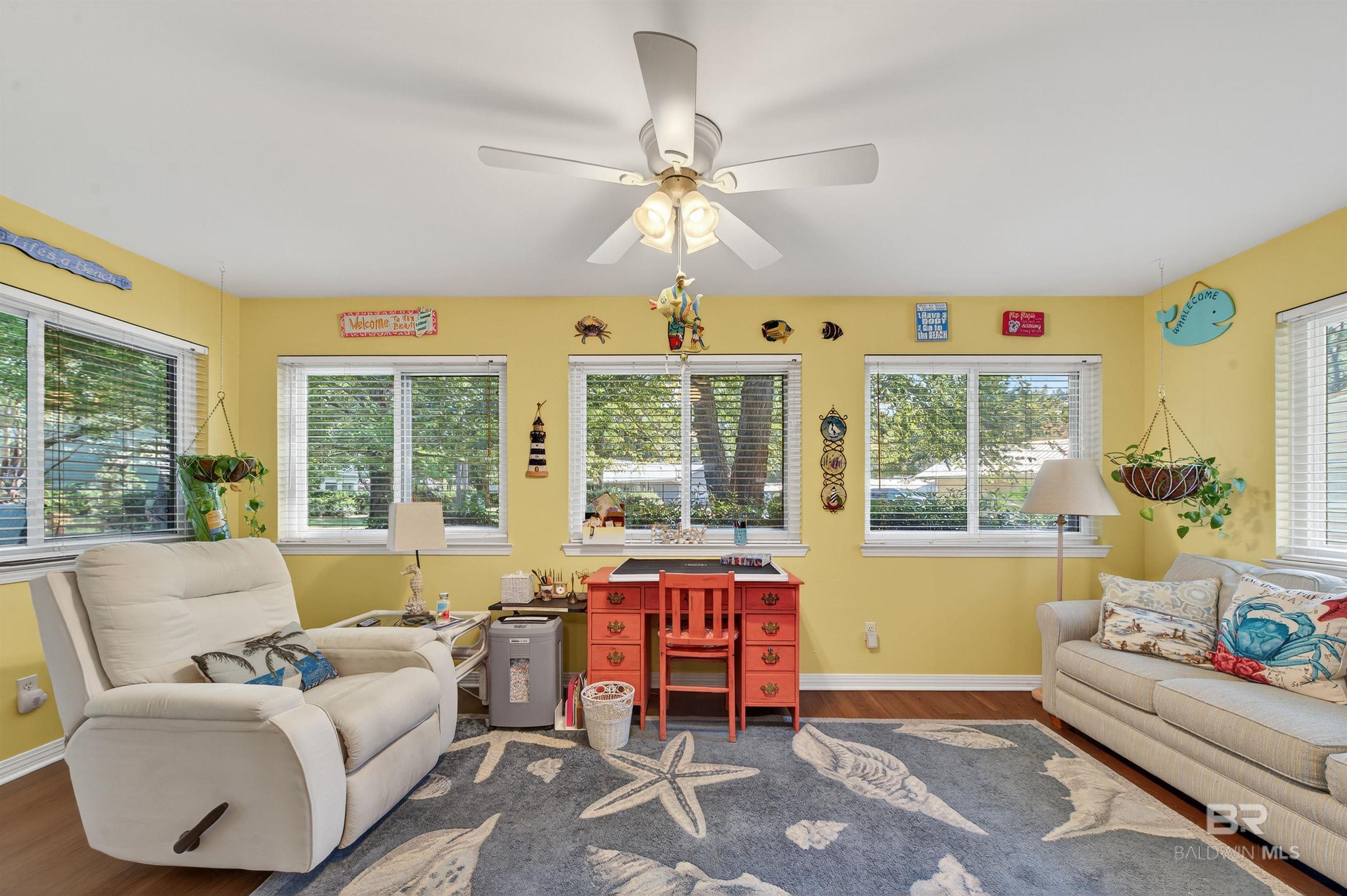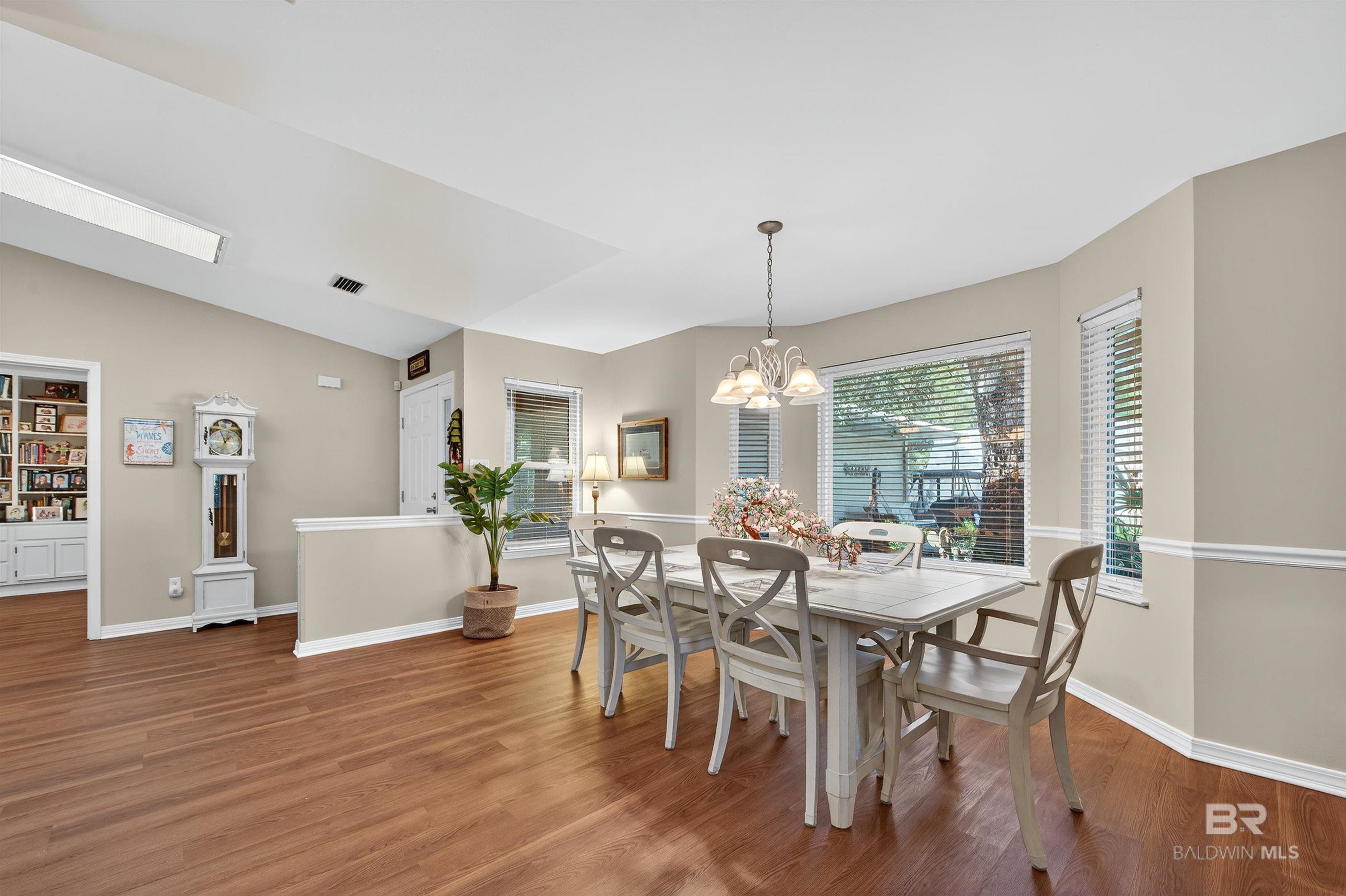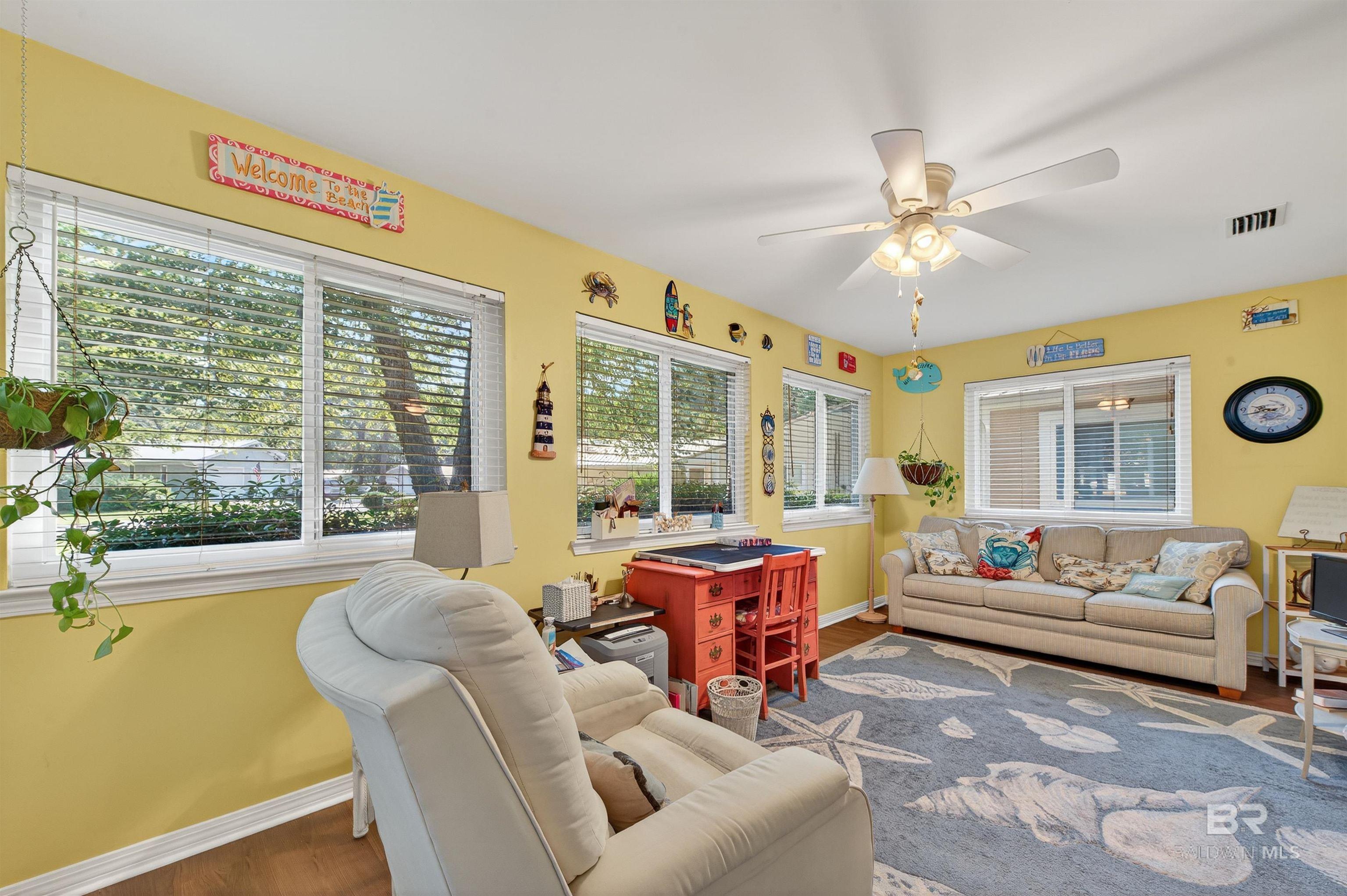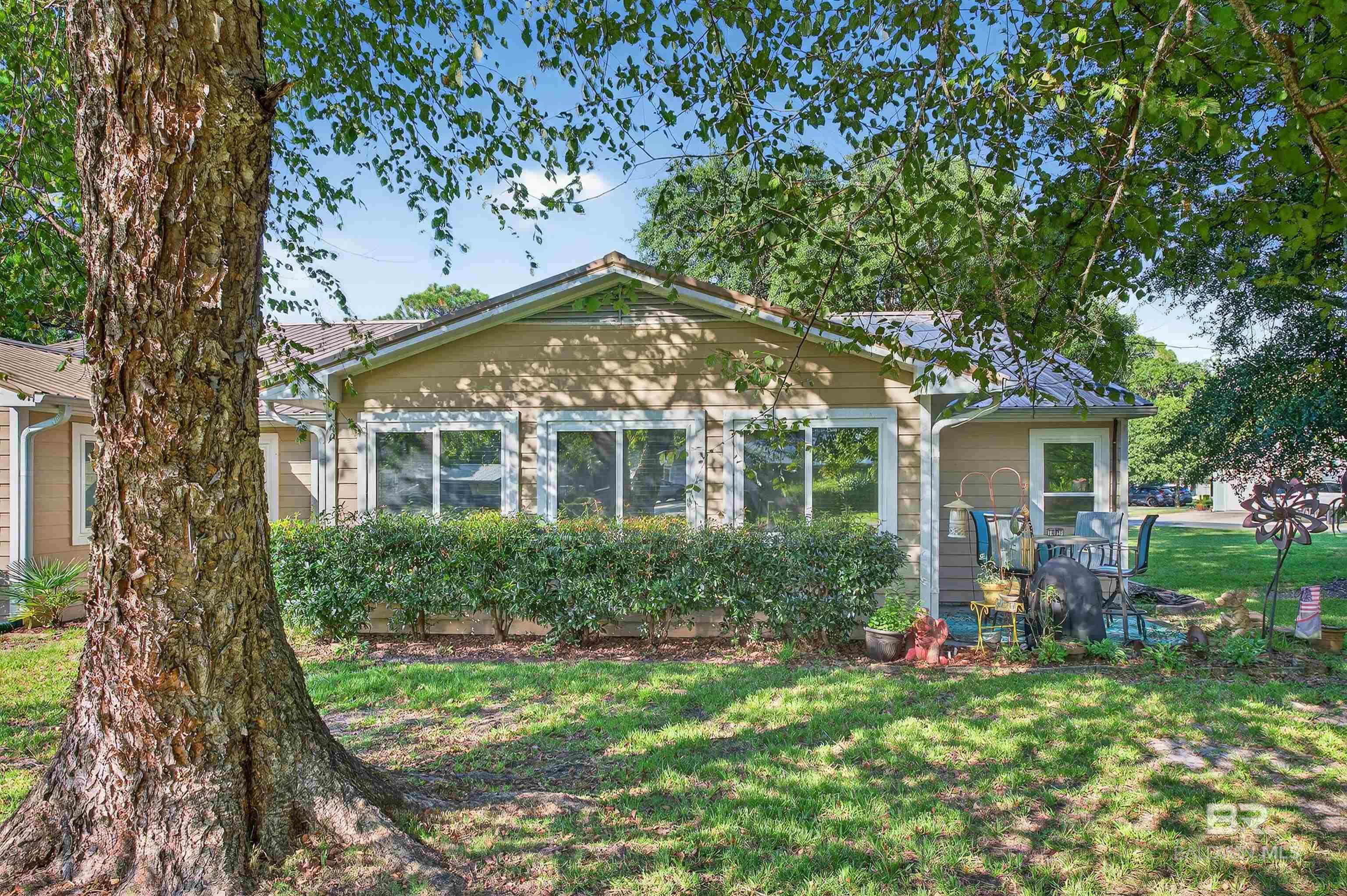 One of the largest homes in the popular 55+ community of Oyster Bay Village in Gulf Shores, this residence sits on a spacious corner lot shaded by beautiful mature trees. This unique home offers an open layout with a spacious dining area accented by chair railing, a large kitchen, and a split-bedroom design for added privacy. The large, enclosed Florida room is a standout feature. A Jack-and-Jill bath with a remodeled walk-in shower connects the 2 guest bedrooms. 2 utility rooms, custom cabinetry, and built-ins provide exceptional storage. Newer vinyl windows throughout. Residents of Oyster Bay Village enjoy great amenities, including a clubhouse with meeting space, exercise facility, heated indoor pool, hot tub, fishing pier, woodworking shop, and library. On-site boat/RV storage is also available. HOA services cover exterior maintenance, roof, pest control, lawn care, as well as cable, internet, water, sewer, trash, and common area maintenance—providing a truly maintenance-free lifestyle. Convenient location: bike straight from your front door to explore Gulf State Park’s nature trails, stroll under Spanish moss-draped live oaks, or pedal to the beach for a relaxing afternoon by the shore. Dining, shopping, medical facilities, and golf are all just minutes away, with access to both the Gulf and the Lagoon. With an acceptable offer, some of the furnishings may convey. Buyer to verify all information during due diligence.