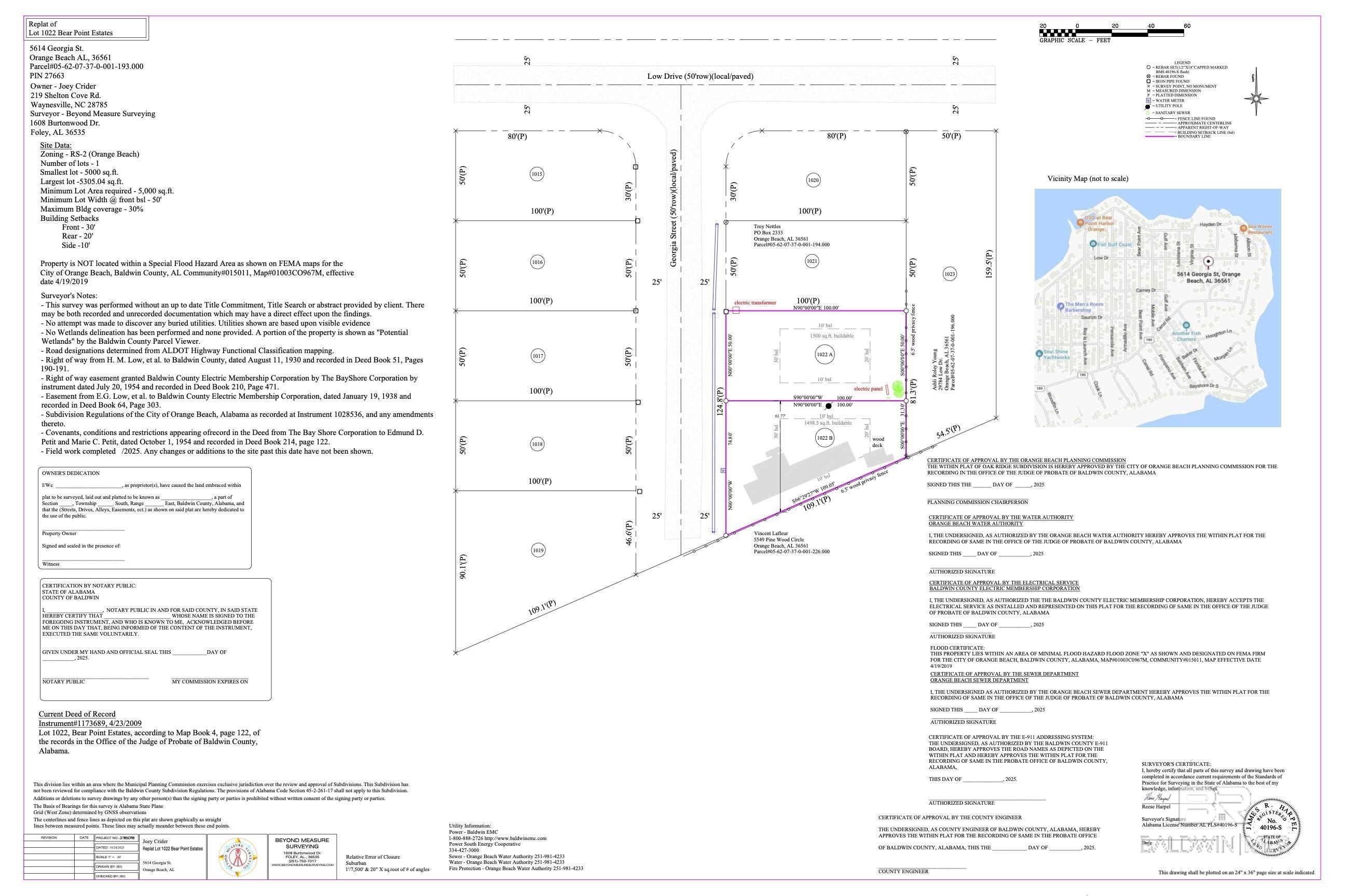 This property offers a rare opportunity to own in one of the most desirable areas of Orange Beach. This listing represents one of two lots (LOT 1 in the photos) being created from the original parcel. The seller is in the process of having the property professionally surveyed and subdivided into two separate parcels. The lot size is approximate! We will have a new survey soon. Please reference MLS: 386322 for details on the adjoining lot. The adjoining lot also has a mobile home. Located within the highly sought-after Bear Point community, this homesite is just a short golf cart ride away from local favorites such as Avenue Pub, OSO Restaurant + Bar, and Bear Point Marina. You’ll also enjoy convenient golf cart access to public beach areas, making it easy to spend the day on the water or relax along the beautiful Gulf Coast shoreline.Owners have the option to join the Bear Point Civic Association for only $350 per year, which grants access to desirable community amenities including a fishing pier, private beach area, playground, BBQ and picnic spaces, community events, and a private boat launch—the perfect way to experience the true coastal lifestyle.Adding even more value, this property is not located in a flood zone, providing both peace of mind and potential savings on insurance. With its prime location, development flexibility, and proximity to the area’s most popular restaurants, marinas, and entertainment, this is an outstanding opportunity to build your dream home or invest in the heart of Orange Beach’s most vibrant coastal community. Buyer to verify all information during due diligence.