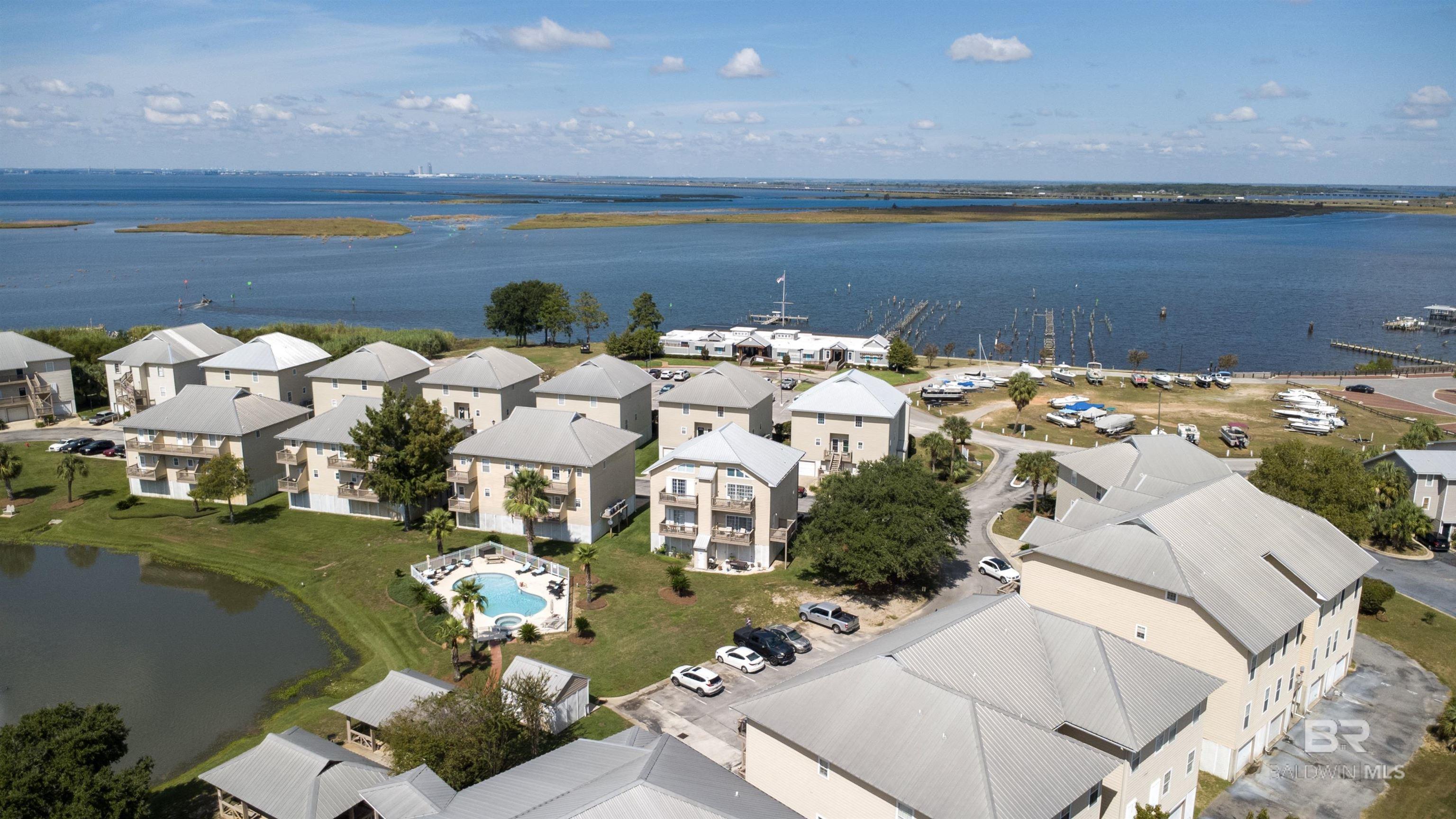 Welcome to your slice of paradise on beautiful Mobile Bay! This 2 bed/ 2.5 bath condo is the perfect blend of comfort, convenience, and coastal charm - complete with breathtaking sunset views from one of your private balconies. Step inside from your private elevator that brings you directly from the garage to the main living level. You'll love the bright, open floor plan filled with natural light and water views. The kitchen features Corian countertops, new stainless steel stove and microwave (2022), and flows seamlessly into the dining and living areas - perfect for entertaining. Also, on the main level is the second bedroom with its own private bath plus a 1/2 bath for your guests. Upstairs, you'll find the primary suite includes a spacious bathroom with a soaking tub, separate shower, 3 large closets, and dual vanities. There is also a laundry room and balcony overlooking the bay - an ideal spot for morning coffee or evening sunsets. This move-in ready condo offers wonderful community amenities including a pool and hot tub, gazebo, grilling area, and pier for enjoying the bay breeze. Located within walking distance to The Waterfront restaurant, this property offers the best of Daphne's relaxed coastal lifestyle - beautiful views, easy access to the water, and a low-maintenance home you'll love coming back to. This unit is currently in a rental program earning $1,650/ month. Schedule your private showing today! Buyer to verify all information during due diligence.