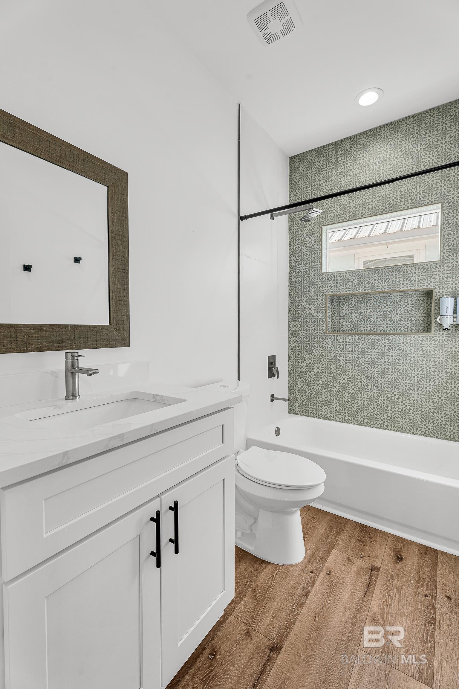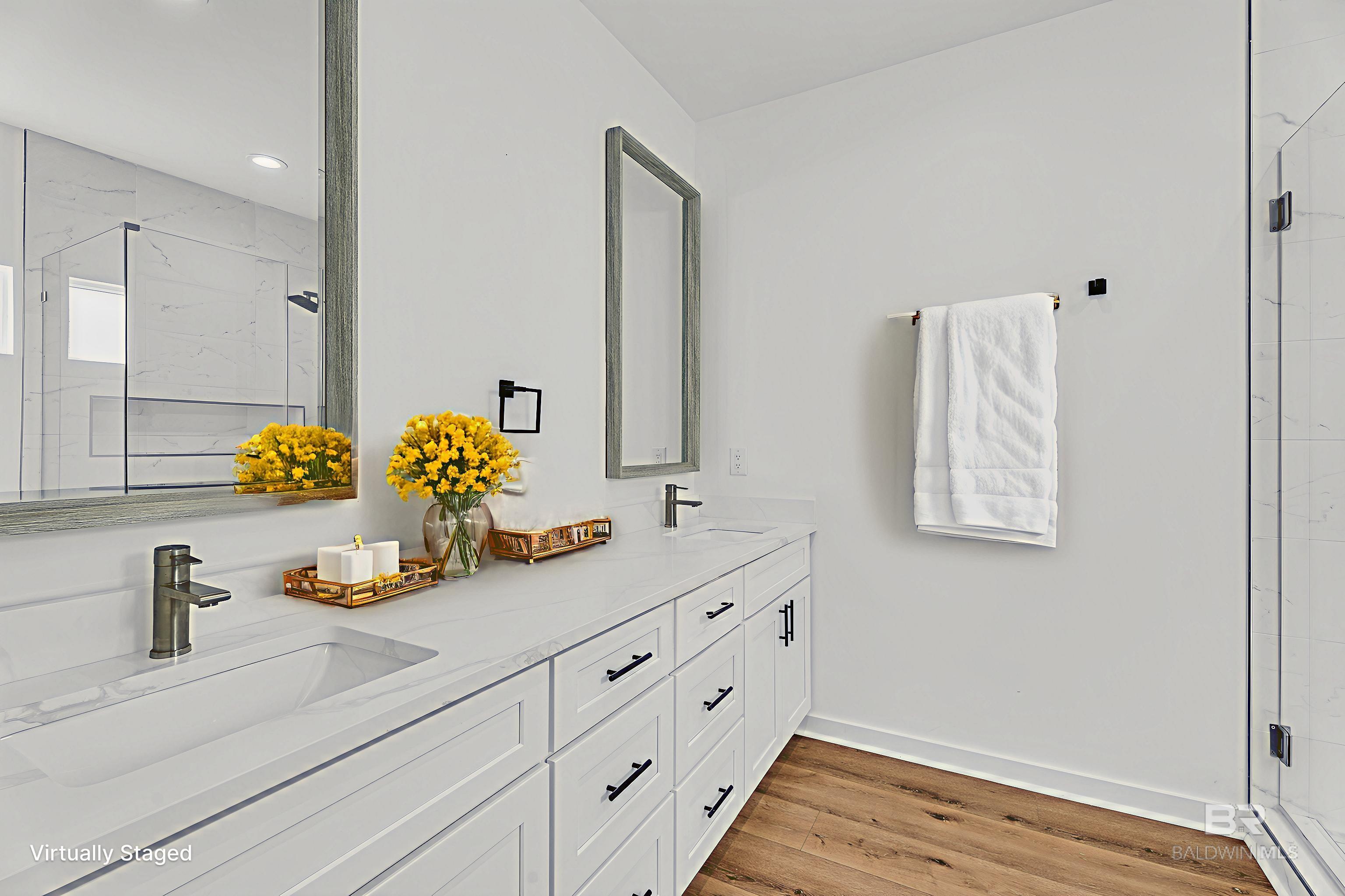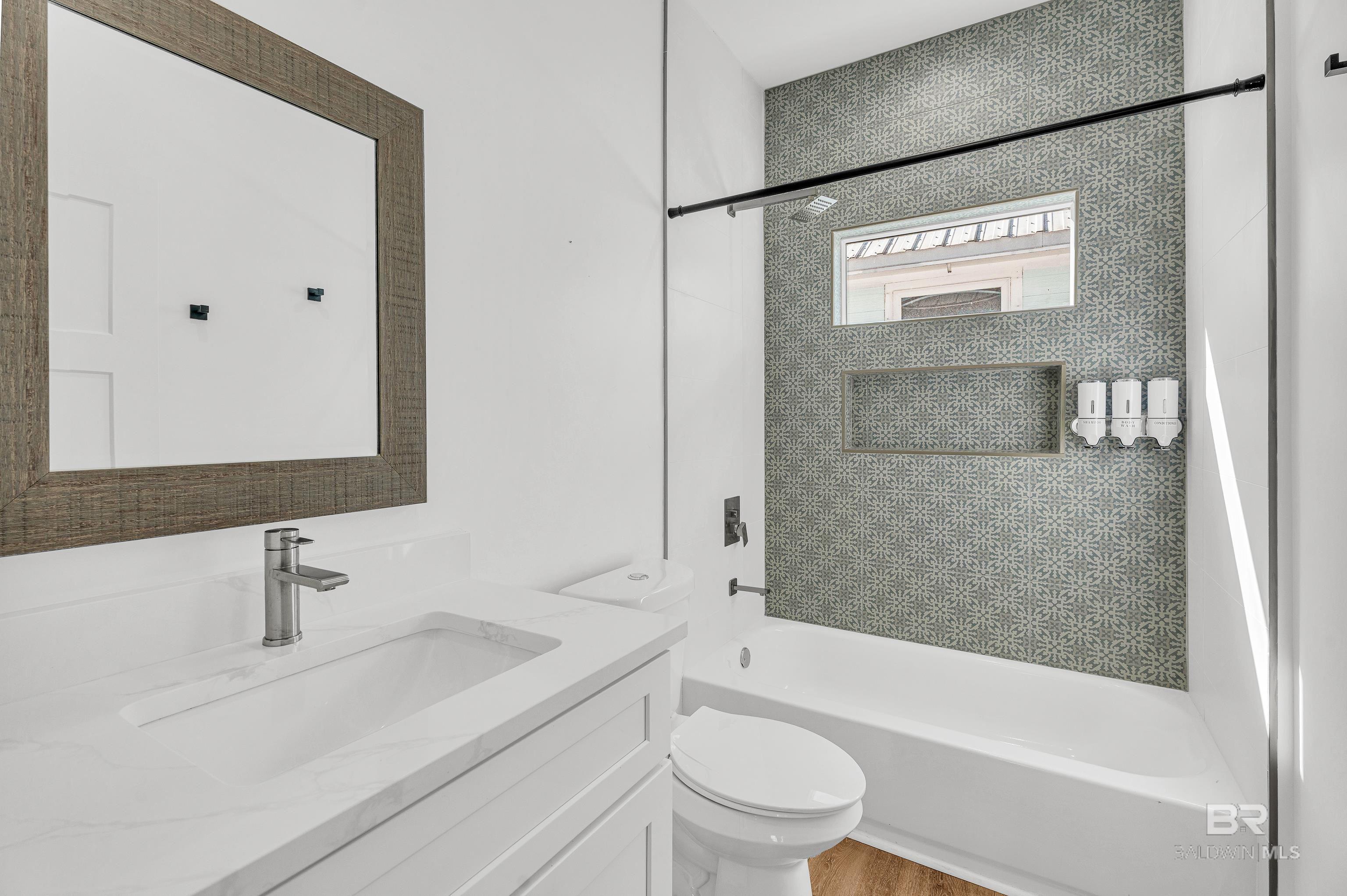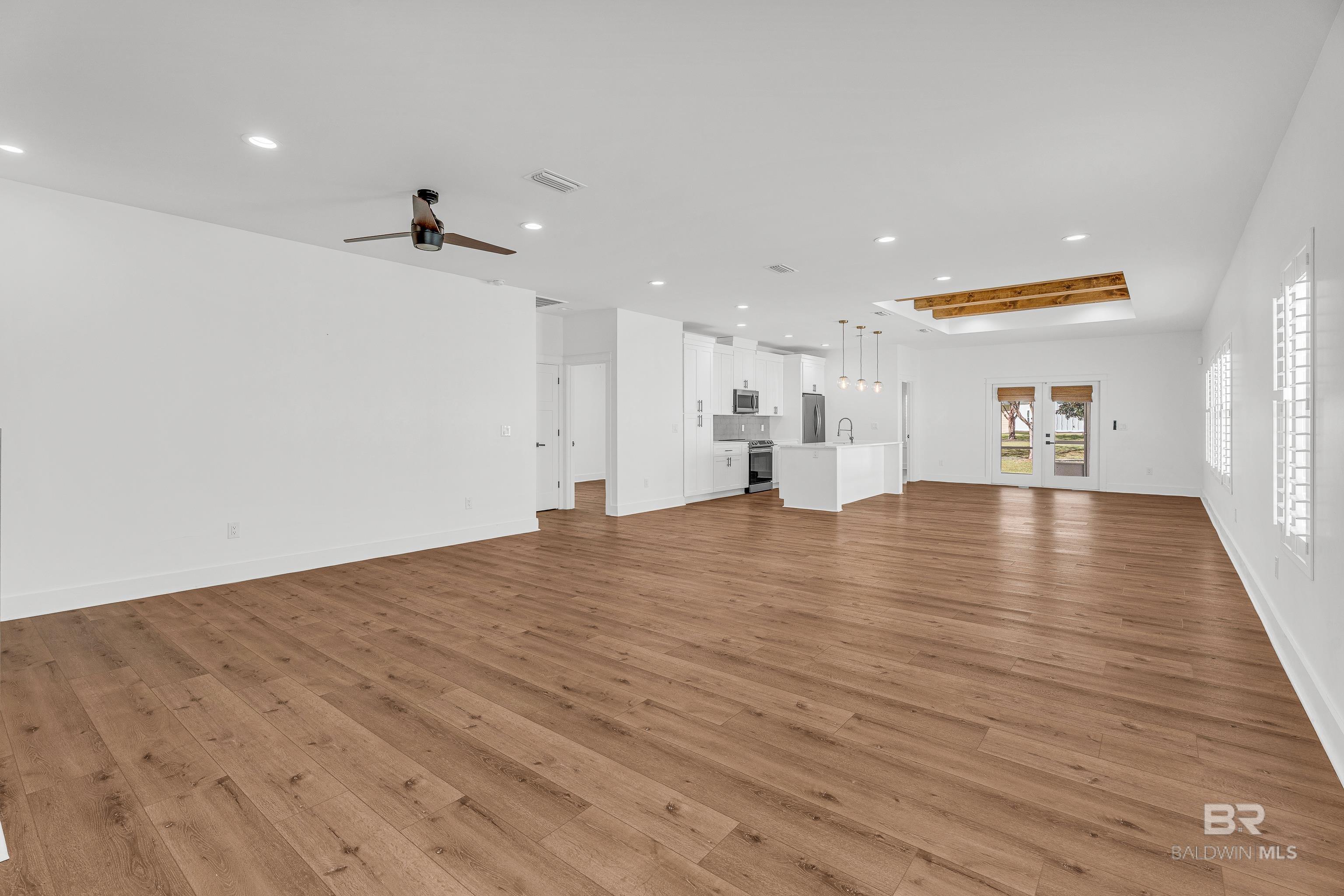 Experience the perfect blend of comfort, style & opportunity in this stunning 3BR/2BA GOLD FORTIFIED Beach-Style home in Foley, just 7 miles from the Gulf Shores beaches. Whether you're dreaming of a peaceful coastal retreat, a full-time residence, or a smart vacation rental, this property checks every box. Step inside to an inviting open floor plan with luxury vinyl flooring throughout—NO carpet! Recessed lighting & ceiling fans in every bedroom & the living room create a bright, breezy feel. The living room features built-in shelves, perfect for showcasing your treasures, plus a modern electric fireplace with a remote to change colors & add warmth or ambiance. The kitchen is a showstopper with a large island & farm sink, quartz countertops, tiled backsplash, & soft-close drawers. The dining room boasts a tray ceiling with wood beams, adding coastal charm. Retreat to the primary suite with a trey ceiling, a dual-entry walk-in closet, & an oversized tiled spa shower. Enjoy thoughtful touches like smooth walls & ceilings, wood-shelved closets, & Plantation Shutters, adding timeless elegance. Even the Laundry room has a touch of elegance, with a pocket door, window & quartz counter & sink, conveniently located off the garage. The Hardie Board exterior & metal roof adds durability & coastal appeal. Step out to the spacious screened-in porch, where peace & quiet abound, perfect for a cup of coffee or entertaining friends, as you look over lush green space with walking trails lined with crepe myrtles & magnolias. With SHORT-TERM RENTALS allowed, this home offers flexibility—generate income when you’re away or savor the quiet coastal lifestyle year-round. Coastal living, smart investing, & everyday comfort all come together here. Located minutes to Gulf Shores & Orange Beach Entertainment, Restaurants & beaches, with easy access to hospitals, airports. TVs, refrig. W/D to stay. Buyer to verify all information during due diligence.