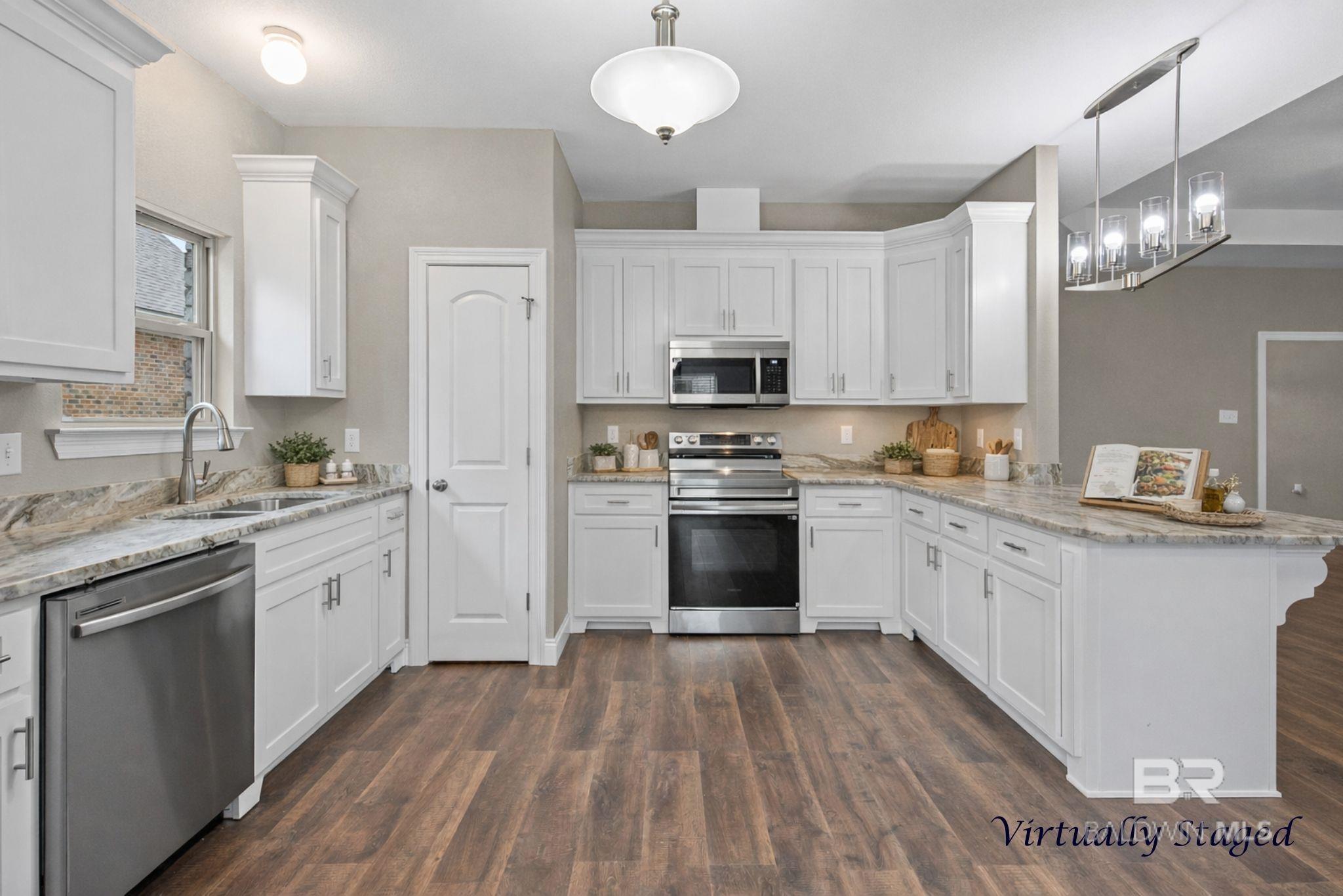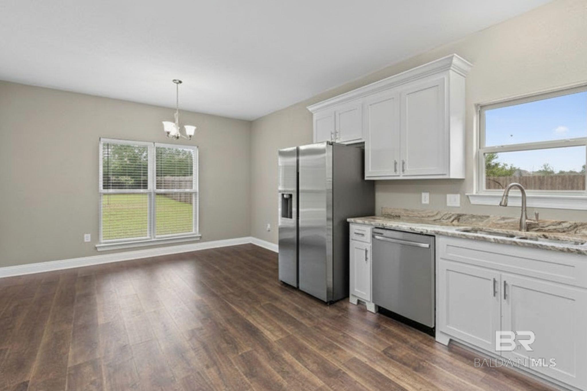Less than 10 minutes from downtown Fairhope, this newly constructed home offers a functional split-bedroom floor plan and convenient access to many of Baldwin County’s destinations. Gulf Shores is approximately one hour away, the Weeks Bay boat launch is about 20 minutes away, and the Fairhope Pier is roughly 10 minutes from the property. The home is zoned for Fairhope schools (buyer to verify). The interior features a private primary suite with tray ceilings, two walk-in closets, a separate shower, and a garden tub. Additional bedrooms also include walk-in closets, and a dedicated office or study off the family room provides flexible use. The kitchen offers ample cabinetry, pantry storage, and includes a refrigerator. A side-entry garage enhances curb appeal, and the home features a fortified roof. The home was constructed for the current owner and is being sold by the owner, not the builder. No builder warranty will convey. This property combines practical design, and everyday conveniences in the Fairhope area. Buyer to verify all information during due diligence.