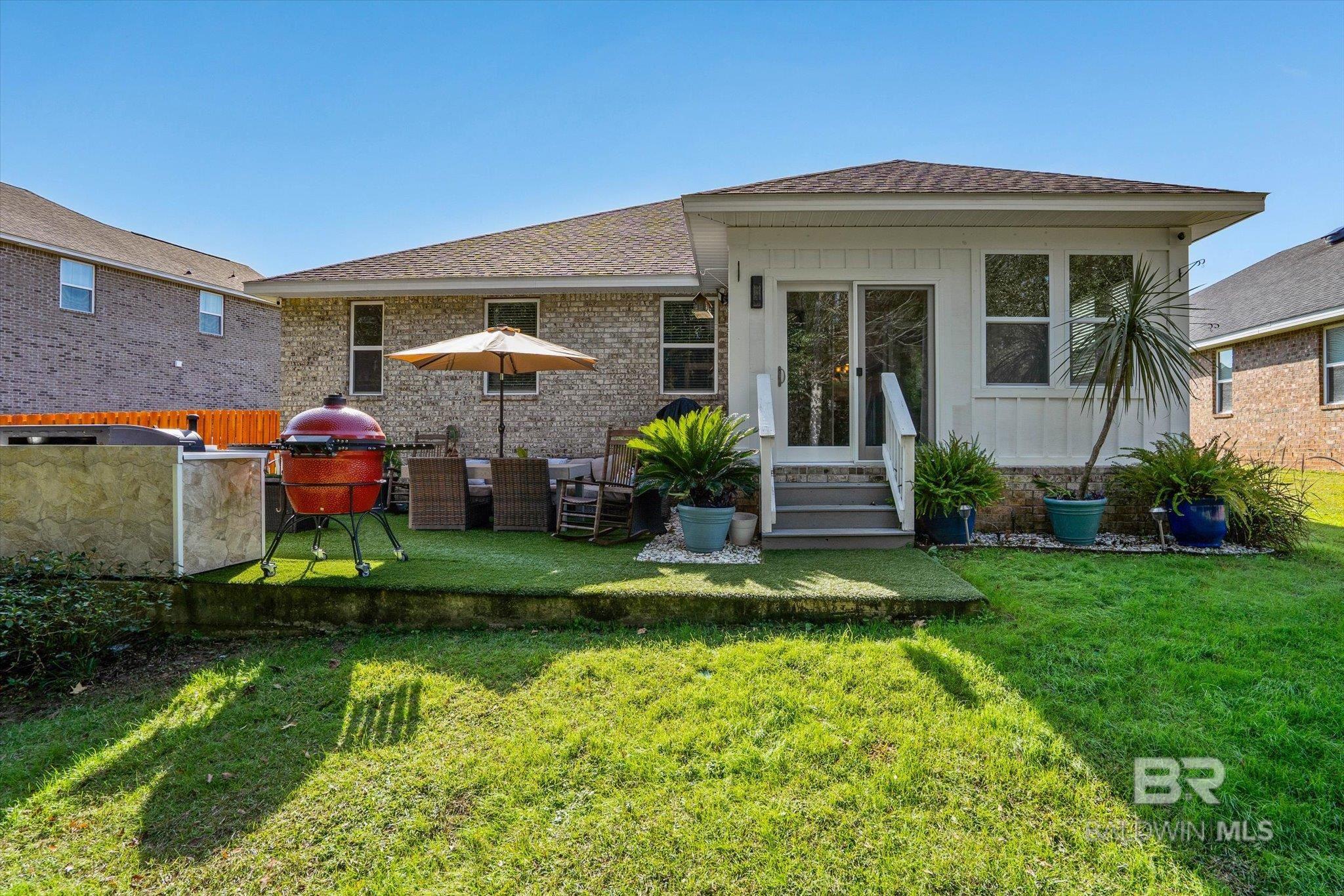 MOTIVATED SELLERS! Checkout this beautifully maintained, Gold Fortified home located in Wind Creek Subdivision in GULF SHORES! Pride of ownership can be found throughout this 3-bedroom 2-bath home which has an additional flex room that offers the perfect blend of comfort, quality, and thoughtful upgrades. The main living areas feature light-colored ceramic wood-grain tile, creating an inviting flow that’s low-maintenance and very durable. One of the standout features of this property is the heated and cooled sunroom addition which was professionally built in keeping up the GOLD FORTIFIED CERTIFICATION. Just outback, you can easily entertain with an outdoor cooking that's sure to not disappoint. Located between Highway 59 and the Beach Express, you can be shopping in Foley or sitting on the sugar-white Gulf Shores beaches in under 10 minutes. Whether commuting, dining, or enjoying everything the Gulf Coast offers, this location helps to keep life convenient and connected. The home backs up to the HOA's property so NO neighbors behind you! There's a community pond and a large open area perfect for walking the dogs, playing with the kids, or enjoying the sunset. Come experience a home that’s been truly cared for and loved—and now ready for you. Buyer to verify all information during due diligence.