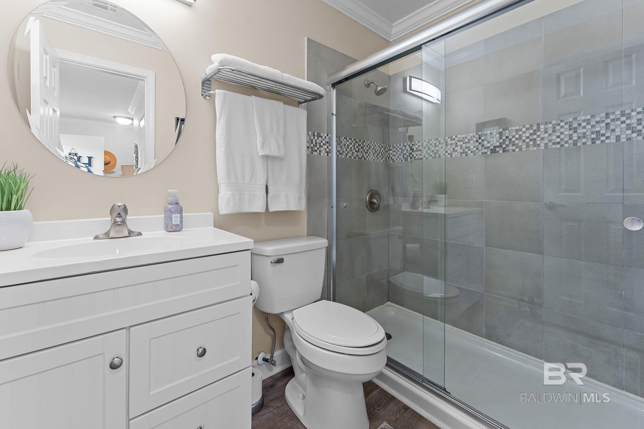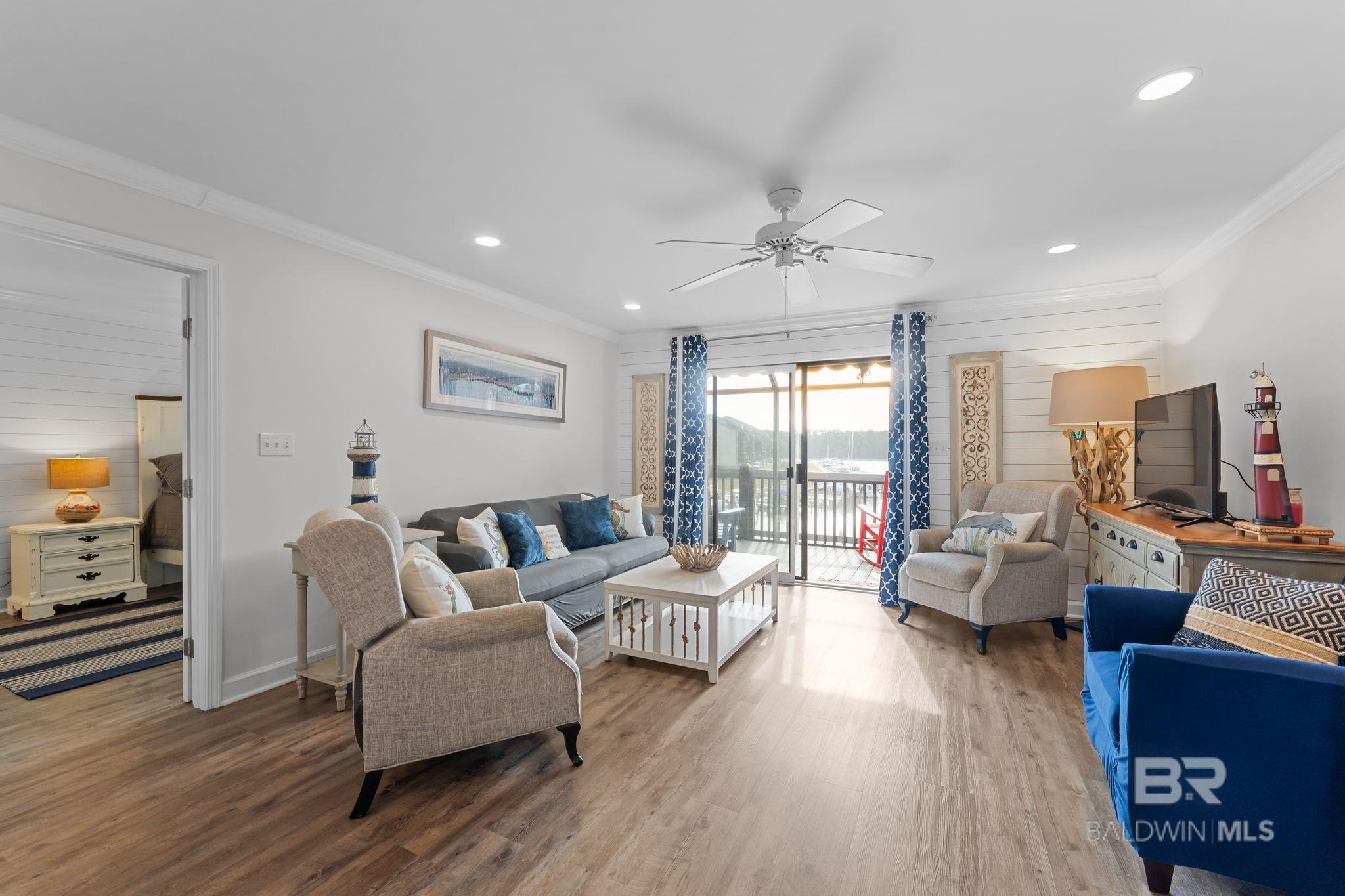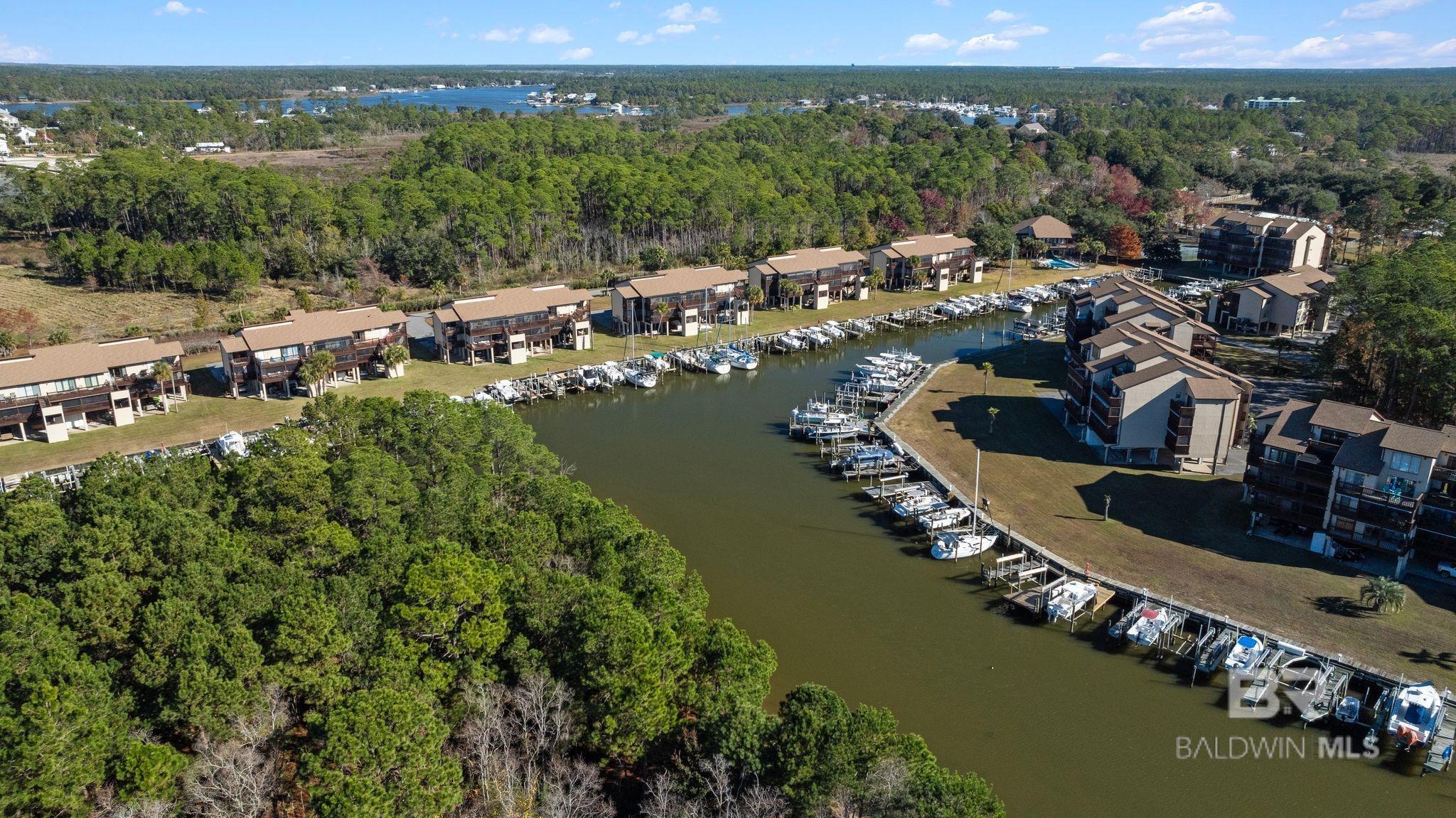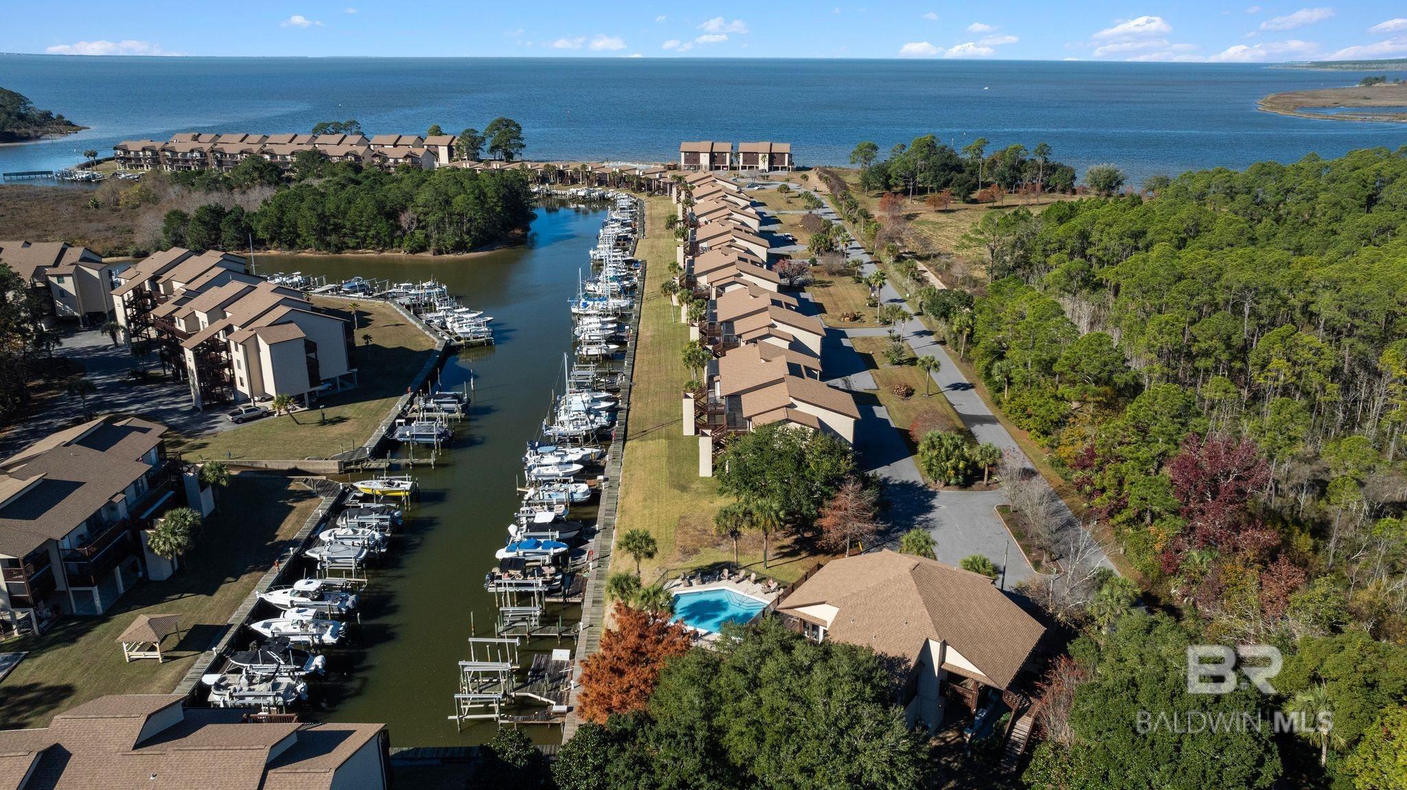 Dock your boat and stay a while! This premier Sailboat Bay residence is a true "Boater’s Paradise. Welcome to this furnished, top-floor 2-bedroom, 2-bath condo in a well-maintained 6-plex offers the ultimate waterfront coastal lifestyle. Remodeled in 2018, the kitchen features stainless steel appliances, granite countertops, and a classic white subway tile backsplash. Luxury vinyl flooring runs throughout, and both bathrooms have been completely upgraded. Coastal shiplap accents add character to the living room and primary suite. Major updates include a brand-new HVAC system installed in 2025 and PEX water lines in 2018. Step onto the screened-in patio to enjoy sweeping views of the marina and the Intercoastal Waterway, complete with a retractable awning. This unit includes its own private boat slip just outside the building with power, water, and a 10,000-lb boat lift, plus two storage closets—one on the back deck and one on the ground floor. Sailboat Bay is a gated community offering resort-style amenities including two saltwater pools, a kiddie pool and spa, fitness center, clubhouse, tennis courts and boat storage. HOA dues cover water, Wi-Fi, cable, trash, sewer, exterior insurance, and exterior/grounds maintenance for a truly worry-free lifestyle. Located just minutes from prime fishing on Bon Secour River, Bon Secour Bay, and Mobile Bay. Short-term rentals are not permitted. Buyer to verify all information during due diligence.
