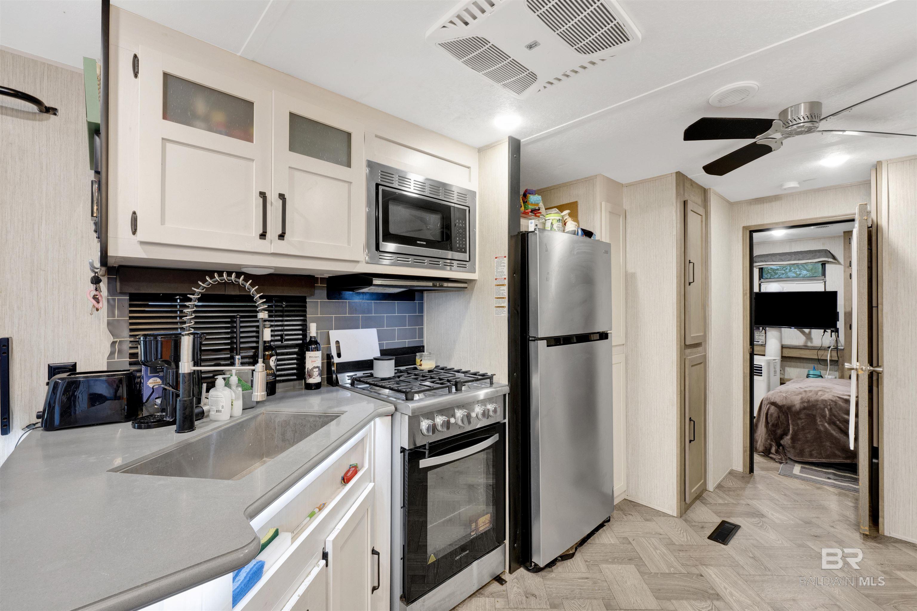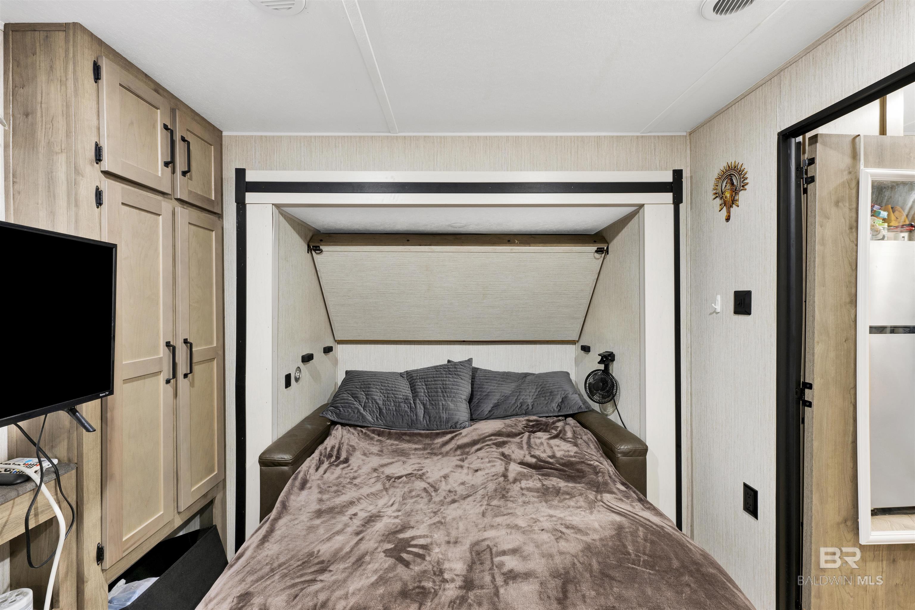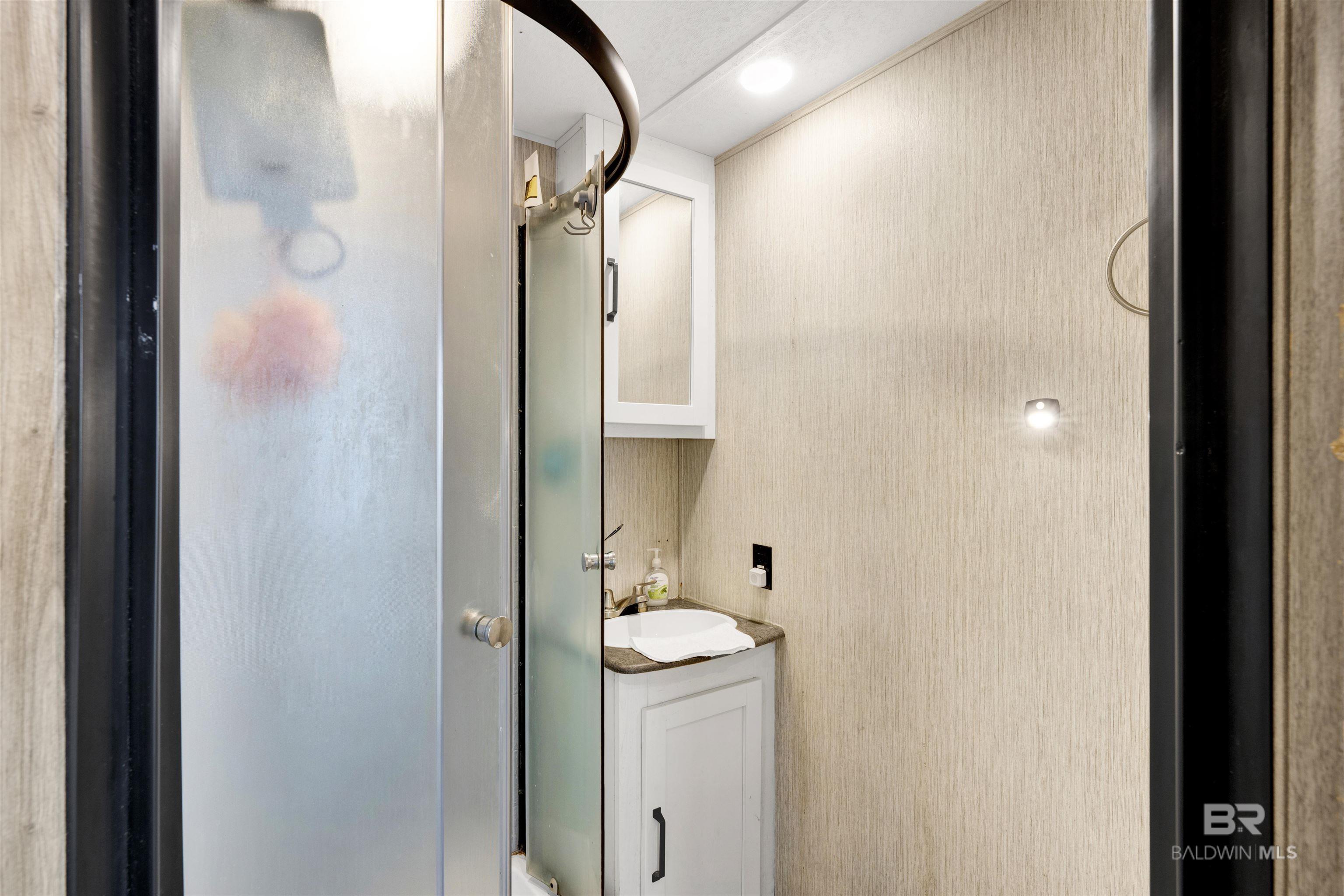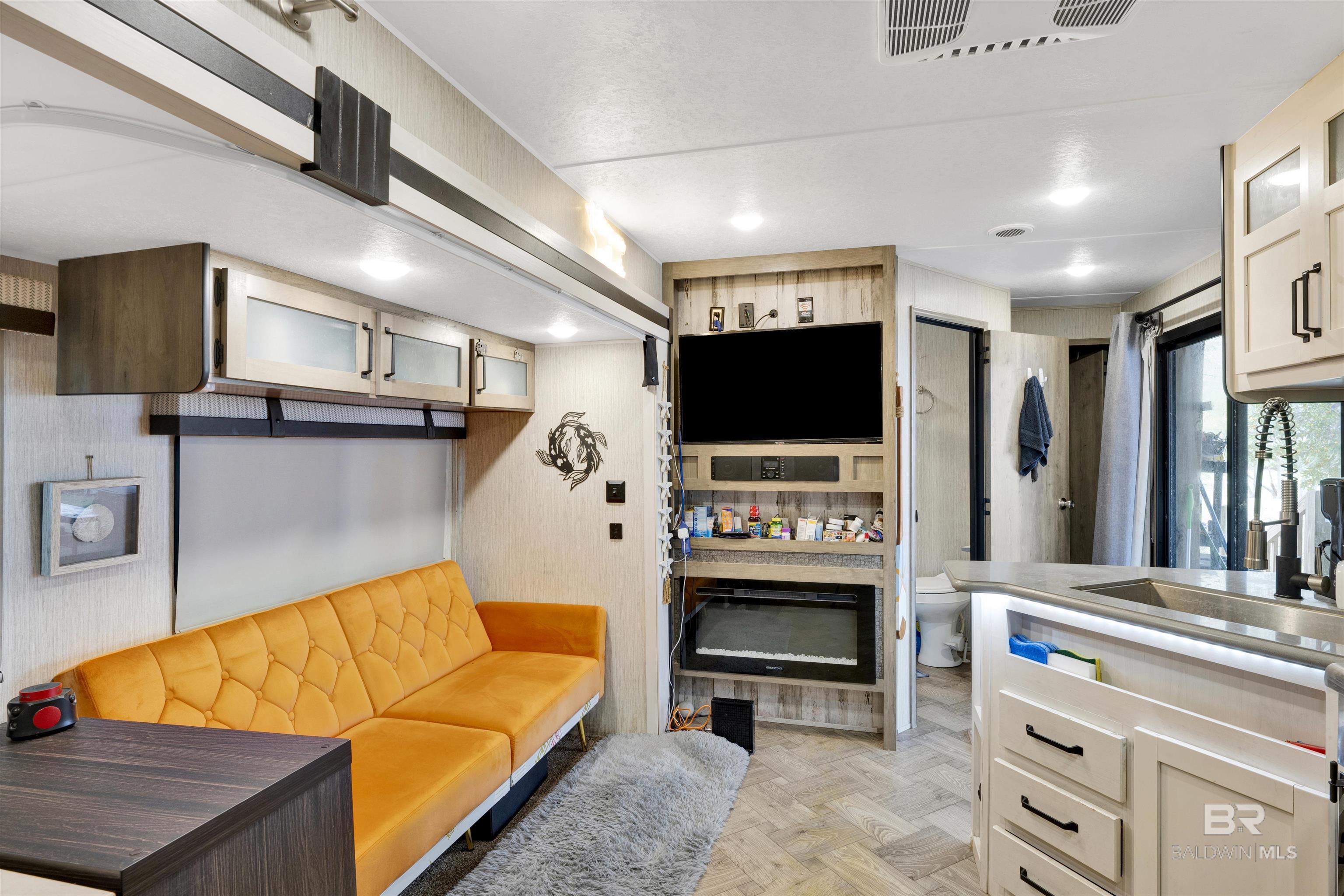 STUNNING SUNSET VIEWS OVER THE WATER RIGHT FROM YOUR PORCH! Not your normal RV lot and lots in this subdivision don't come up often! Move-in ready with direct views of the Bon Secour River from the spacious 30' x 14' covered deck. This property features a 2021 Puma RV (approx. 450 sq. ft. living area) offering 2 bedrooms and 1.5 baths, positioned on one of the most desirable lots—Lot 12 on Pirate Circle. Added space to allow for 8 guests. The 108' x 38' lot showcases mature palms, live oaks, and fruit trees, plus 50-amp service, city utilities, and garbage service. Ideal for weekend escapes or investment use, with both short-term and long-term rentals permitted. Located half a mile from the new $4M public boat launch at County Road 6 and just 6 miles from Gulf Shores Public Beach. Vacant and easy to show today. Buyer to verify all information during due diligence.