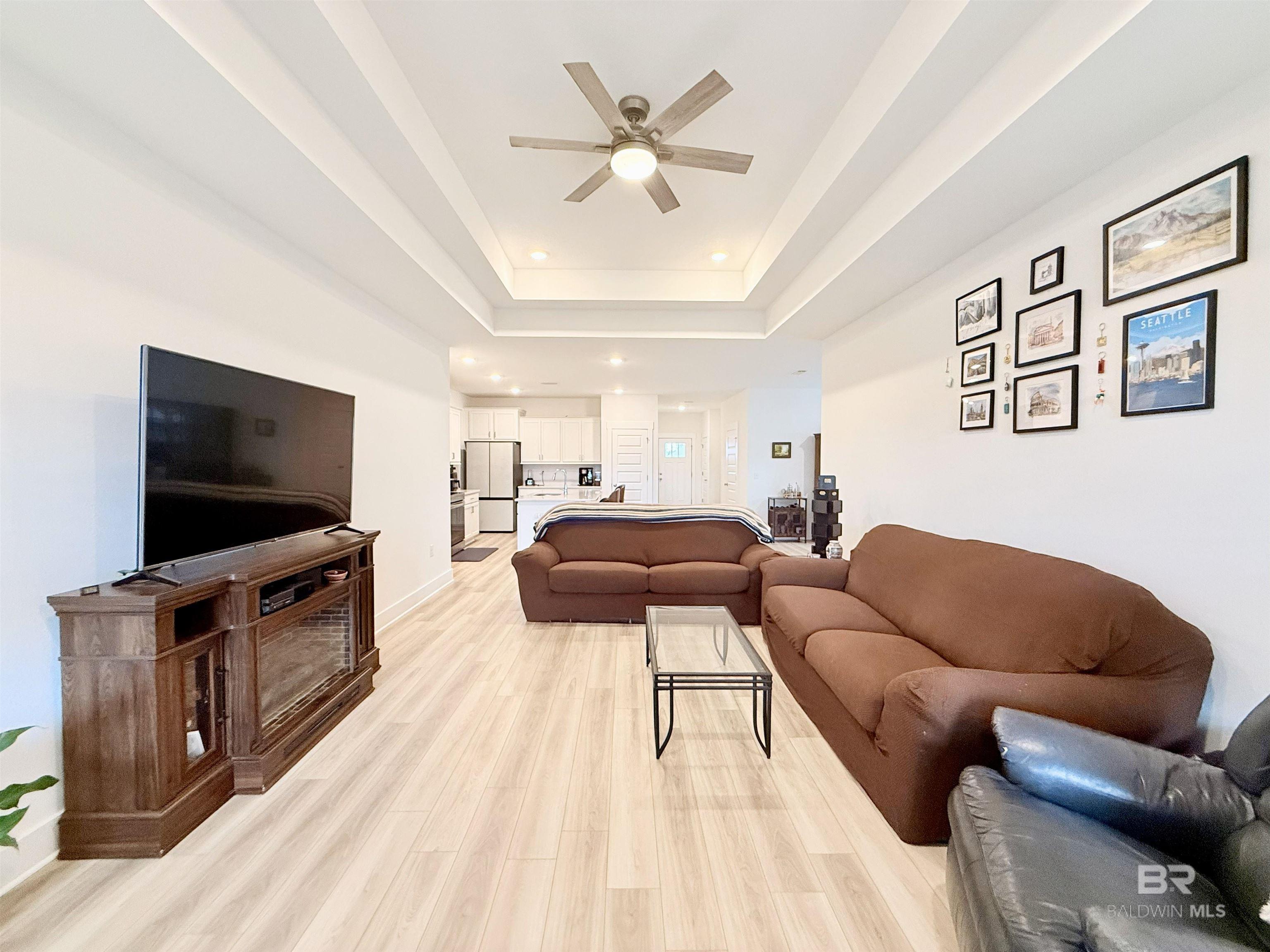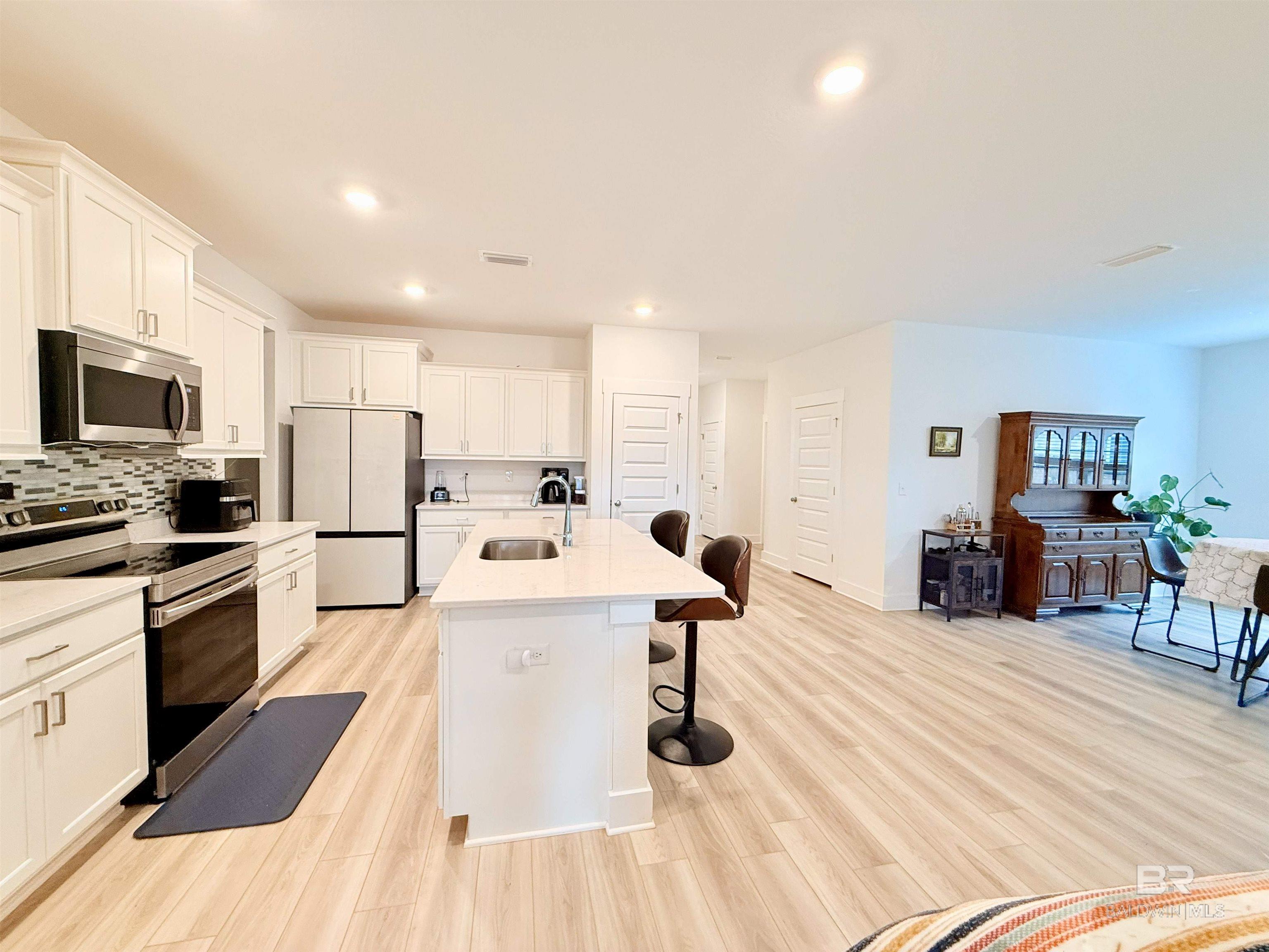 MOTIVATED SELLER offer up to $10,000 in seller concessions with an acceptable offer. This stunning Craftsman-style home features a functional split floor plan and is ideally situated for easy access to I-10, as well as nearby Mobile, AL, Pensacola, FL, Tanger Outlets Foley, OWA, and the beautiful white sandy beaches of Gulf Shores. The exterior boasts four-sided brick, complemented by a two-car garage for maximum convenience. As you enter, a welcoming office awaits on your left, enhanced by a large window that floods the space with natural light. A convenient half bath is just steps away, adding to the home's functionality. The kitchen seamlessly overlooks both the Great Room and dining area, offering the perfect open-concept layout for entertaining. Enjoy the elegance of quartz countertops throughout the home. Indulge in the 9-foot ceilings that create an airy feel, while the tray ceilings in the Great Room and Primary Bedroom add a touch of sophistication. The en-suite bathroom features a separate tub and shower, along with a private water closet for added privacy and convenience. The private backyard is fully fenced, providing a secure space for children and pets to play. Two side gates offer easy access. Enjoy relaxing on the covered patio, equipped with electrical outlets and a cable outlet for your TV, perfect for outdoor gatherings. Buyer to verify all information during due diligence.