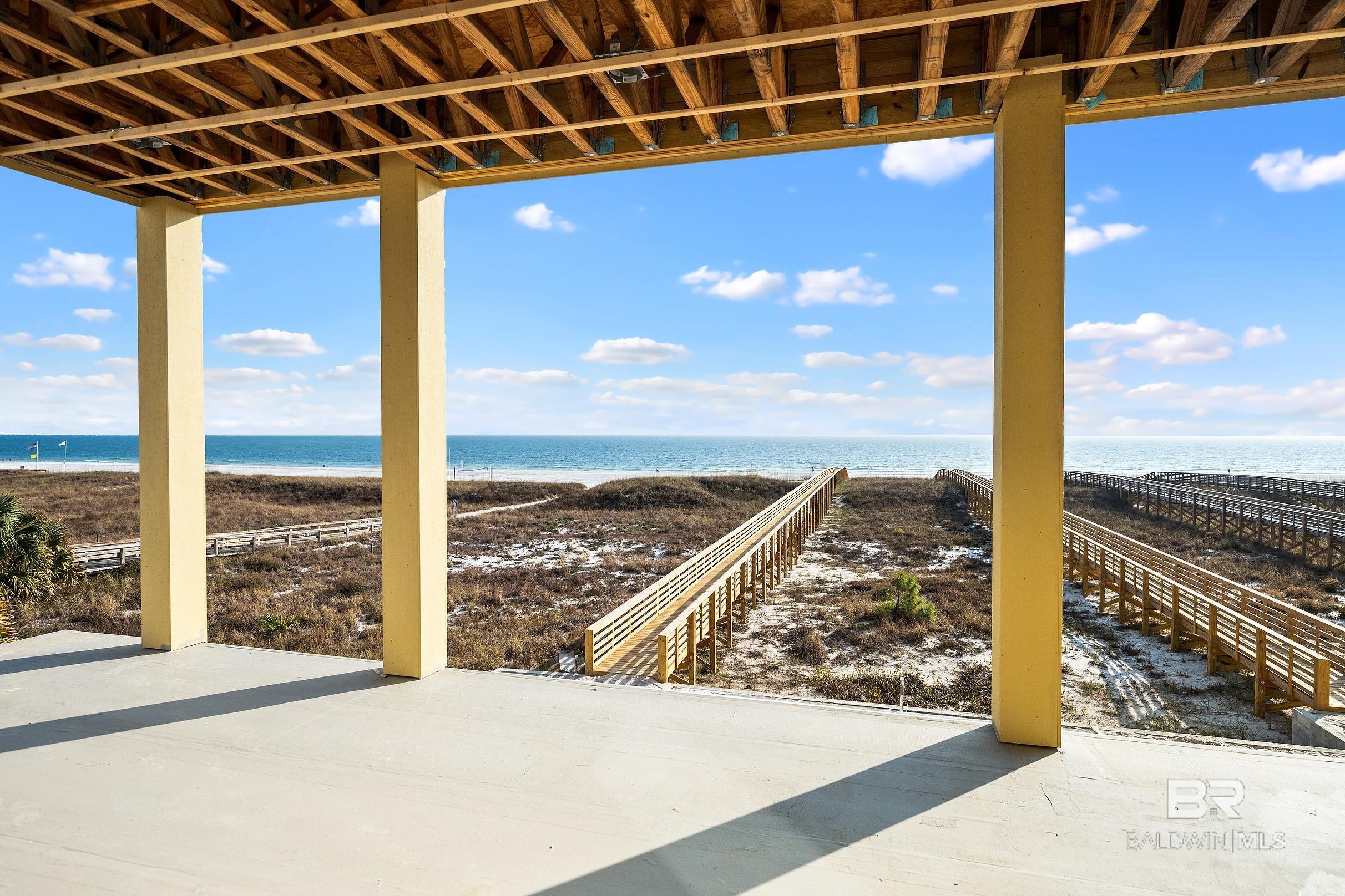 Luxurious New Home located in the Gorgeous South Beach OBA Gulf Front Subdivision. This Stunning Gold Fortified home features 6 bedrooms, 7.5 baths of gorgeous and luxurious upgrades and absolutely breathtaking Views of the Gulf of Mexico/America. A 12x20 Private Pool, Private Boardwalk, Outdoor Kitchen, Party Room, Outdoor Showers and Changing Rooms plus Storage closets are all located on the first floor. Take the elevator or the beautiful custom designed staircase to the second floor where you will find a Gourmet Kitchen featuring High End and Top of the line Appliances, 14' Island with a Quartz waterfall, tons of Beautiful Cabinetry and a walk-in pantry. The Living Room/Dining area features beautiful windows showcasing the gulf front views, gas fireplace, engineered wood flooring, wet bar with ice machine and wine cooler. The second-floor features 2 bedrooms with 2.5 baths. The primary bedroom is located on the 3rd top floor and features a gas fireplace, wet bar, large sitting area, large walk-in closet, safe, and walk out to your huge, covered balcony overlooking your beautiful pool, boardwalk and the beautiful white sandy beaches with sunrise and sunset views. Primary bath features lighted mirrors, separate tub, huge walk-in shower with beautiful tile everywhere. Three more bedrooms are located on the 3rd floor with each having their own full baths. Each and every room features custom lighting with out of this world chandeliers!!The developer has made every effort to maintain the beauty of this property and the wildlife surrounding it. There are 2 Large 14x27 Balconies, one for each level. The outdoor entertaining area is a homeowners dream area. There is a total of 8503 square footage which include 1981 sq ft of porches, 773 sq ft garage, 155 sq ft storage, 1295 sq ft Terrace and 4298 sq ft. of heated and cooled interior space. The Beautiful Home that was designed by renowned architect Sted McCullough is a one-of-a-kind private retreat! Buyer to Buye