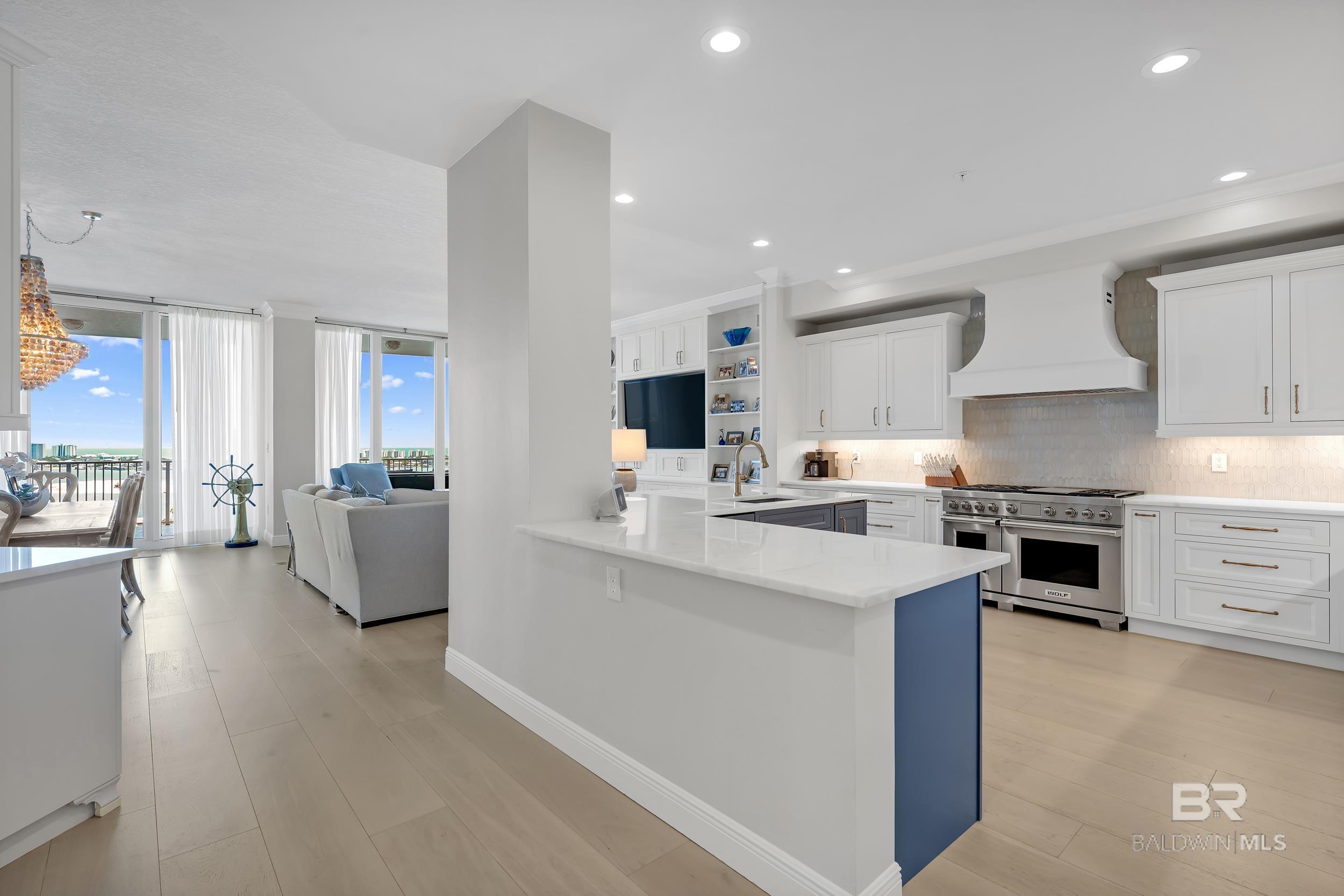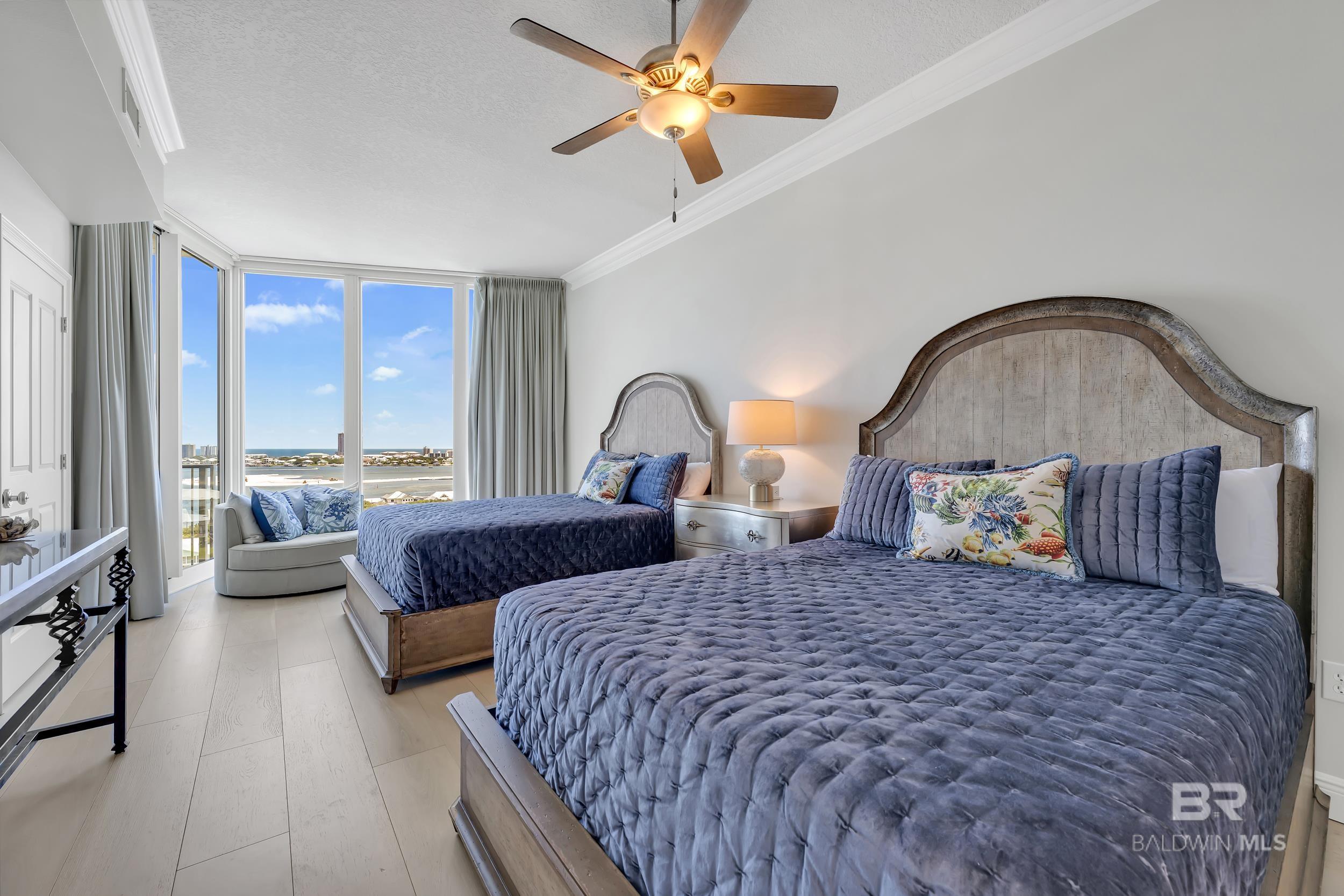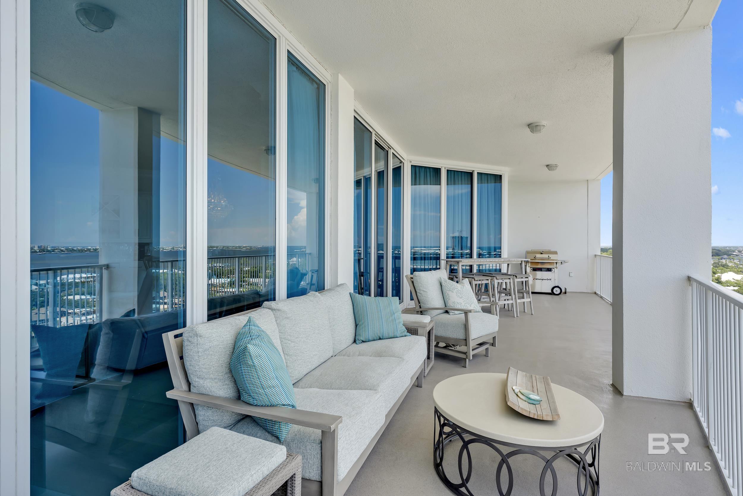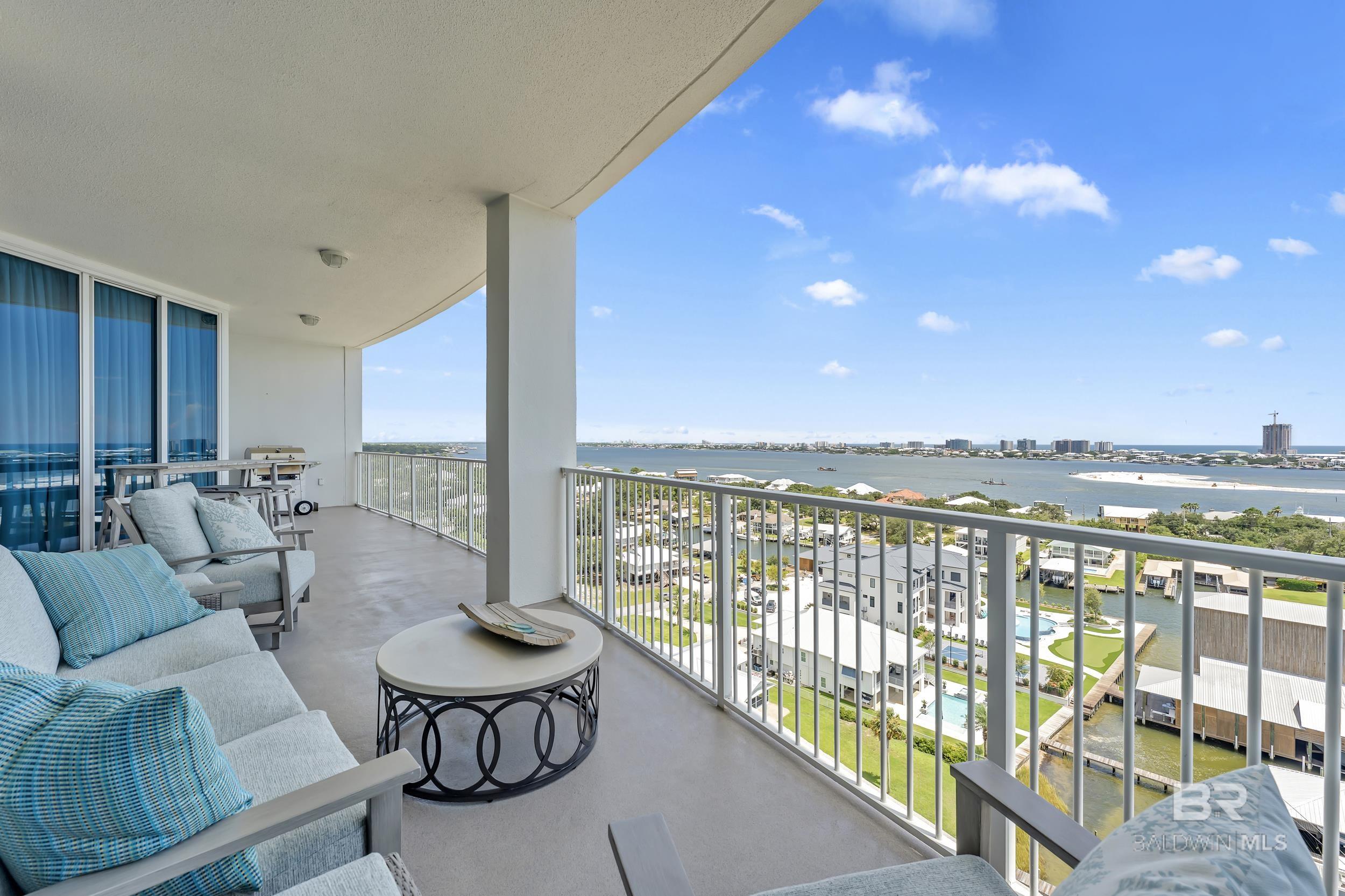 DON'T MISS OUT ON THIS RESORT-STYLE WATERFRONT COMMUNITY WITH MARINA AND DEEDED COVERED PARKING. Welcome to Bayshore Towers, located on the Gulf Coast in beautiful Orange Beach, AL. This gated community offers a wide range of amenities, including two pools, a fitness center, tennis/pickleball courts, lush landscaping, a community meeting room, ample parking, and a large marina to accommodate all your boating needs. This condo is a primary or second residence (no short-term rentals) due to its tranquil environment. Bayshore Towers sits on nearly 6 acres of beautiful waterfront property, which includes a private marina with deeded boat slips and three additional overflow slips that can be rented through the This 11th floor unit has floor-to-ceiling-impact rated glass throughout the main living area and both primary suites with panoramic views of Terry Cove, Perdido Pass, Bird Island, Robinson Island, Ono Island, and the Gulf of America. Both primary suites have balcony access with extraordinary views of the Gulf Coast. The beautifully redesigned kitchen features marble counters, all new appliances, including a 60” Liebherr refrigerator/freezer & Wolf 48” Dual Range, and new custom cabinets. There is ample entertainment in the spacious dining and living area with a custom-built entertainment center and custom-built bar. In addition, there is a second living/sleeping area or office space located off the foyer. Bathrooms feature tile floors and Quartzite vanities throughout; both primary baths include soaker tubs and custom-built showers. Custom window treatments throughout the unit and White Oak flooring throughout all living and bedroom areas. The balcony is over 440 sq ft, and is one of the largest in the complex. This unit offers an optional deeded 50X18 deep water boat slip with 50 amp power and water service, and 2 of the most coveted covered parking spaces in the complex, each with additional storage units that can be purchased separately. Buyer to ve Buyer to