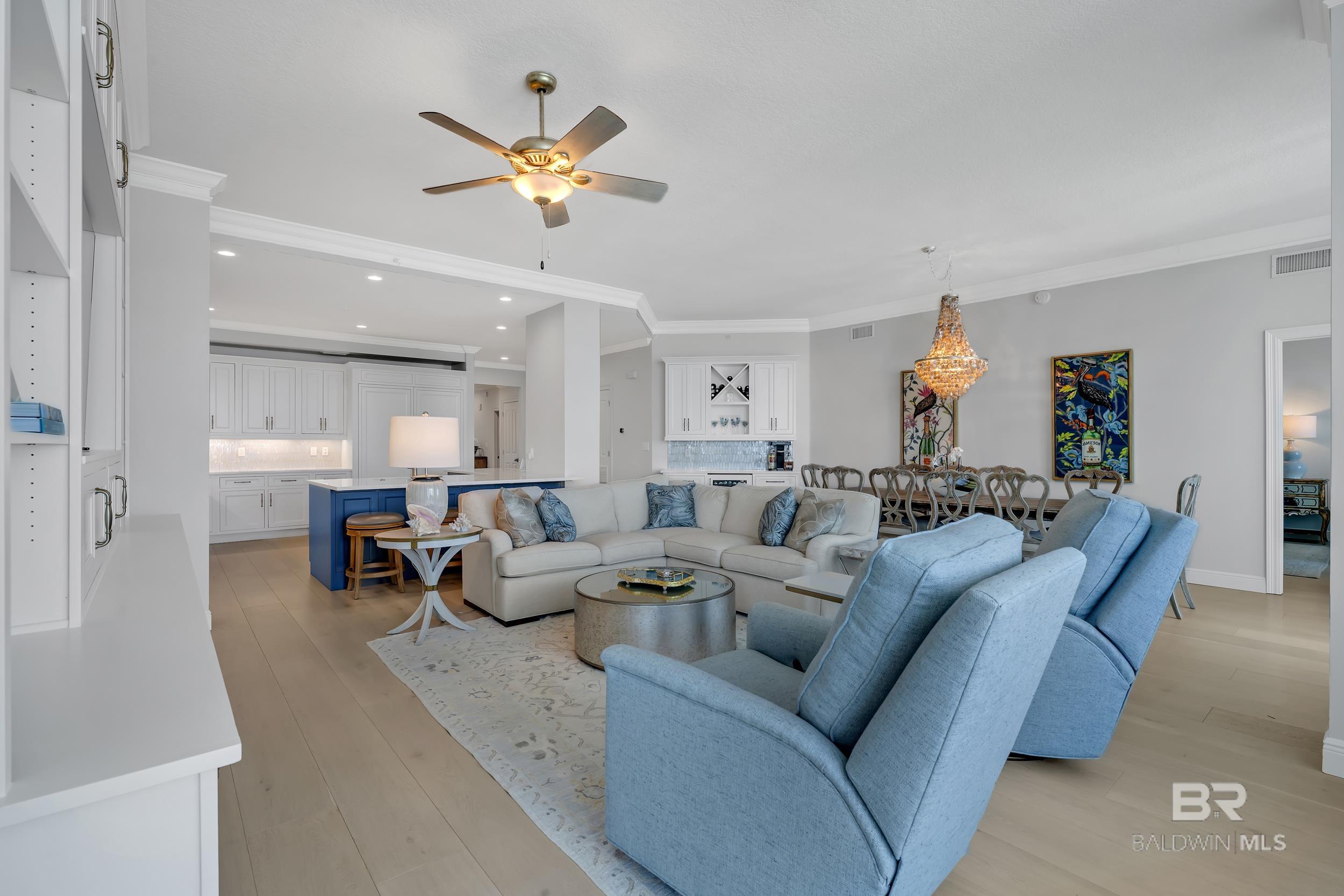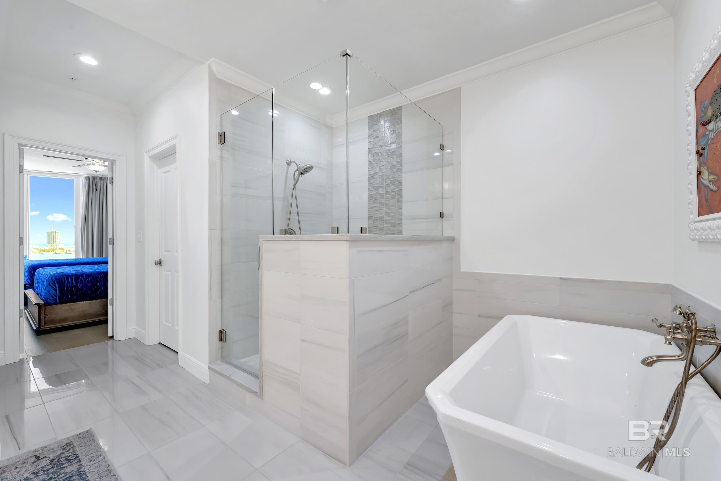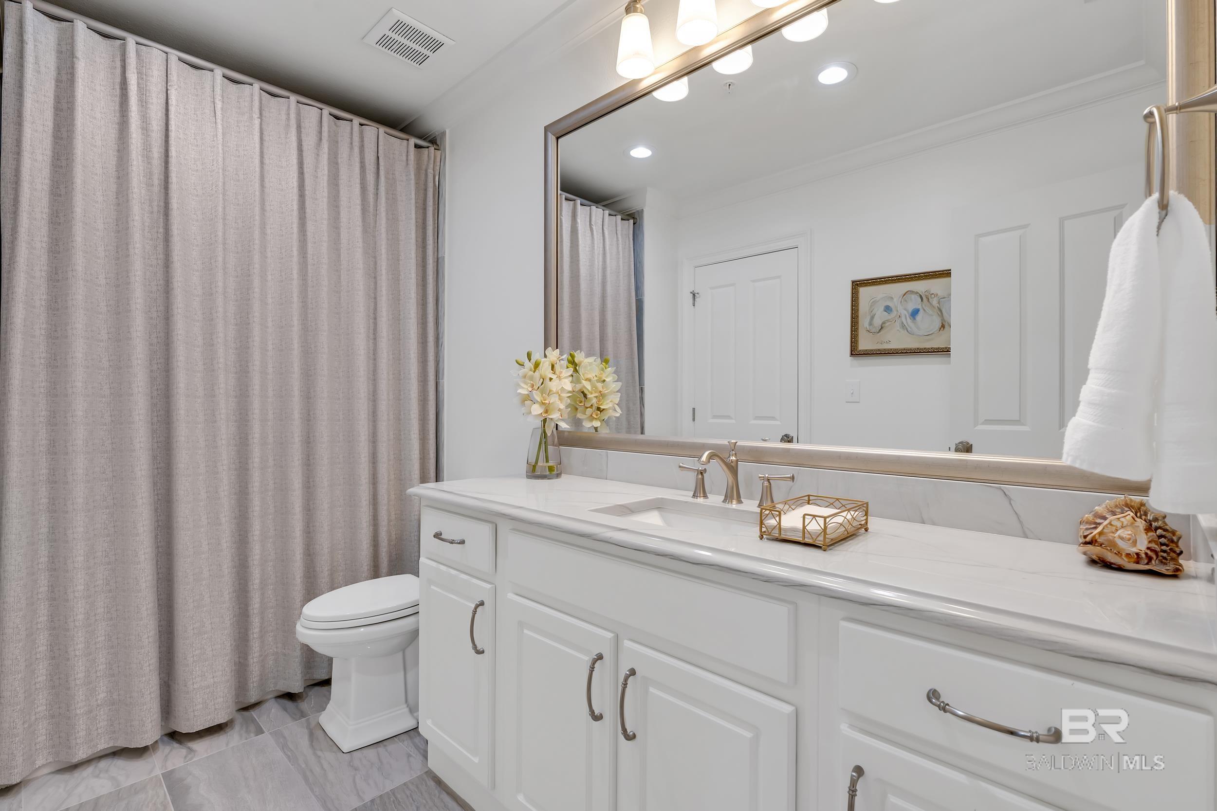 DON'T MISS OUT ON THIS RESORT-STYLE WATERFRONT COMMUNITY WITH MARINA AND DEEDED COVERED PARKING. Welcome to Bayshore Towers, located on the Gulf Coast in beautiful Orange Beach, AL. This gated community offers a wide range of amenities, including two pools, a fitness center, tennis/pickleball courts, lush landscaping, a community meeting room, ample parking, and a large marina to accommodate all your boating needs. This condo is a primary or second residence (no short-term rentals) due to its tranquil environment. Bayshore Towers sits on nearly 6 acres of beautiful waterfront property, which includes a private marina with deeded boat slips and three additional overflow slips that can be rented through the This 11th floor unit has floor-to-ceiling-impact rated glass throughout the main living area and both primary suites with panoramic views of Terry Cove, Perdido Pass, Bird Island, Robinson Island, Ono Island, and the Gulf of America. Both primary suites have balcony access with extraordinary views of the Gulf Coast. The beautifully redesigned kitchen features marble counters, all new appliances, including a 60” Liebherr refrigerator/freezer & Wolf 48” Dual Range, and new custom cabinets. There is ample entertainment in the spacious dining and living area with a custom-built entertainment center and custom-built bar. In addition, there is a second living/sleeping area or office space located off the foyer. Bathrooms feature tile floors and Quartzite vanities throughout; both primary baths include soaker tubs and custom-built showers. Custom window treatments throughout the unit and White Oak flooring throughout all living and bedroom areas. The balcony is over 440 sq ft, and is one of the largest in the complex. This unit offers an optional deeded 50X18 deep water boat slip with 50 amp power and water service, and 2 of the most coveted covered parking spaces in the complex, each with additional storage units that can be purchased separately. Buyer to ve Buyer to