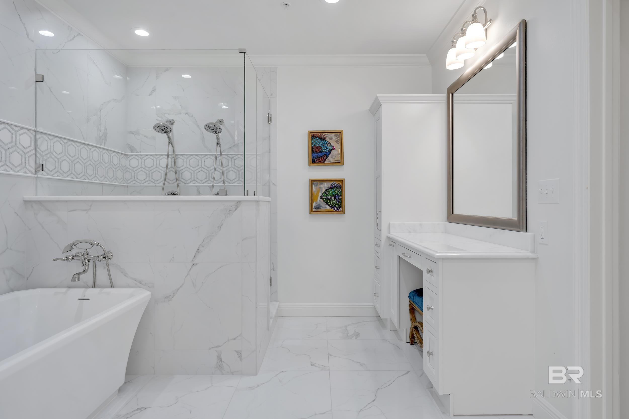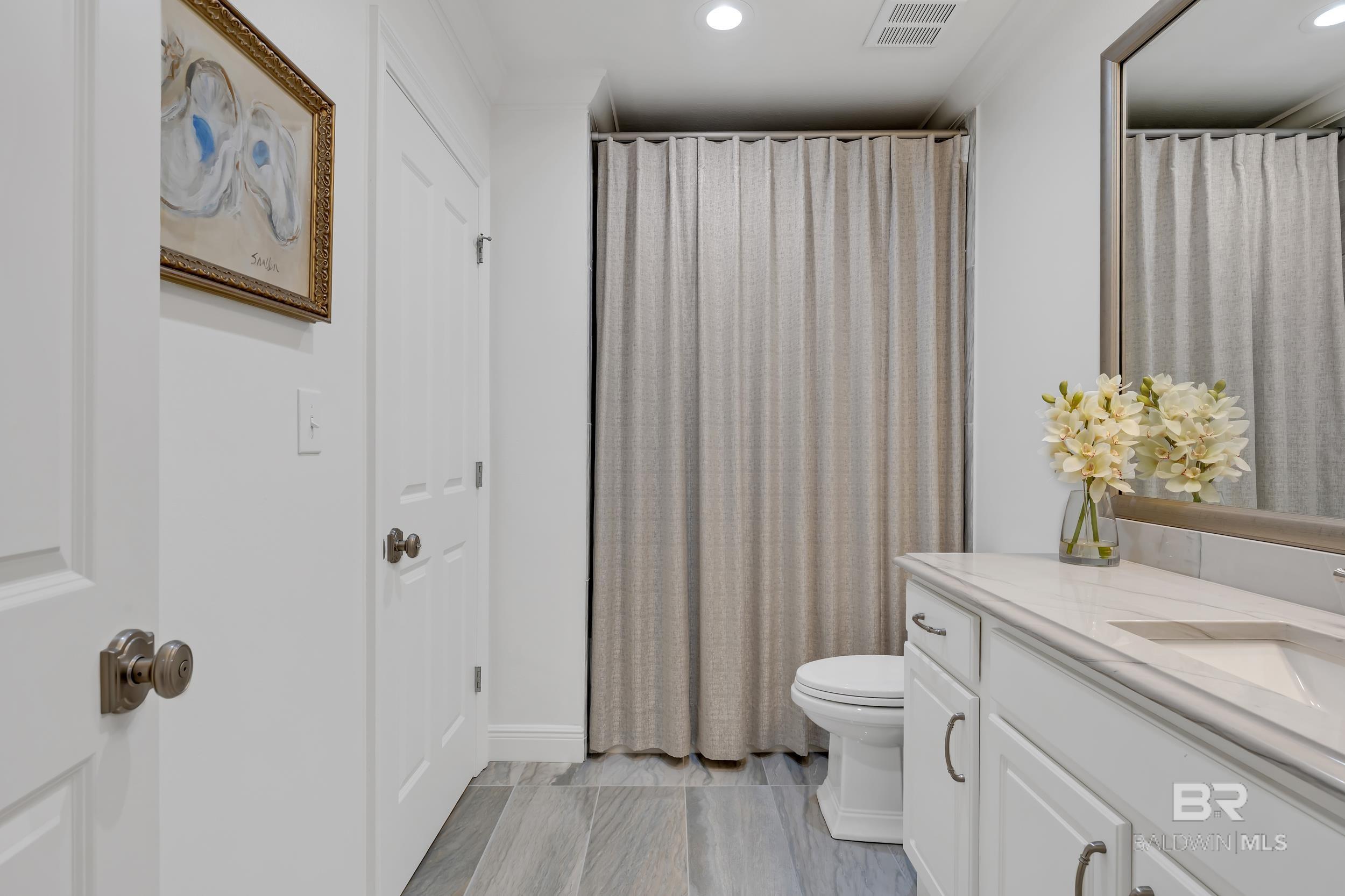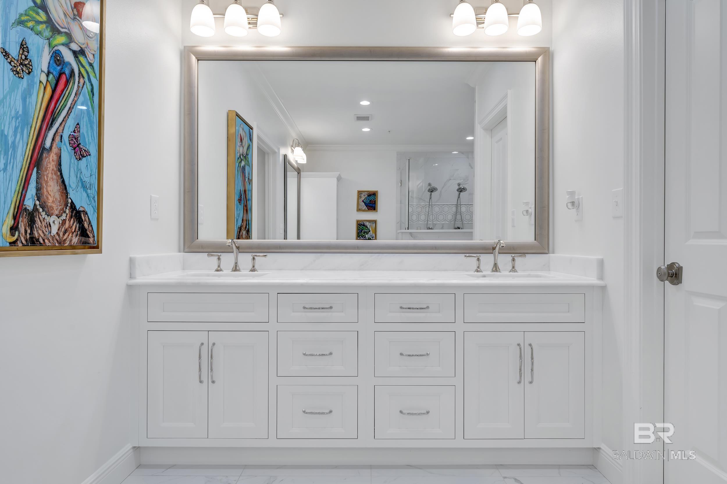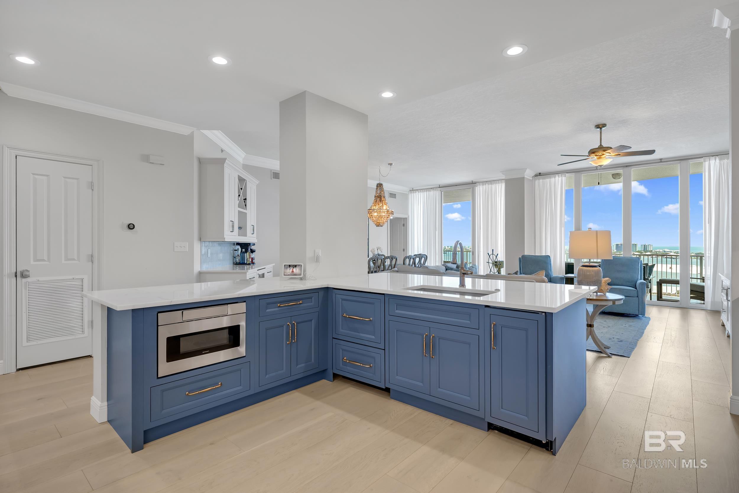 DON'T MISS OUT ON THIS RESORT-STYLE WATERFRONT COMMUNITY WITH MARINA AND DEEDED COVERED PARKING. Welcome to Bayshore Towers, located on the Gulf Coast in beautiful Orange Beach, AL. This gated community offers a wide range of amenities, including two pools, a fitness center, tennis/pickleball courts, lush landscaping, a community meeting room, ample parking, and a large marina to accommodate all your boating needs. This condo is a primary or second residence (no short-term rentals) due to its tranquil environment. Bayshore Towers sits on nearly 6 acres of beautiful waterfront property, which includes a private marina with deeded boat slips and three additional overflow slips that can be rented through the This 11th floor unit has floor-to-ceiling-impact rated glass throughout the main living area and both primary suites with panoramic views of Terry Cove, Perdido Pass, Bird Island, Robinson Island, Ono Island, and the Gulf of America. Both primary suites have balcony access with extraordinary views of the Gulf Coast. The beautifully redesigned kitchen features marble counters, all new appliances, including a 60” Liebherr refrigerator/freezer & Wolf 48” Dual Range, and new custom cabinets. There is ample entertainment in the spacious dining and living area with a custom-built entertainment center and custom-built bar. In addition, there is a second living/sleeping area or office space located off the foyer. Bathrooms feature tile floors and Quartzite vanities throughout; both primary baths include soaker tubs and custom-built showers. Custom window treatments throughout the unit and White Oak flooring throughout all living and bedroom areas. The balcony is over 440 sq ft, and is one of the largest in the complex. This unit offers an optional deeded 50X18 deep water boat slip with 50 amp power and water service, and 2 of the most coveted covered parking spaces in the complex, each with additional storage units that can be purchased separately. Buyer to ve Buyer to