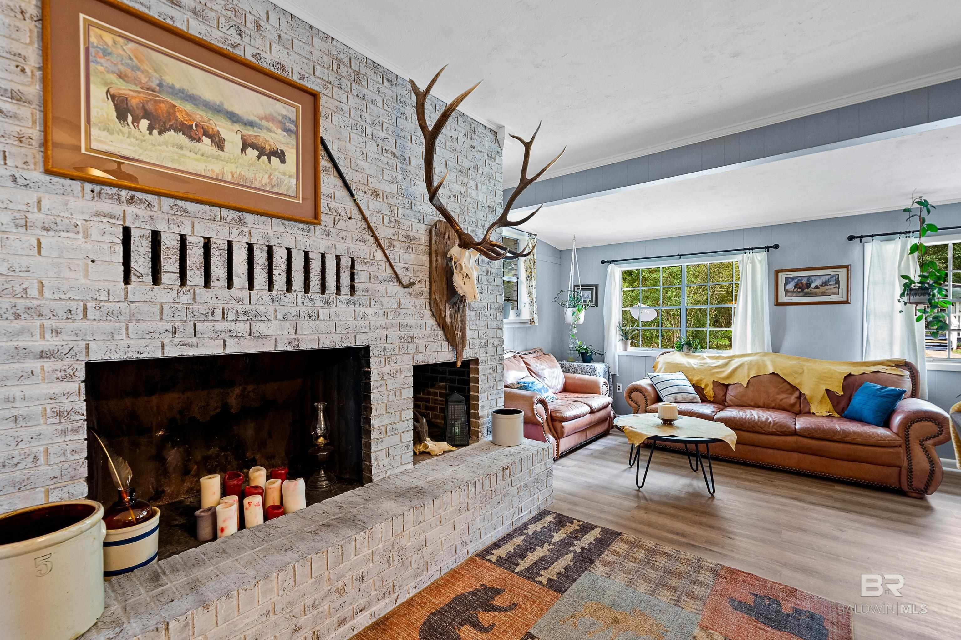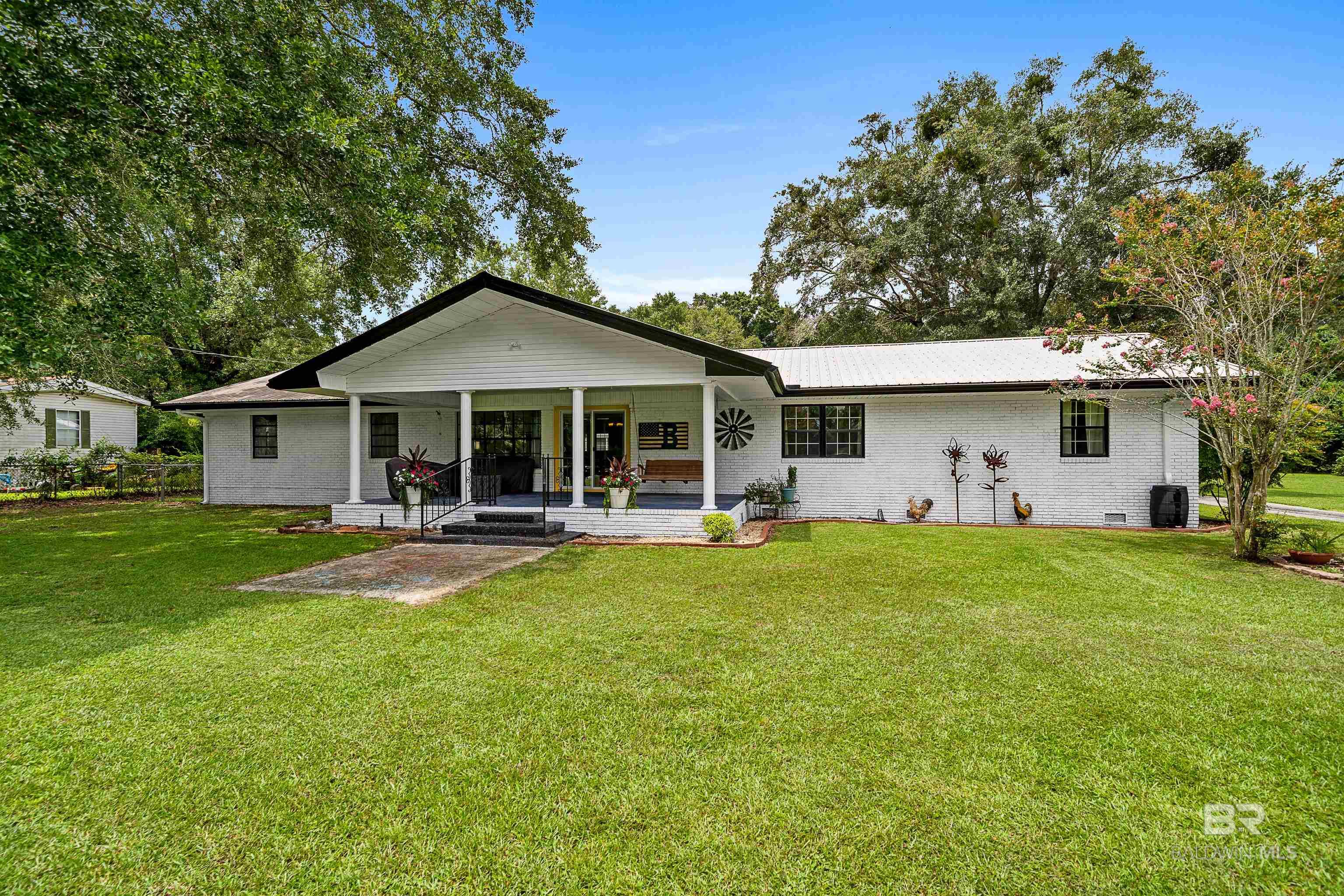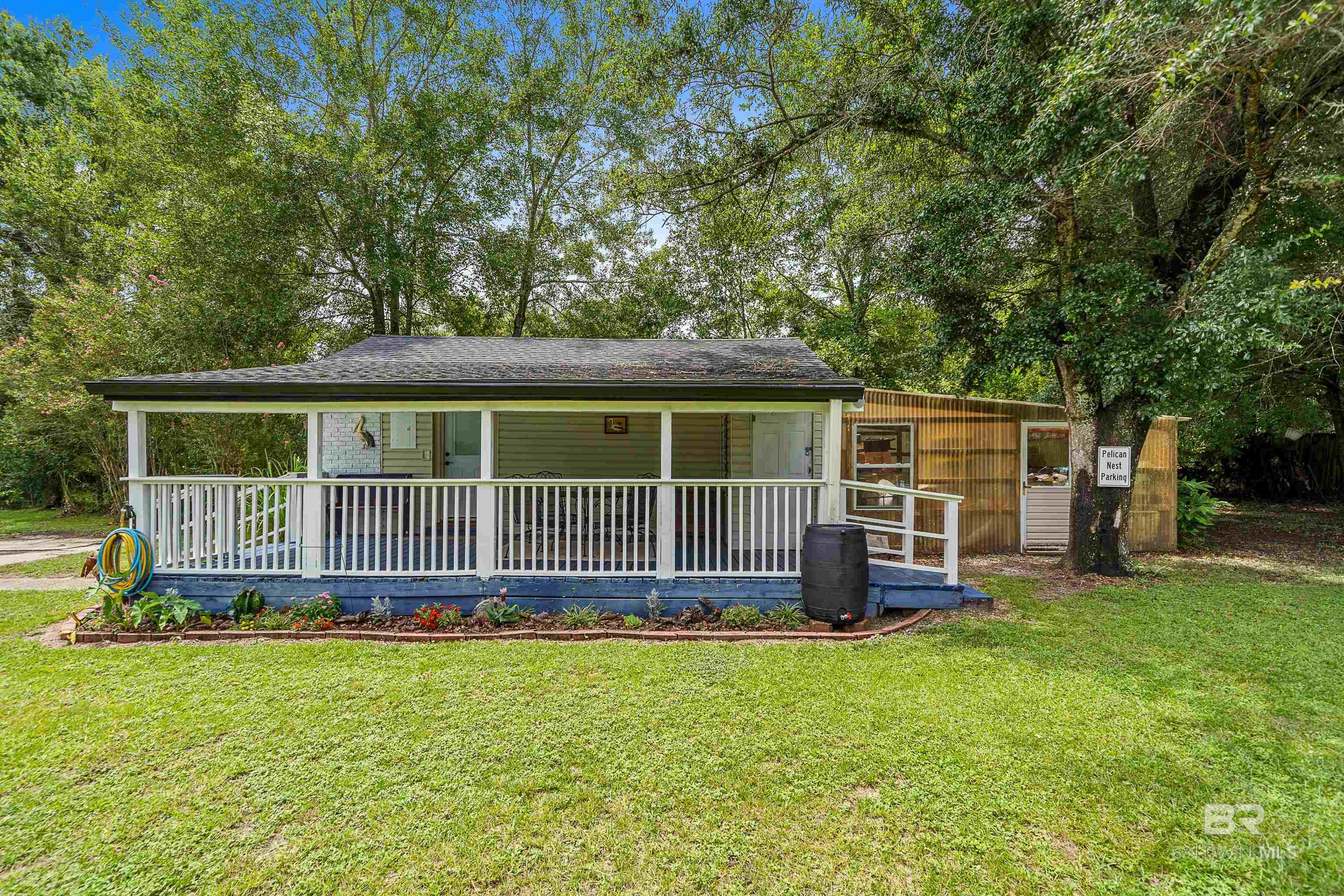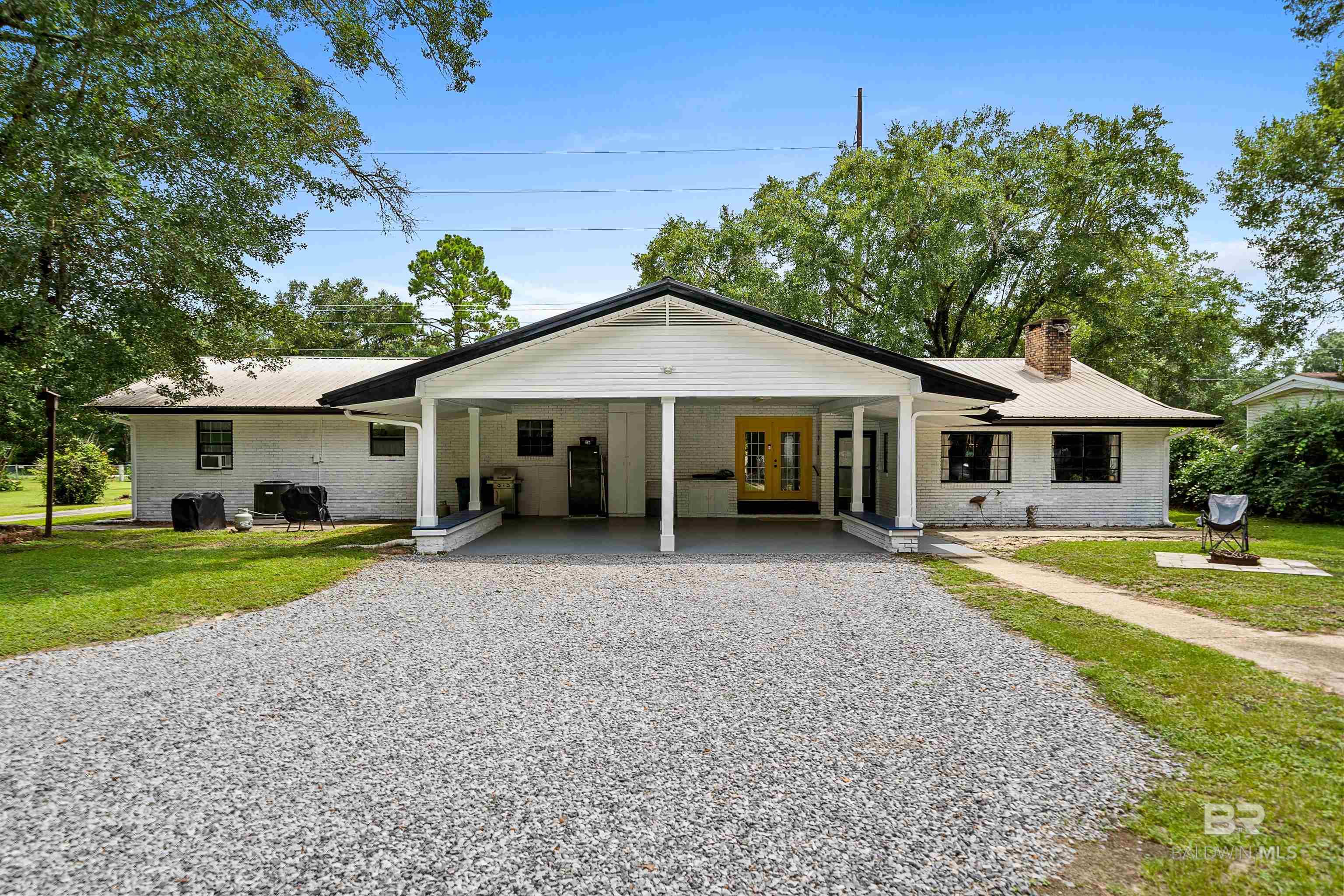 Located off the beaten path yet just minutes from Foley shopping, Pirate's Cove, Barber Marina, and the white-sand beaches, this Elberta home offers peaceful living with easy access to coastal attractions. Sitting on 1.43 acres, this brick ranch-style home with a detached guest cottage blends space, flexibility, and character. Inside the main home, you’ll find 3 bedrooms, 2 bathrooms, and just over 2,400 square feet of living space, including a large family room and bonus room. Major system upgrades include new HVAC and ductwork (2024), new water heaters for both the main house and guest cottage (2023), updated electrical, and new PEX water lines throughout. New subfloors and laminate flooring have also been installed in the kitchen, dining, living room, and hallway. The beautifully refreshed kitchen features a new stove and refrigerator, granite countertops, stainless steel appliances, cabinetry with a pop of color, and a wooden ceiling that adds warmth and charm. The dining area offers a welcoming space for family meals or entertaining guests. In the living room, large windows and sliding glass doors open to the inviting covered front porch, while the spacious family room boasts a cozy brick fireplace, an adjacent laundry room, and a bonus room with new flooring. The primary suite includes a fully remodeled ensuite bathroom with a custom double vanity, tiled floors, a tub/shower combo with tile surround, and stylish modern fixtures. Two additional bedrooms share a full bath. Out back, the detached guest cottage offers endless possibilities as an in-law suite, rental, or private retreat. This open-concept studio includes a kitchenette, updated bathroom, covered front porch, and wood floors and ceilings. Additional highlights include an attached double carport, multiple storage buildings (one with power), and a firepit for outdoor enjoyment. This is a truly special property with room to relax, host, and grow! Buyer to verify all information during due diligence.