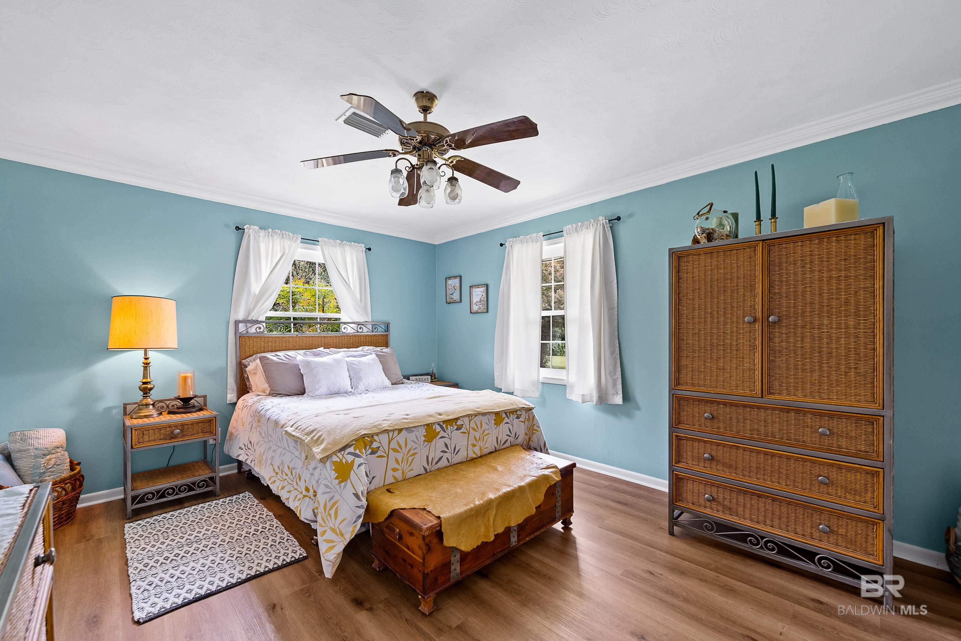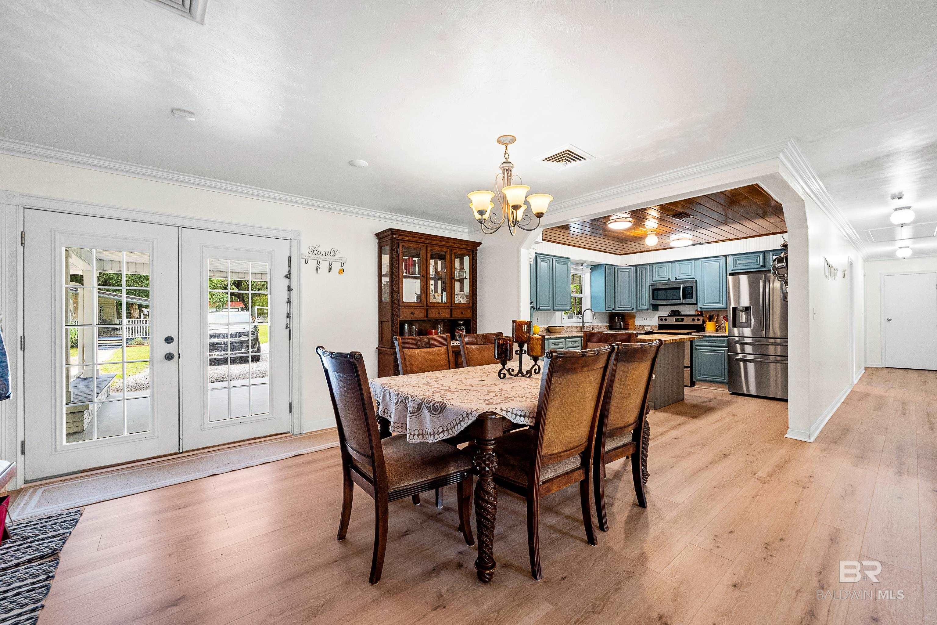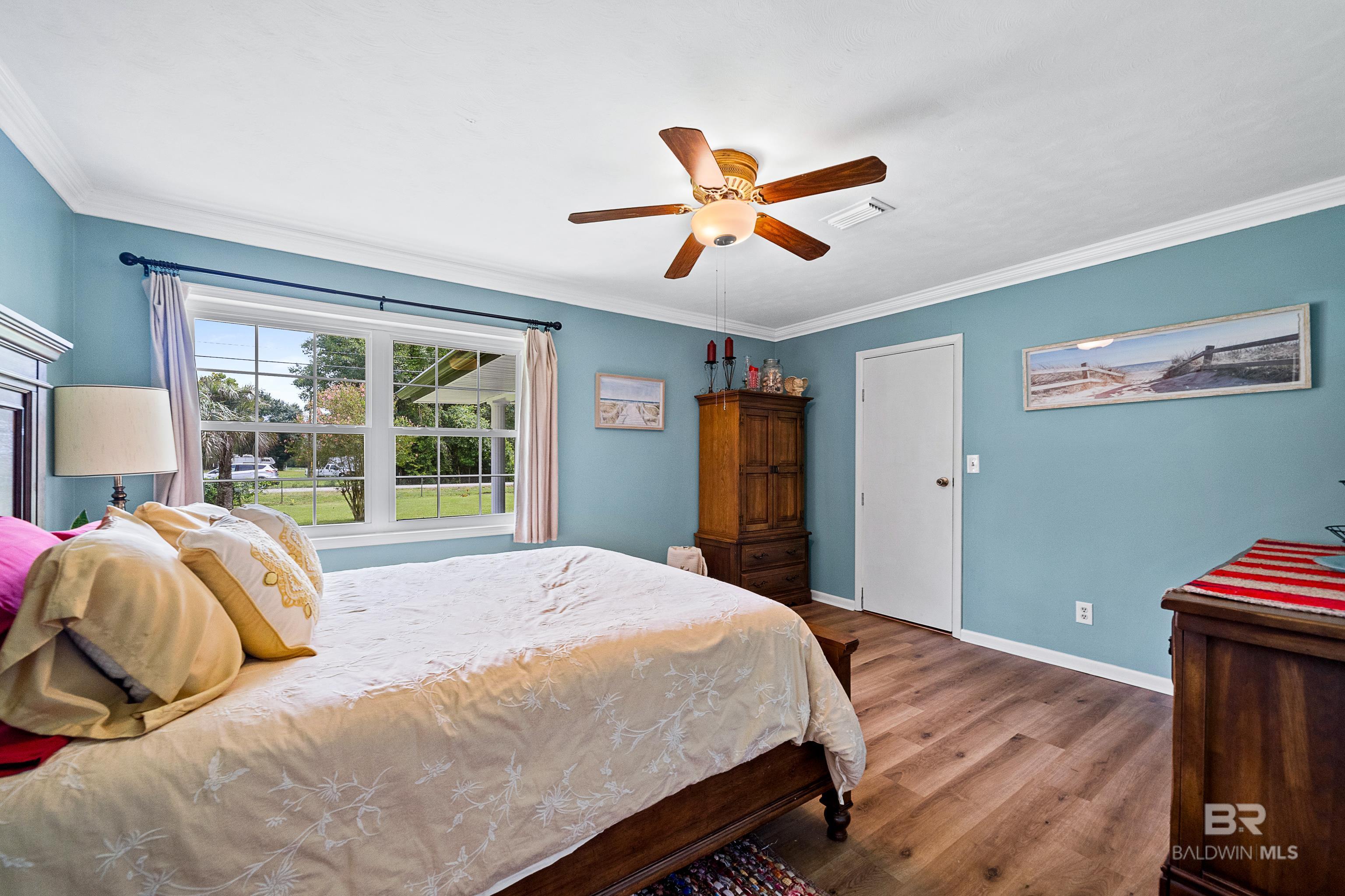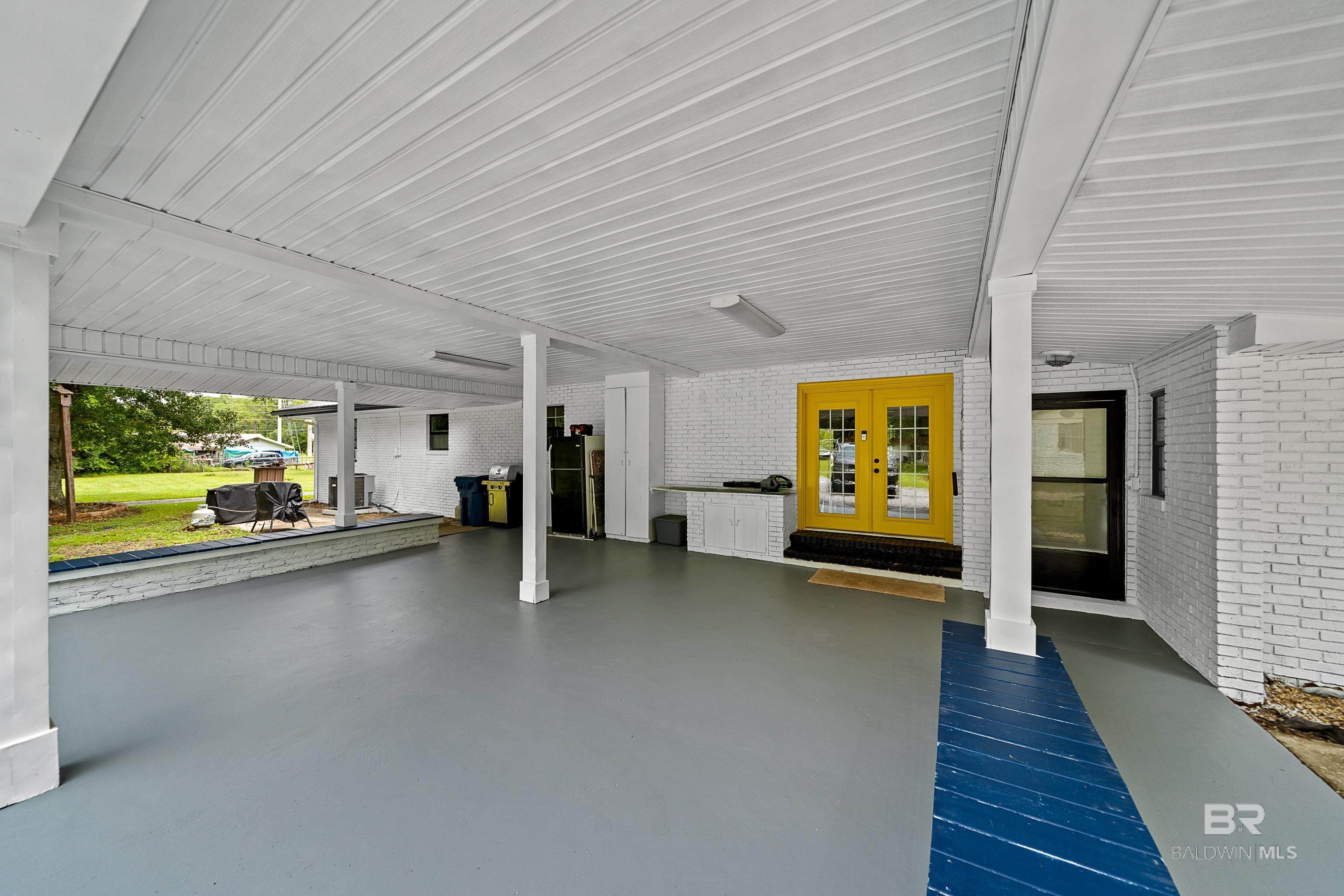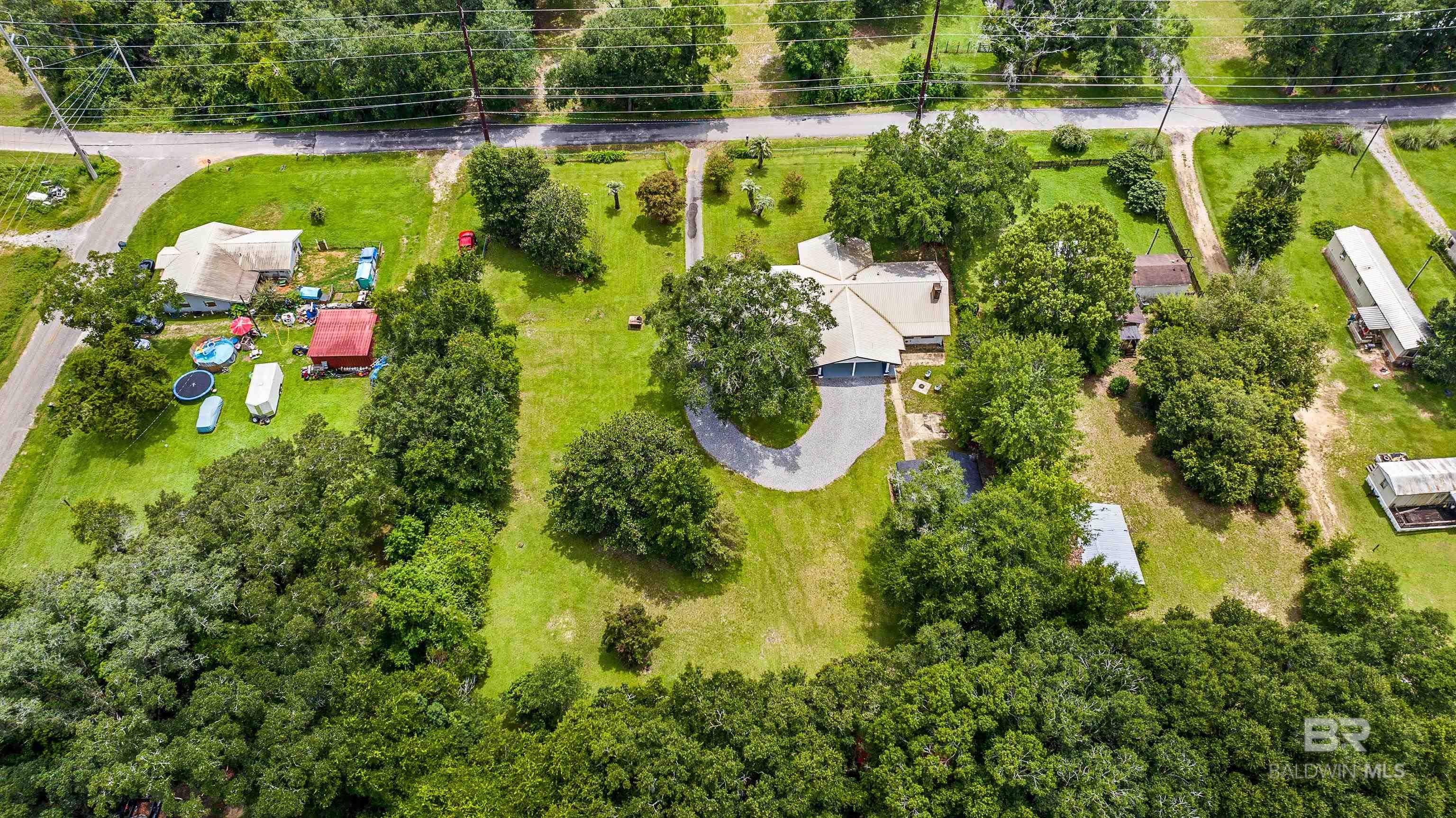 Located off the beaten path yet just minutes from Foley shopping, Pirate's Cove, Barber Marina, and the white-sand beaches, this Elberta home offers peaceful living with easy access to coastal attractions. Sitting on 1.43 acres, this brick ranch-style home with a detached guest cottage blends space, flexibility, and character. Inside the main home, you’ll find 3 bedrooms, 2 bathrooms, and just over 2,400 square feet of living space, including a large family room and bonus room. Major system upgrades include new HVAC and ductwork (2024), new water heaters for both the main house and guest cottage (2023), updated electrical, and new PEX water lines throughout. New subfloors and laminate flooring have also been installed in the kitchen, dining, living room, and hallway. The beautifully refreshed kitchen features a new stove and refrigerator, granite countertops, stainless steel appliances, cabinetry with a pop of color, and a wooden ceiling that adds warmth and charm. The dining area offers a welcoming space for family meals or entertaining guests. In the living room, large windows and sliding glass doors open to the inviting covered front porch, while the spacious family room boasts a cozy brick fireplace, an adjacent laundry room, and a bonus room with new flooring. The primary suite includes a fully remodeled ensuite bathroom with a custom double vanity, tiled floors, a tub/shower combo with tile surround, and stylish modern fixtures. Two additional bedrooms share a full bath. Out back, the detached guest cottage offers endless possibilities as an in-law suite, rental, or private retreat. This open-concept studio includes a kitchenette, updated bathroom, covered front porch, and wood floors and ceilings. Additional highlights include an attached double carport, multiple storage buildings (one with power), and a firepit for outdoor enjoyment. This is a truly special property with room to relax, host, and grow! Buyer to verify all information during due diligence.