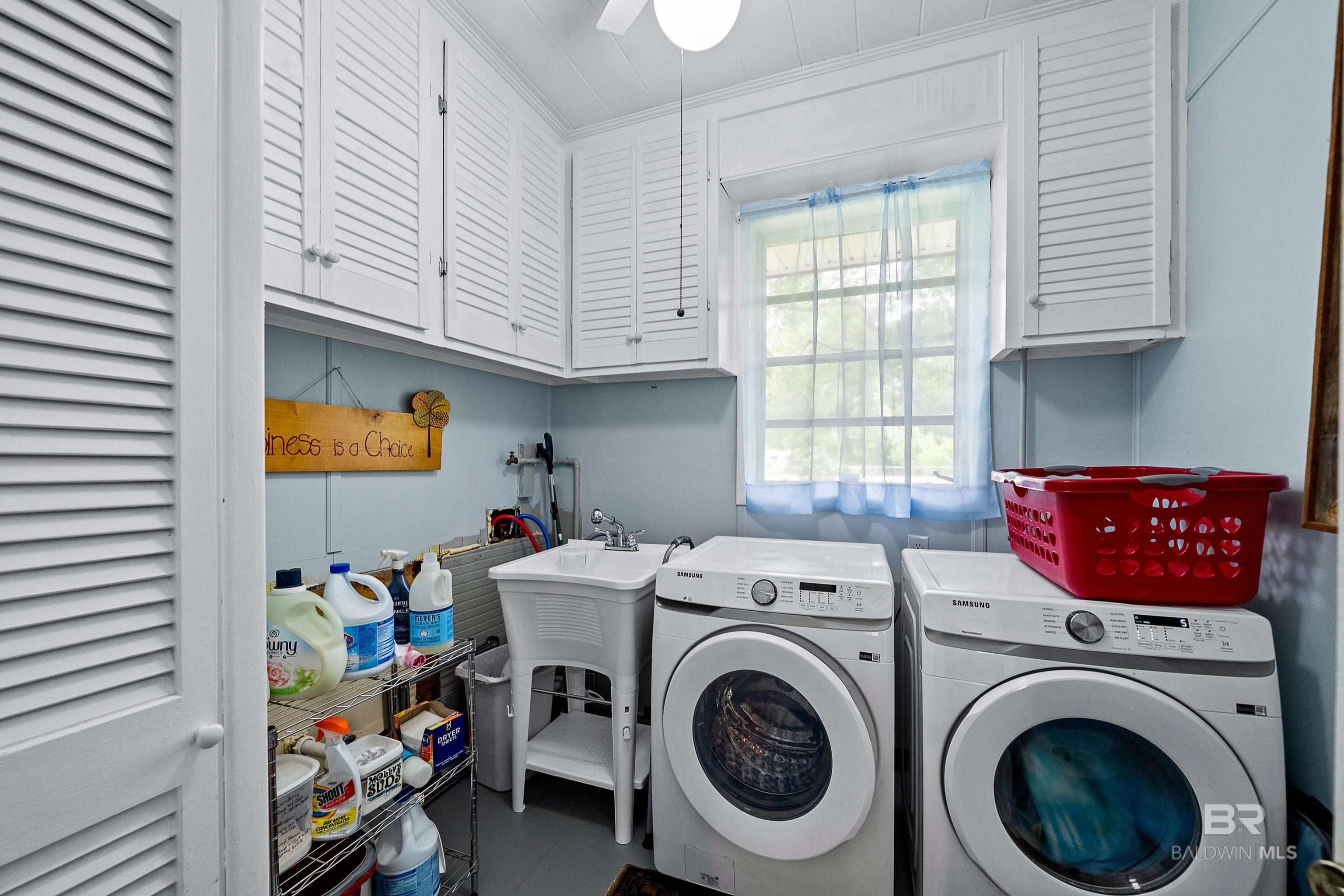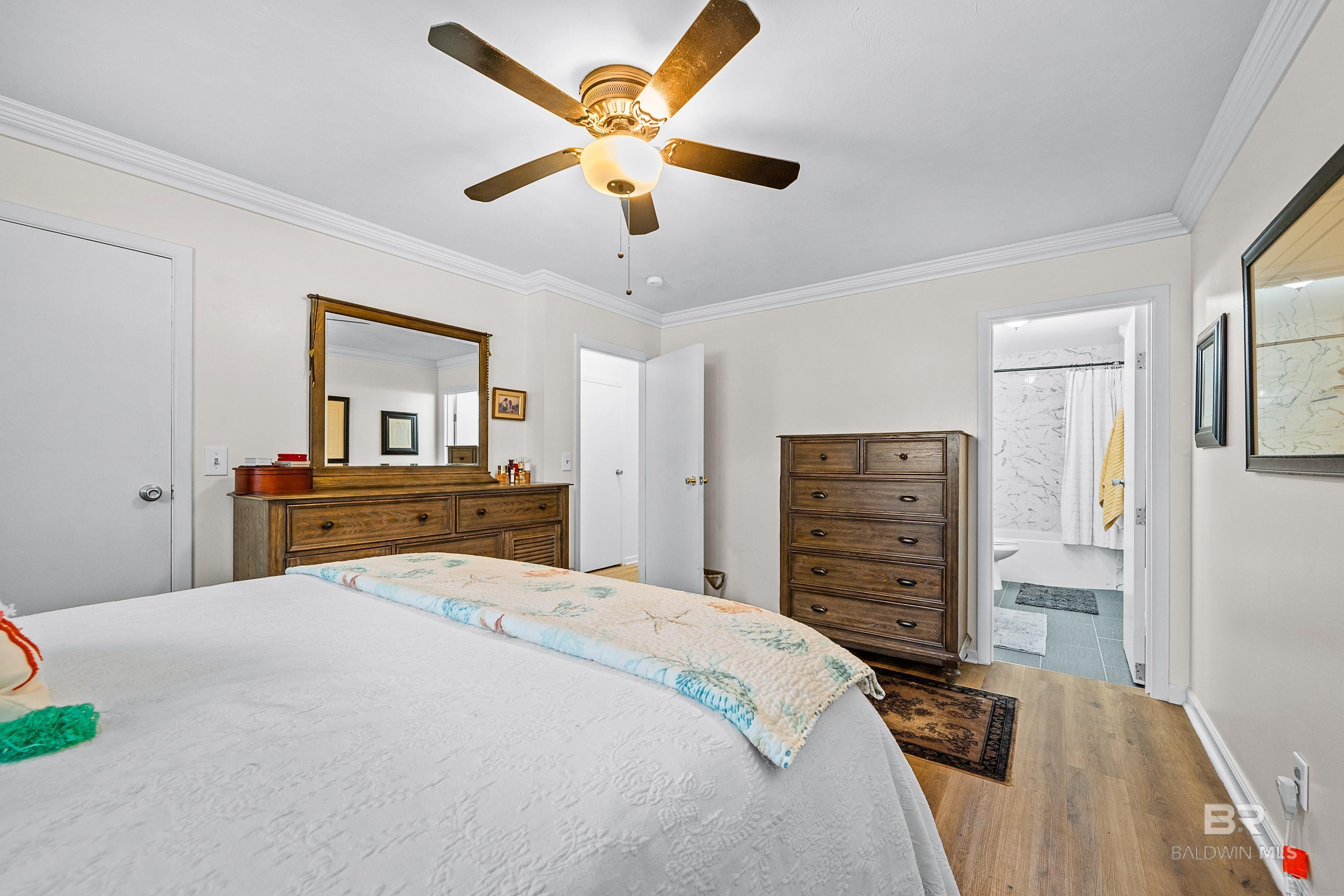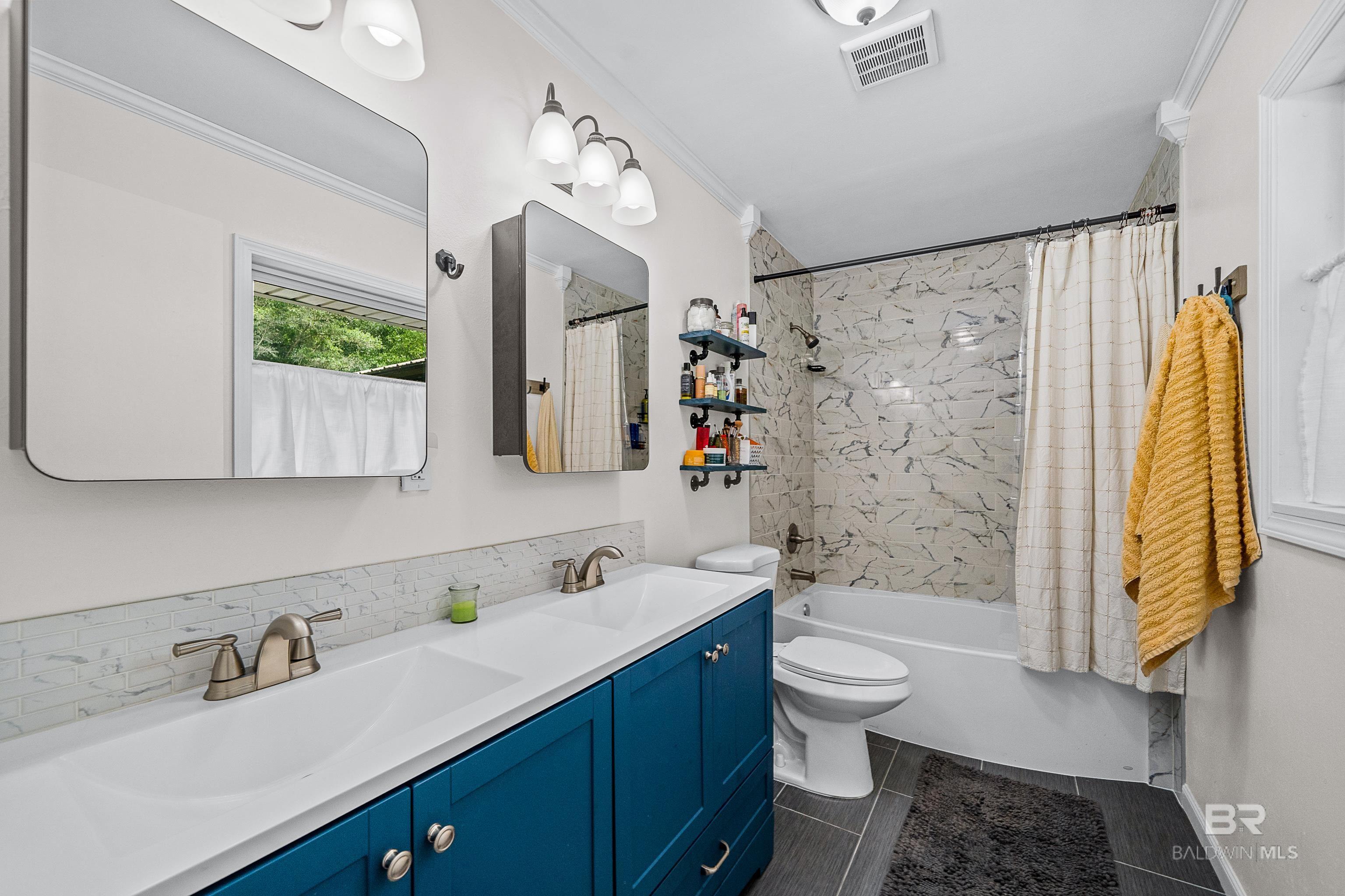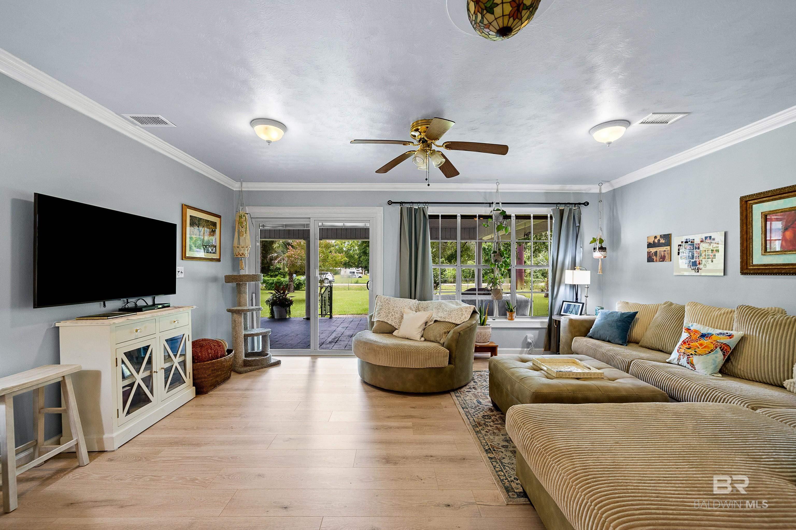 Located off the beaten path yet just minutes from Foley shopping, Pirate's Cove, Barber Marina, and the white-sand beaches, this Elberta home offers peaceful living with easy access to coastal attractions. Sitting on 1.43 acres, this brick ranch-style home with a detached guest cottage blends space, flexibility, and character. Inside the main home, you’ll find 3 bedrooms, 2 bathrooms, and just over 2,400 square feet of living space, including a large family room and bonus room. Major system upgrades include new HVAC and ductwork (2024), new water heaters for both the main house and guest cottage (2023), updated electrical, and new PEX water lines throughout. New subfloors and laminate flooring have also been installed in the kitchen, dining, living room, and hallway. The beautifully refreshed kitchen features a new stove and refrigerator, granite countertops, stainless steel appliances, cabinetry with a pop of color, and a wooden ceiling that adds warmth and charm. The dining area offers a welcoming space for family meals or entertaining guests. In the living room, large windows and sliding glass doors open to the inviting covered front porch, while the spacious family room boasts a cozy brick fireplace, an adjacent laundry room, and a bonus room with new flooring. The primary suite includes a fully remodeled ensuite bathroom with a custom double vanity, tiled floors, a tub/shower combo with tile surround, and stylish modern fixtures. Two additional bedrooms share a full bath. Out back, the detached guest cottage offers endless possibilities as an in-law suite, rental, or private retreat. This open-concept studio includes a kitchenette, updated bathroom, covered front porch, and wood floors and ceilings. Additional highlights include an attached double carport, multiple storage buildings (one with power), and a firepit for outdoor enjoyment. This is a truly special property with room to relax, host, and grow! Buyer to verify all information during due diligence.