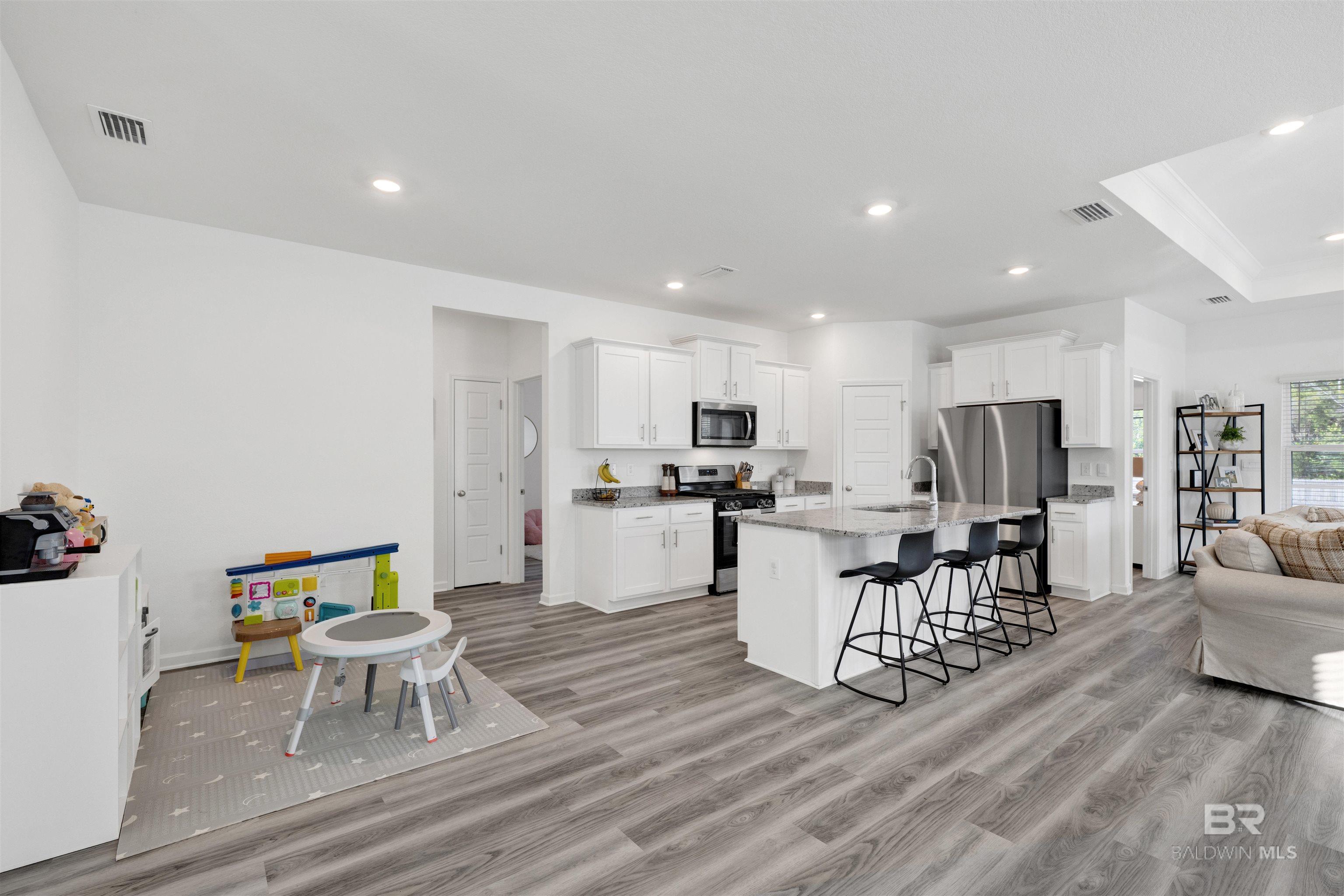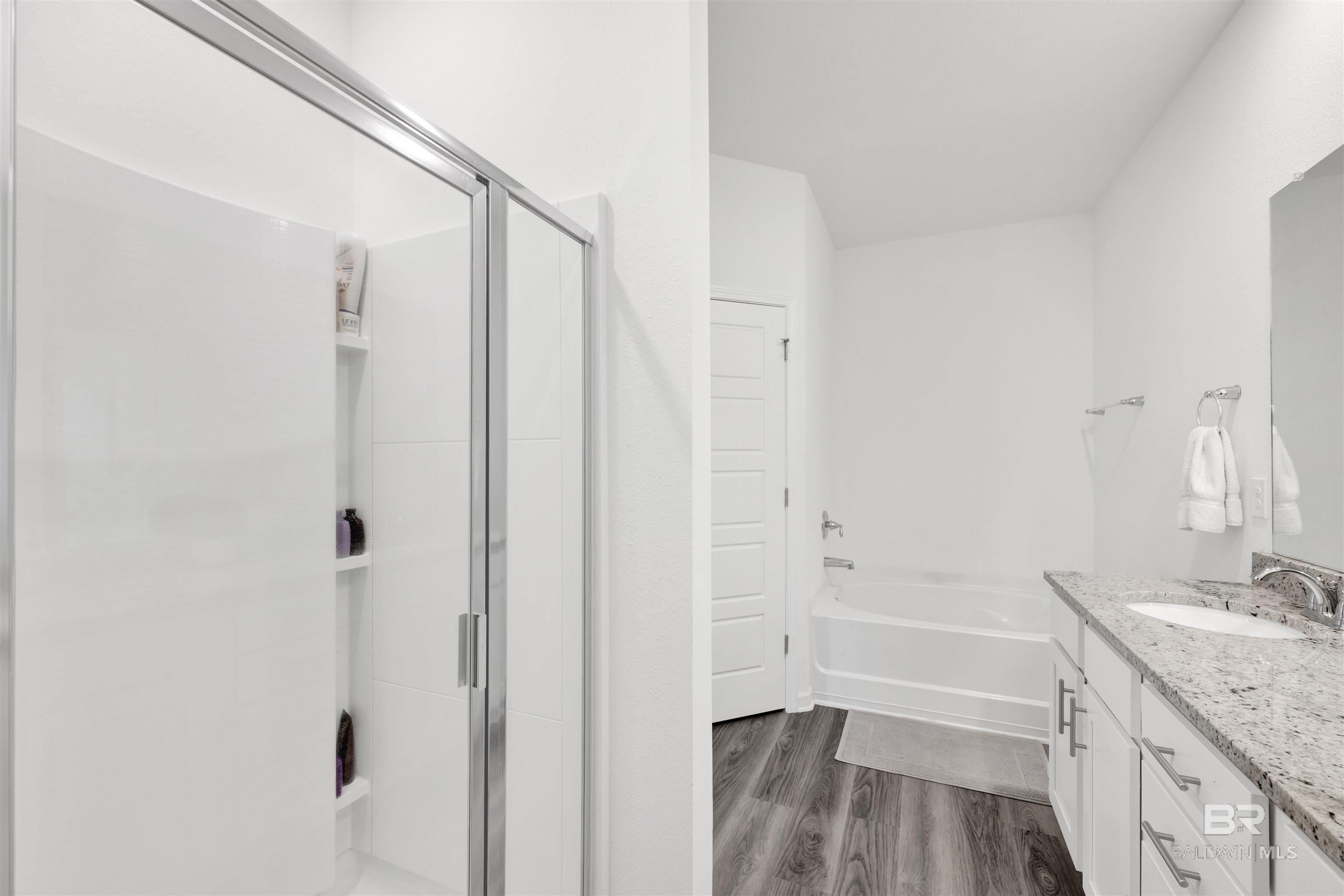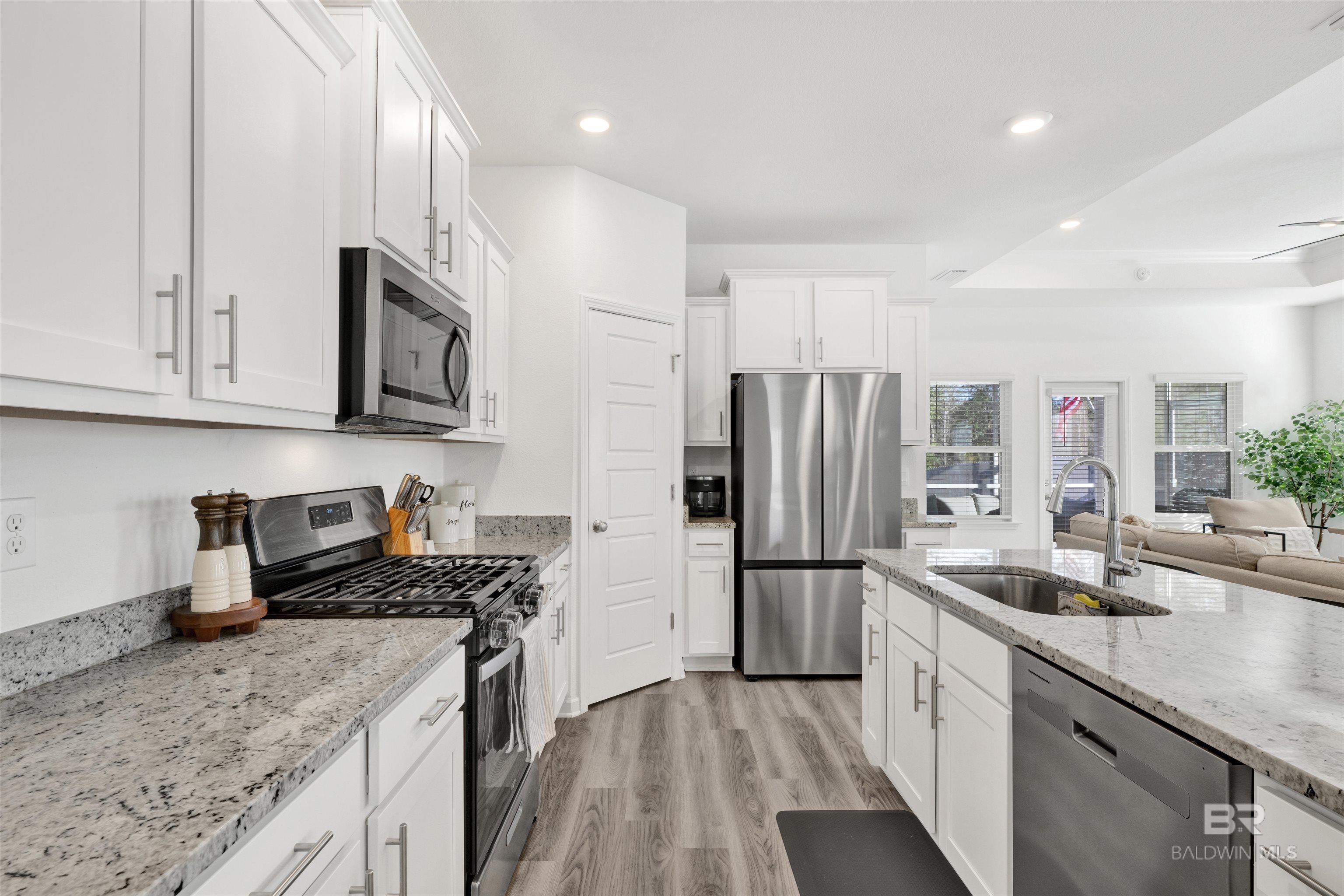 Move in Ready, Single Story, 4 bedrooms, Gold Fortified, No neighbors behind you! Unlike new construction, this home already includes upgrades, has No construction delays, and the seller is willing to offer competitive buyer incentives, including options that may help reduce closing costs or monthly payments. 4 bedroom Isabella floor plan in Spanish Fort's premier community- Stonebridge offers the space, layout, and modern style buyers love, without the wait to build. Built Gold Fortified in 2023, this single story home features 1,948 square feet, 4 bedrooms, 2 bathrooms, and a 2 car garage, with upgrades already included. The welcoming foyer leads conveniently from the garage past the utility room and into an open-concept living space designed for everyday comfort and easy entertaining. The spacious kitchen features a large island, ample cabinetry, and a dedicated dining area, all flowing seamlessly into the great room and out to the back porch. This open floor plan is perfect for gatherings or relaxed evenings at home. Private primary suite, tucked away at the back of the home, serves as a true retreat with tray ceilings, an ensuite bath with large walk-in closet, dual sinks, soaking tub, separate shower & linen closet. Three additional bedrooms offer flexibility for guests, a home office, or hobby room with a full hall bath and extra storage thoughtfully placed nearby. Also Noteworthy: No carpet- this home has Luxury vinyl plank flooring throughout! Open kitchen with granite countertops, full appliance package, wood blinds, ceiling fans, screened in porch and a fenced yard with privacy in the back- no other homes behind you. You get the benefits of new construction without builder premiums or uncertainty. Community amenities include sidewalks, multiple pools, clubhouse with exercise room, playgrounds, bocce ball court, tennis courts, basketball court, whiffle ball field and a putting green. Buyer to verify all information during due diligence.