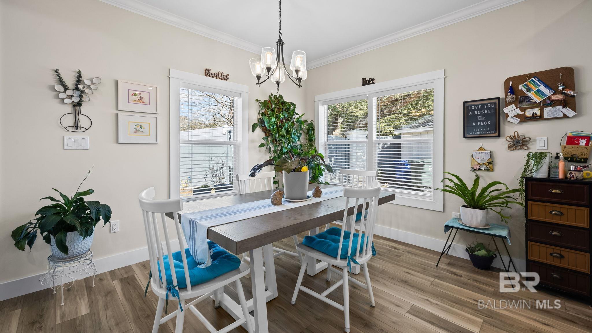 Welcome to this custom-built 3-bedroom, 2.5-bath home offering 1,815 square feet of thoughtfully designed living space in the beautiful Bella Vista area of Foley. Built with quality, comfort, and efficiency in mind, this home stands out with premium construction features and smart upgrades throughout.The home offers full noise insulation, creating a quiet and private interior environment—perfect for everyday living or entertaining. Crown molding runs throughout the home, adding an elegant finish to each space.The spacious kitchen is a true centerpiece, featuring a large island, custom backsplash, stainless steel appliances, stacked ovens, and a gas cooktop, ideal for cooking and hosting. Adjacent living and dining areas flow seamlessly, creating an open and inviting layout.The primary and secondary bathrooms feature custom tile showers, showcasing quality craftsmanship and modern design. A large laundry room with built-in cabinetry provides excellent storage and functionality.One of the standout features is the fully insulated garage, constructed with 2x6 framing, offering durability and climate efficiency. The garage is equipped with both hot and cold water access, making it ideal for car cleaning or projects. A wider driveway and expanded garage space comfortably accommodate larger vehicles.Additional highlights include: • Hurricane-resistant windows (no hurricane shutters needed) • Water heater strategically located inside the home for climate control and efficiency • Exceptionally low power bills, averaging around $130 per month• Gutters installed around the entire home • Extended covered back porch, perfect for outdoor relaxation •Detached shed for additional storage • Fully fenced backyard with ample space to add a poolThis home sits on a generous lot, offering privacy, functionality, and room to grow—all while being conveniently located near shopping, dining, schools, and Gulf Coast attractions. Buyer to verify all all information. Buyer to verify all inform