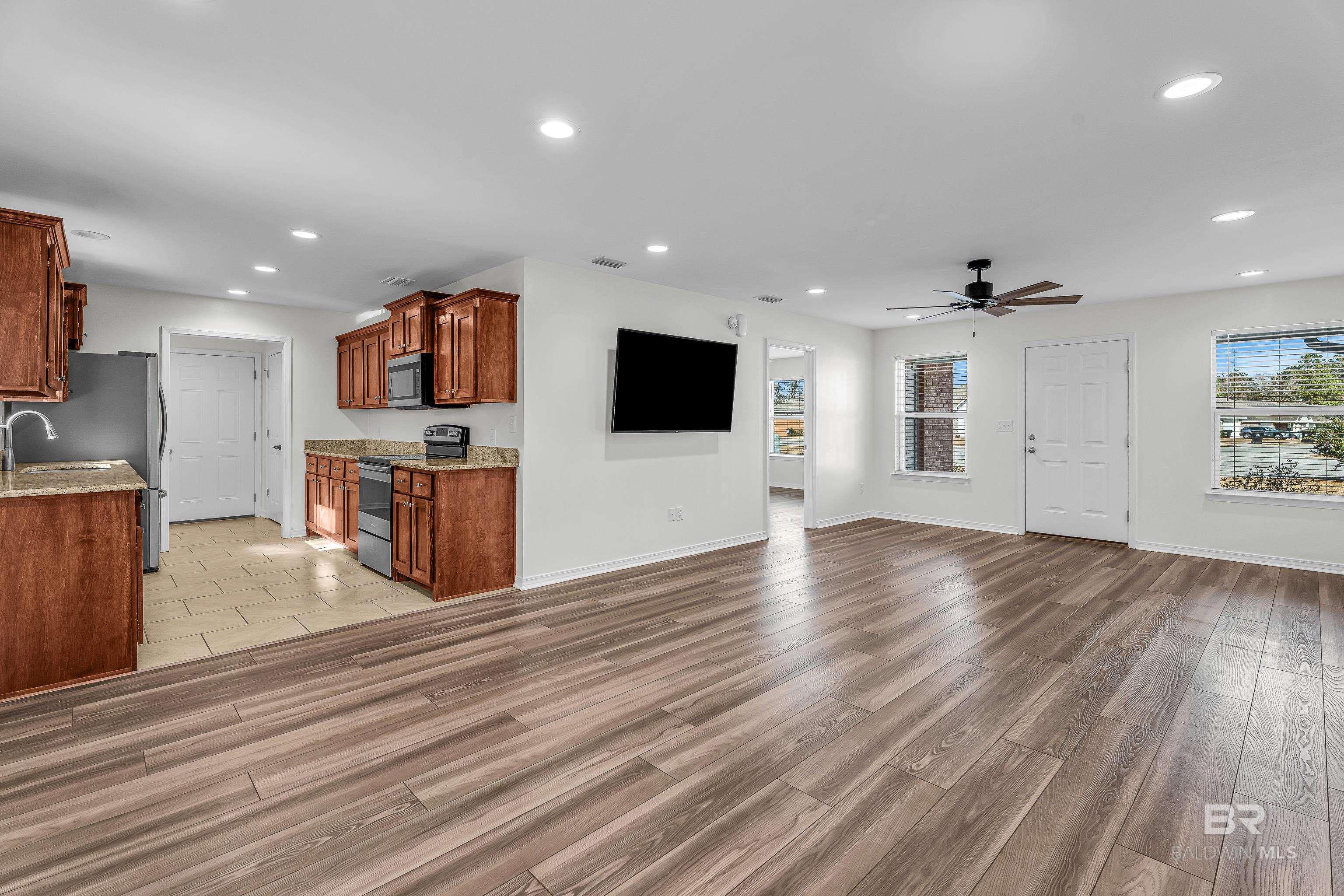 This Semi-Custom home offers a 3/2 floor plan. The Kaitlyn PLan. Has upgraded wood cabinets throughout. Granite countertops a great accent to the kitchen and bathrooms. Nice walk in closet in the primary bedroom. The home has upgraded luxury vinyl plank flooring throughout the home. ceiling fans are offered in every bedroom. A great addition to the home is gutters around the home and extra concrete behind fence to have a Boat or RV. Huge fenced back yard with a gate to natural area to take a wooded hike. Don't miss out on this great home!! Buyer to verify all information during due diligence.