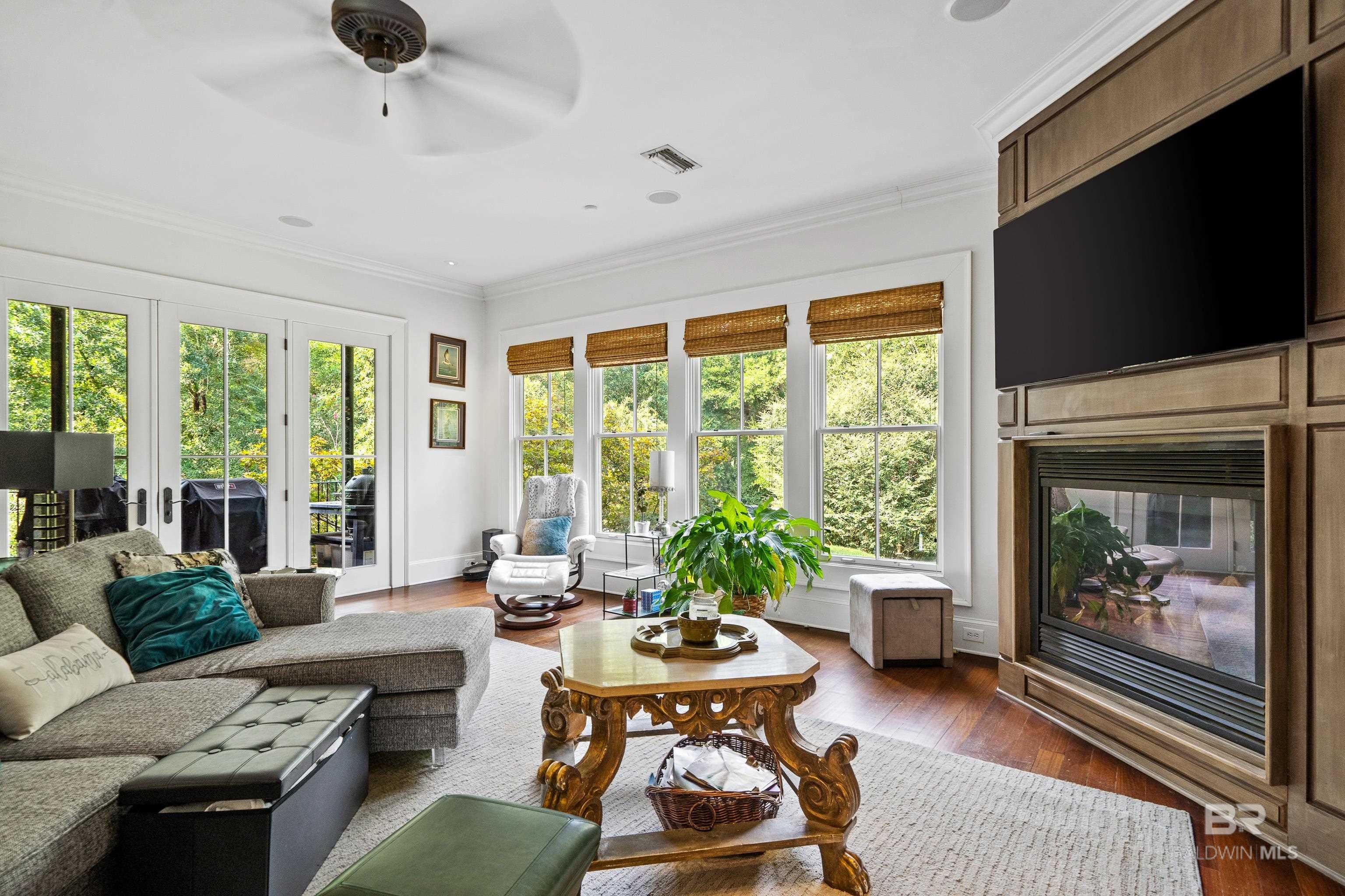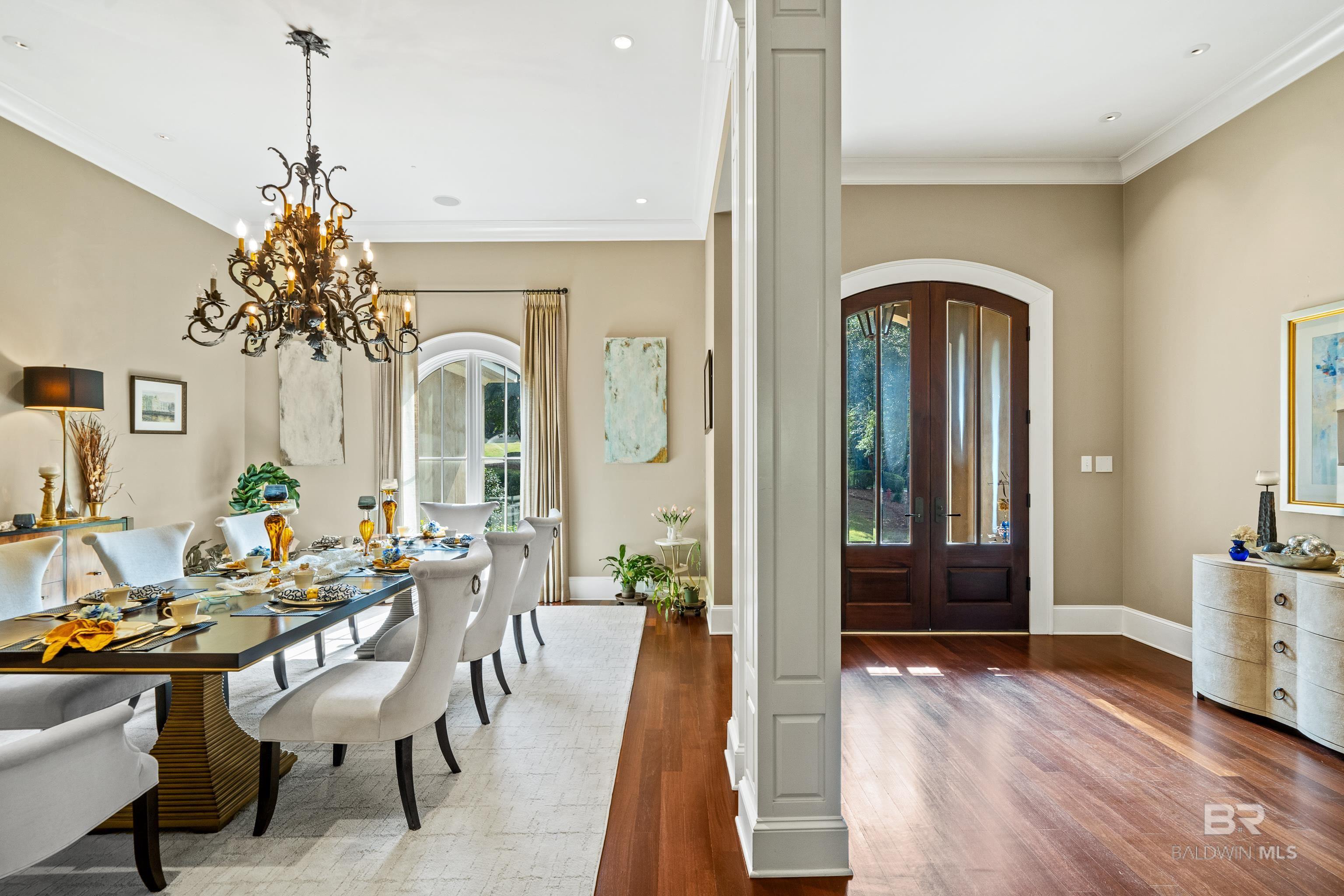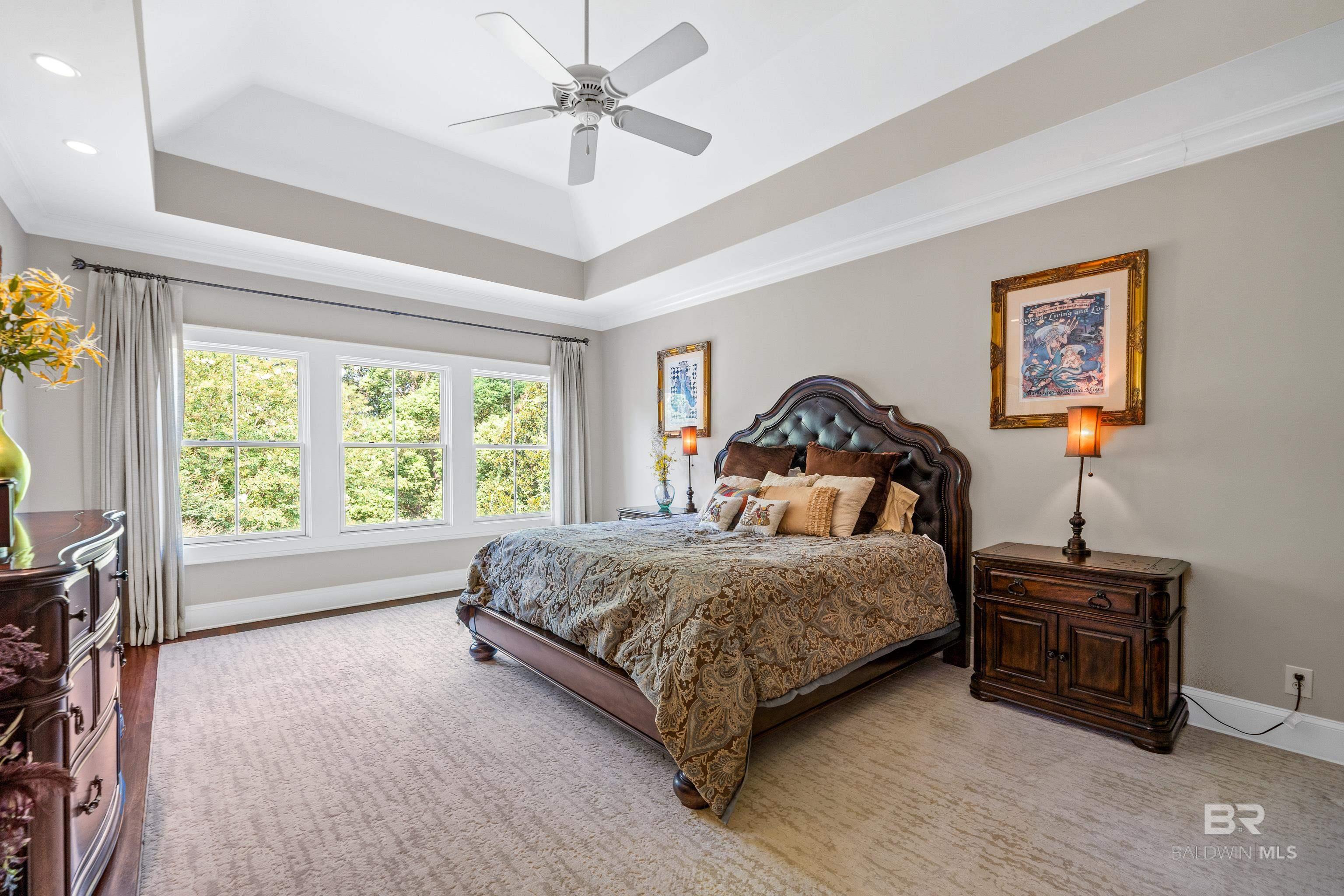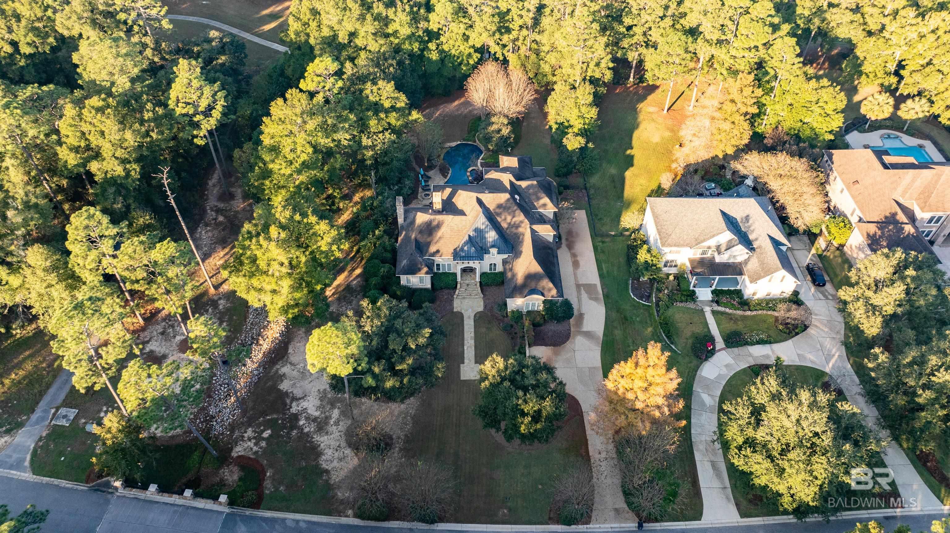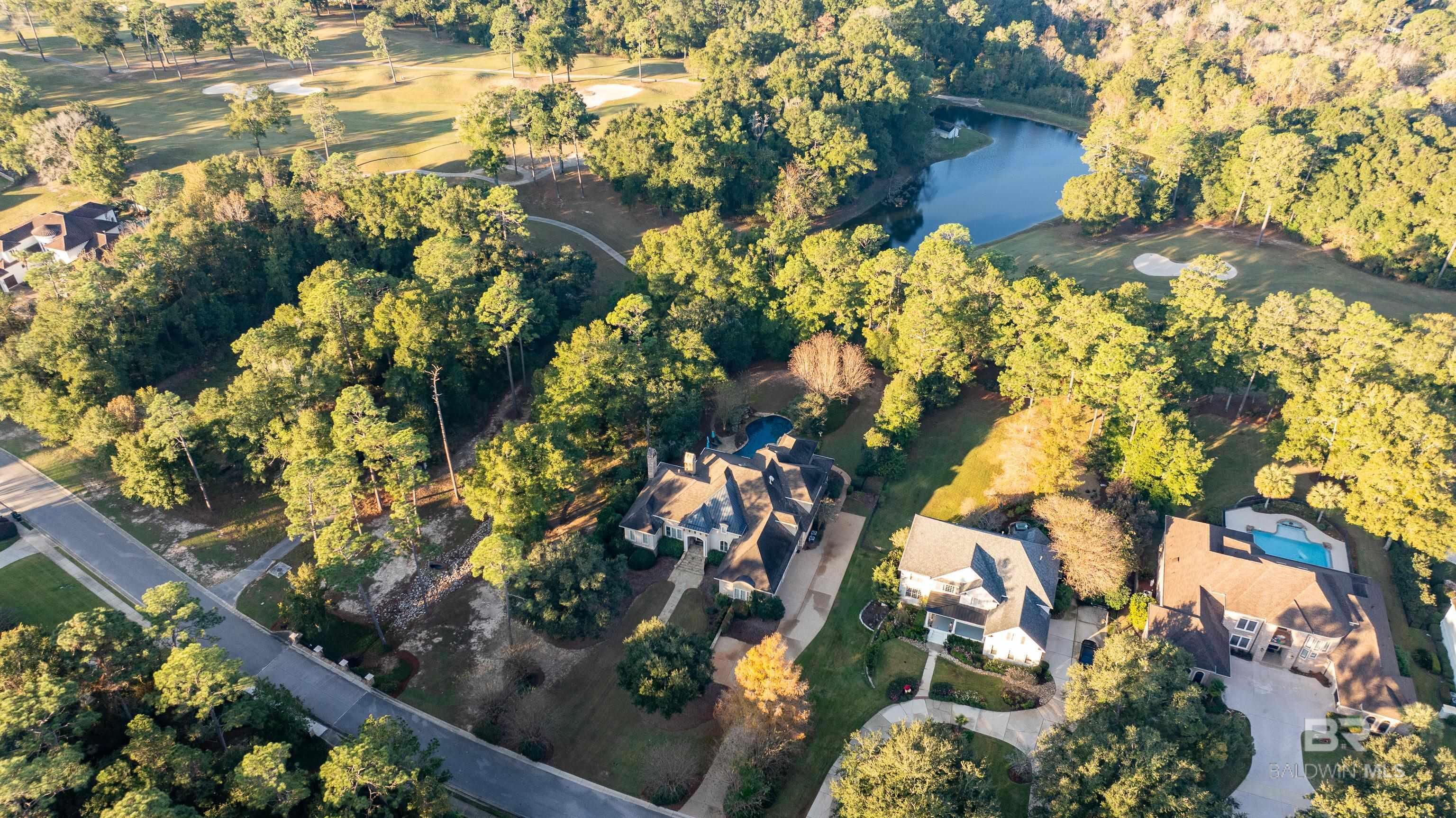 Tucked along the Rock Creek Golf Course in Fairhope, this exquisite French Country estate offers a rare blend of privacy, elegance, and resort-style living. From the moment you arrive, the home impresses with all-new professional landscaping featuring lush zoysia sod, fruit trees, updated drainage, irrigation, and beautifully lighted pathways that frame both the front and backyard. Inside, Brazilian teak floors span two levels, setting a warm and luxurious tone throughout. Four fireplaces add character and comfort, while abundant natural light fills the home. Thoughtful spaces include a dedicated home office, relaxing covered porches, and an effortless flow designed for both everyday living and entertaining. The open-concept kitchen is a true centerpiece, equipped with a stainless steel gas range, Sub-Zero refrigerator, tile countertops, and seamless connection to the main living areas. The expansive primary suite is a private retreat, featuring double vanities, a pedestal soaking tub, a walk-in shower, and an oversized walk-in closet. Designed for entertaining on a grand scale, the lower level boasts a massive entertainment room that opens directly to the backyard oasis. Complete with a mini kitchen and full bathroom, this level also includes a dedicated home gym with cardio equipment and weights. Step outside to experience the show-stopping resort-style backyard, highlighted by a stunning pool, hot tub, cascading waterfalls, beautiful stonework and an outdoor balcony overlooking the entire space. Smart-home friendly, the residence allows effortless control of thermostats, TVs, whole-home music, garage doors, and LED lighting for the pool, hot tub, and waterfalls. Every detail of this home has been curated to elevate lifestyle and comfort, making it a truly exceptional offering in one of Fairhope’s most cozy golf course communities. Schedule an exclusive showing today and be delighted with the finest luxury amenities. Buyer to verify all information during due Buye