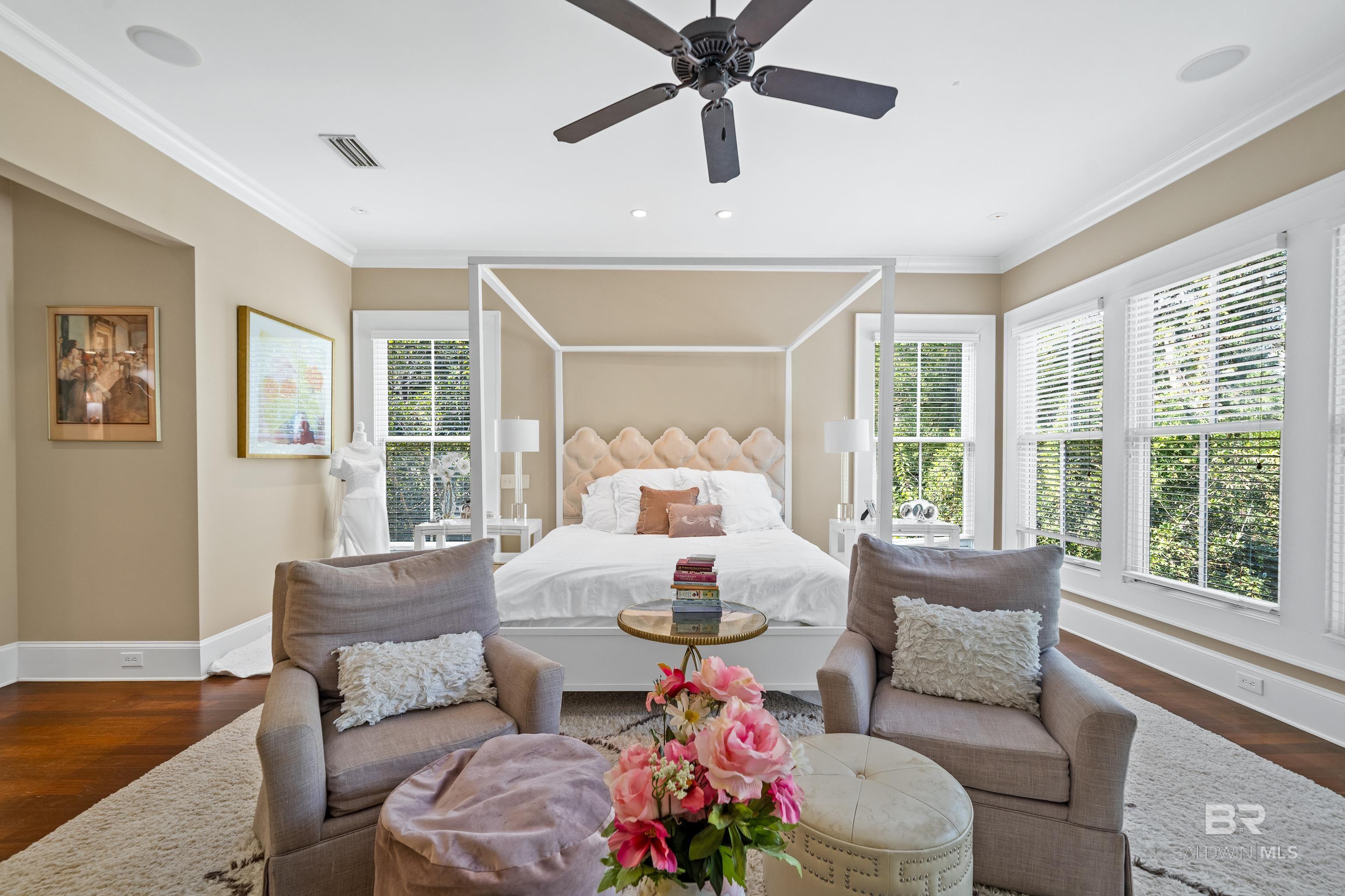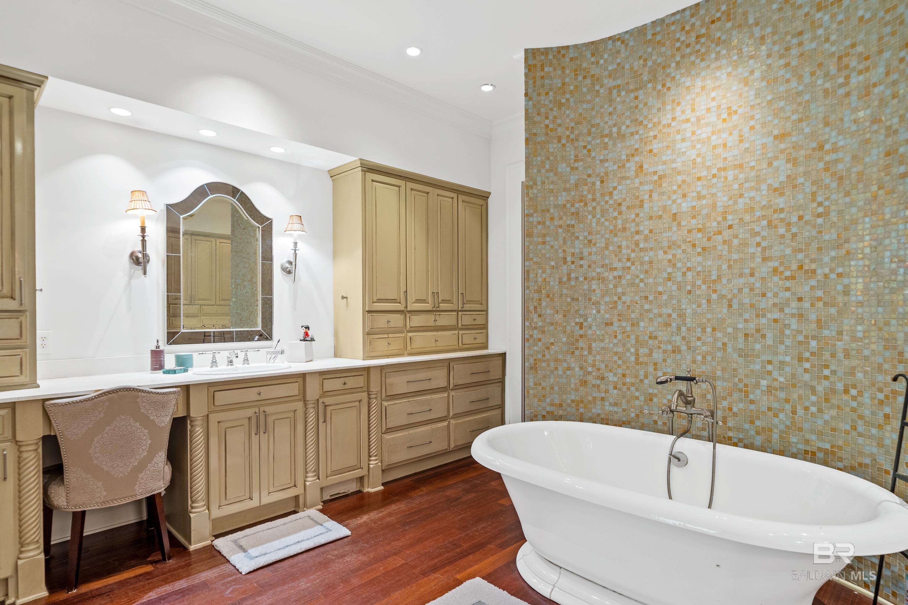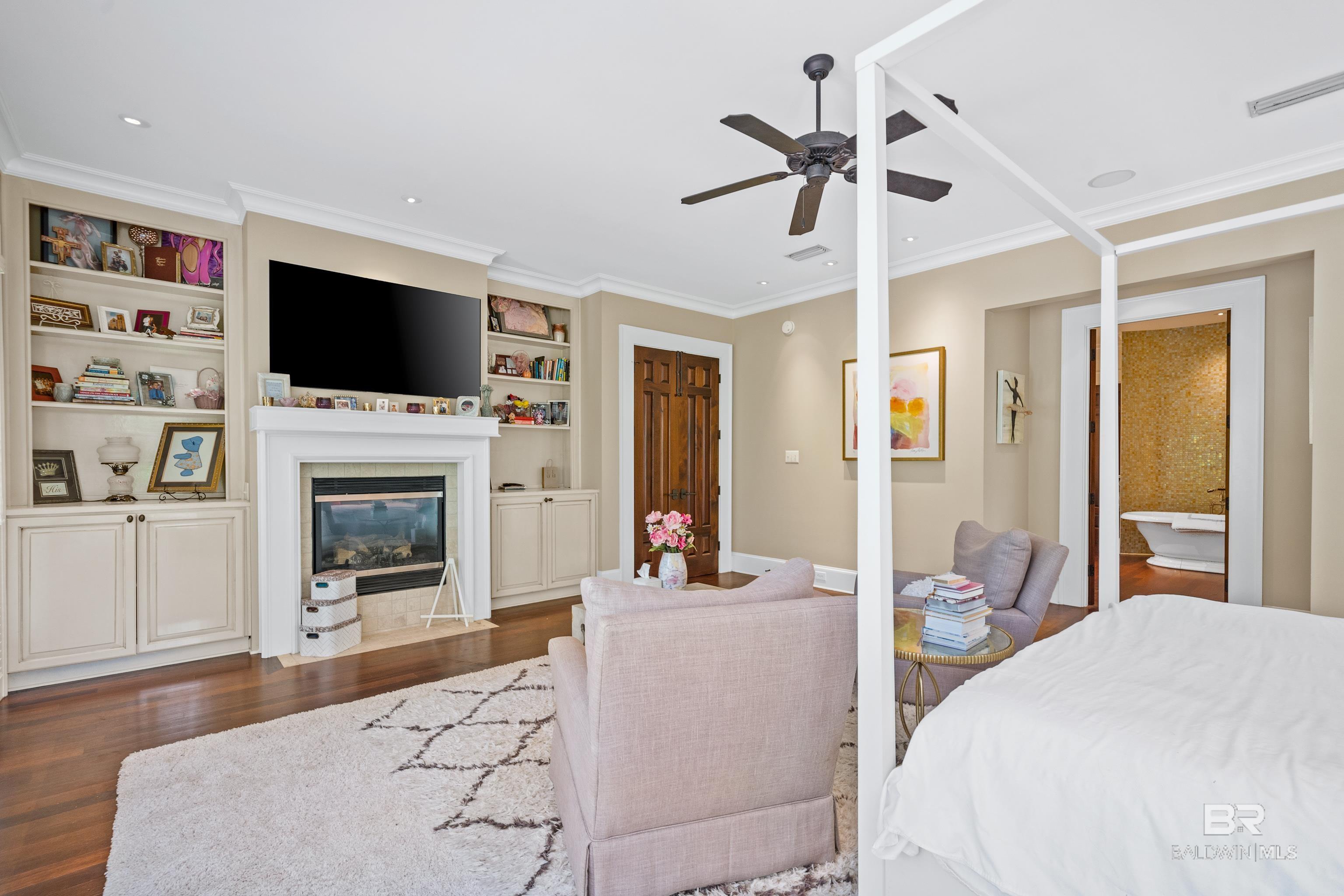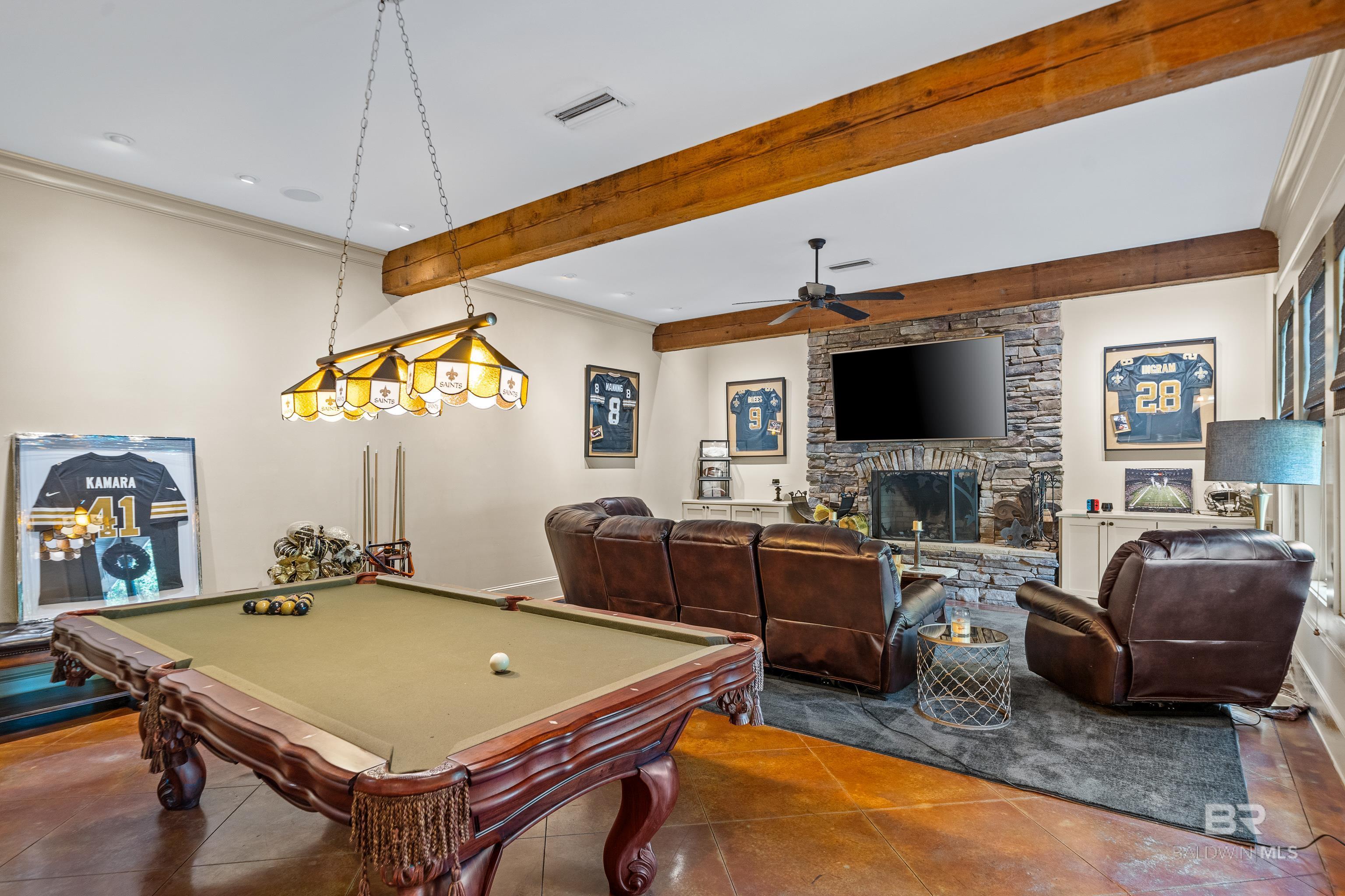 Tucked along the Rock Creek Golf Course in Fairhope, this exquisite French Country estate offers a rare blend of privacy, elegance, and resort-style living. From the moment you arrive, the home impresses with all-new professional landscaping featuring lush zoysia sod, fruit trees, updated drainage, irrigation, and beautifully lighted pathways that frame both the front and backyard. Inside, Brazilian teak floors span two levels, setting a warm and luxurious tone throughout. Four fireplaces add character and comfort, while abundant natural light fills the home. Thoughtful spaces include a dedicated home office, relaxing covered porches, and an effortless flow designed for both everyday living and entertaining. The open-concept kitchen is a true centerpiece, equipped with a stainless steel gas range, Sub-Zero refrigerator, tile countertops, and seamless connection to the main living areas. The expansive primary suite is a private retreat, featuring double vanities, a pedestal soaking tub, a walk-in shower, and an oversized walk-in closet. Designed for entertaining on a grand scale, the lower level boasts a massive entertainment room that opens directly to the backyard oasis. Complete with a mini kitchen and full bathroom, this level also includes a dedicated home gym with cardio equipment and weights. Step outside to experience the show-stopping resort-style backyard, highlighted by a stunning pool, hot tub, cascading waterfalls, beautiful stonework and an outdoor balcony overlooking the entire space. Smart-home friendly, the residence allows effortless control of thermostats, TVs, whole-home music, garage doors, and LED lighting for the pool, hot tub, and waterfalls. Every detail of this home has been curated to elevate lifestyle and comfort, making it a truly exceptional offering in one of Fairhope’s most cozy golf course communities. Schedule an exclusive showing today and be delighted with the finest luxury amenities. Buyer to verify all information during due Buye