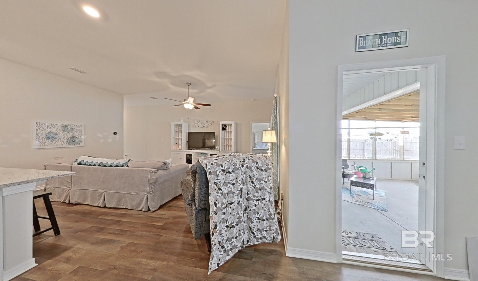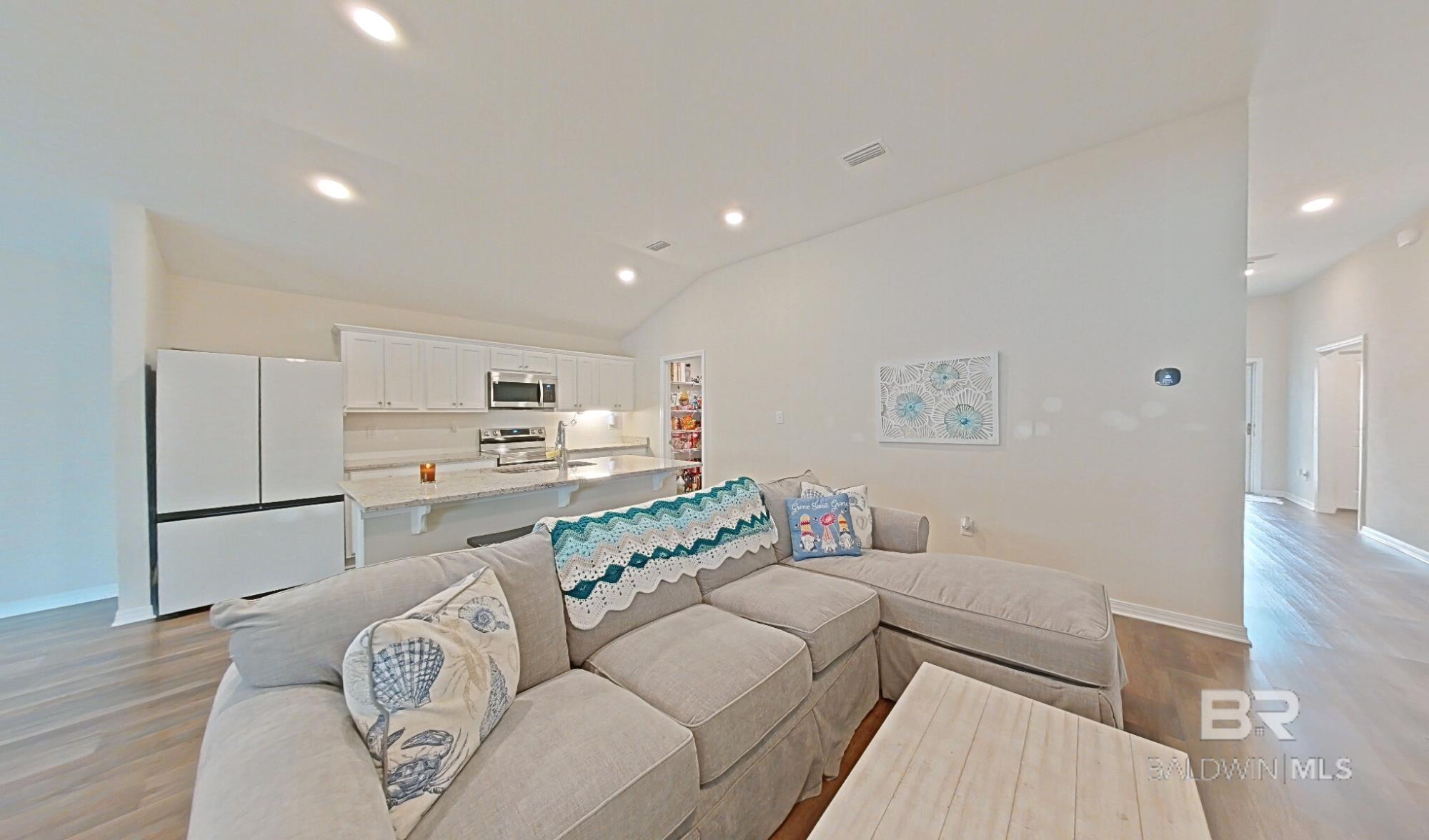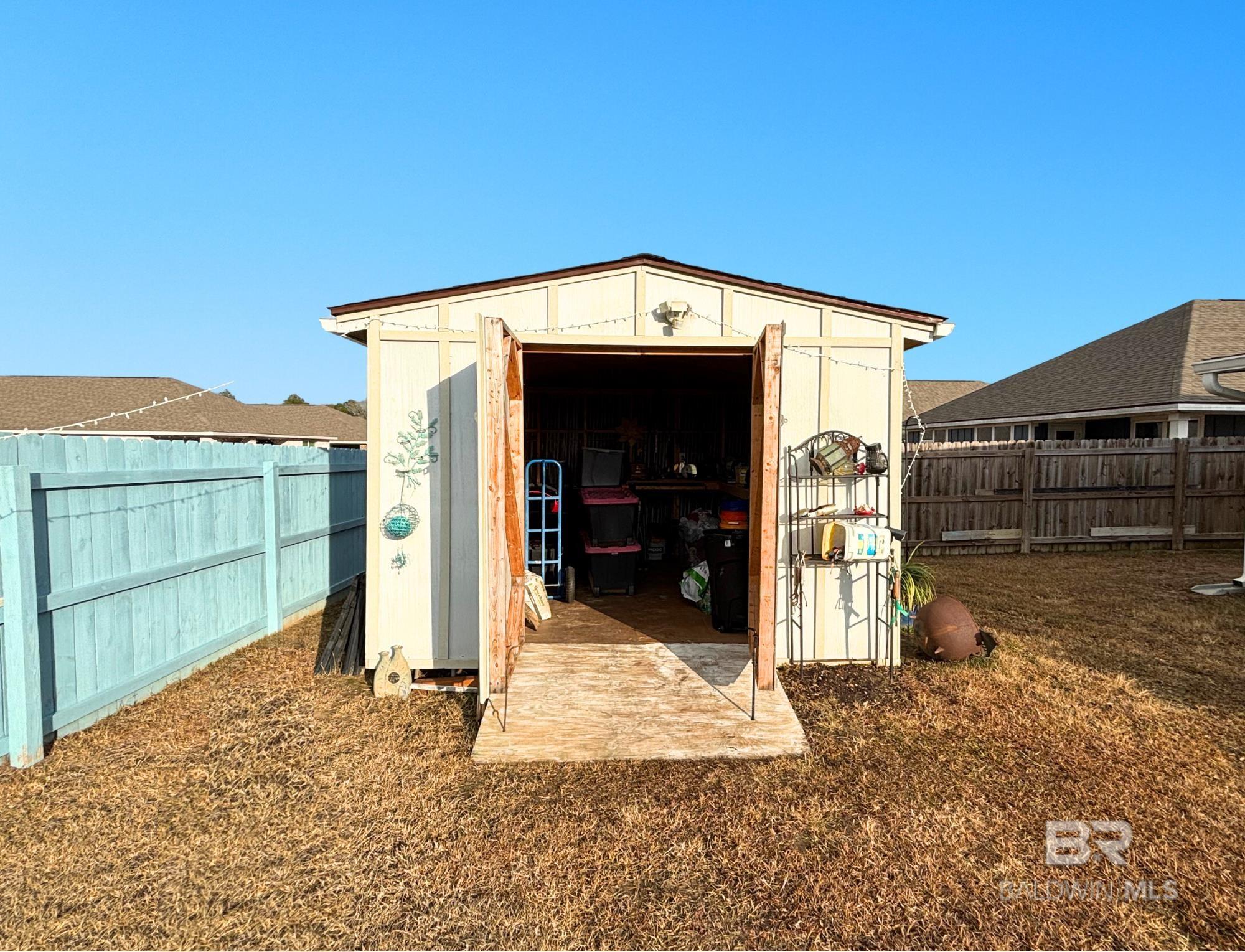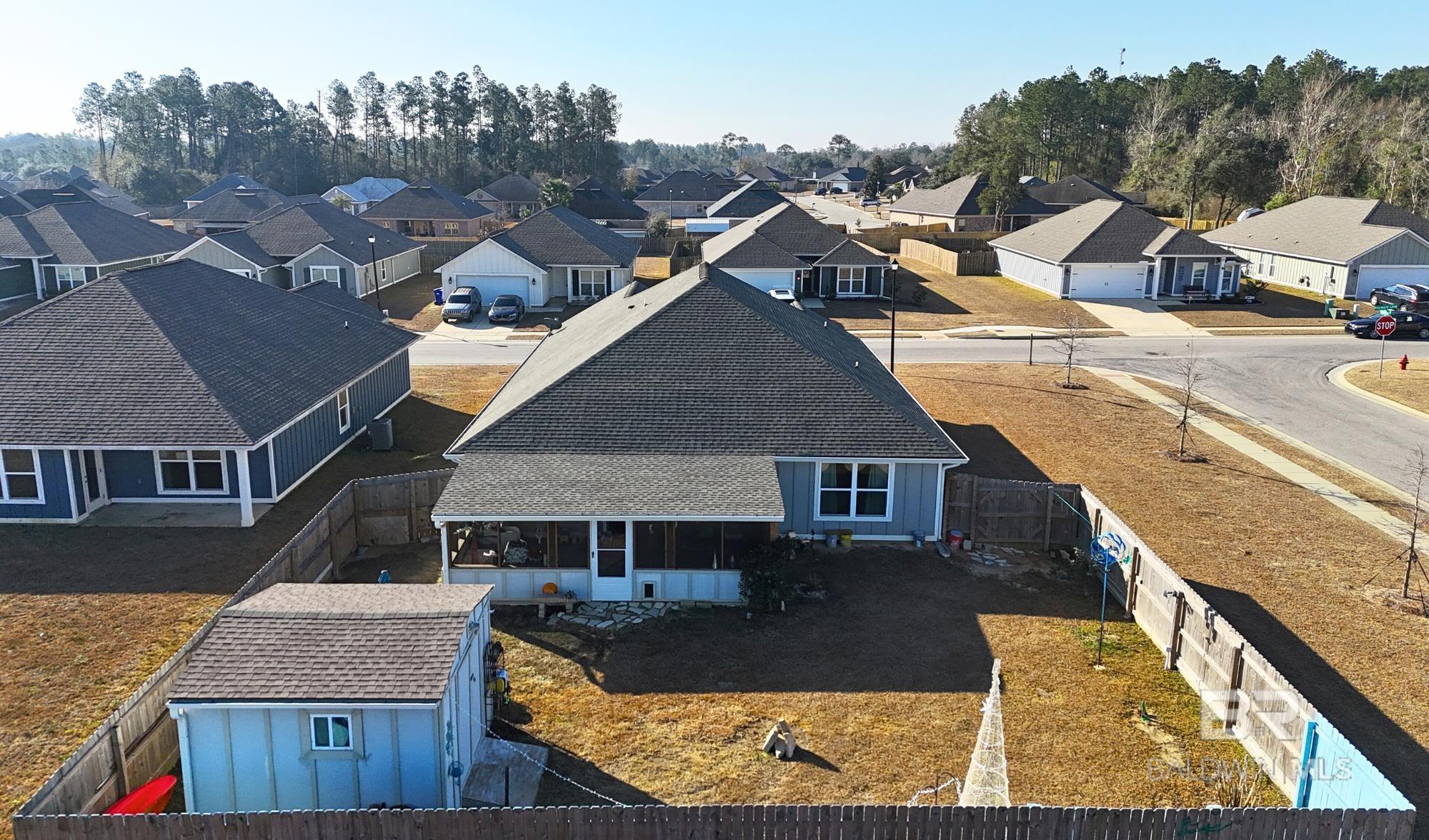 Don't miss out on this corner-lot, 4BED/3BA (Rushmore Plan- Truland built) property, built in 2022 and featuring many seller-completed custom upgrades- this is a great opportunity to buy a GOLD Fortified, move-in ready home that offers easy living in the Rosewood at Arbor Walk subdivision, just minutes away from nearby dining, entertainment, and schools, and of course, the beautiful beaches of Gulf Shores and Orange Beach. This SMART home features 12’x24’ screened-in patio (extension) w/ two ceiling fans, fenced backyard w/ added rear waterspouts, stick-built shed w/ electrical outlets, updated tile/toilets in both guest bathrooms, extra exterior electrical & security lighting, widened driveway, gutters around the home and shed, storm doors at front & patio entrances, granite countertops throughout, EVP flooring throughout, double garage, tall ceilings, and more; enjoy the convenience of hurricane fabric storm protection and a termite bond already in place, as well! The primary suite includes spacious closet, trey ceiling, large shower w/ seat, double granite vanities, and ceramic undermount sinks. The kitchen offers white painted cabinetry, granite countertops (white ornamental), tiled backsplash, stainless steel Samsung appliances, brushed nickel finishes, spacious pantry, and large island w/ stainless-steel sink. Finally, two guest bedrooms are located at the front of the home off the spacious foyer, along with a private 4th bedroom w/ en-suite bathroom featuring upgraded tile, stand-in shower. The Rosewood community offers a pool w/ shaded seating, walking trails throughout, and multiple ponds. Schedule a showing to see this wonderful listing today! *Photography/media reflects condition of property at the time of listing. Buyer to verify all information during due diligence.
