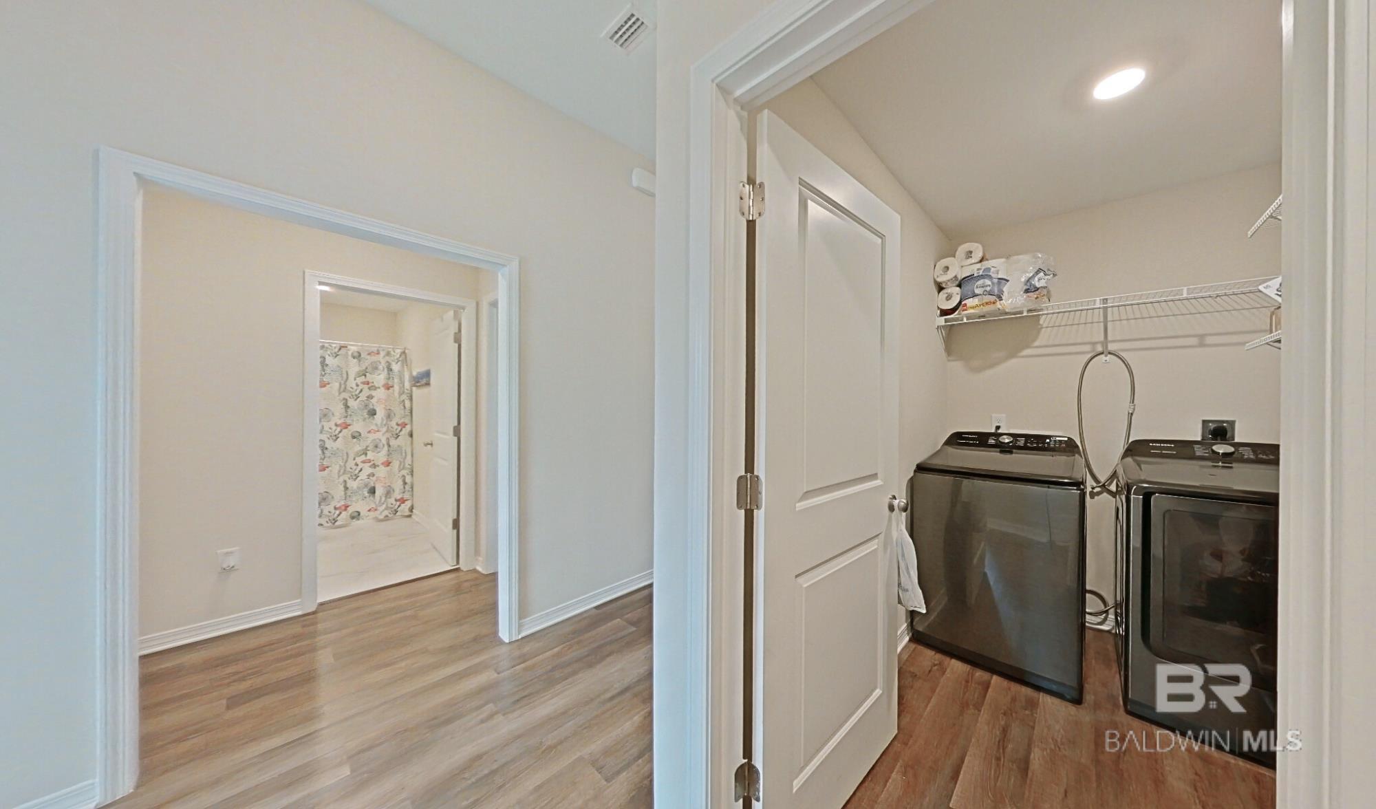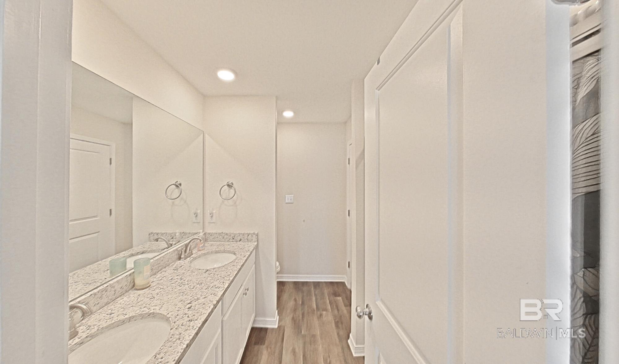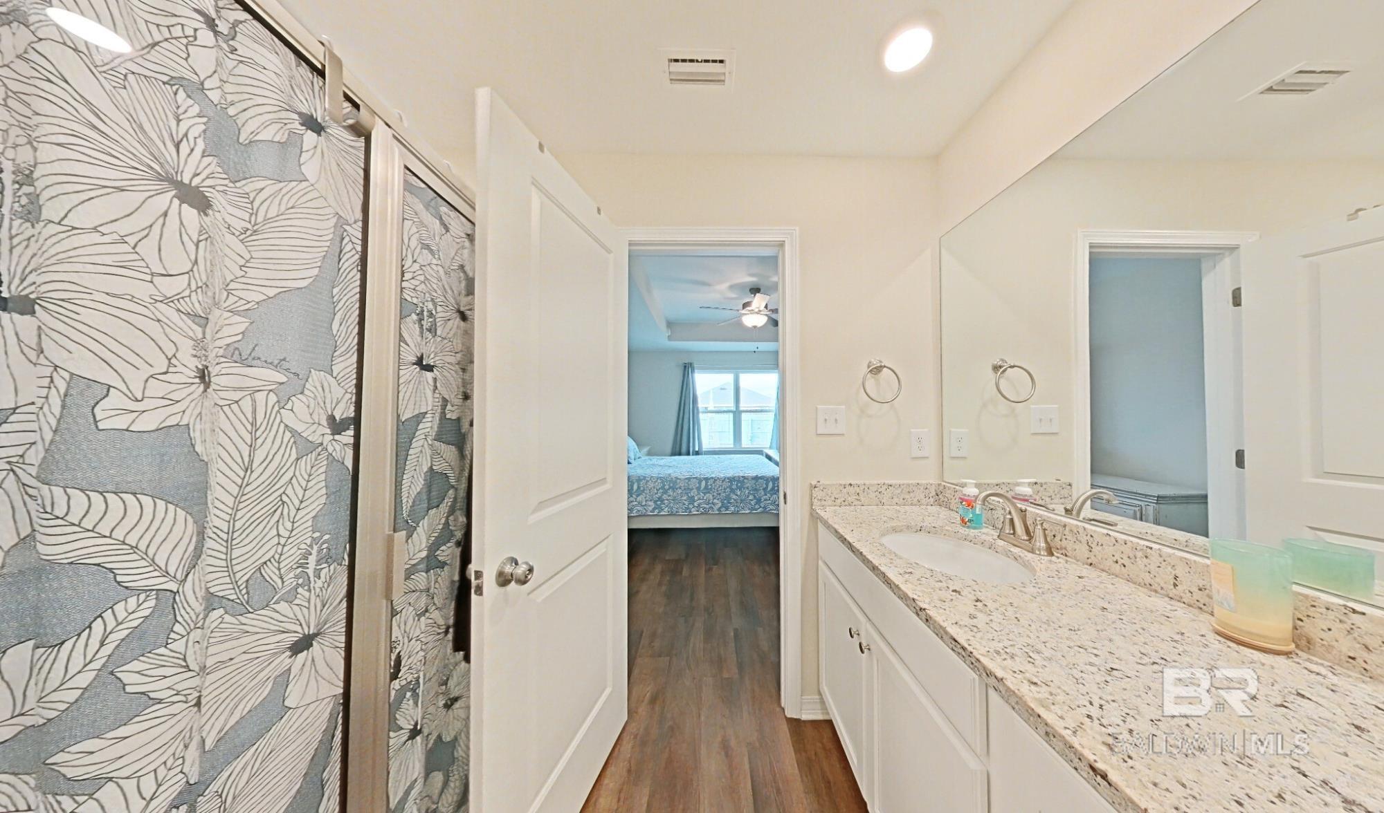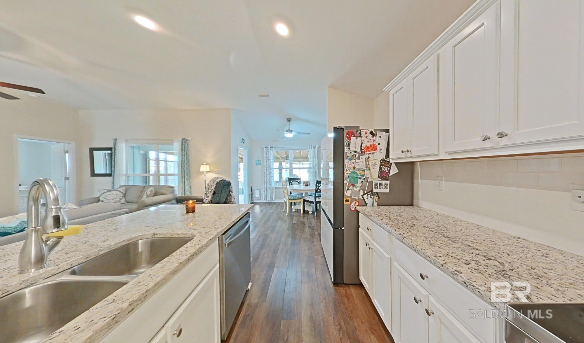 Don't miss out on this corner-lot, 4BED/3BA (Rushmore Plan- Truland built) property, built in 2022 and featuring many seller-completed custom upgrades- this is a great opportunity to buy a GOLD Fortified, move-in ready home that offers easy living in the Rosewood at Arbor Walk subdivision, just minutes away from nearby dining, entertainment, and schools, and of course, the beautiful beaches of Gulf Shores and Orange Beach. This SMART home features 12’x24’ screened-in patio (extension) w/ two ceiling fans, fenced backyard w/ added rear waterspouts, stick-built shed w/ electrical outlets, updated tile/toilets in both guest bathrooms, extra exterior electrical & security lighting, widened driveway, gutters around the home and shed, storm doors at front & patio entrances, granite countertops throughout, EVP flooring throughout, double garage, tall ceilings, and more; enjoy the convenience of hurricane fabric storm protection and a termite bond already in place, as well! The primary suite includes spacious closet, trey ceiling, large shower w/ seat, double granite vanities, and ceramic undermount sinks. The kitchen offers white painted cabinetry, granite countertops (white ornamental), tiled backsplash, stainless steel Samsung appliances, brushed nickel finishes, spacious pantry, and large island w/ stainless-steel sink. Finally, two guest bedrooms are located at the front of the home off the spacious foyer, along with a private 4th bedroom w/ en-suite bathroom featuring upgraded tile, stand-in shower. The Rosewood community offers a pool w/ shaded seating, walking trails throughout, and multiple ponds. Schedule a showing to see this wonderful listing today! *Photography/media reflects condition of property at the time of listing. Buyer to verify all information during due diligence.
