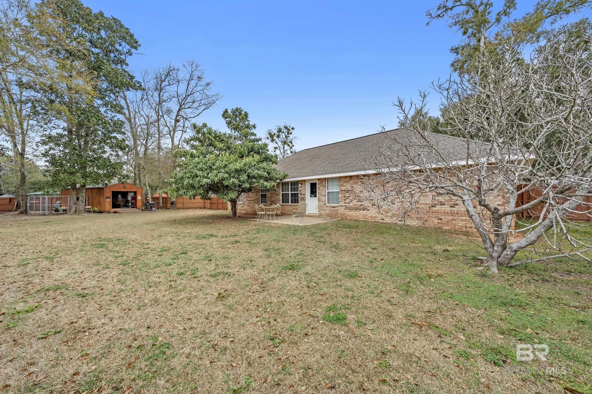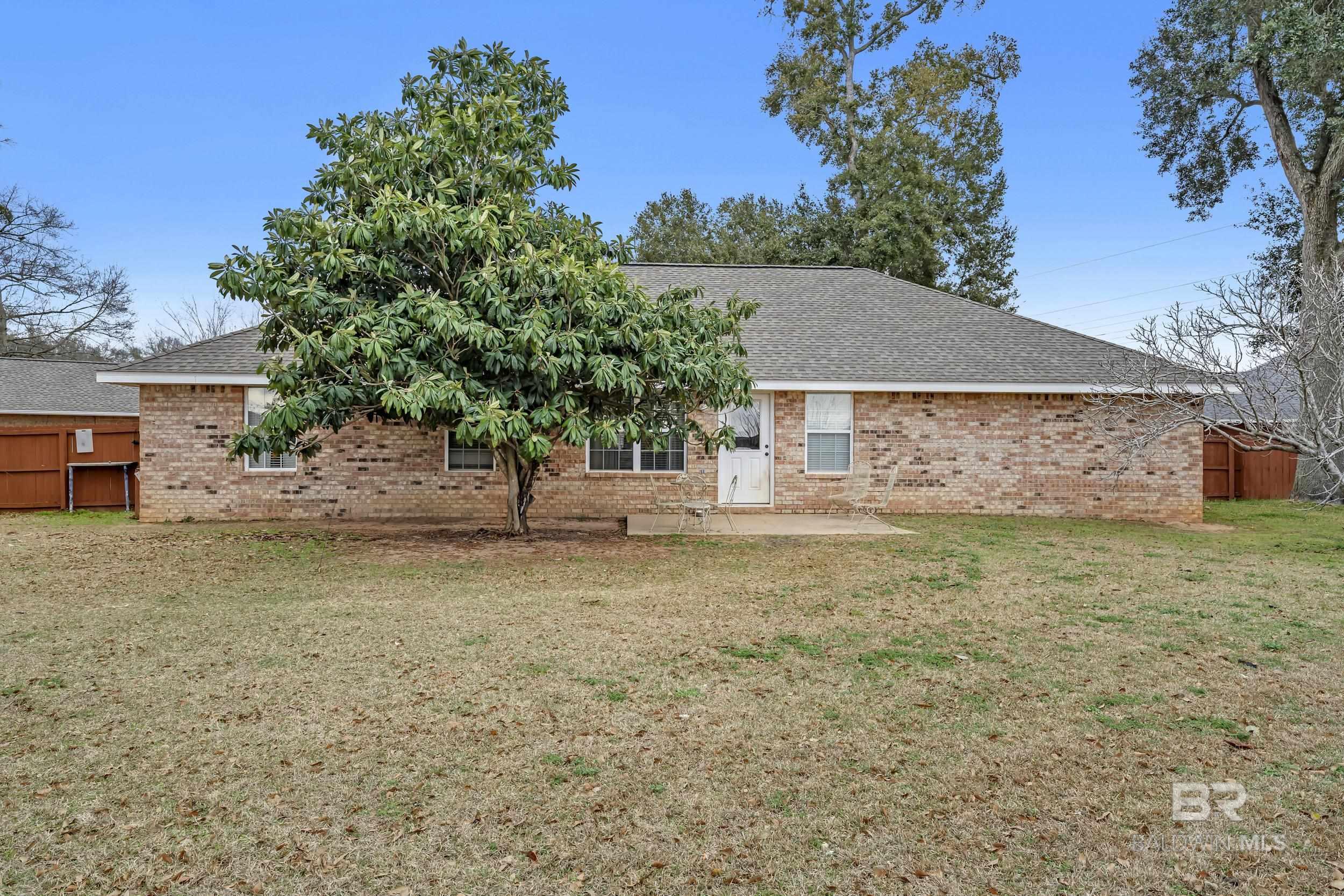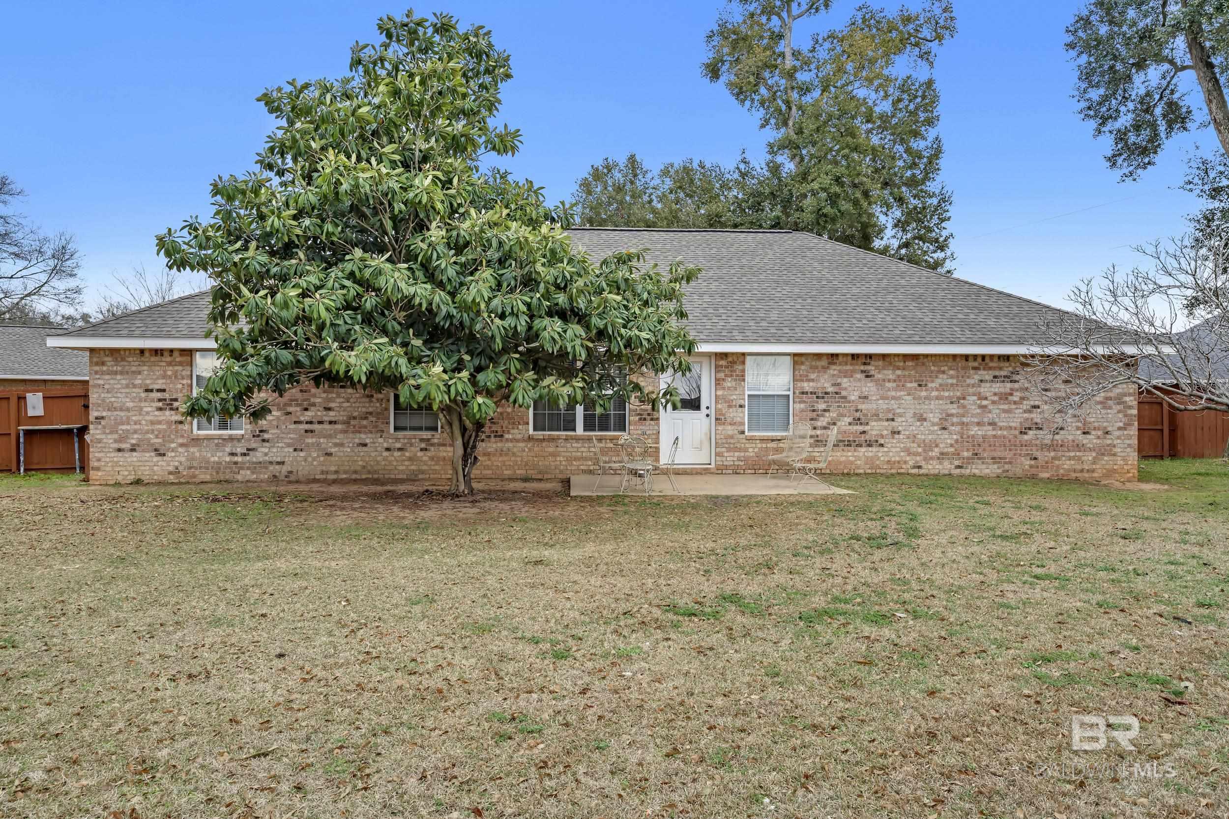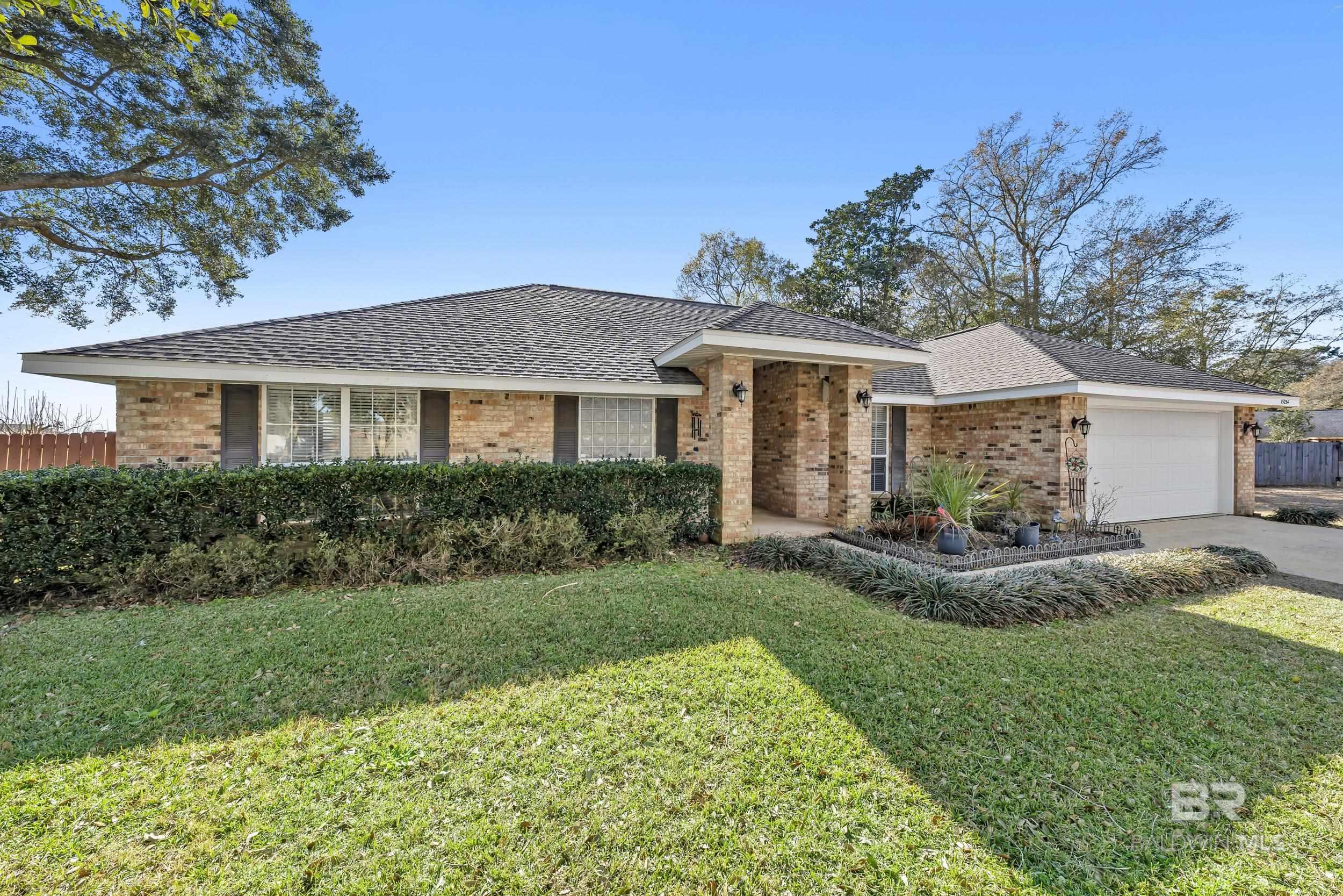 Curb Appeal in the Cul-De-Sac! Welcome to Camellia Woods, a charming neighborhood in the quaint community of Silverhill, Alabama. Winding streets lead to a well maintained brick home beneath the shade of a mighty oak tree in an inviting cul-de-sac. Home features 1,776 sf with 3 bedrooms and 2 baths, an open concept living room with a vaulted ceiling and split bedroom plan offering privacy for the primary suite. The well appointed kitchen includes a peninsula that grants generous countertop space. Updated flooring, primary bathroom vanities and tub/shower combination highlight the spacious primary suite that boasts large double closets. The back yard is one of the few that feature shade from mature trees and also fruit trees including loquat, fig and pear trees. The length and overall shape of the backyard ensure privacy and space, while there is also a double gate to enter the back yard from the front. A double garage and Graceland shed in the back yard offer plenty of room for parking and storage. Schedule your visit today to tour this well maintained home with a FORTIFIED ROOF! Buyer to verify all information during due diligence.