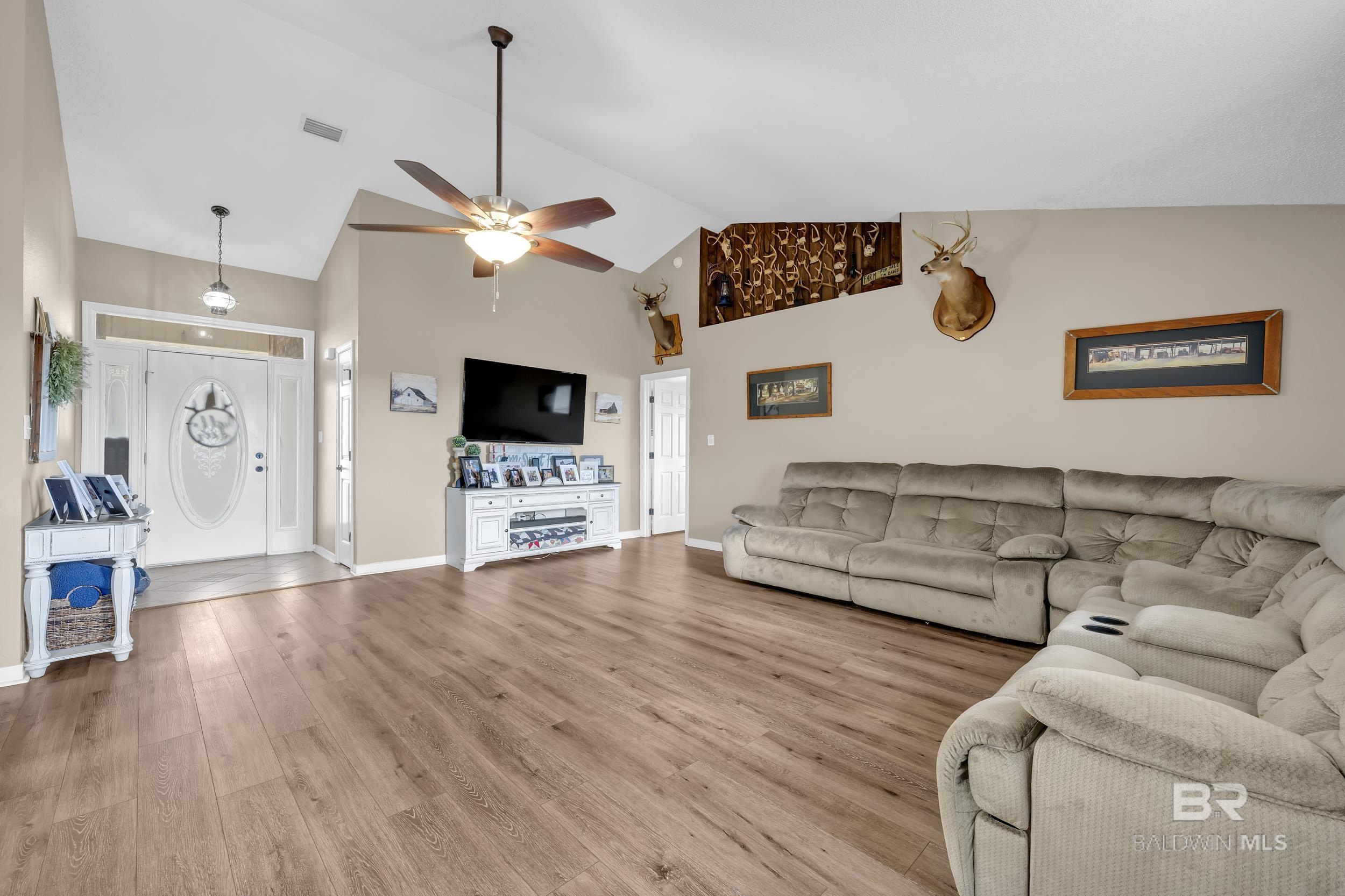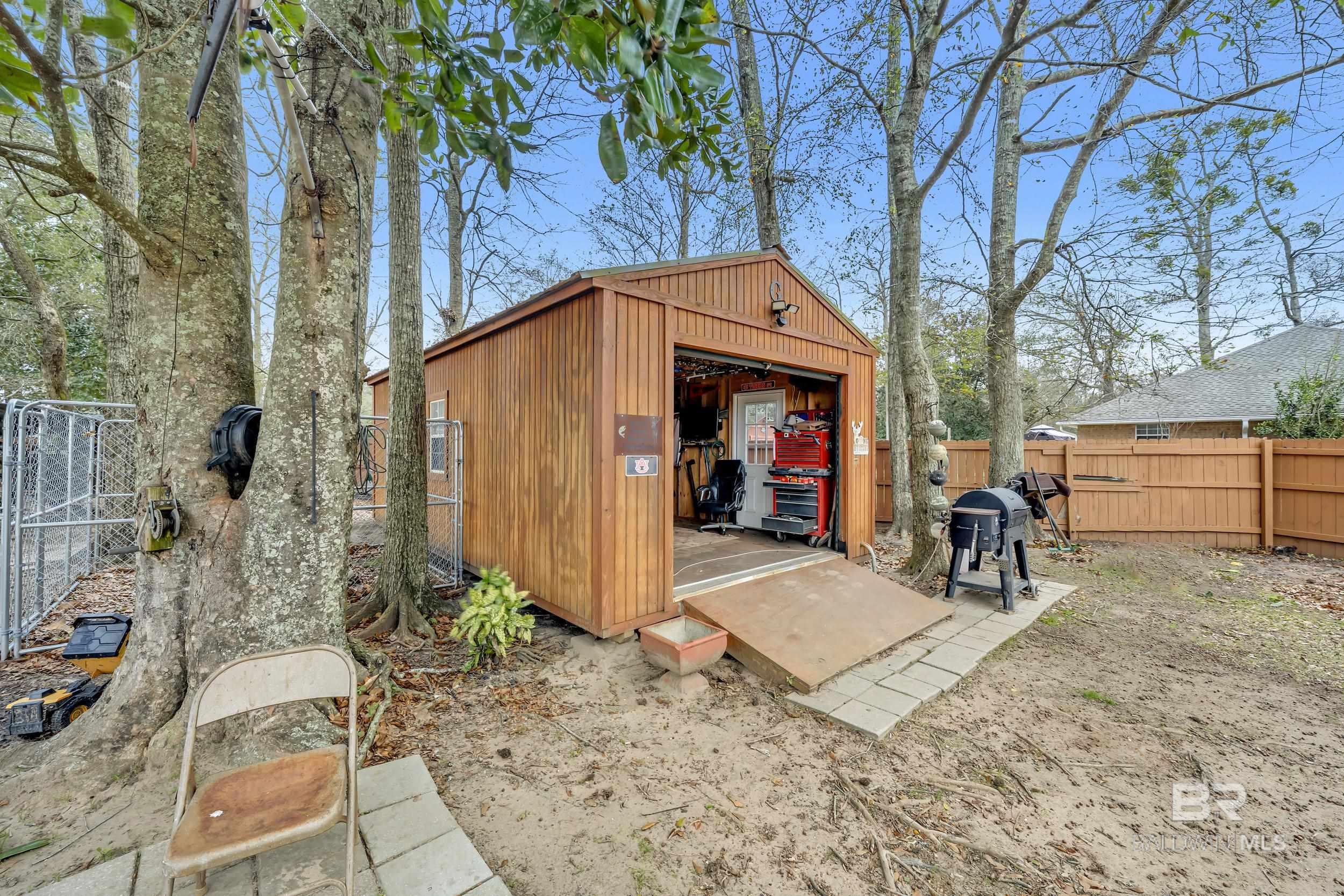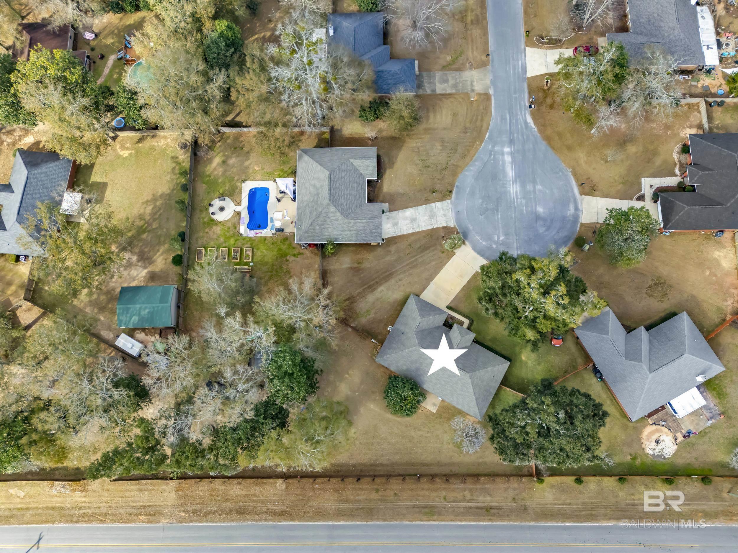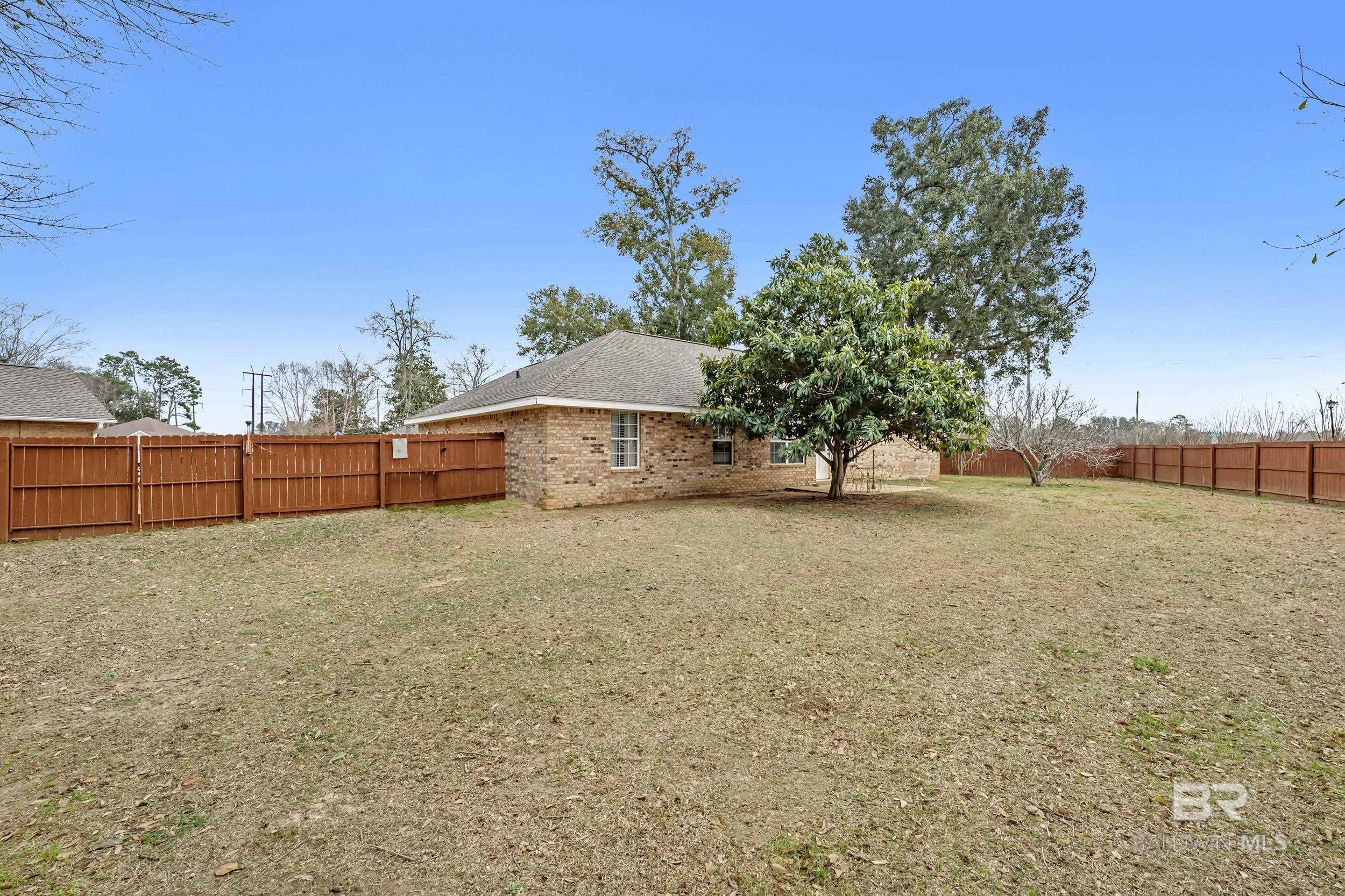 Curb Appeal in the Cul-De-Sac! Welcome to Camellia Woods, a charming neighborhood in the quaint community of Silverhill, Alabama. Winding streets lead to a well maintained brick home beneath the shade of a mighty oak tree in an inviting cul-de-sac. Home features 1,776 sf with 3 bedrooms and 2 baths, an open concept living room with a vaulted ceiling and split bedroom plan offering privacy for the primary suite. The well appointed kitchen includes a peninsula that grants generous countertop space. Updated flooring, primary bathroom vanities and tub/shower combination highlight the spacious primary suite that boasts large double closets. The back yard is one of the few that feature shade from mature trees and also fruit trees including loquat, fig and pear trees. The length and overall shape of the backyard ensure privacy and space, while there is also a double gate to enter the back yard from the front. A double garage and Graceland shed in the back yard offer plenty of room for parking and storage. Schedule your visit today to tour this well maintained home with a FORTIFIED ROOF! Buyer to verify all information during due diligence.