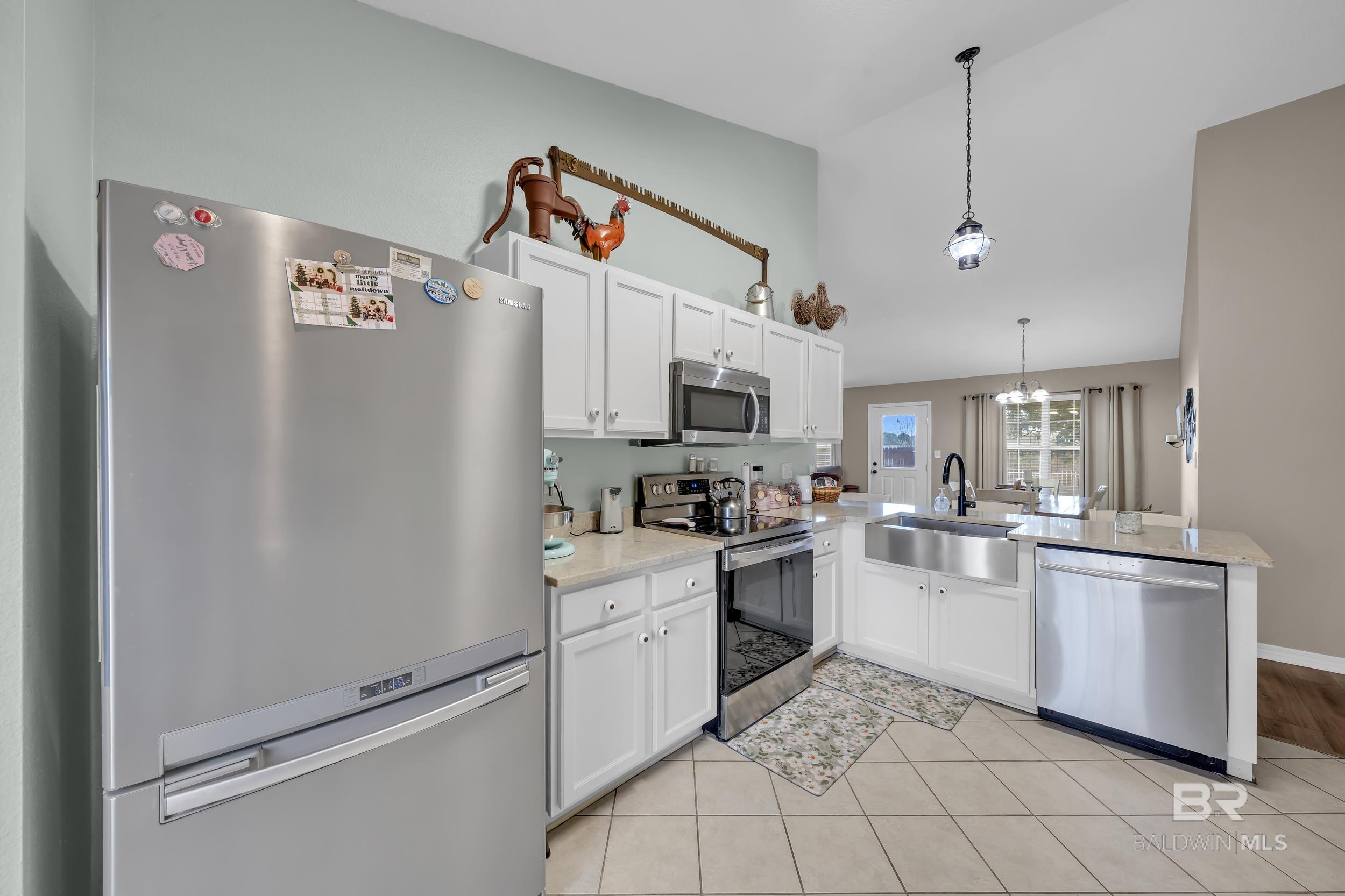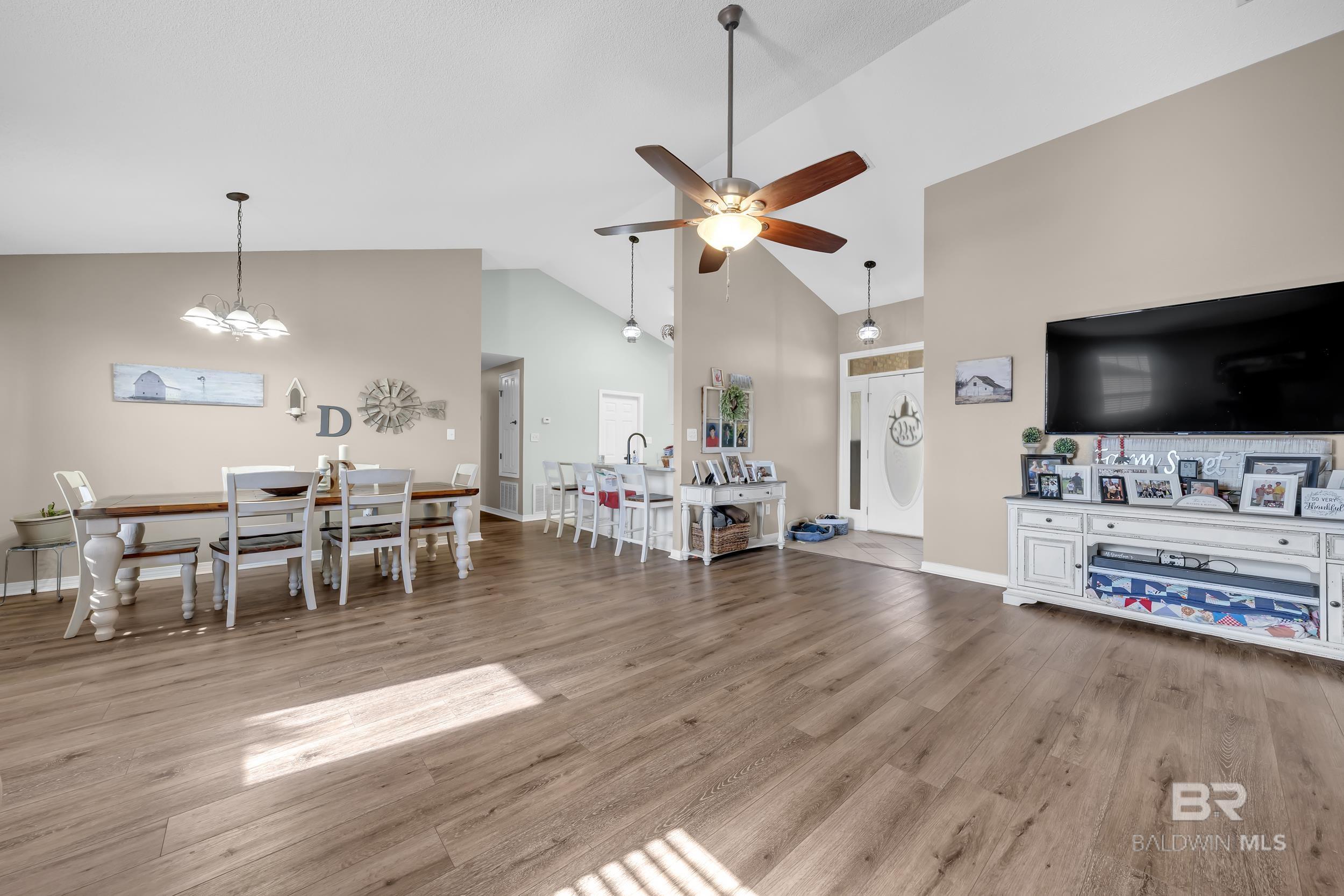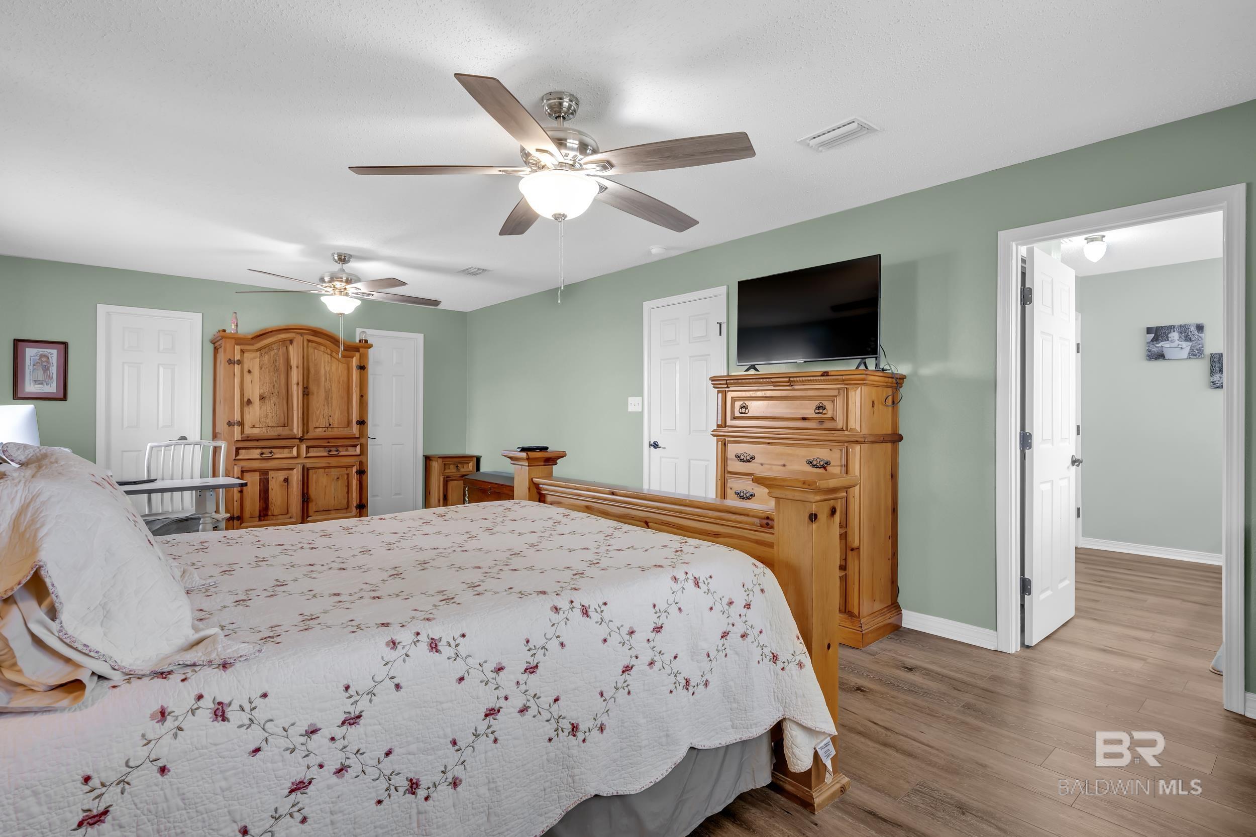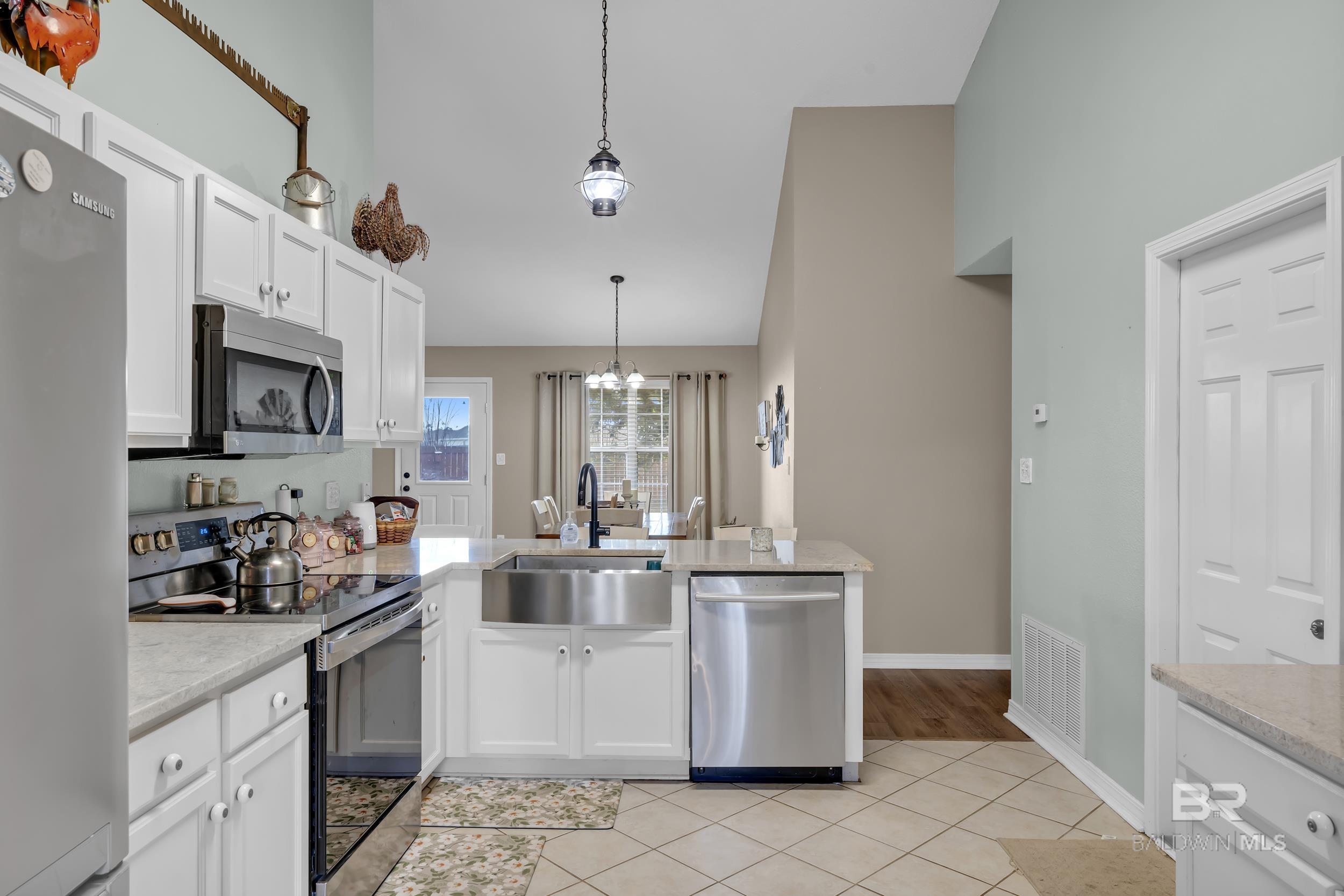 Curb Appeal in the Cul-De-Sac! Welcome to Camellia Woods, a charming neighborhood in the quaint community of Silverhill, Alabama. Winding streets lead to a well maintained brick home beneath the shade of a mighty oak tree in an inviting cul-de-sac. Home features 1,776 sf with 3 bedrooms and 2 baths, an open concept living room with a vaulted ceiling and split bedroom plan offering privacy for the primary suite. The well appointed kitchen includes a peninsula that grants generous countertop space. Updated flooring, primary bathroom vanities and tub/shower combination highlight the spacious primary suite that boasts large double closets. The back yard is one of the few that feature shade from mature trees and also fruit trees including loquat, fig and pear trees. The length and overall shape of the backyard ensure privacy and space, while there is also a double gate to enter the back yard from the front. A double garage and Graceland shed in the back yard offer plenty of room for parking and storage. Schedule your visit today to tour this well maintained home with a FORTIFIED ROOF! Buyer to verify all information during due diligence.