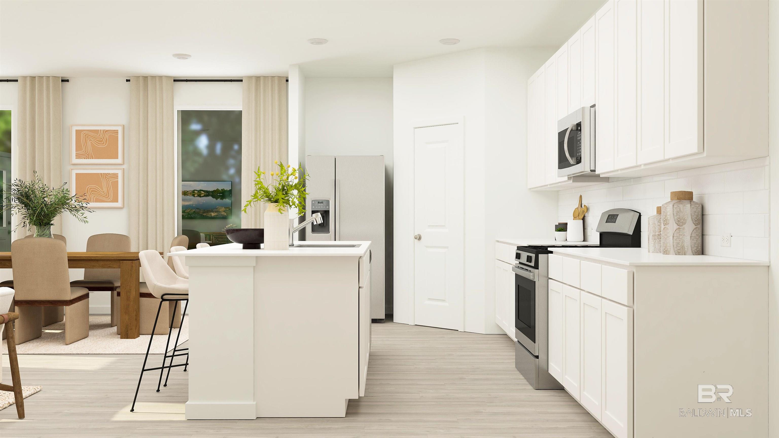 This beautifully designed 4-bedroom, 3-bath home with a versatile flex room offers incredible value in a desirable new community. Just a short drive from the white sandy beaches of Gulf Shores and Orange Beach, and minutes from top shopping, dining, Tanger Outlets, and the OWA Entertainment District, this home blends comfort and convenience. The open-concept layout features quartz countertops, stainless steel appliances, white shaker-style cabinets, and abundant natural light throughout. A spacious covered back porch provides the perfect space for outdoor living, while the 4-side Hardie exterior ensures timeless curb appeal and long-lasting durability. The home also includes a 2-car garage and comes with a builder warranty for peace of mind. Tucked away in a quiet location yet close to everything, this is a rare opportunity to own a brand-new home in one of Baldwin County’s fastest-growing areas. Buyer to verify all information during due diligence.
