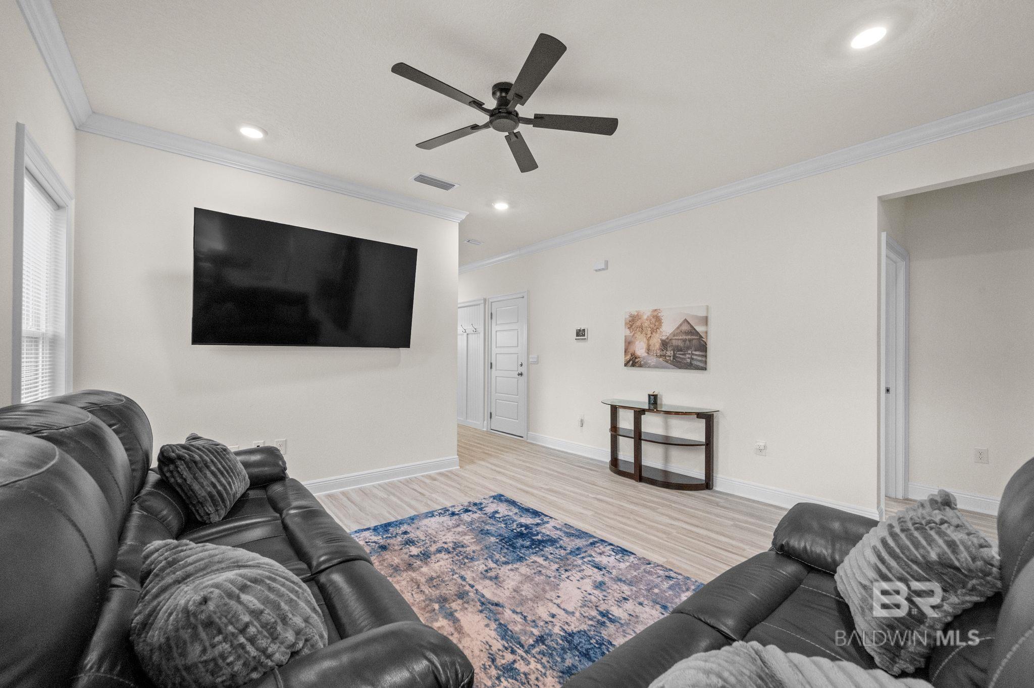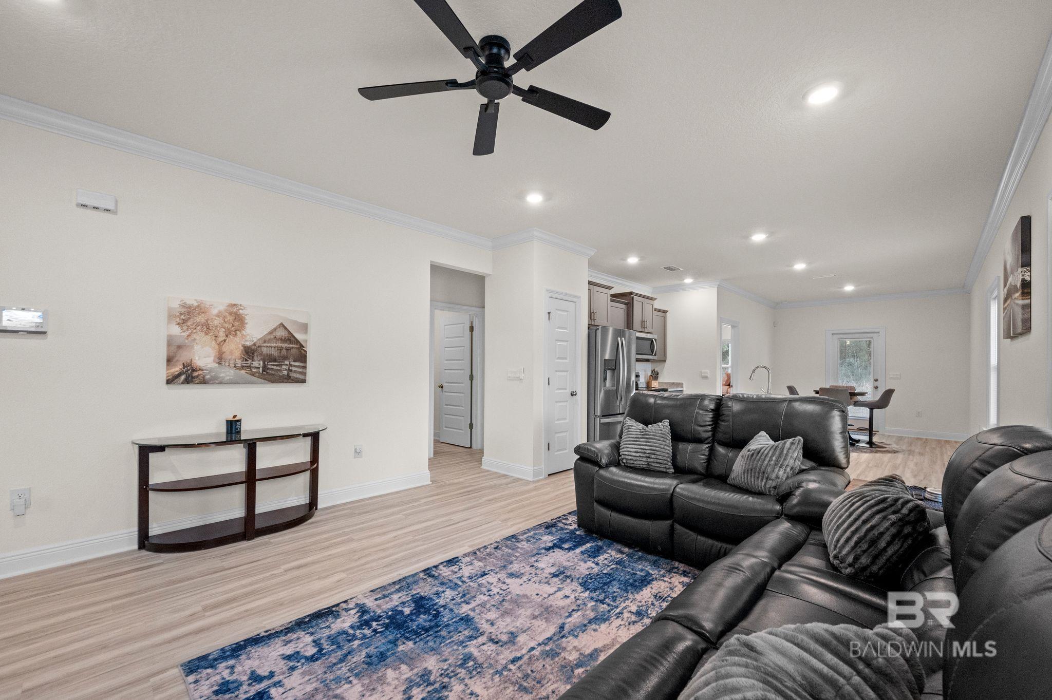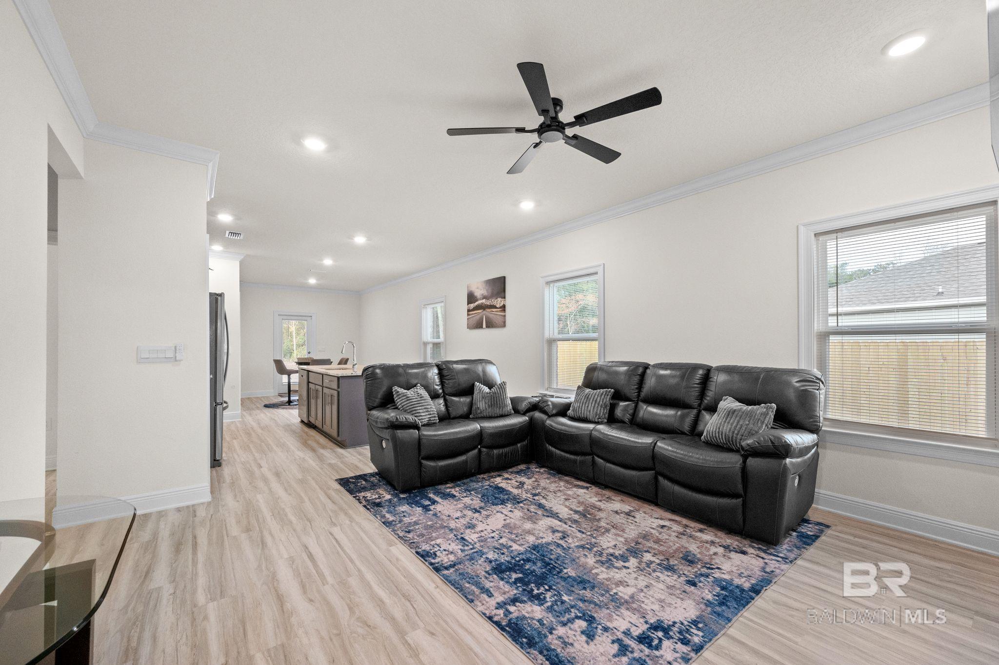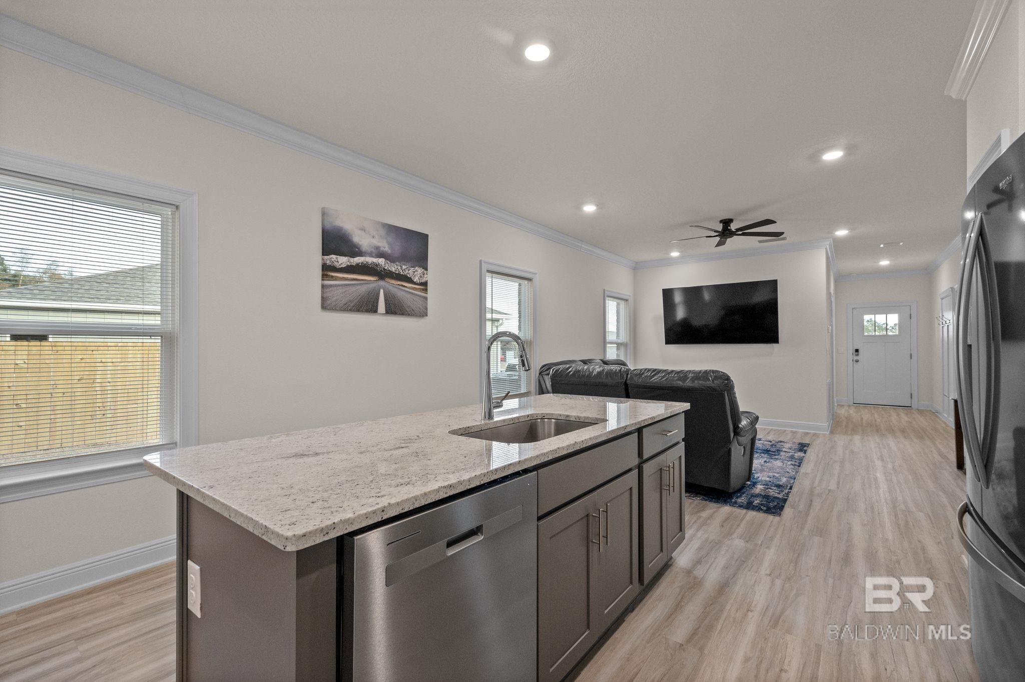 PREMIUM LOT, CUSTOM UPGRADES, TURNKEY AND READY FOR ITS NEW OWNER.Welcome to Cottonwood Estates, conveniently located just off County Road 32 on River Park Road with easy access to schools, shopping, dining, golf courses, and local attractions. OWA and the beautiful white sand beaches of Gulf Shores and Orange Beach are just a short drive away.This Julia floor plan features brick and Hardie board exterior construction with an attached single-car garage. Inside, the foyer opens to a spacious open-concept living and kitchen area ideal for everyday living and entertaining. At the front of the home, you’ll find a versatile flex space perfect for a home office, playroom, or additional sitting area.The kitchen includes granite countertops, a deep stainless under mount sink, stainless steel appliances, pantry, and a large island. Under-cabinet lighting highlights the custom tile backsplash, adding warmth and showcasing the upgraded finishes.Recent upgrades include a custom backsplash, new ceiling fans, and a custom, top-of-the-line hall tree adding both functionality and style.The primary suite offers a spacious bathroom with granite countertops, double under mount vanity, walk-in shower, and a large walk-in closet. Two additional bedrooms are located toward the front of the home along with a full guest bathroom.This home was built to Gold FORTIFIED Home™ certification standards, which may provide insurance savings for the buyer. A great opportunity to own a well-appointed home in a convenient Baldwin County location. Buyer to verify all information during due diligence.