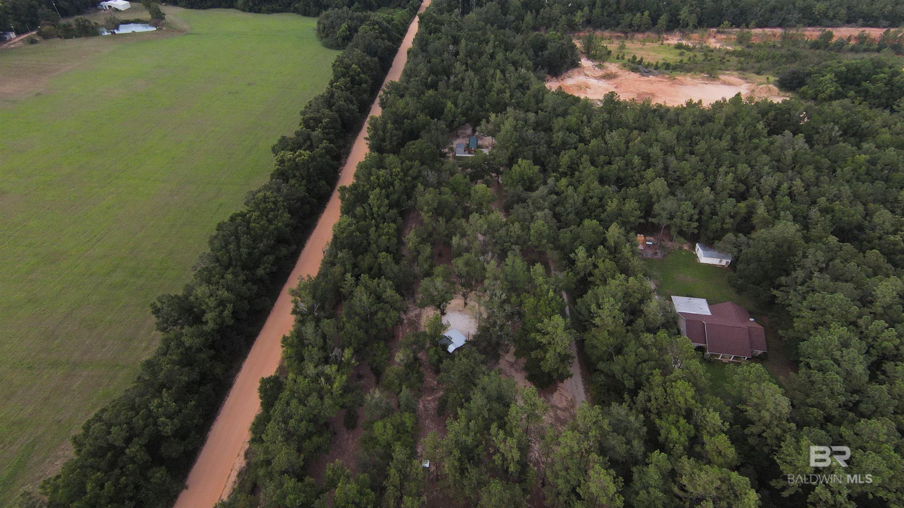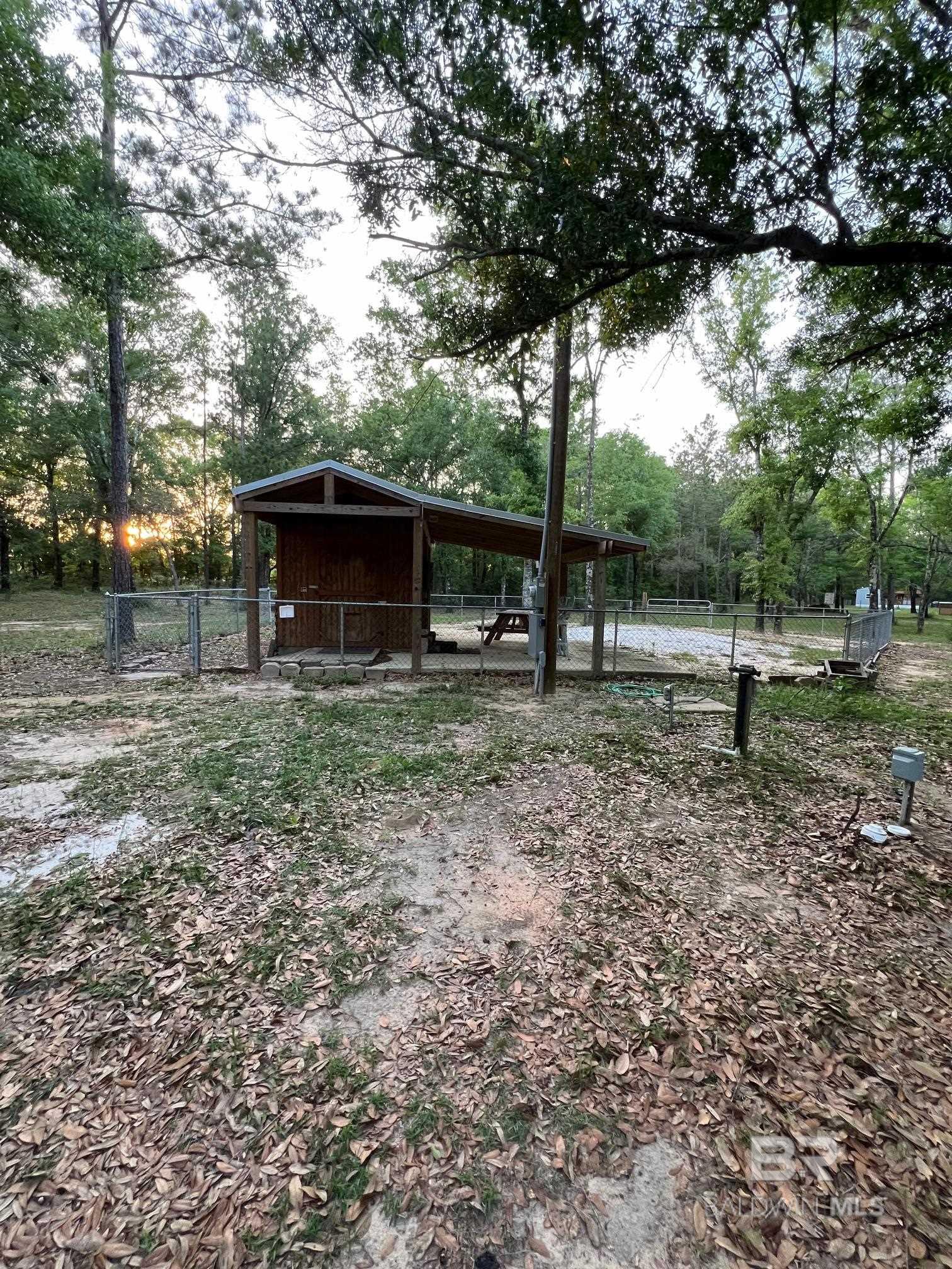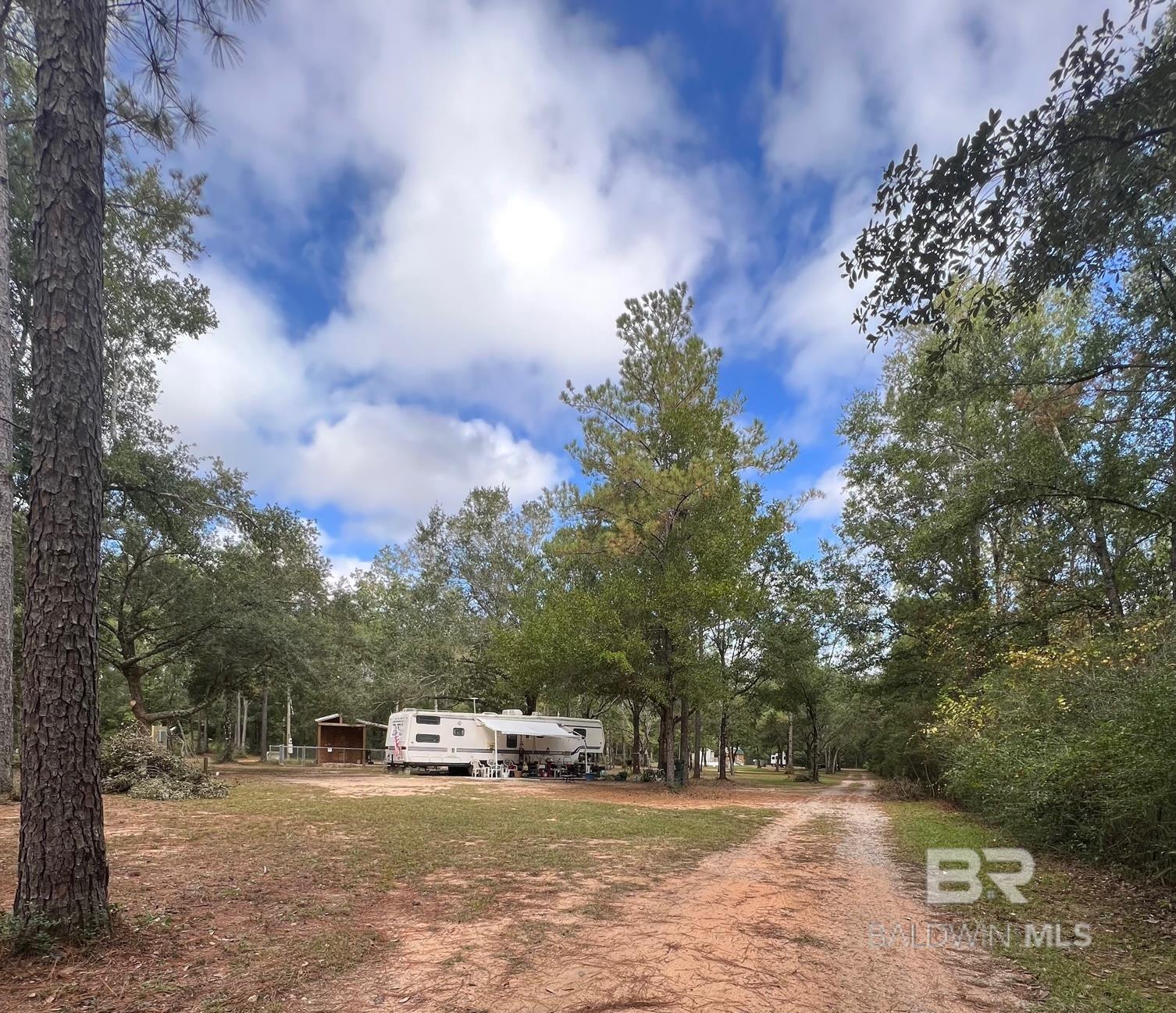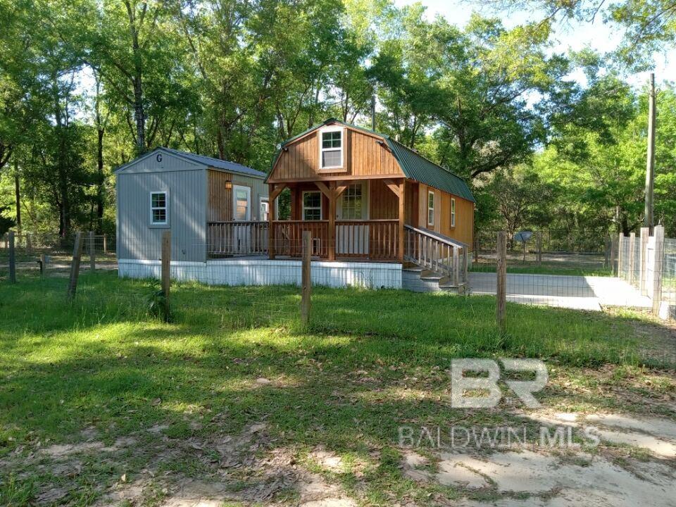Coastal 3.725-acre Property fenced with Tiny home and 2 entrances from Bishop Trace and Sunset Drive plenty of room for RVs and Boat Storage and rental income currently producing $1825/mo. There is NO HOA- So, Short term, Long term and vacation rentals are all accepted. Zoned Agricultural and ability to add 2 additional houses and another tiny home or RV living. Mobile Homes permitted. The principal structure is a 336 sq ft.Tiny Home, 1 bedroom, and a half bath, living space, kitchen and a deck that connects this home to the property's second living space, a 120 sq ft area that hosts a large full bathroom, washer and dryer, refrigerator and storage. The home has a private patio area and is fenced separately for pets. This property is completely fenced for pets, horses, chickens and farm animals permitted. Illuminating the property are three LED security lights with 3 electrical poles. There are 2 private wells, less than 7 years old. One had a new jet installed in March of 2023. The well water has been tested and certified by Auburn University. The Trane HVAC system was replaced in 2019 and has been regularly serviced. An additional storage building is fitted with fresh well water and is less than 5 years old, and had a new jet installed in March of 2023. AMP, septic, and fresh, cool water available to connect. Washer and dryer hook ups also in 2nd building. There is a 8x18 concrete RV pad with hookups for permitted outdoor RV living space. Keep your vehicle cool and out of the weather in the 10x24, detached covered carport. This property also has a 10x20 shipping container to store all your outdoor beach toys. The Lillian boat launch is just 5 minutes away. Nestled in the serene countryside, this charming property offers a blend of peaceful rural living and convenient access to Gulf Coast amenities of Pensacola, NAS, Gulf Shores, Foley, and Orange Beach. Country Coastal Living at its best. Property Owner is the listing agent. Buyer to verify all information during