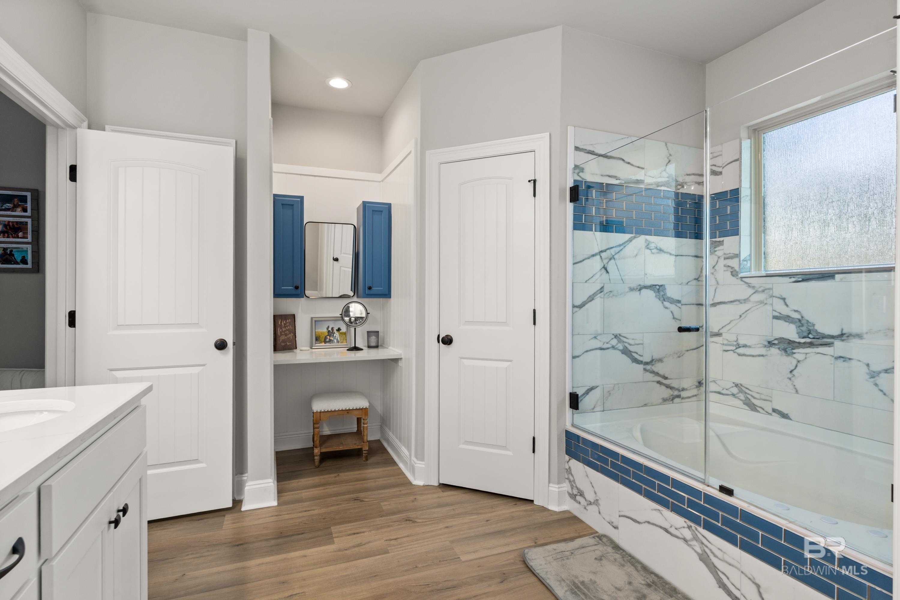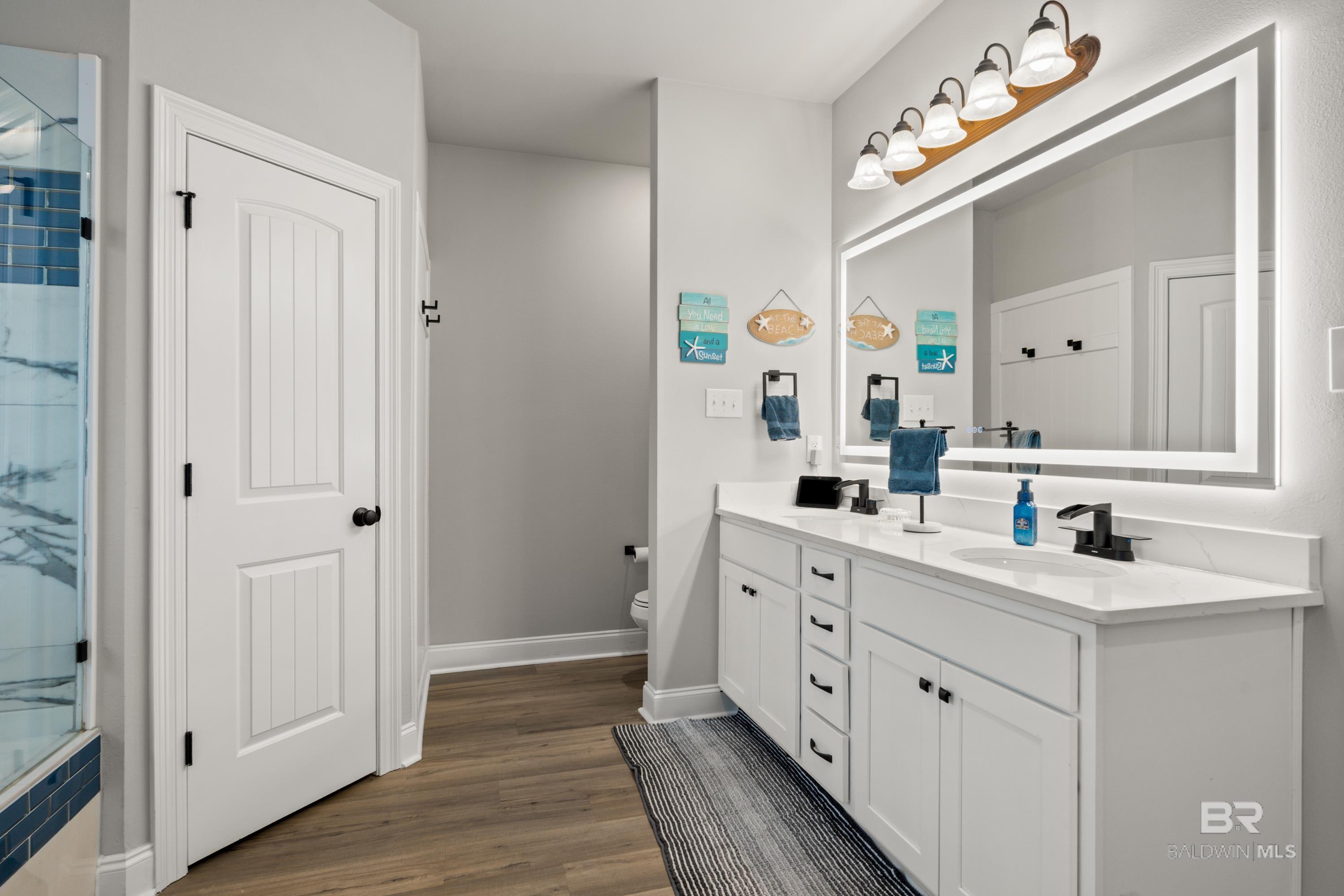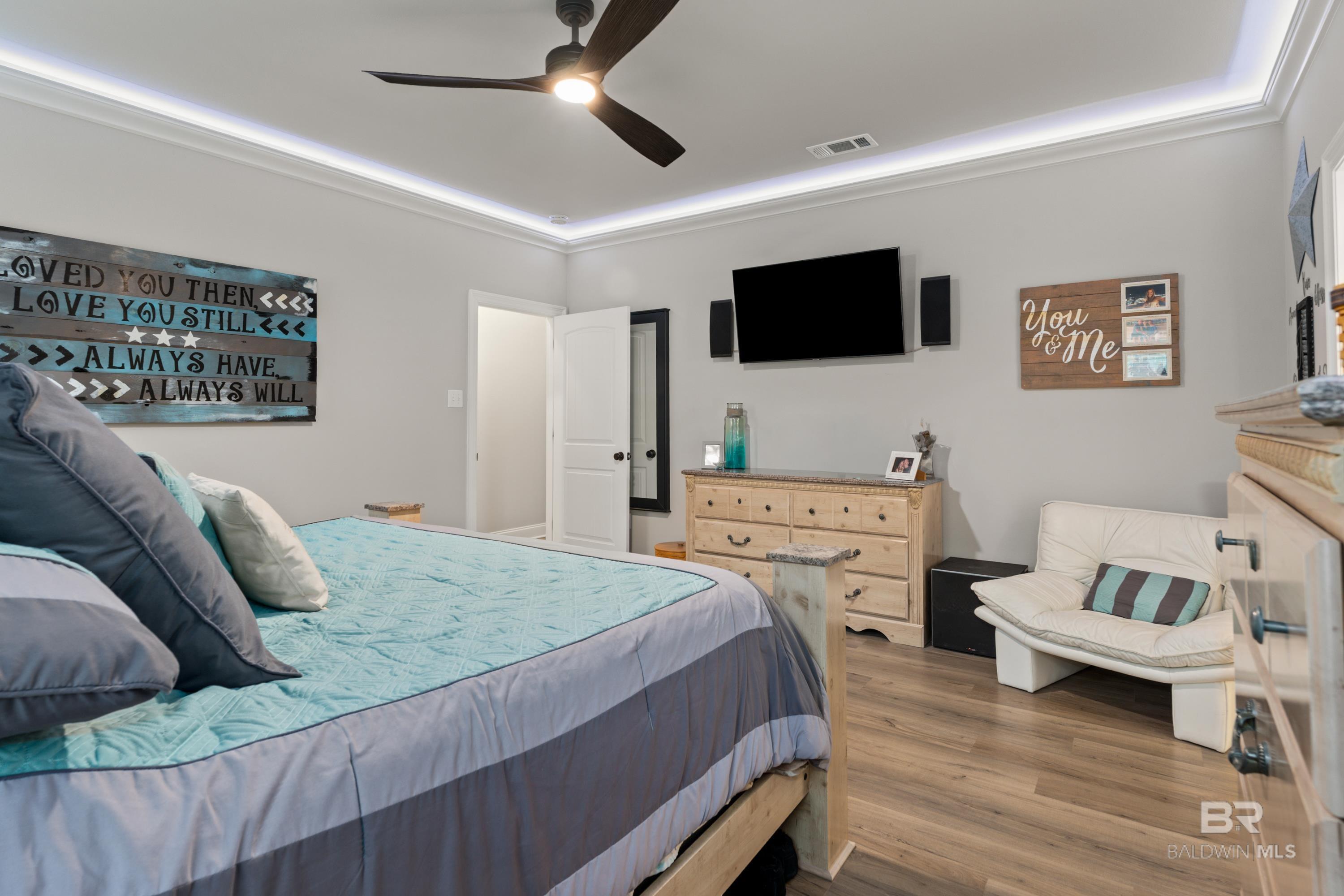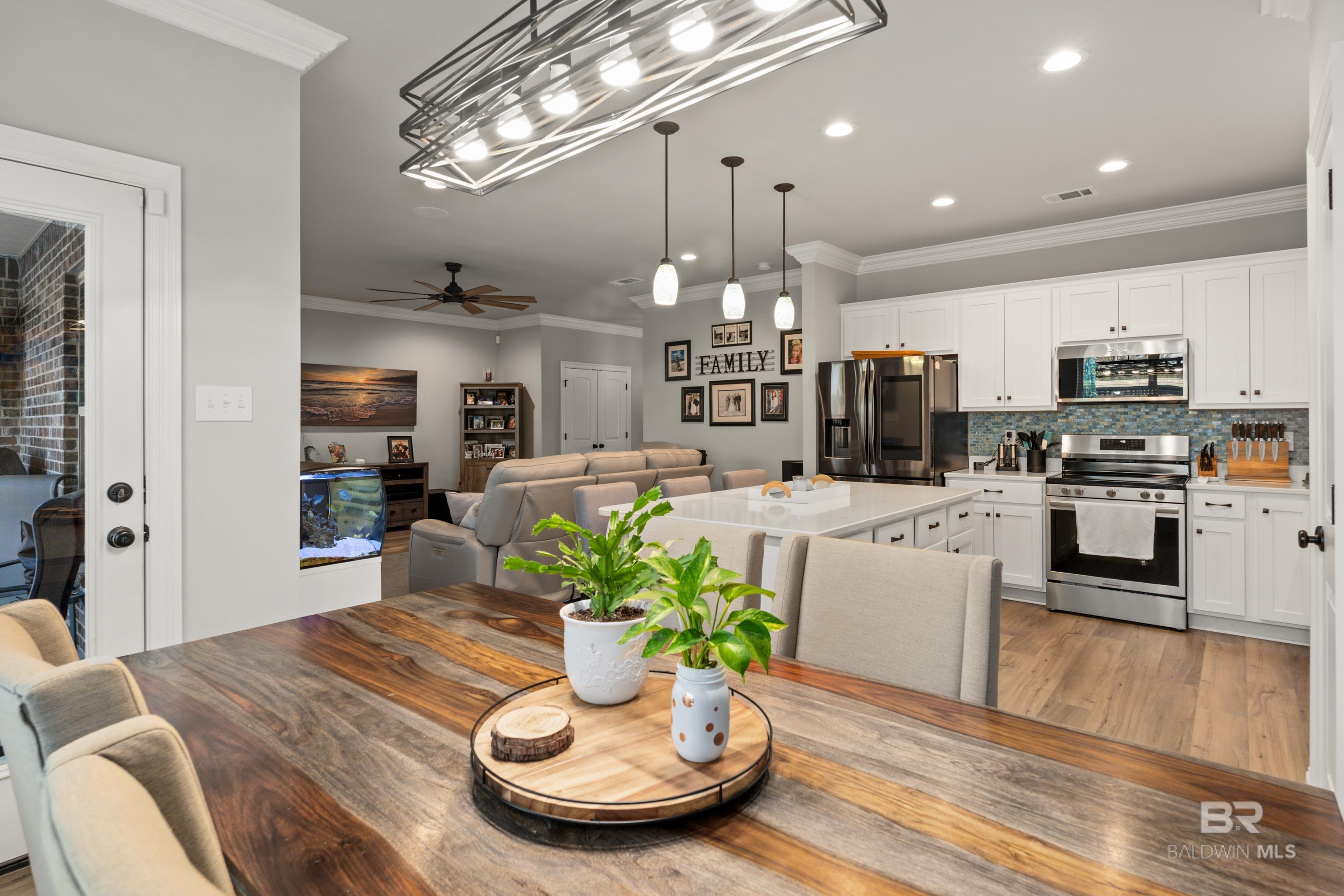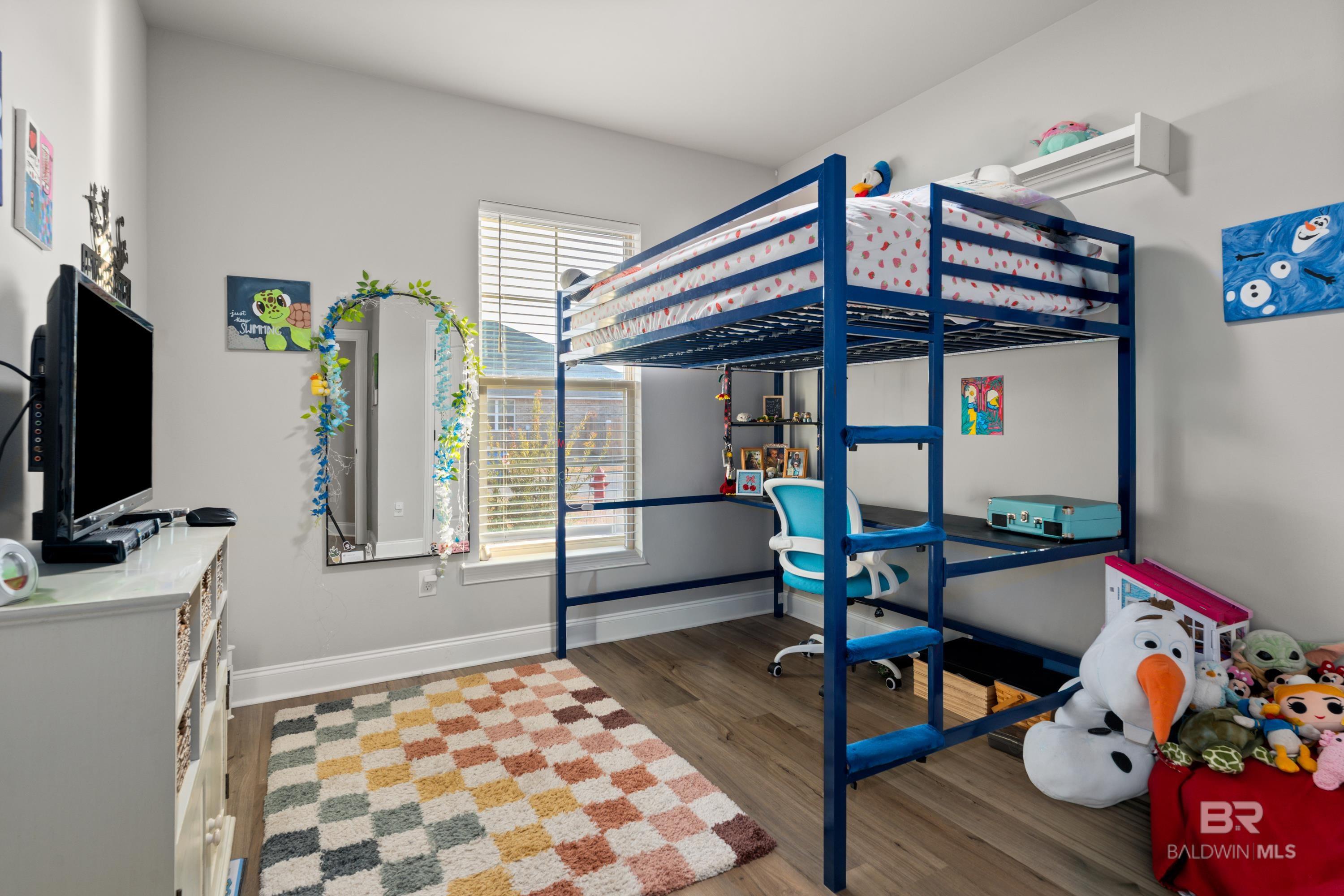 Paradise Found! Beautiful split-plan 4BR/2BA open-concept home approximately 3 years old that shows like new! This thoughtfully designed home features luxury vinyl plank flooring throughout, crown molding, recessed lighting, blinds, undermount sinks, maple cabinetry, Venetian bronze plumbing fixtures, and a corner electric fireplace with granite profile. The kitchen is both stylish and functional, offering stainless appliances, quartz countertops, and a large island creating a warm and inviting space perfect for everyday living or entertaining. The spacious primary suite includes a double vanity, garden tub with shower, and two walk-in closets. Three additional generously sized bedrooms provide flexibility for family, guests, or a home office. Additional highlights include a covered front porch, architectural 30-year shingles, professional landscaping, smoke and carbon monoxide detectors, and vinyl Low-E MI windows. Gold Fortified Certified for enhanced durability and potential insurance savings. Step outside and unwind in your private backyard retreat. Relax under the covered rear porch or enjoy the 14 x 26 saltwater pool installed May 2023 - ideal for entertaining or peaceful evenings at home. The location of this home could not be more convenient. Gorgeous white beaches are just 20 minutes away, shopping, dining, theme park, entertainment and more are within a very short commute. Move-in ready and better than new, don't miss this one! Items reserved: Refrigerator, flagpole, Washer & Dryer, TV's and mounts, alarm system, Tesla charger. Storage building is reserved by the seller, but negotiable. Surround sound speakers to remain. Buyer to verify all information during due diligence.