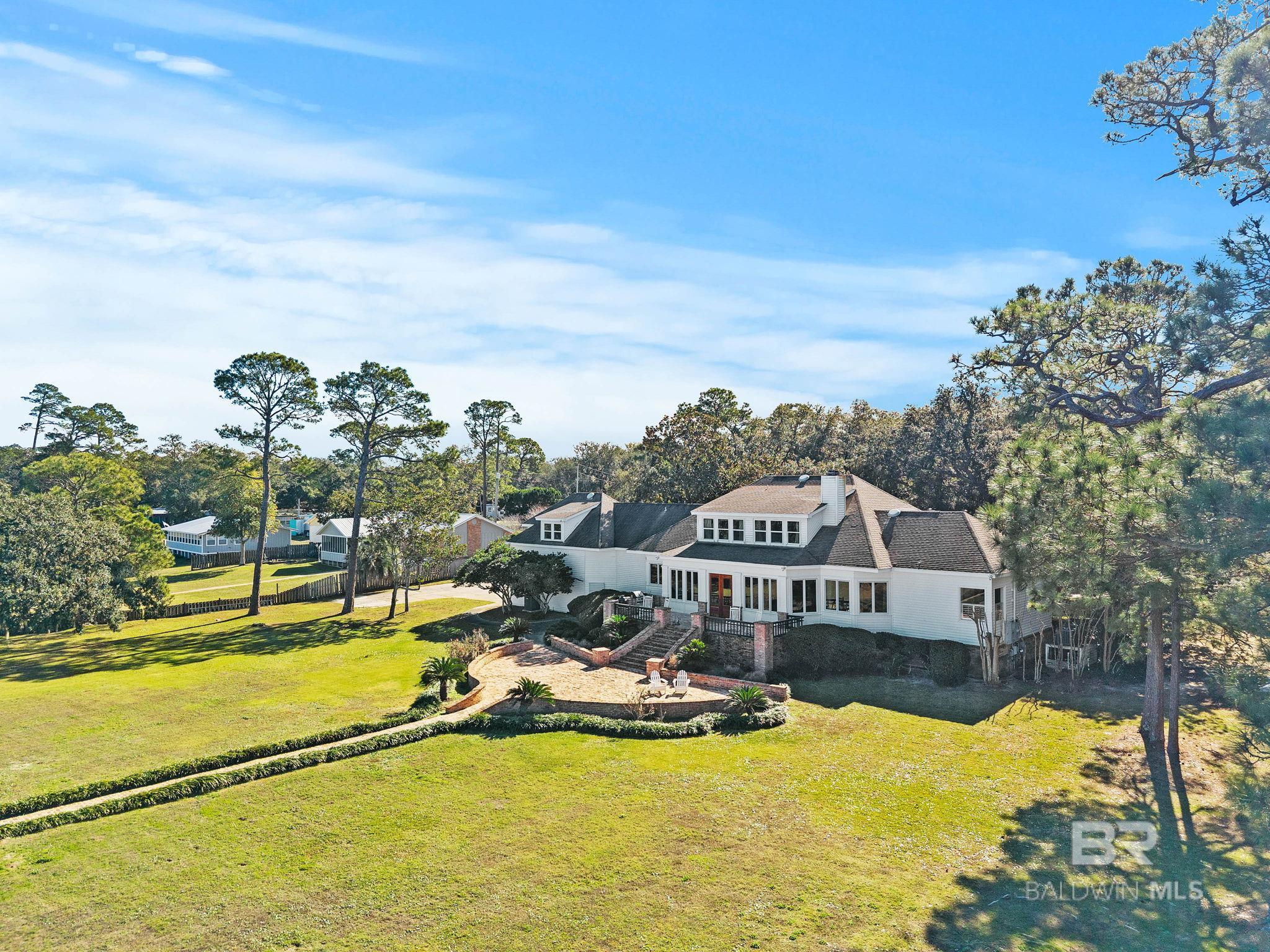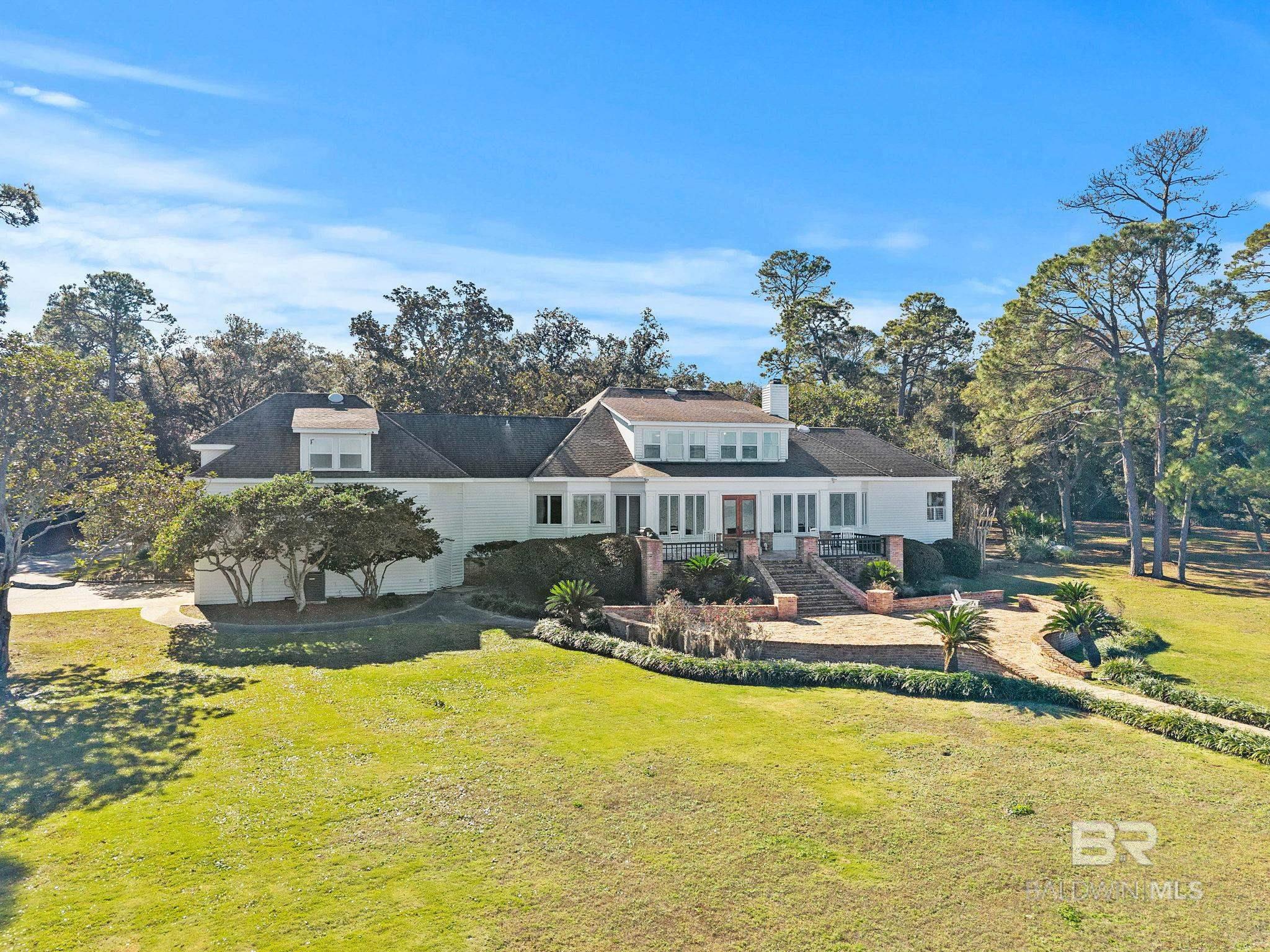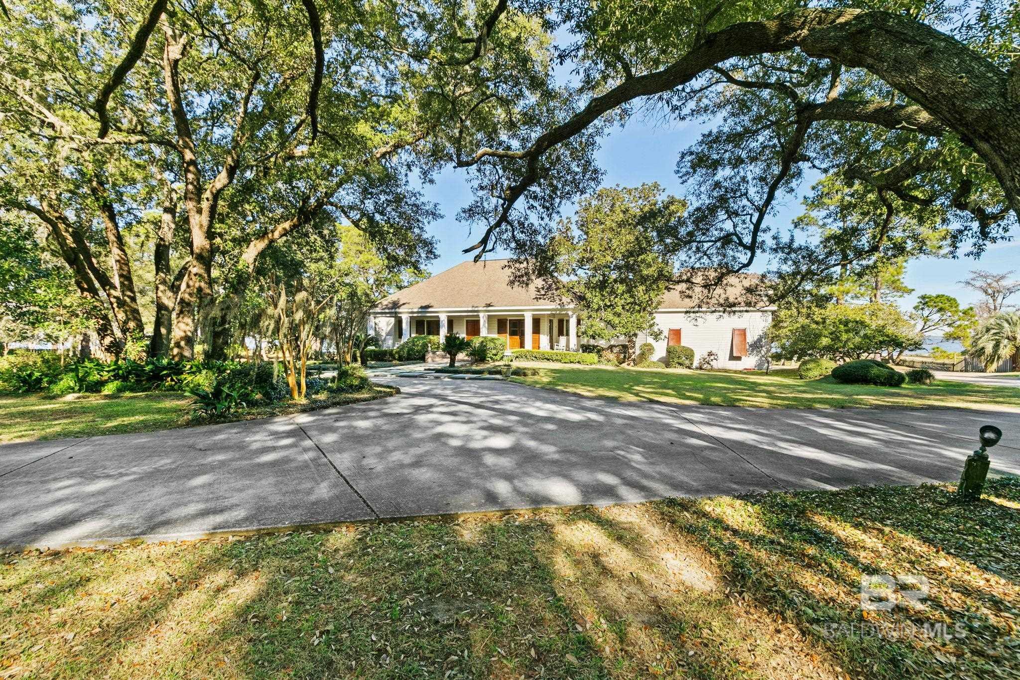 Tucked beneath a canopy of magnificent, centruies-old oaks, this timeless Southern Estate offers 207' of direct waterfront on Bon Secour Bay and the kind of privacy that feels worlds away from everything-yet close to it all. A long, winding driveway sets the tone, gently leading you to this 4000+/- square foot traditional two-story home where classic architecture and coastal living blend seamlessly. With 4 spacious bedrooms, 3 full baths and 2 half baths, there is room for everyone-whether hosting a holiday gathering or a relaxed weekend on the water. Inside, you'll find gracious living spaces designed for comfort and connnection, a gourmet kitchen, sunroom, game room and more, while outside, the lifestyle truly unfolds. A waterside patio lined with rocking chairs invites you to savor morning coffee at sunrise and unwind as the sky melts into evening colors over the bay. The private pier extends into the bay and features a boathouse, 3-4 boat slips, a swimming platform-perfect for boating, fishing paddleboarding, or simply enjoying life on the water. The double garage provides convenience, while the secluded setting offers peace and quiet rarely found in waterfront properties of this caliber. This is more than a home. It is a retreat, a gathering place, and a front-row seat to some of the most beautiful views on the Gulf Coast. It is southern charm, waterfront serenity, and everyday vacation living-all in one extaordinary property. Schedule your private appointement today. Buyer to verify all information during due diligence.