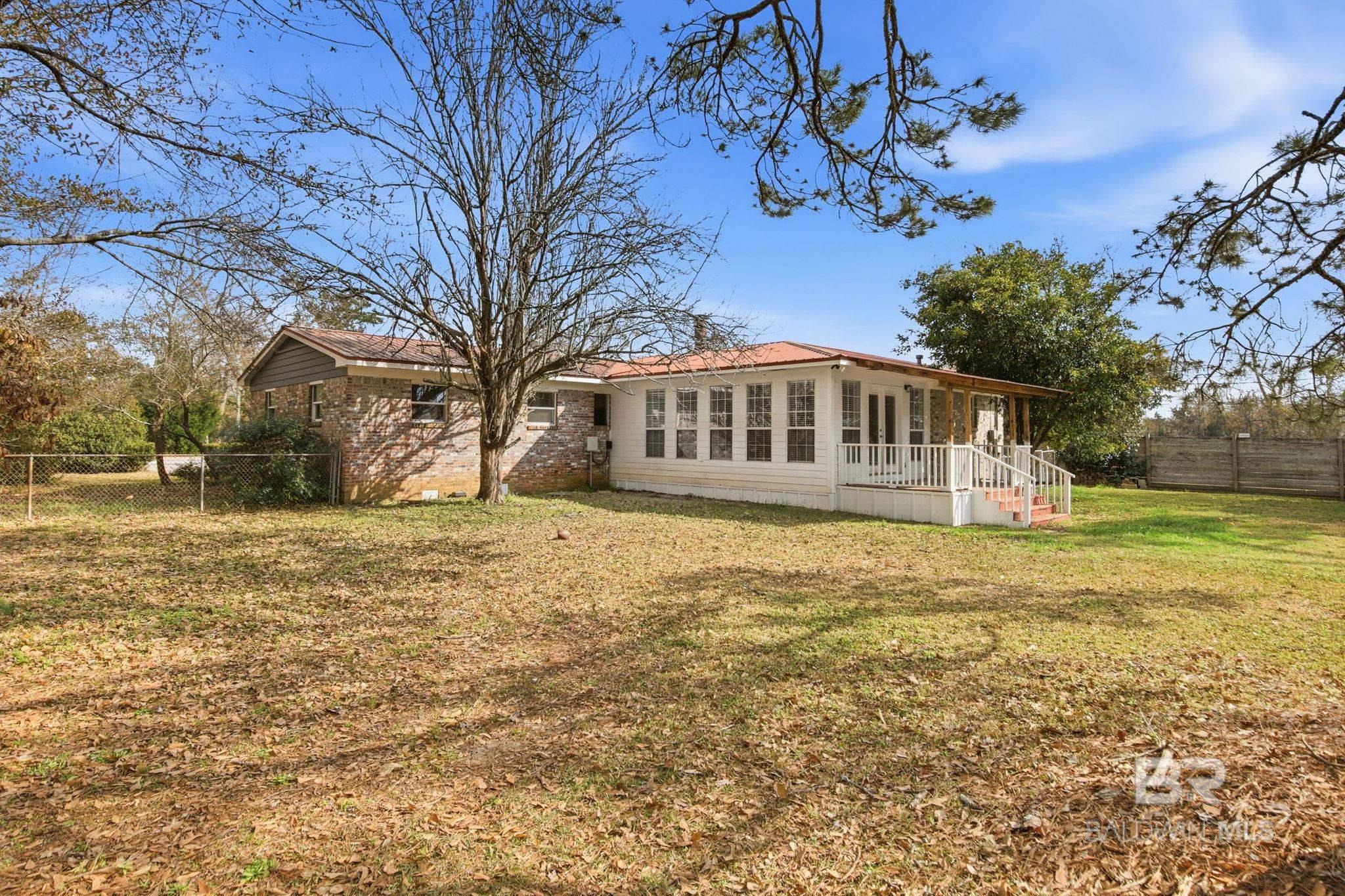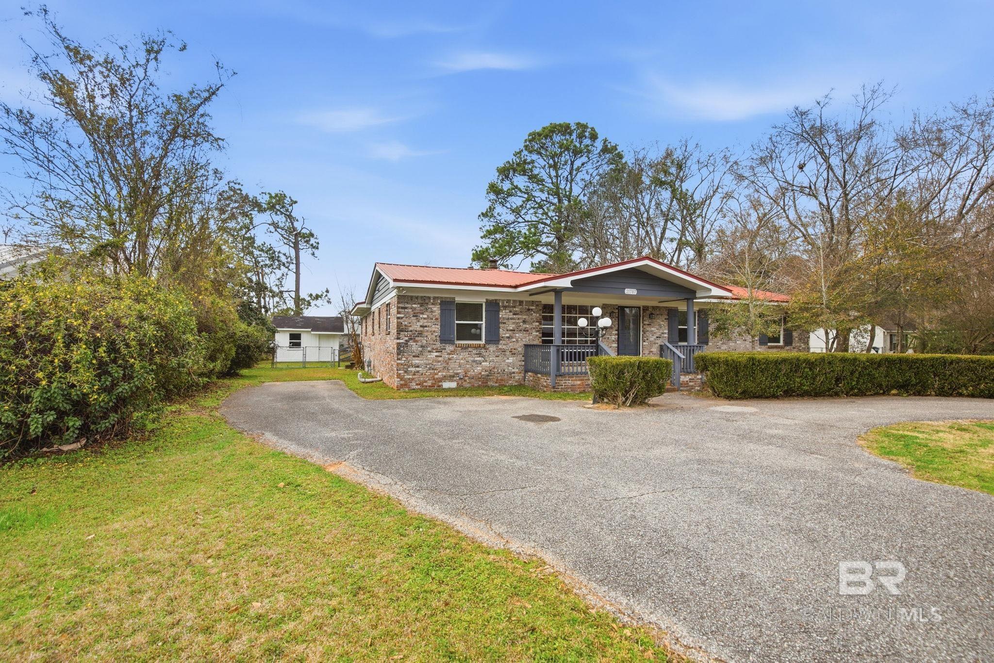 Welcome home to the very heart of Silverhill, one of Baldwin County's most sought after areas to live! Located directly downtown and close to everything this quaint little town has to offer, this home is anxiously awaiting it's new owners. The circular drive and inviting front porch with large picture window draw you into this 4 bedroom/2 bath brick home. Inside you'll find a split bedroom plan. The primary suite includes double vanities, a stand alone shower, private water closet, and a large walk-in closet with lots of shelving. On the other side of the home are 3 guest bedrooms and a full bath with a new vanity and tub/shower combo. Space is not a problem in this one, as there is a main living area with fireplace, as well as a large sunroom area off of the kitchen that could be used as additional living space, office, or flex area. Kitchen has new cabinets, granite countertops, and black appliances. Laundry area offers plenty of elbow room, as well as a utility sink and a storage bench for convenience. The sunroom and 13' x 8' back covered deck serve for excellent entertaining. Back yard is fully fenced and includes a 12' x 14' storage shed equipped with electricity. Metal roof is beleived to be 10 years in age. Septic tank was recently removed and property connected to county sewer. All major renovations have all been completed within the last 4 years and include new A/C, windows, water heater, kitchen cabinets, countertops, & appliances, new master bathroom, as well as some electrical and majority of plumbing. Smaller cosmetic updates such as painting, etc have also been completed recently. LOCATION is the name of the game here, as properties of this proximity in Silverhill do not come available often!! ALL INFORMATION IS DEEMED ACCURATE, BUT NOT GUARANTEED. BUYER OR BUYER(S)' AGENT TO VERIFY ALL MEASUREMENTS AS WELL AS ANY INFORMATION DEEMED IMPORTANT. Buyer to verify all information during due diligence.