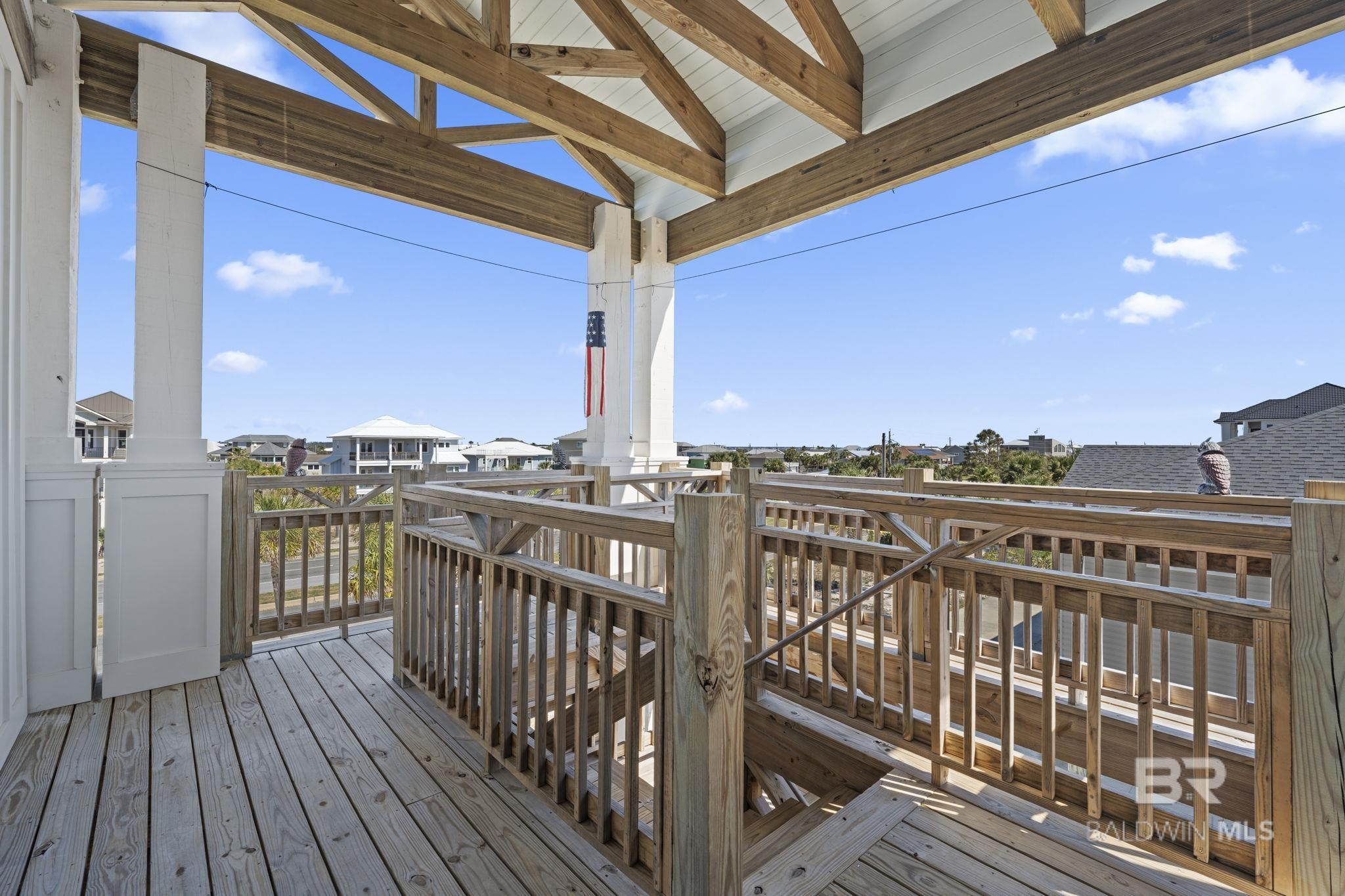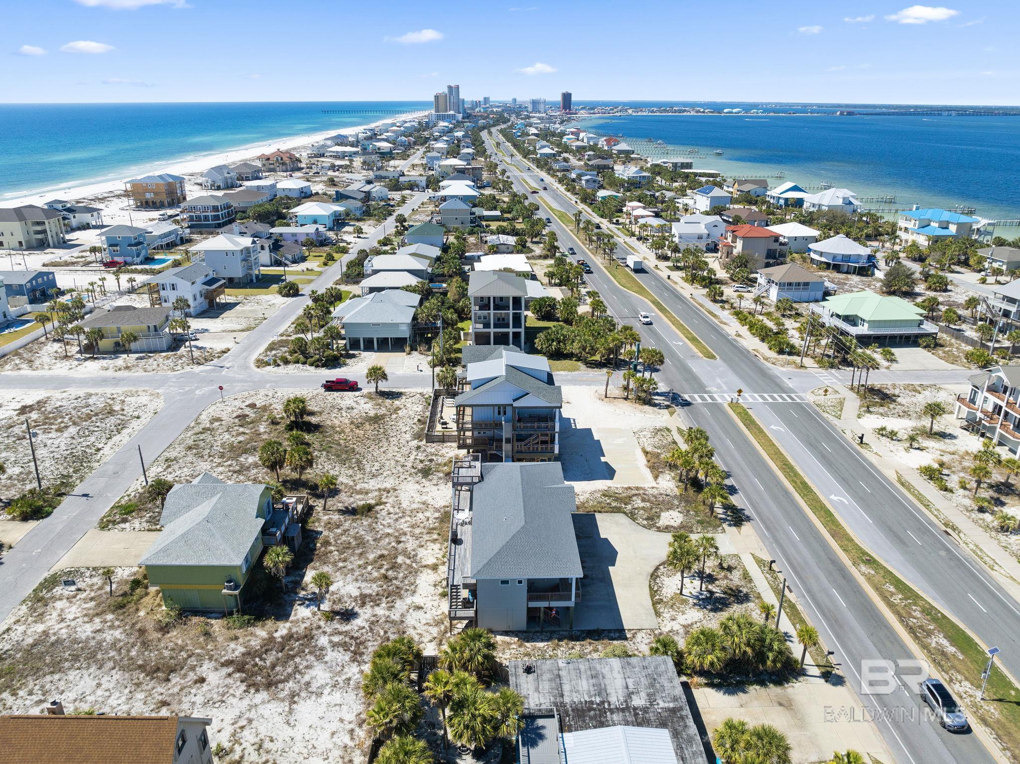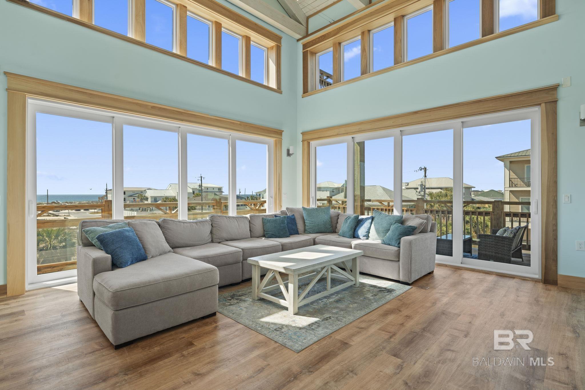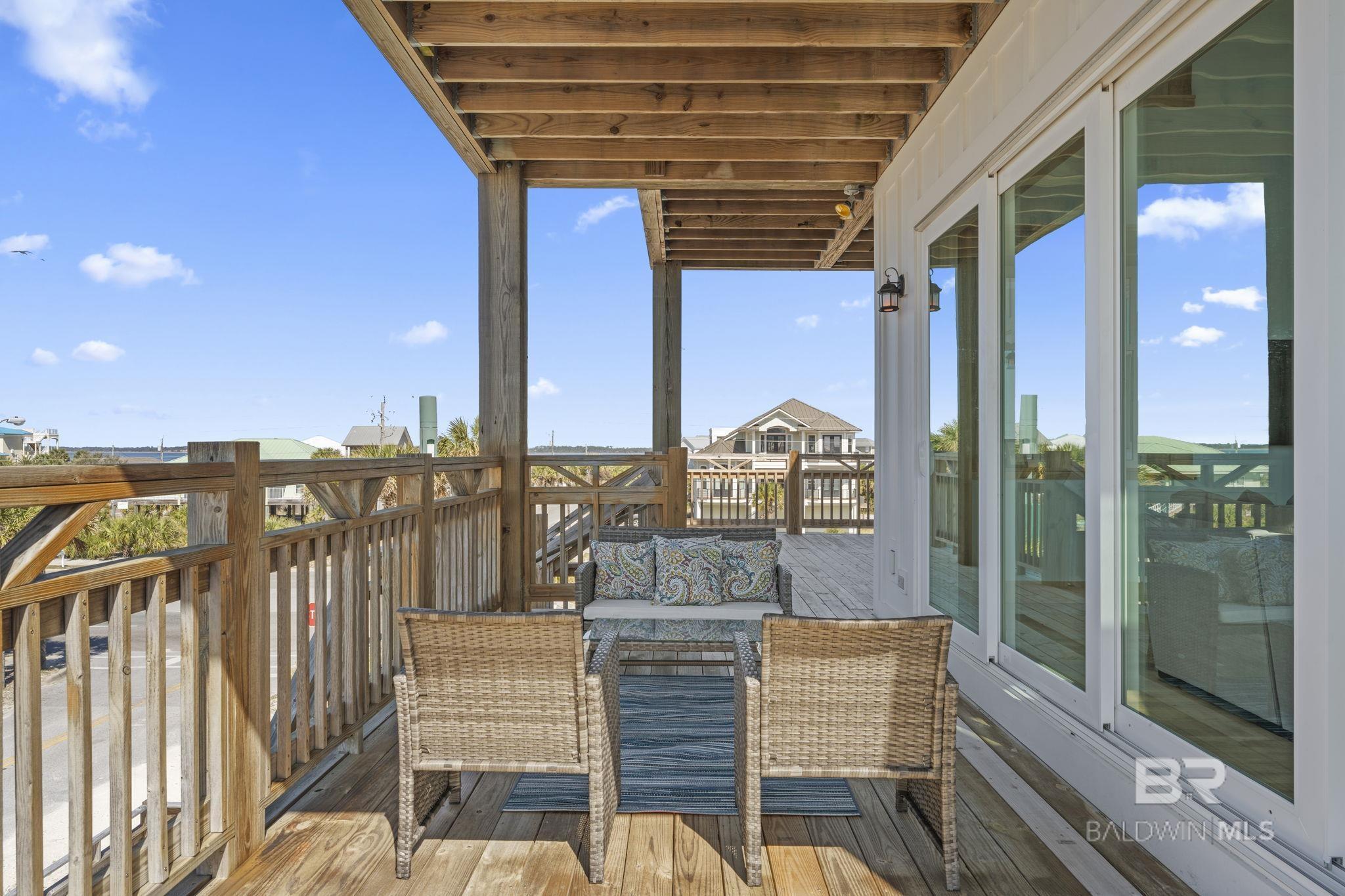 Welcome to the ultimate FURNISHED beach home, meticulously crafted 5-bedroom, 4.5-bathroom Craftsman-style residence with a heated pool, hot tub, & an additional expansive bonus room. Offering unparalleled comfort & tranquility, every corner of this residence affords breathtaking views of the glistening turquoise waters of the Gulf & calming waters of the Sound. Travel upstairs or take the elevator, & step into your dream home. The living space seamlessly flows together, while also allowing privacy within the layout, with separate entry doors at the main & second level. On the main level, immediately be drawn to the impressive 25' trussed ceiling that create a sense of grandeur space, which is adorned with custom high-end Tulip poplar trim, white oak stairs, crafted to perfection & the expansive 8' accordion sliding glass doors, brightening the space with rays of sunshine & offering breathtaking views of the coastal scenery. An expansive kitchen features stainless steel appliances, complete with a wine cooler & ice maker. The primary suite, like all bedrooms in the residence, has direct balcony access. The ensuite offers its own spa-like experience, with a soaking tub, water view, rain shower, marble vanities, expansive closet, washer & dryer. Downstairs can serve as an additional living quarter for your family or guests, with a large great room, washer, dryer, & kitchenette to include sink & fridge. 3 more bedrooms, each with balcony access & water views, are on the downstairs level. Adding to the allure of this custom home are the endless possibilities of the space of the top floor bonus room, which can easily be converted to game room, bunk suite or two more bedrooms & a newly added FULL BATH with walk-in tiled shower. Outside living area is exceptional for entertaining, with its large, covered patio, heated gunite pool, hot tub, NEW POOL FURNITURE, outdoor shower, water closet, large storage area & fenced yard. Beach home or investment-LIMITLESS possibilities!
