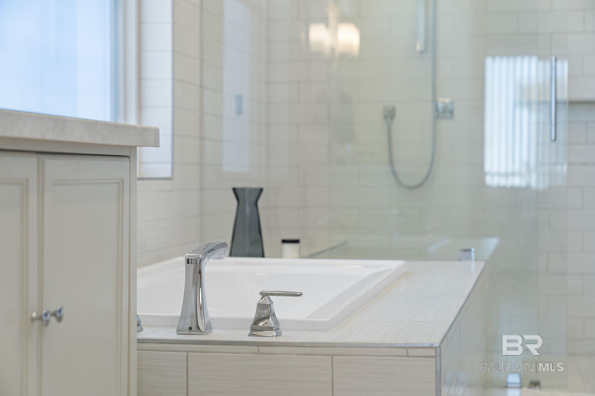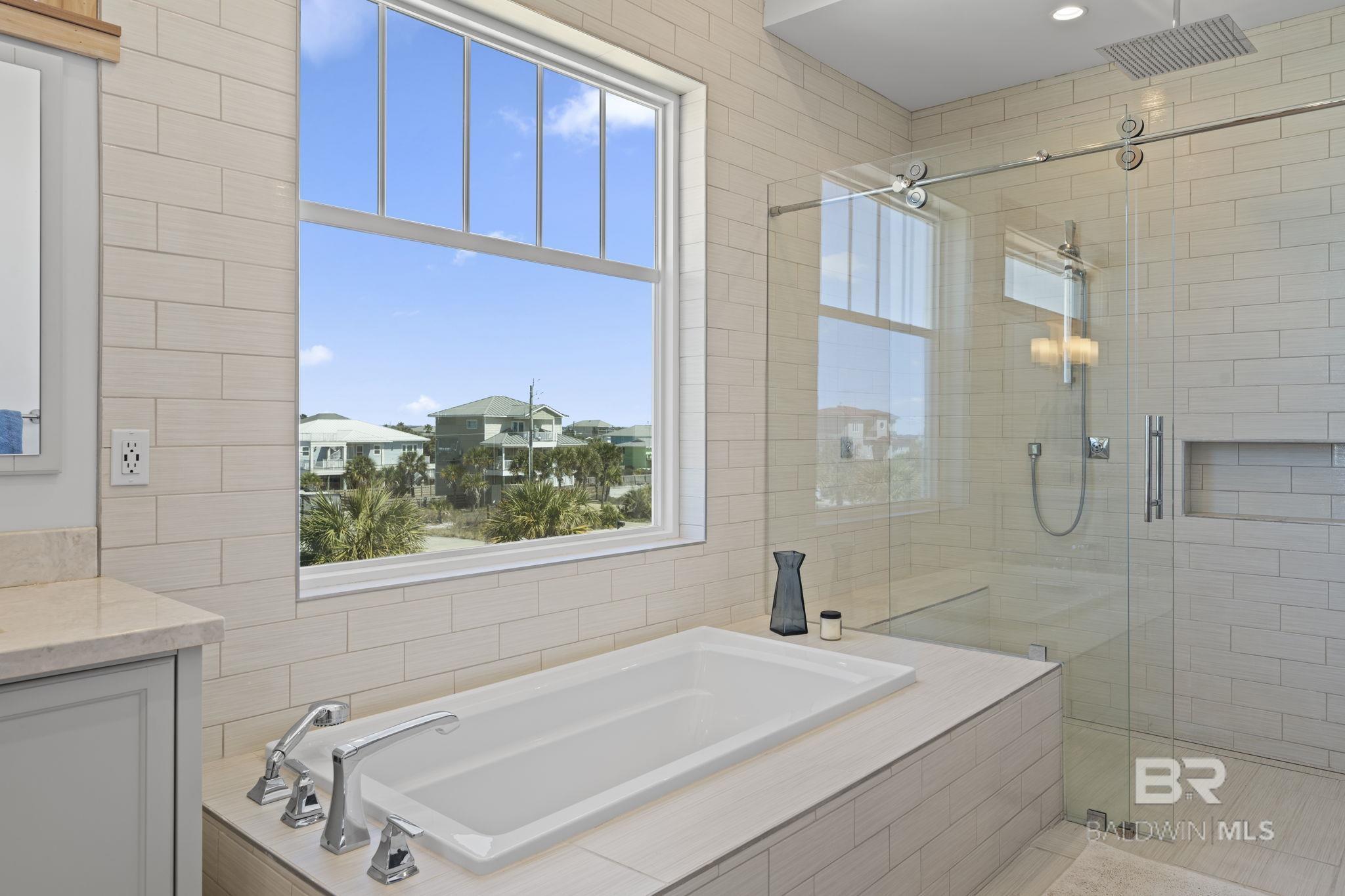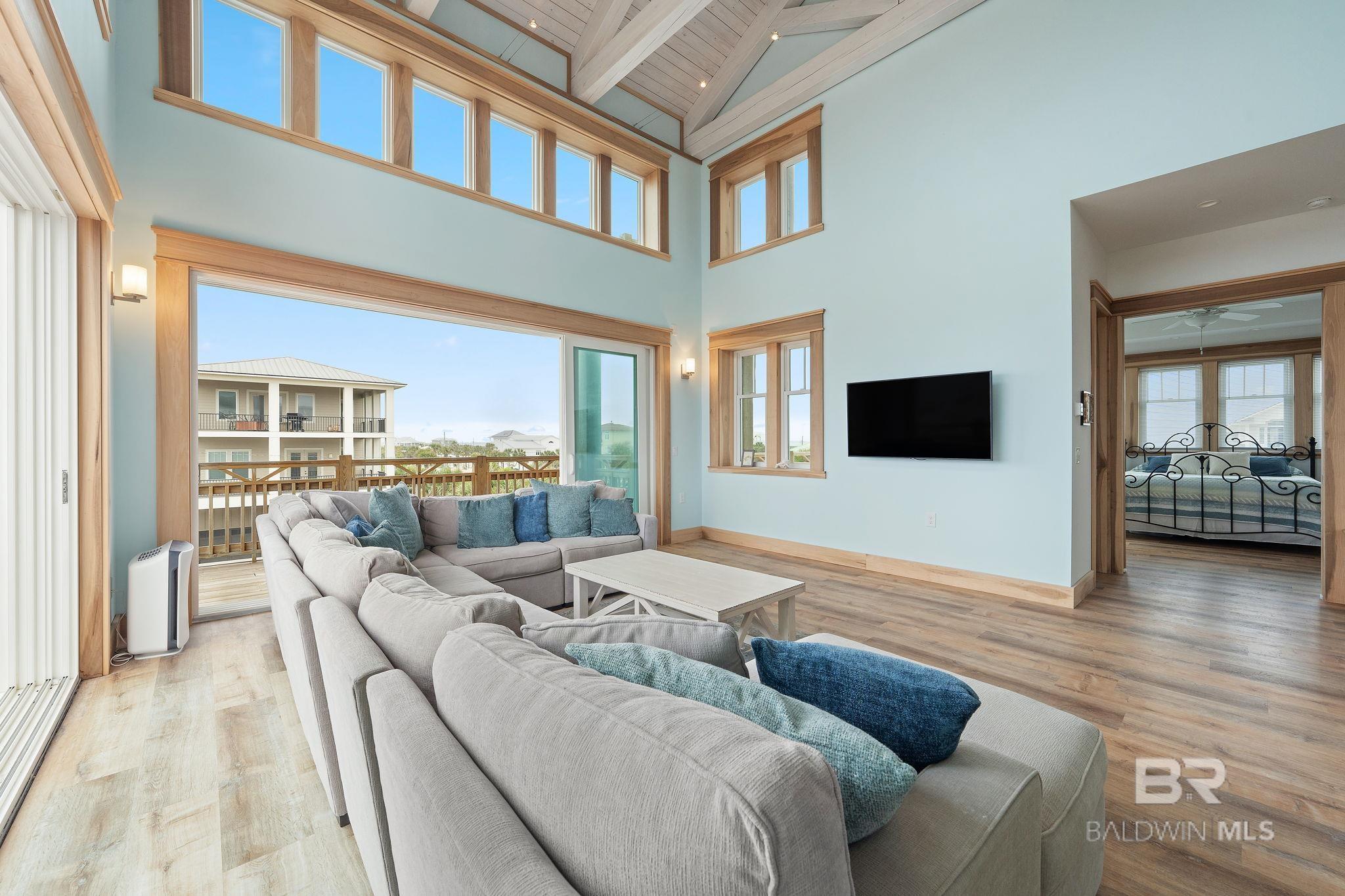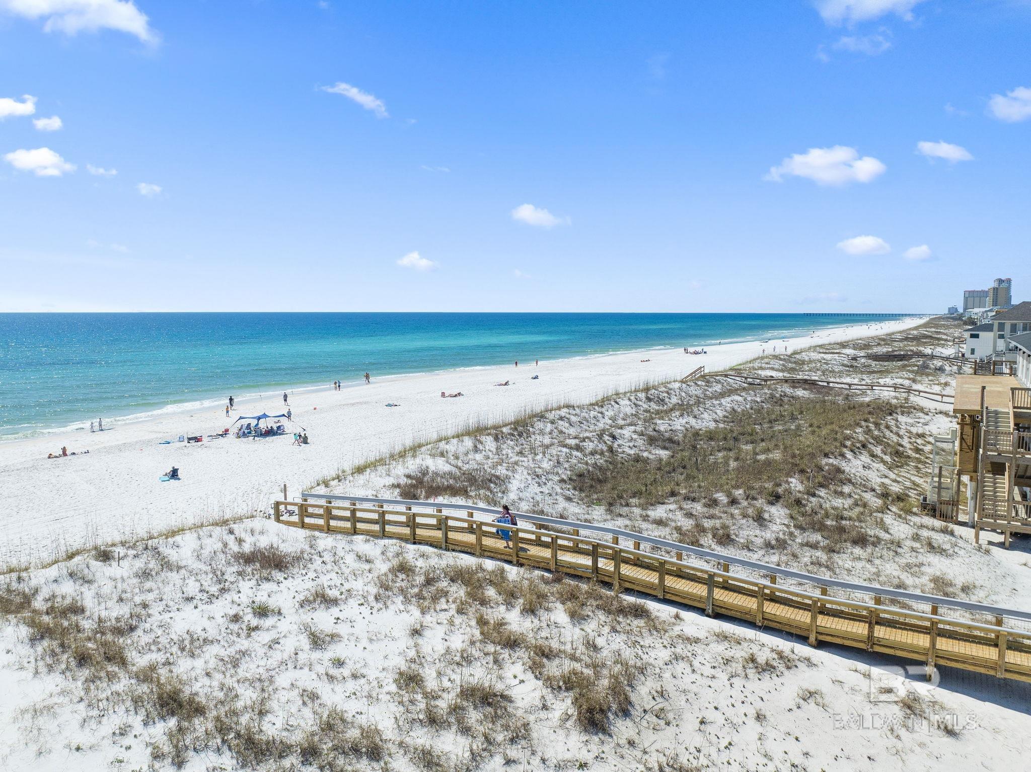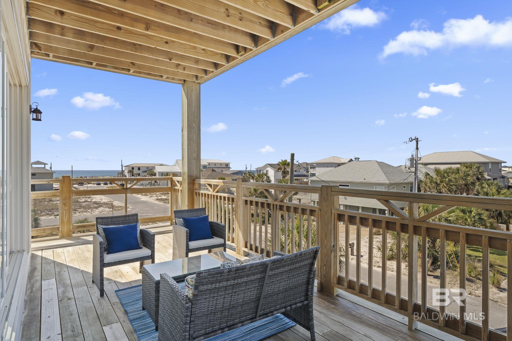 Welcome to the ultimate FURNISHED beach home, meticulously crafted 5-bedroom, 4.5-bathroom Craftsman-style residence with a heated pool, hot tub, & an additional expansive bonus room. Offering unparalleled comfort & tranquility, every corner of this residence affords breathtaking views of the glistening turquoise waters of the Gulf & calming waters of the Sound. Travel upstairs or take the elevator, & step into your dream home. The living space seamlessly flows together, while also allowing privacy within the layout, with separate entry doors at the main & second level. On the main level, immediately be drawn to the impressive 25' trussed ceiling that create a sense of grandeur space, which is adorned with custom high-end Tulip poplar trim, white oak stairs, crafted to perfection & the expansive 8' accordion sliding glass doors, brightening the space with rays of sunshine & offering breathtaking views of the coastal scenery. An expansive kitchen features stainless steel appliances, complete with a wine cooler & ice maker. The primary suite, like all bedrooms in the residence, has direct balcony access. The ensuite offers its own spa-like experience, with a soaking tub, water view, rain shower, marble vanities, expansive closet, washer & dryer. Downstairs can serve as an additional living quarter for your family or guests, with a large great room, washer, dryer, & kitchenette to include sink & fridge. 3 more bedrooms, each with balcony access & water views, are on the downstairs level. Adding to the allure of this custom home are the endless possibilities of the space of the top floor bonus room, which can easily be converted to game room, bunk suite or two more bedrooms & a newly added FULL BATH with walk-in tiled shower. Outside living area is exceptional for entertaining, with its large, covered patio, heated gunite pool, hot tub, NEW POOL FURNITURE, outdoor shower, water closet, large storage area & fenced yard. Beach home or investment-LIMITLESS possibilities!