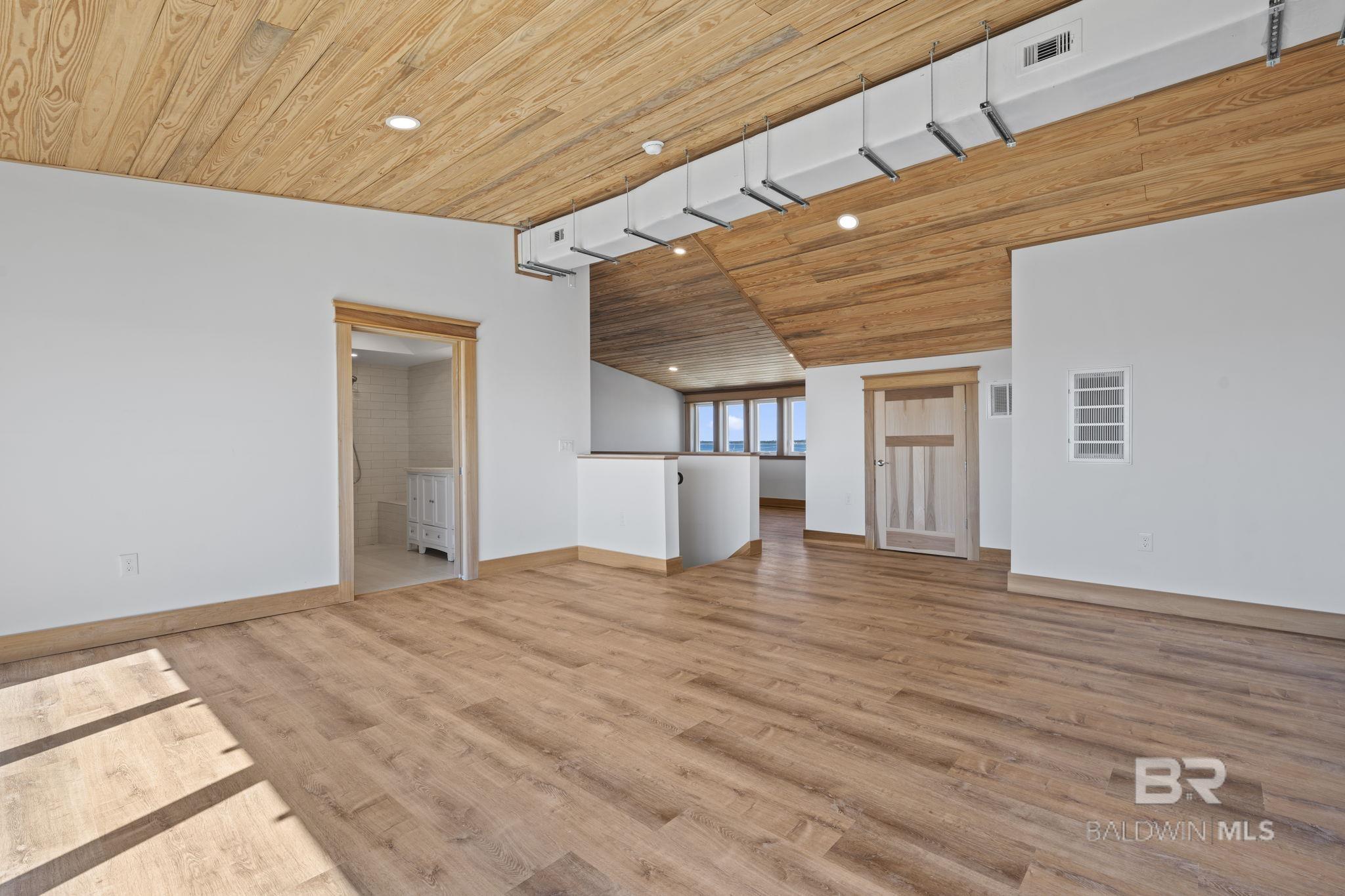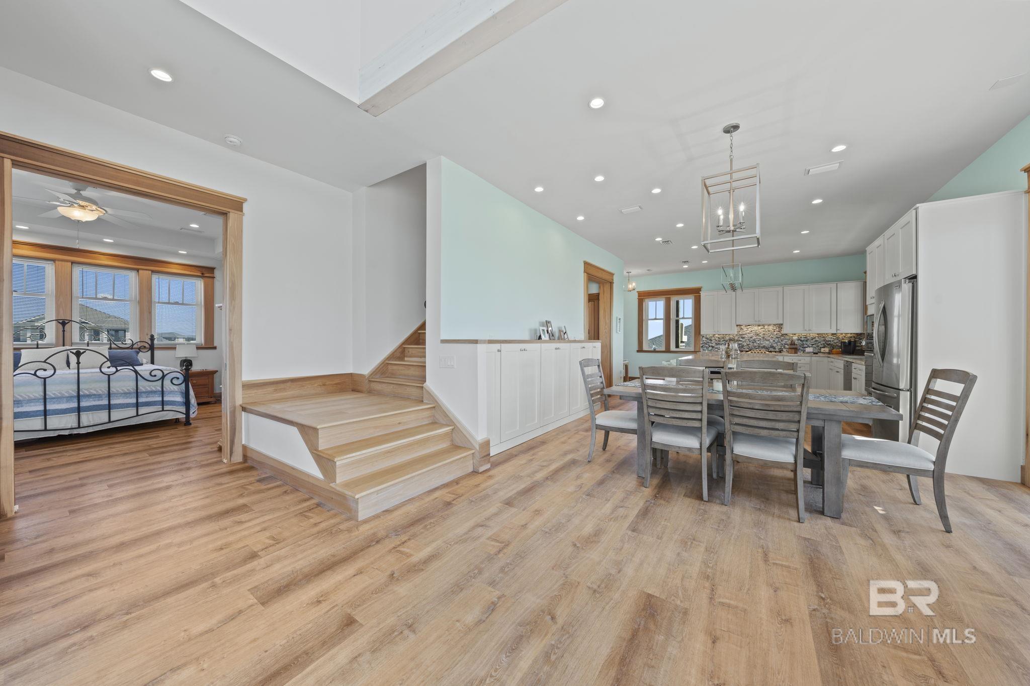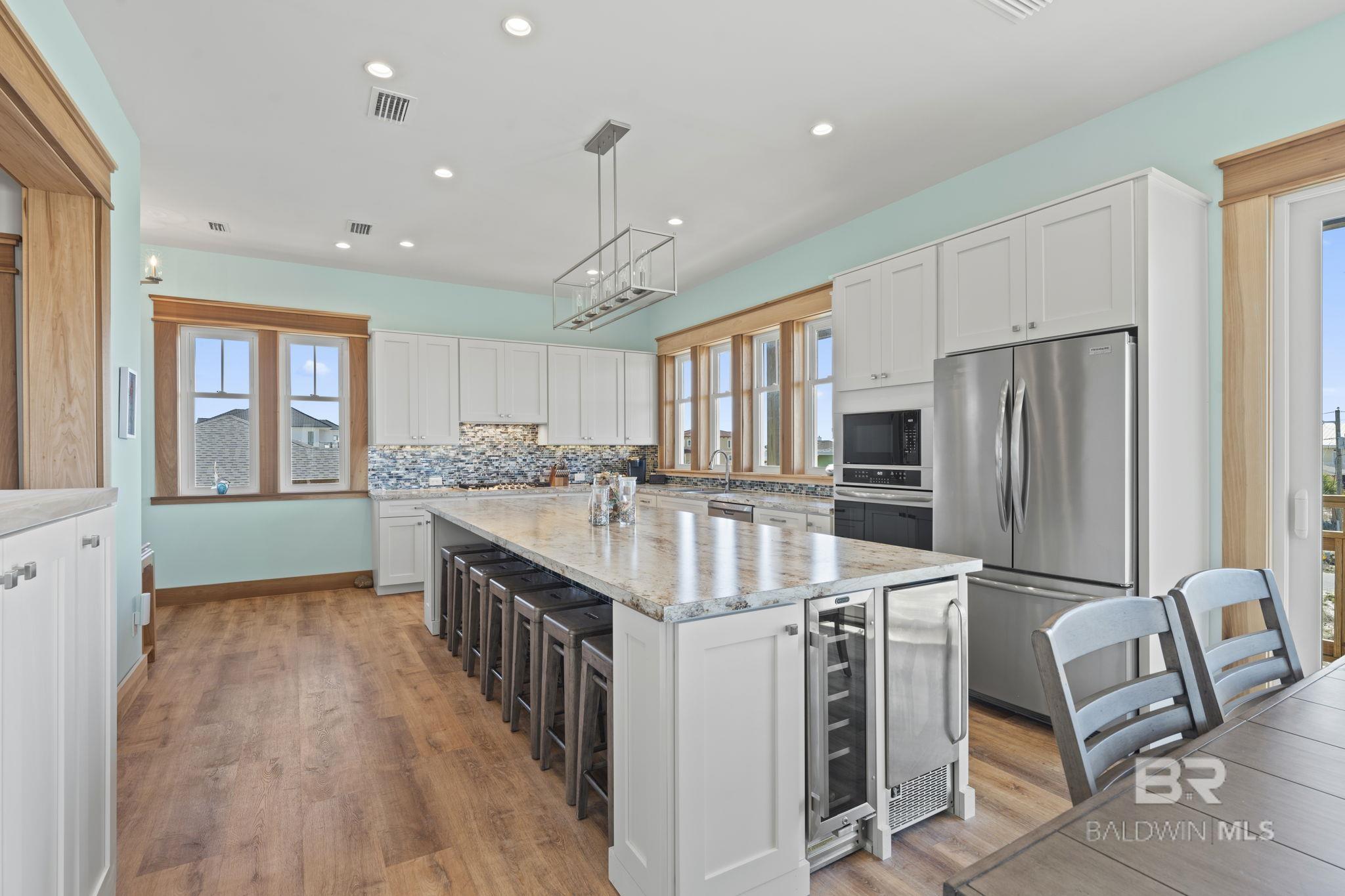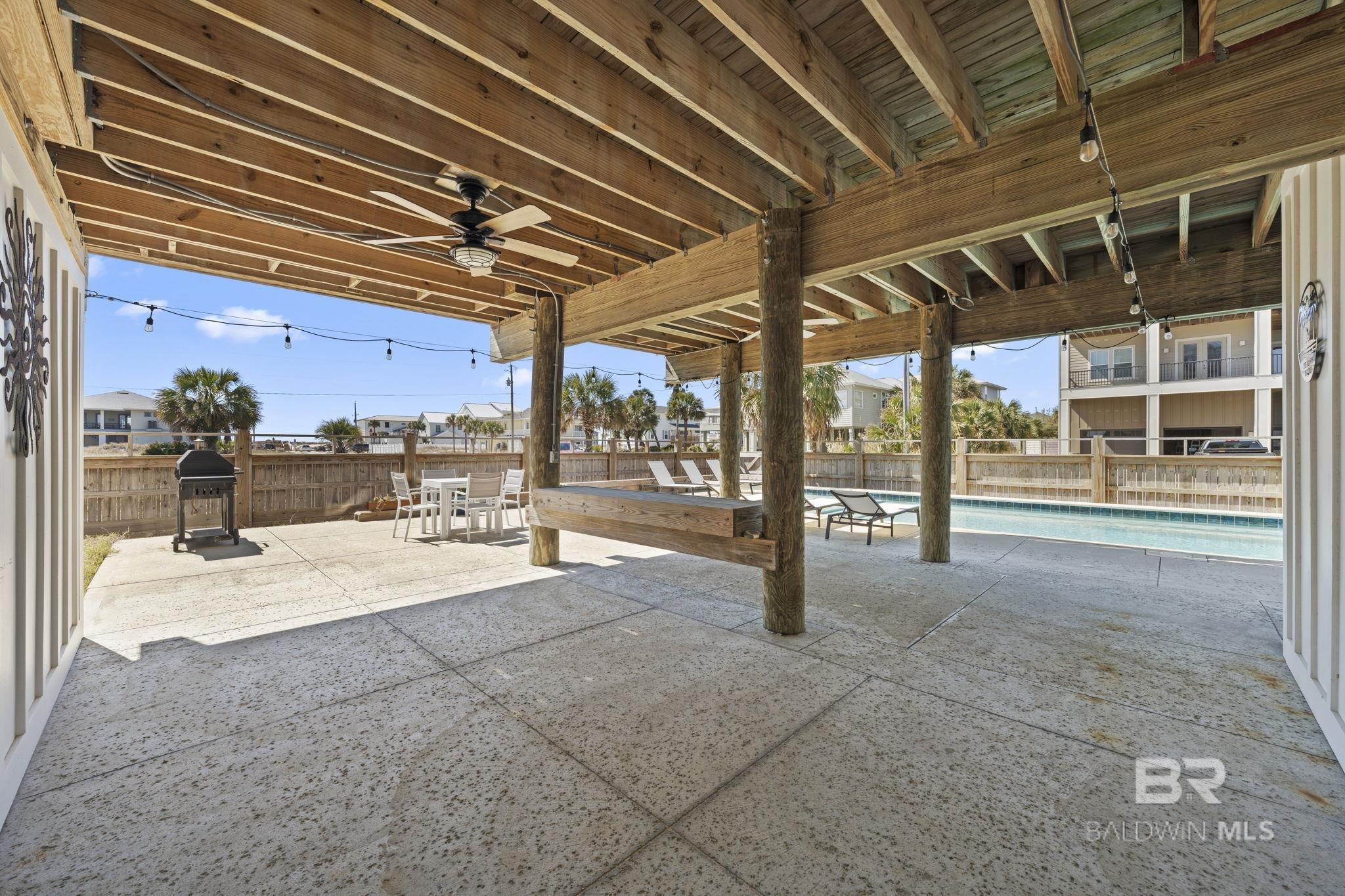Welcome to the ultimate FURNISHED beach home, meticulously crafted 5-bedroom, 4.5-bathroom Craftsman-style residence with a heated pool, hot tub, & an additional expansive bonus room. Offering unparalleled comfort & tranquility, every corner of this residence affords breathtaking views of the glistening turquoise waters of the Gulf & calming waters of the Sound. Travel upstairs or take the elevator, & step into your dream home. The living space seamlessly flows together, while also allowing privacy within the layout, with separate entry doors at the main & second level. On the main level, immediately be drawn to the impressive 25' trussed ceiling that create a sense of grandeur space, which is adorned with custom high-end Tulip poplar trim, white oak stairs, crafted to perfection & the expansive 8' accordion sliding glass doors, brightening the space with rays of sunshine & offering breathtaking views of the coastal scenery. An expansive kitchen features stainless steel appliances, complete with a wine cooler & ice maker. The primary suite, like all bedrooms in the residence, has direct balcony access. The ensuite offers its own spa-like experience, with a soaking tub, water view, rain shower, marble vanities, expansive closet, washer & dryer. Downstairs can serve as an additional living quarter for your family or guests, with a large great room, washer, dryer, & kitchenette to include sink & fridge. 3 more bedrooms, each with balcony access & water views, are on the downstairs level. Adding to the allure of this custom home are the endless possibilities of the space of the top floor bonus room, which can easily be converted to game room, bunk suite or two more bedrooms & a newly added FULL BATH with walk-in tiled shower. Outside living area is exceptional for entertaining, with its large, covered patio, heated gunite pool, hot tub, NEW POOL FURNITURE, outdoor shower, water closet, large storage area & fenced yard. Beach home or investment-LIMITLESS possibilities!