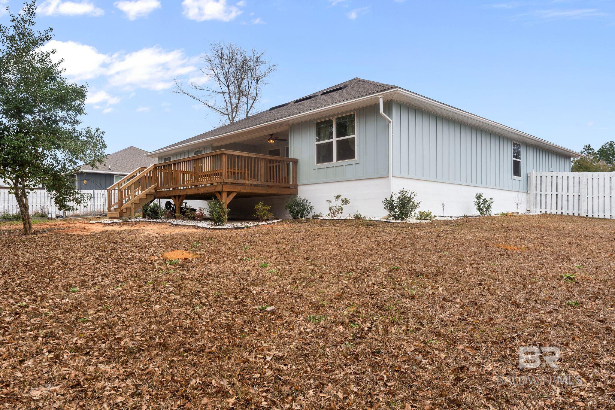 **OPEN HOUSE THIS SUNDAY 3/15 2PM-4PM**Built in 2023 to Gold Fortified standards, this 4/2 home offers 2,038 square feet of thoughtfully designed living space on a spacious half-acre cul-de-sac lot in Hearon Village with no HOA. The open floor plan features LVP flooring and granite countertops throughout, creating a clean, cohesive look from the main living areas into the kitchen. The kitchen features a large island with stainless steel appliances and flows seamlessly into the dining area with custom built-in shelving and bench seating overlooking the backyard. The primary suite is generously sized and includes a double vanity, soaking tub, brand-new separate walk-in shower, and an impressive 16-foot walk-in closet. The hall bath also offers double vanities for added convenience. A secondary bedroom features a built-in daybed with pull-out double twin, ideal for guests or flexible use. Additional highlights include smart home technology, fresh interior paint, vinyl gutters, a two-car garage with a workshop table, and a transferable builder structural warranty. Outdoor living is just as impressive, with a 10x20 deck in addition to the covered back porch, a large fenced backyard with shadowbox fencing set in concrete footings, a storage shed with ground anchors, and landscaping that includes a small garden and young fruit trees. The property includes deeded access to Perdido Bay through Hearon Village Recreational Park and is just over two miles from the Lillian boat launch. Conveniently positioned between Pensacola and Foley, it is also a short drive to the beaches of Perdido Key, Gulf Shores, and Orange Beach. Schedule your showing today! Buyer to verify all information during due diligence.