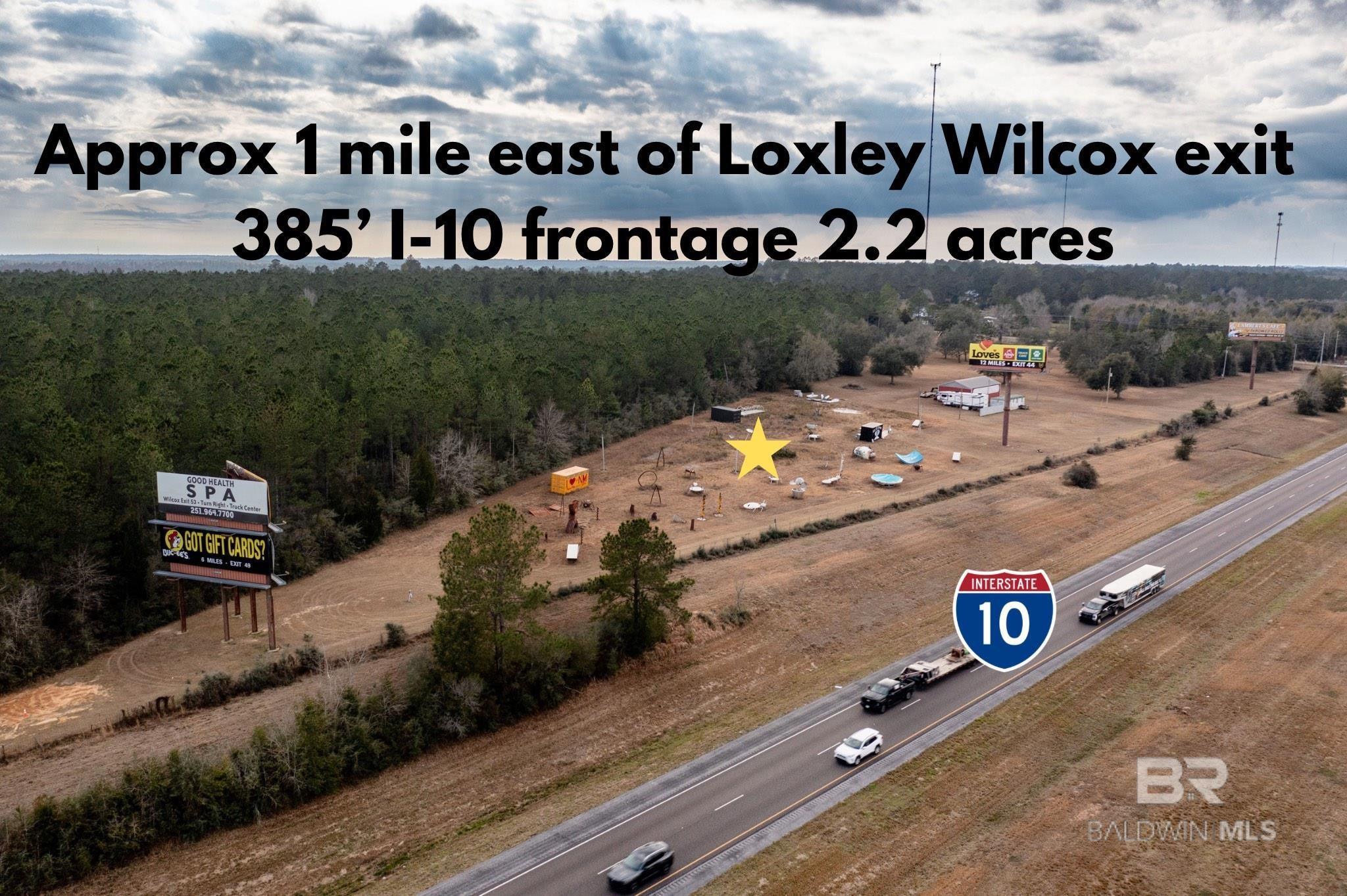 DONT LET THIS ONE SLIP AWAY! 2.2 ACRES +- WITH 395' OF FRONTAGE ON I-10! A RARE FIND! UN-ZONED IN THE COUNTY-APPROXIMATELY 1 MILE EAST OF WILCOX EXIT-ENTER OFF OF COWPEN CREEK RD THROUGH A PRIVATE GATE! EXCEPTIONAL LOCATION! MANY POSSIBILITIES! POWER AND WATER AVAILABLE!LAMAR SIGNS, SCULPTURES/STATUES AND OTHER ITEMS ON PROPERTY DO NOT CONVEY-(WILL BE REMOVED WITHIN 45 DAYS OF CLOSING) A GREAT LOCATION NEAR THE UPCOMING BALDWIN BEACH EXPRESS EXTENSION , TO I-10! DEEDED ACCESS FROM PPIN# 68670 Buyer to verify all information during due diligence.