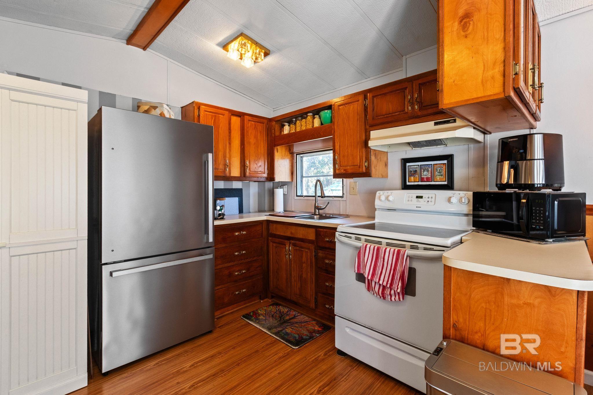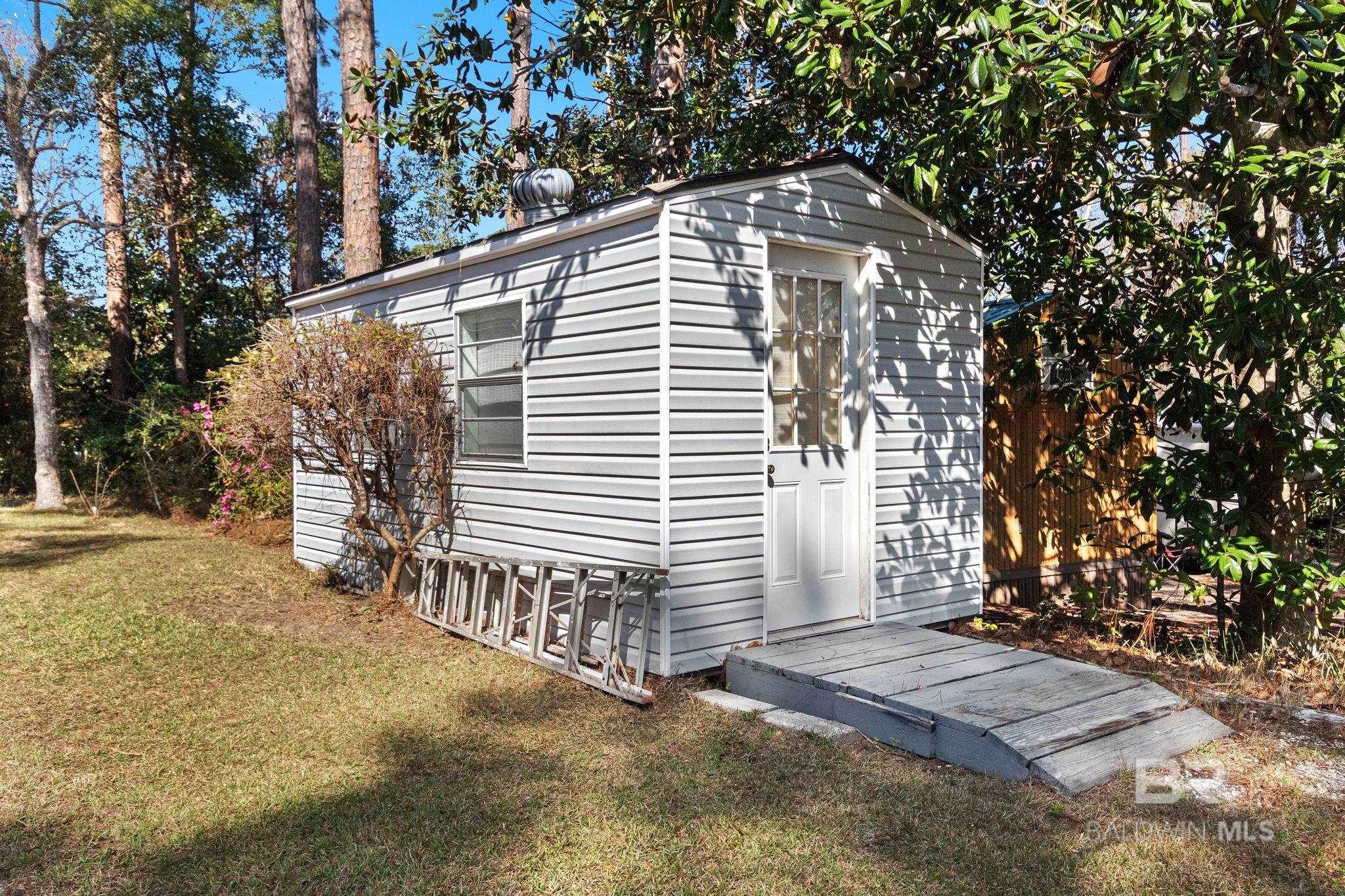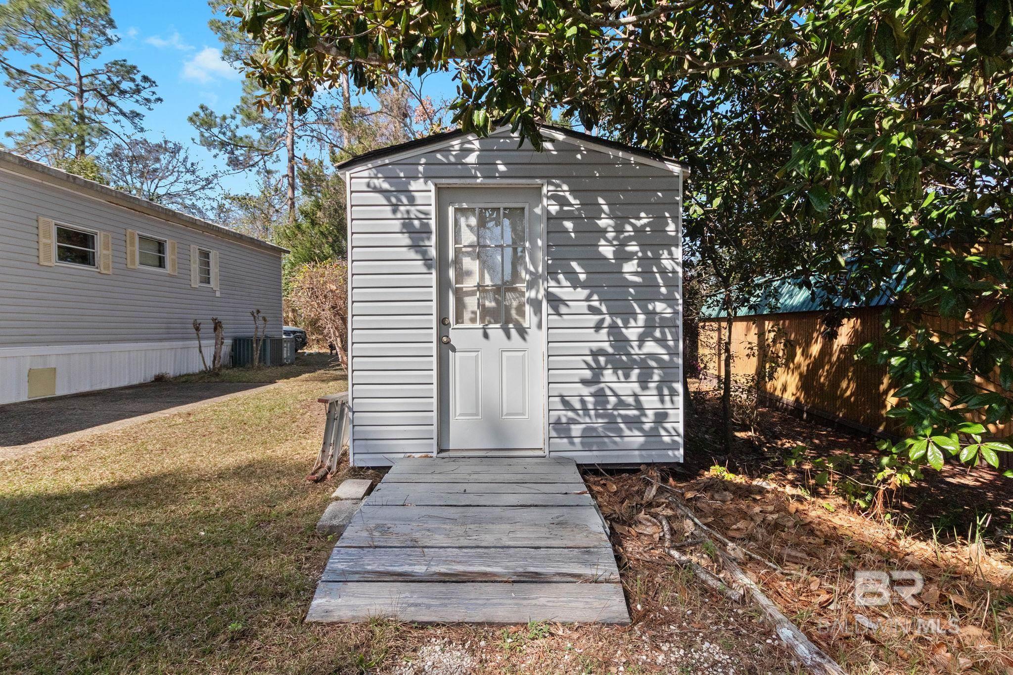 Whether you’re searching for a full-time residence, vacation getaway, or investment opportunity, this delightful home combines charm, comfort, versatility,& location. Welcome to 420 Buena Vista Dr — “the cutest little park” setting you’ve been dreaming of! This charming coastal retreat offers 2 beds, 1 bath, & an inviting add-on room perfect for guests, a home office, hobby space, or extra living area. Designed for easy seaside living & relaxed entertaining, the home features a spacious porch overlooking a nicely landscaped, private backyard complete for enjoying coastal breezes & gatherings w/ friends.Storage & functionality shine here. A separate storage shed provides ample space for tools/beach gear/or projects/while the washer &dryer (included) are conveniently located in the on-site utility shed. A durable metal roof adds character and long-term peace of mind.One of the property’s standout features is the exceptional value of two lots w/ separate tax IDs (Tax ID 30891/ 421 Buena Vista Dr). This rare double-lot opportunity offers flexibility, privacy, & future potential. Even better — the property includes an additional RV hookup, making it perfect for visiting guests, extra income possibilities, or your own adventure-ready lifestyle.Located in the welcoming, golf cart–friendly, pet-friendly community of Spanish Cove on the Alabama/Florida line, residents enjoy outstanding amenities: private beach access, a 500-ft fishing pier on beautiful Perdido Bay, 2 clubhouses, year-round pool (heated/covered in winter), fitness center, tennis & pickleball courts, basketball, shuffleboard, playgrounds, trails, 24-hour security. POA dues include trash pickup. An active social calendar features water aerobics, book clubs, games, live music, classes, &group trips.Enjoy quaint small-town living w/highly rated schools, no heavy tourism, convenient to Pensacola, Gulf Shores/Foley/Orange Beach/Elberta. Just 5min to the Lillian boat launch. Sold ASIS Buyer to verify all infor. Buy