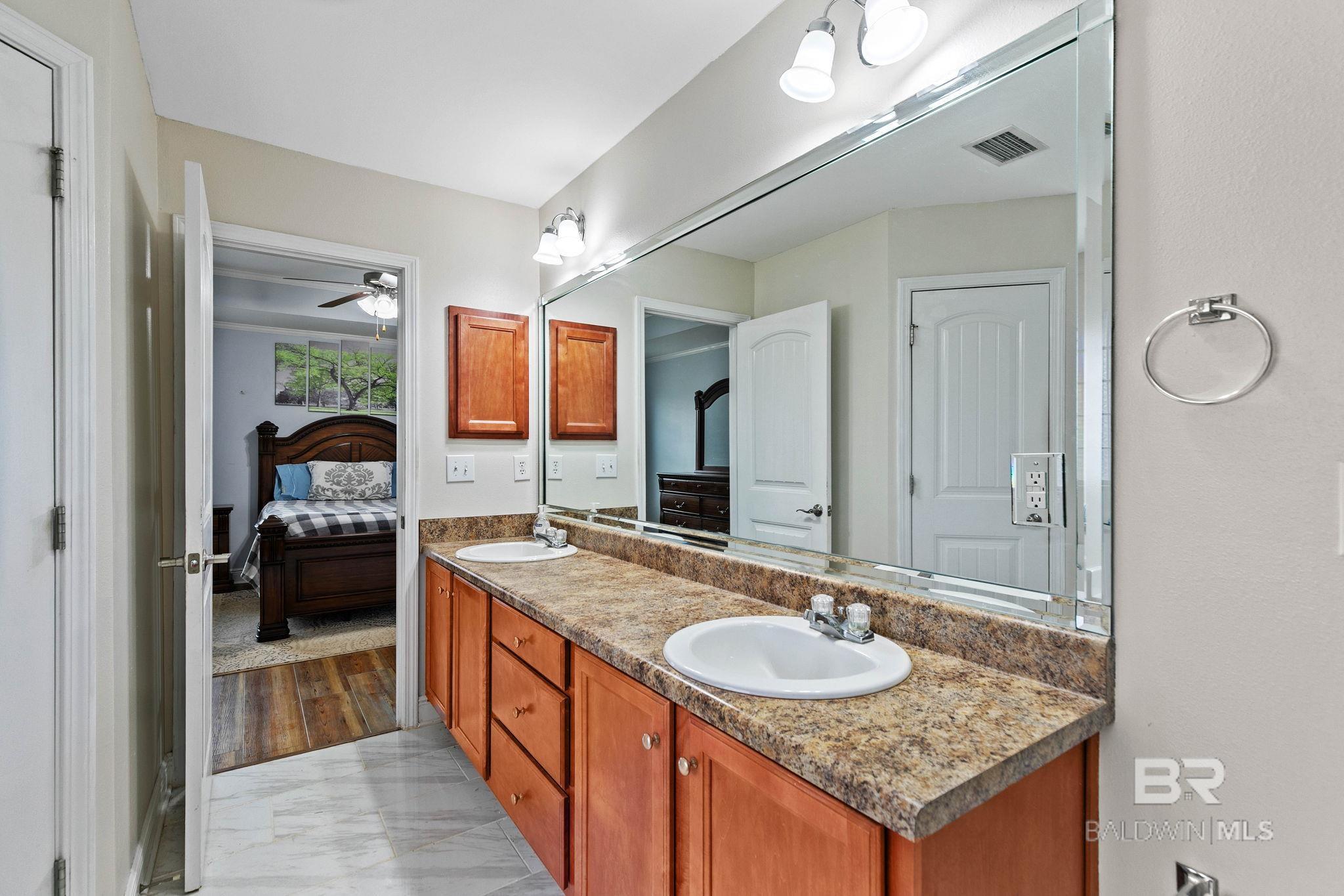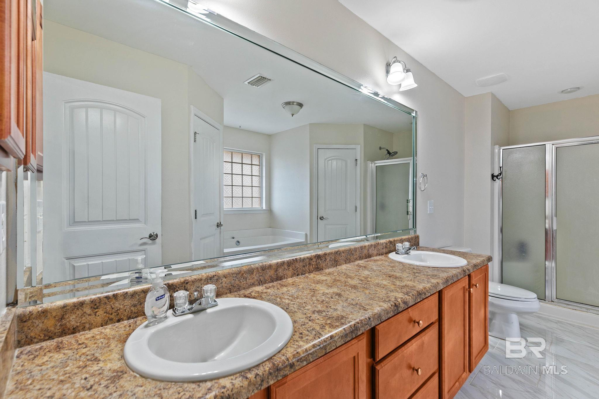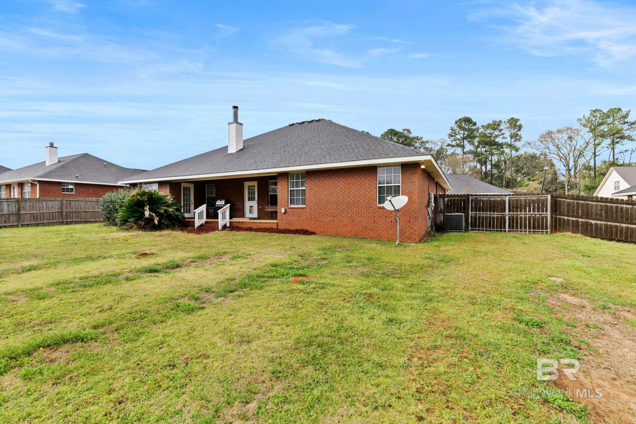 Welcome to this well-maintained 4-bedroom, 2-bath all-brick home offering a spacious layout designed for both everyday living and entertaining. Inside, you’ll find a large living room anchored by a cozy fireplace, creating a warm and inviting central gathering space, along with a separate formal dining room perfect for hosting dinners or special occasions.The oversized kitchen provides abundant cabinet and counter space and includes stainless steel appliances, refrigerator, and a comfortable eat-in breakfast area ideal for casual meals.The private primary suite offers a relaxing retreat with double doors leading directly to the covered back porch. The en suite bathroom features dual vanities, a soaking tub, separate shower, and generous his-and-her walk-in closets.A split floor plan provides privacy, with three additional bedrooms located on the opposite side of the home. The second bedroom includes direct access to the back porch, while the remaining two bedrooms are positioned toward the front of the home with a full bathroom conveniently located between them.Outside, enjoy a large fenced backyard with a flat, level lawn — perfect for entertaining, pets, or play. The all-brick exterior offers durability and low maintenance, making this home as practical as it is inviting. Buyer to verify all information during due diligence.