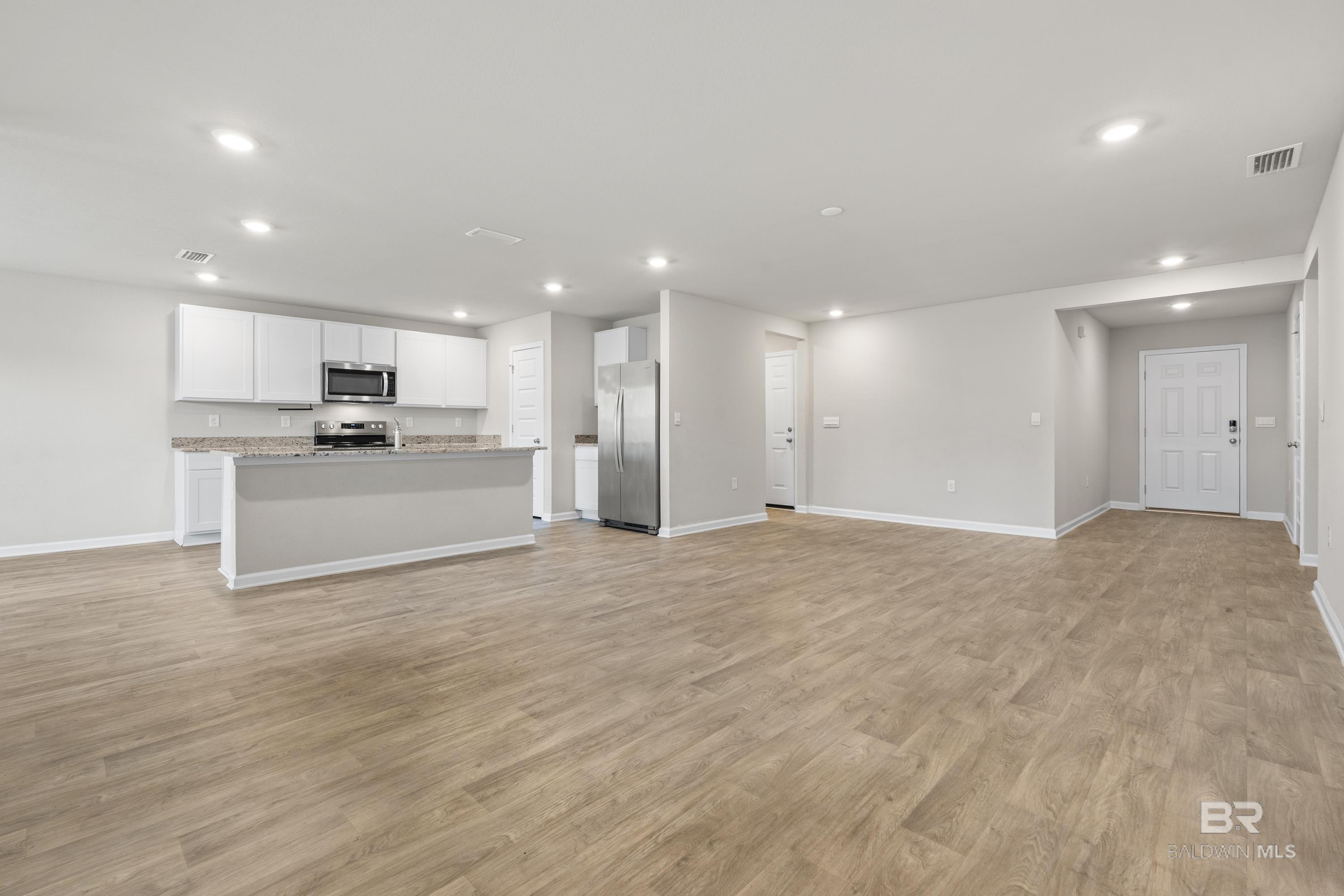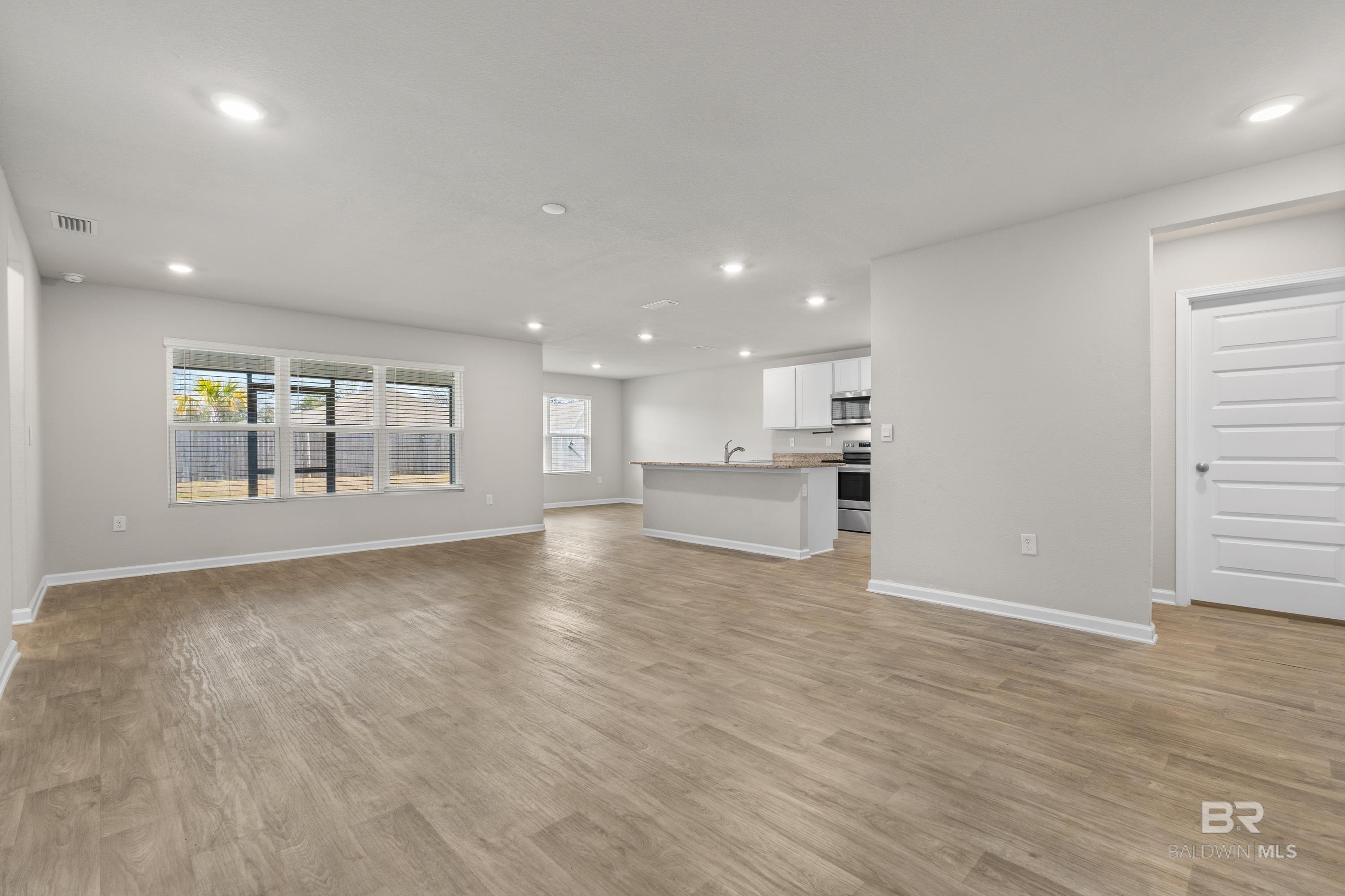 Located in Raley Farms, this one-level home features a functional split floorplan with the primary suite on one side of the home and the additional bedrooms on the opposite side for added privacy. The open-concept main living area includes a spacious living room, dedicated dining space, and a kitchen with a large center island, ample cabinetry, and modern finishes. The primary suite offers a walk-in closet and an en-suite bath with a double-sink vanity and a separate shower. Additional bedrooms provide flexible use for guests, office, or hobbies. Outdoor features include a covered back porch and a level yard suitable for a variety of uses. Community amenities include a pool, and the location provides convenient access to Gulf Shores schools, shopping, hospitals, medical offices, dining, and local beaches. Buyer to verify all information during due diligence.