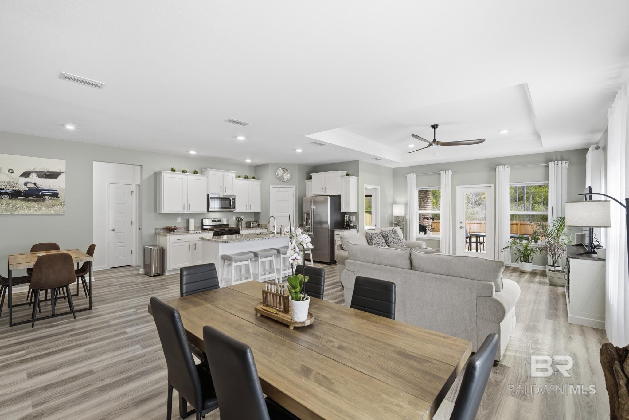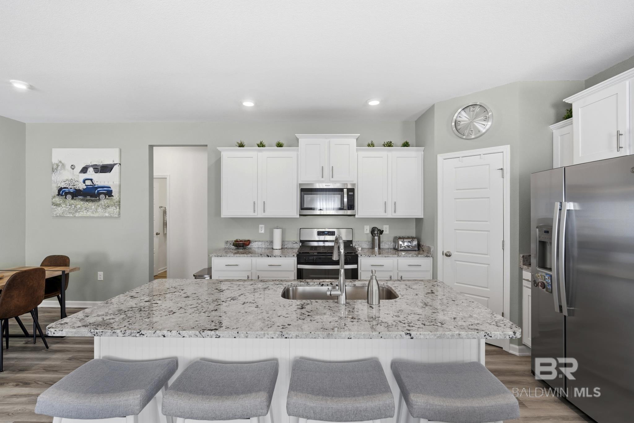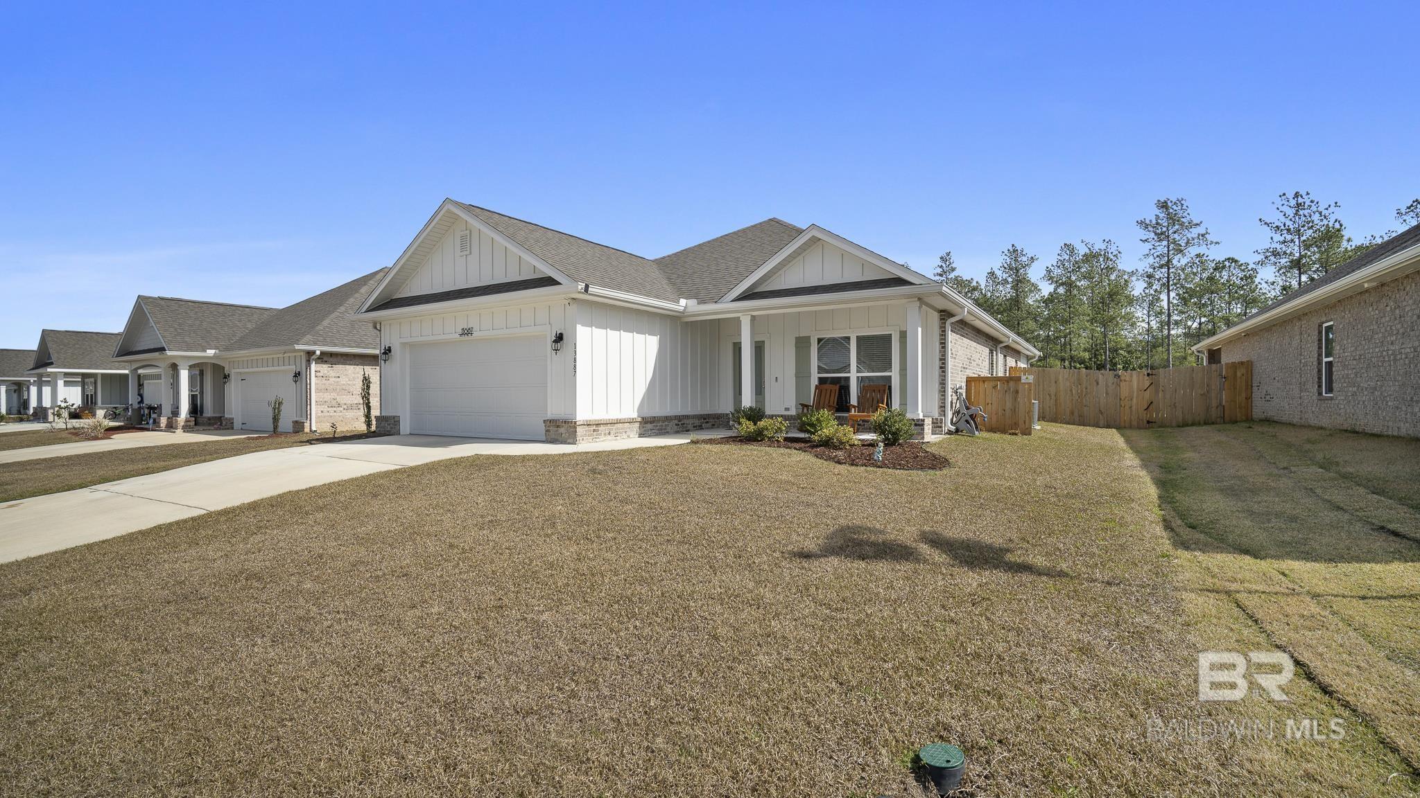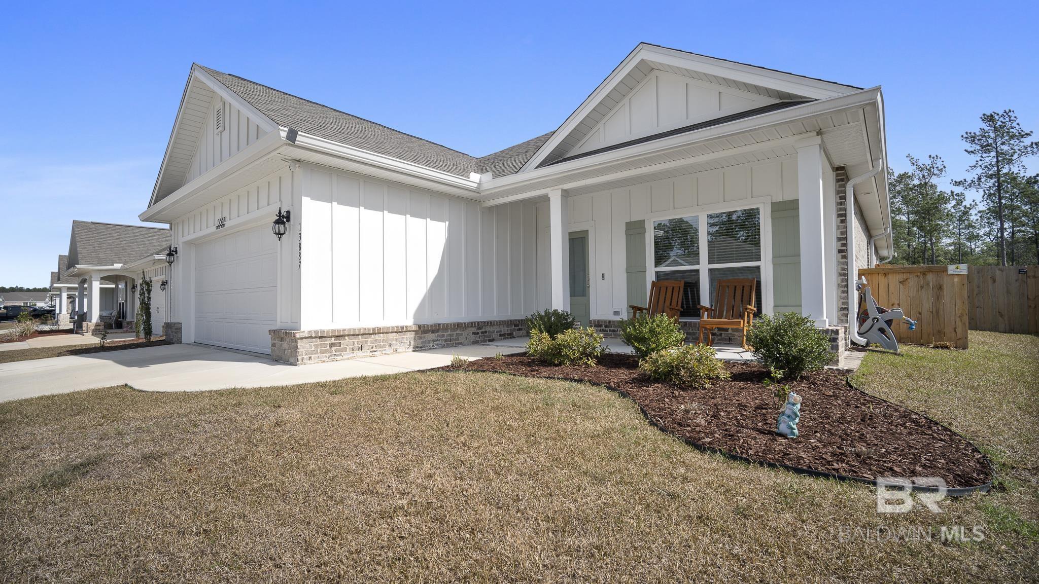 Welcome to Biltmore in the popular Stonebridge community, where comfort, and lifestyle come together. This 2024 GOLD FORTIFIED Isabella floor plan offers 1,948 square feet of beautifully FRESHLY PAINTED single-story living with 4 bedrooms, 2 bathrooms, 2-car garage, and a FRONT PORCH. Situated on a large, FLAT LOT with peaceful wooded views behind the home, you’ll enjoy both privacy and the perfect backdrop to create your own outdoor oasis. Step inside to a welcoming foyer that opens into a spacious open-concept layout. The kitchen is the heart of the home, featuring a large island, ample cabinetry, and a dedicated dining area—ideal for everyday living and entertaining. The kitchen flows into the great room, which provides direct access to the covered back porch, making indoor-outdoor living effortless. The private primary suite is thoughtfully positioned at the rear of the home and offers a generous walk-in closet and a well-appointed ensuite bath complete with dual sinks, a large soaking tub, and a separate linen closet. The second bedroom, located at the front of the home overlooking the street. Bedrooms three and four are tucked away with convenient access to a full bath that includes a shower/tub combination and additional linen storage.Additional highlights include SMART HOME technology, gutters, and the valuable GOLD FORTIFIED construction designation, which may help reduce homeowner’s insurance costs. Residents of Stonebridge enjoy exceptional community amenities, including sidewalks, three swimming pools, playgrounds, a bocce ball court, tennis courts, basketball court, wiffle ball field, and a putting green—providing recreation and enjoyment for all ages. This home offers the perfect blend of thoughtful design, modern features and a great community. Furniture is negotiable. All information deemed reliable but should be verified by buyer during due diligence. Buyer to verify all information during due diligence.