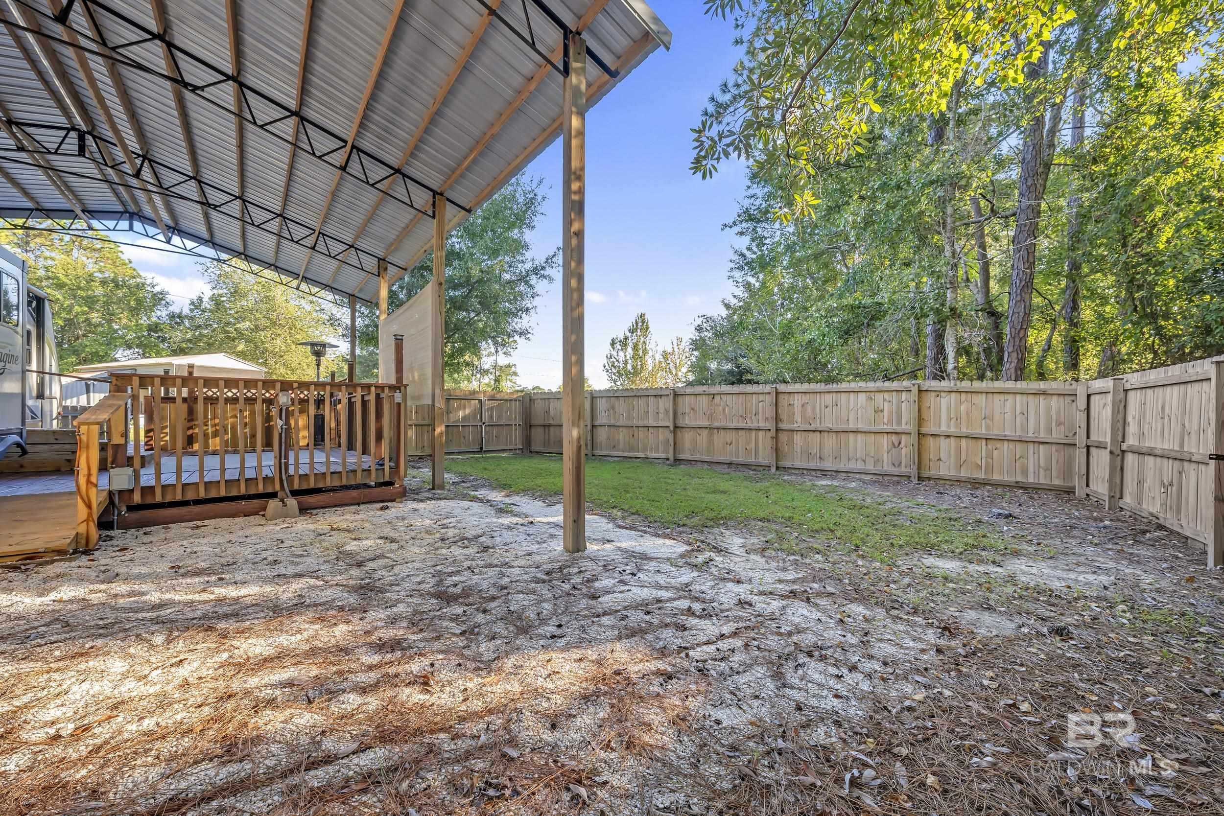 Trade crowded RV parks for your own turnkey coastal retreat in the sought-after Land Harbor section of Spanish Cove. This fully fenced property offers the ideal setup for full-time living or a weekend getaway, complete with all the essentials for comfort, convenience and relaxation.A 28x36 pole barn shelters your RV and provides shade for outdoor entertaining, while the 20x12 deck offers plenty of room for dining, lounging or enjoying peaceful evenings surrounded by nature. An 8x16 storage building adds even more versatility, featuring a bathroom, washer/dryer, and a cozy couch, ideal for guests,hobbies or extra storage space.Spanish Cove is a vibrant, amenity-rich neighborhood where every day feels like a vacation. Residents enjoy 24-hour private security, a year-round pool overlooking tranquil Perdido Bay, a fishing pier, private beach area, pickleball courts, fitness center, laundry facilities, playgrounds, two clubhouses, nature trails and a packed calendar of community events and activities. Perfectly located just 2 miles from the Lillian public boat launch and minutes from Lillian Waterfront and Recreation Parks. You'll have easy access to boating, fishing and outdoor fun.All information is deemed reliable but not guaranteed. Buyer and buyer's agent to verify any details important to them during the due diligence period. Buyer to verify all information during due diligence.