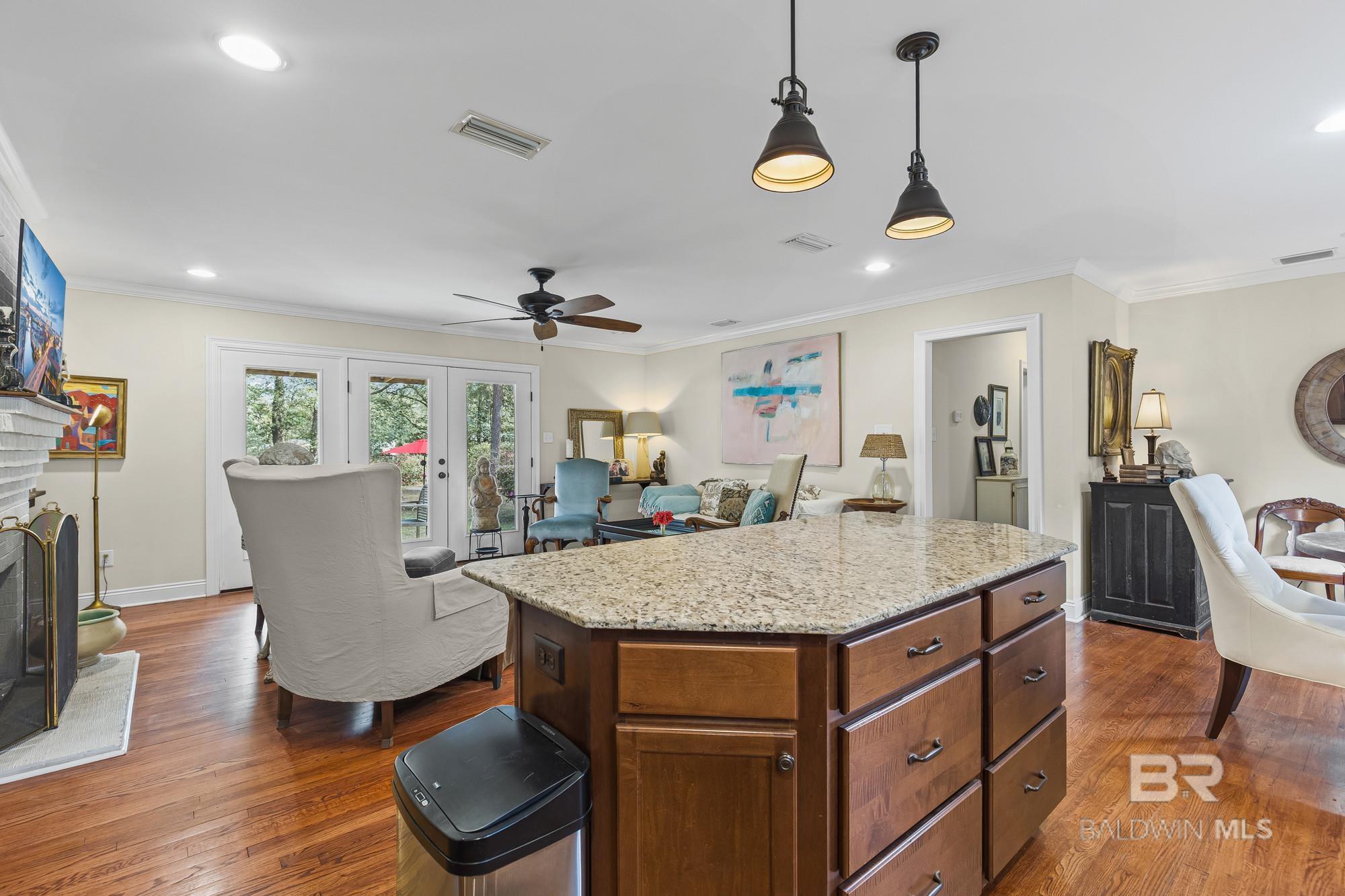 **OPEN HOUSE: Sunday, March 22nd | 12:00-2:00 pm** Located in the heart of Mobile on a quiet cul-de-sac, this 4-bedroom, 2-bath home offers space, functionality, and a prime location just minutes from grocery stores, restaurants, shopping, and everyday conveniences. The open-concept main living area features beautiful hardwood floors, abundant natural light, and a fireplace that anchors the room. French doors lead directly to the backyard, creating an easy flow for entertaining or relaxing. The kitchen is designed with granite countertops, a large island with substantial storage underneath, and plenty of workspace for hosting or daily living. The oversized primary suite provides a spacious retreat with a large bathroom, double vanity, and walk-in closet. The additional bedrooms are generously sized, and the hall bath also includes a double vanity for added convenience. Updated double-pane windows enhance efficiency and comfort throughout the home. Outside, the backyard offers exceptional space with mature azaleas, fruit trees, and room to spread out. A large shed with electricity adds flexibility for storage, hobbies, or workspace needs. A one-car carport and brand new gate complete the property. A well-located home with practical features, thoughtful updates, and room to grow — all tucked away in the middle of Mobile. Buyer to verify all information during due diligence.